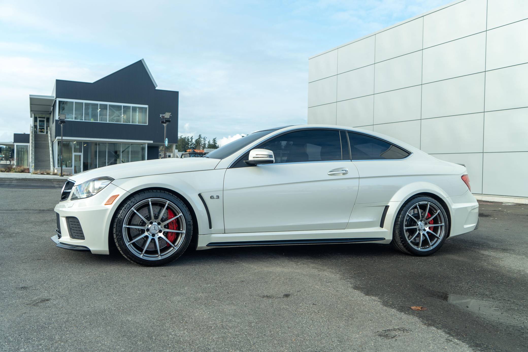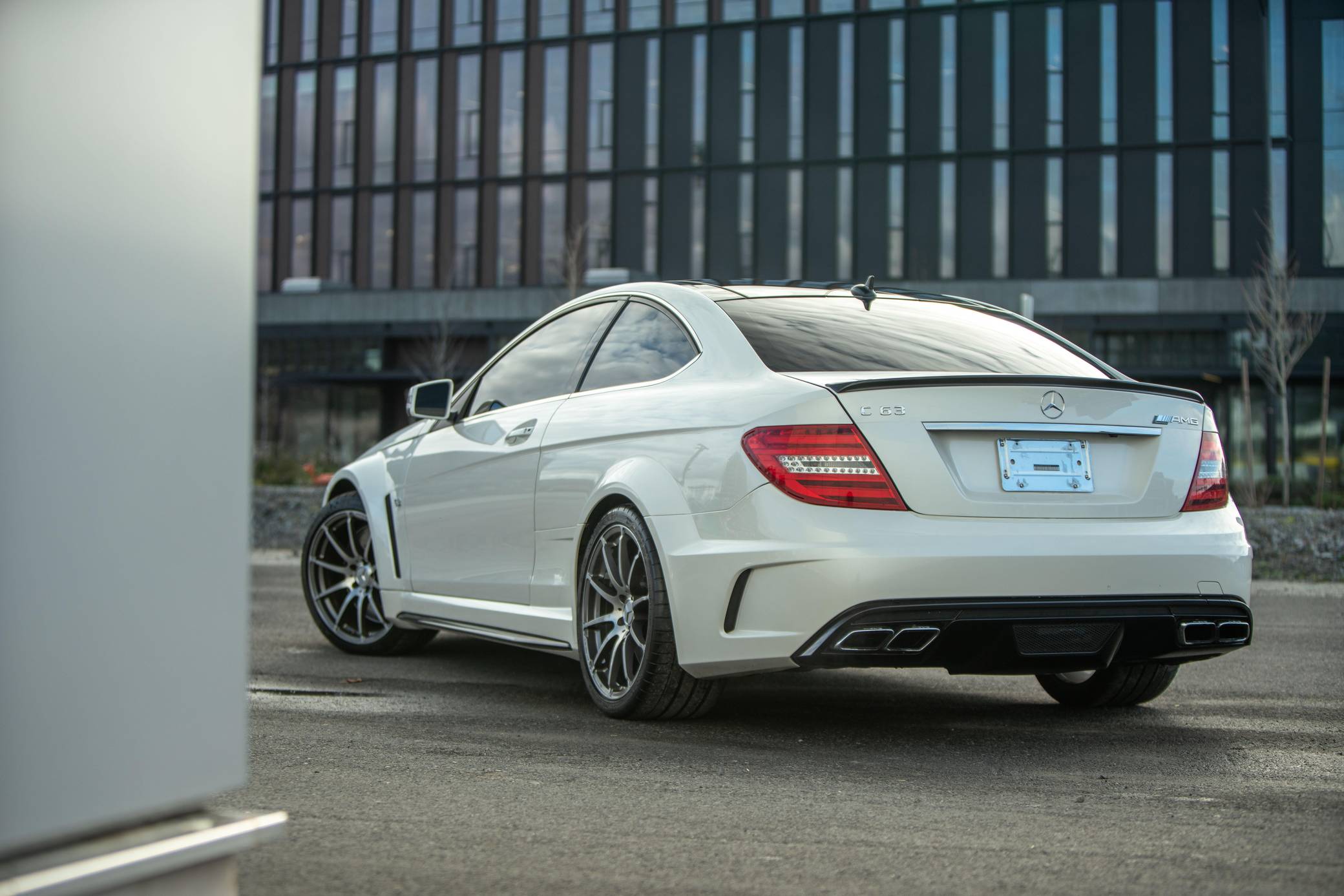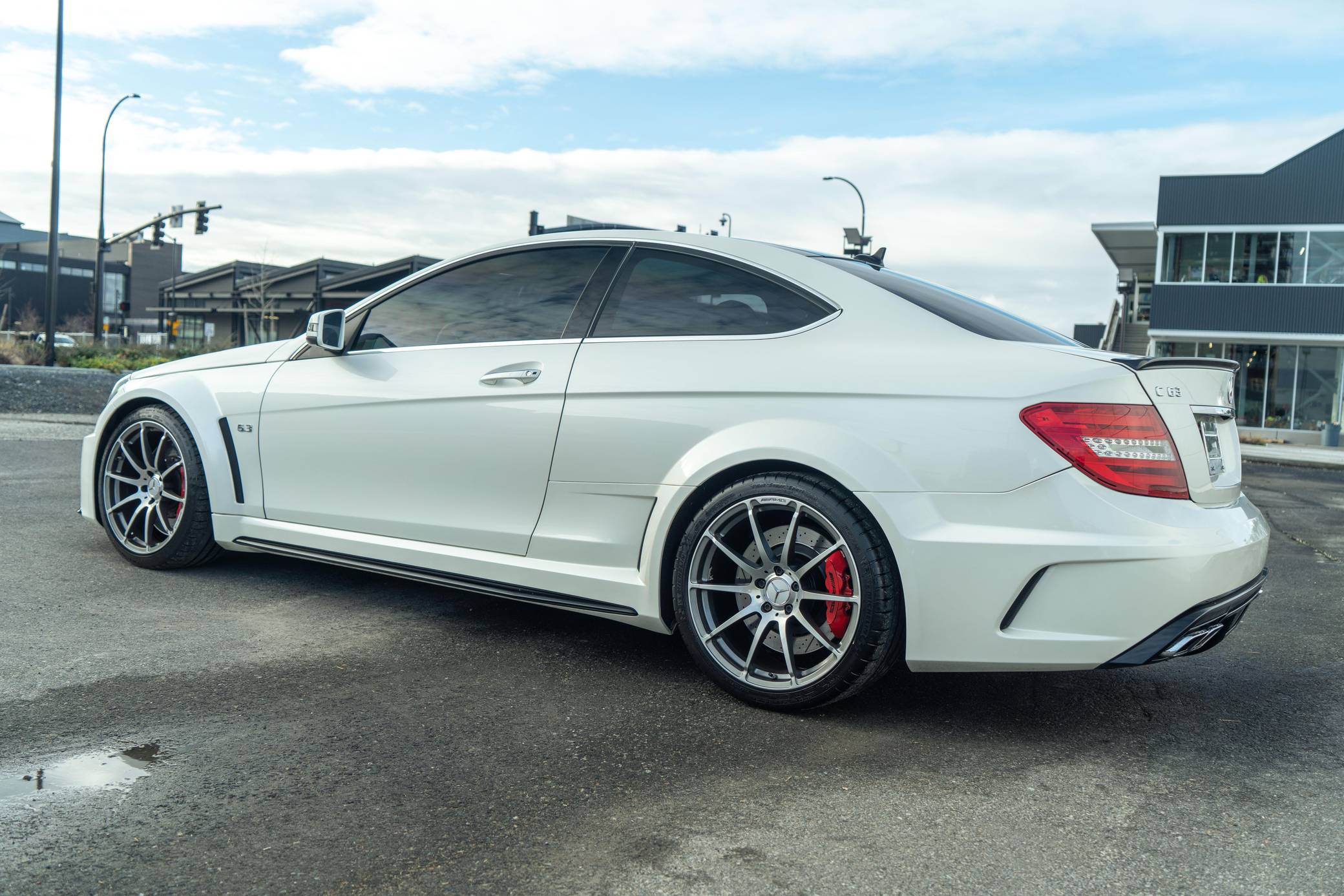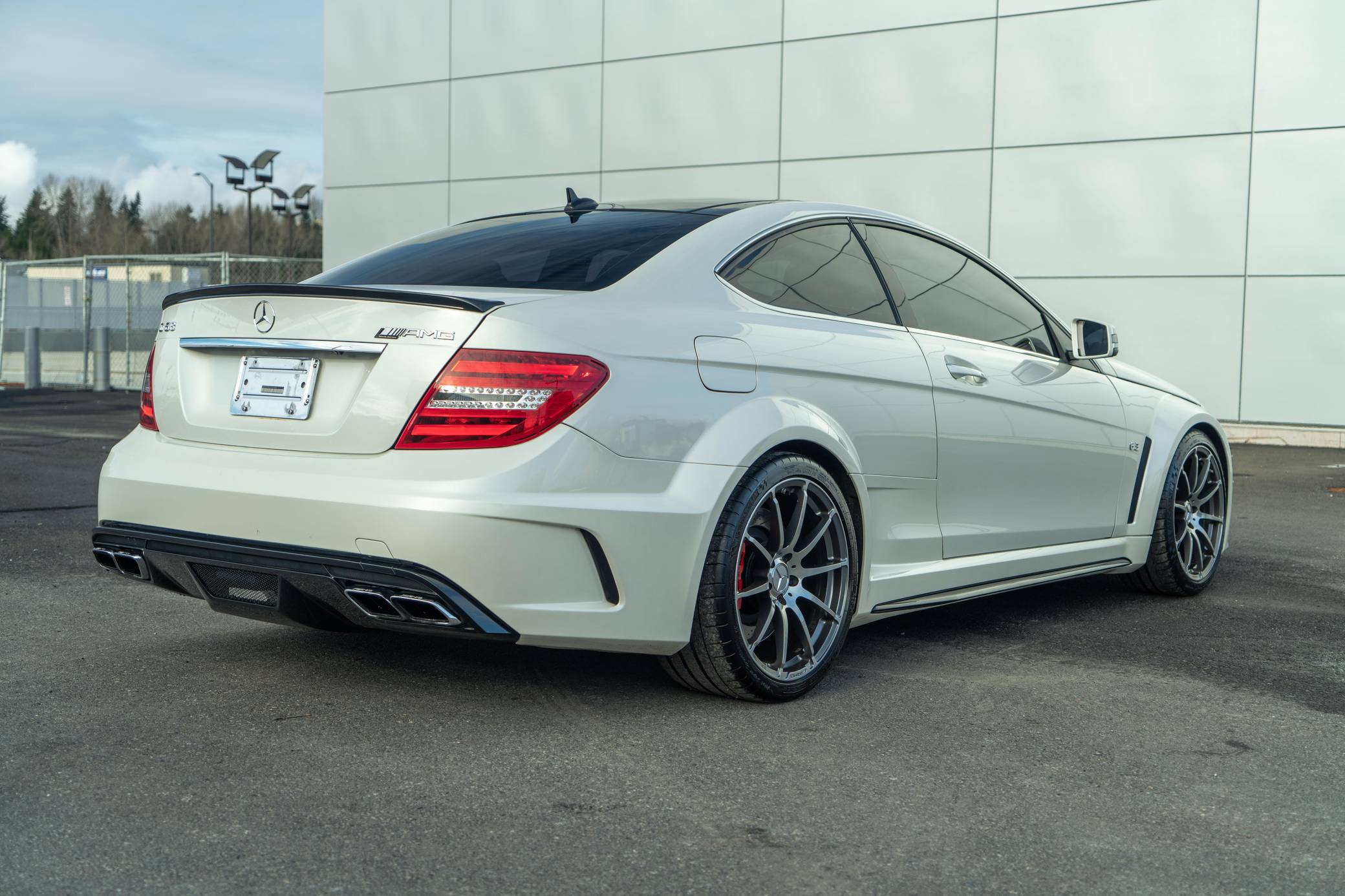 THIS… is a 2012 Mercedes-Benz C63 AMG Black Series, finished in Diamond White with a black interior. This C63 AMG Black Series is 1 of 800 produced worldwide for the 2012 model year. The hardcore performance-focused Black Series boasts 59 horsepower and 14 lb-ft of torque over the standard C63 AMG, thanks to a revised ECU and forged pistons, connecting rods, and a crankshaft borrowed from the SLS AMG. It looks the part, too, with enlarged fenders, a wider track, and aggressive bodywork designed to scoop in more air and keep it planted firmly on the road. Factory equipment includes 19-inch 10-spoke forged alloy wheels, adjustable coilover suspension, a limited-slip differential, a panoramic sunroof, MB-Tex and Dinamica upholstery, heated front seats, carbon fiber interior trim, a Harman/Kardon sound system, a rear-view camera, and more as detailed below. Modifications reported by the seller include a resonator delete, tinted windows, and a Passport radar detector, plus paint protection film on the front end, A-pillars, and side skirts. Power comes from a hand-built "M156" 6. 2-liter V8, rated at 510 horsepower and 457 lb-ft of torque. Output is sent to the rear wheels via a 7-speed AMG Speedshift multi-clutch automatic transmission and a limited-slip differential.