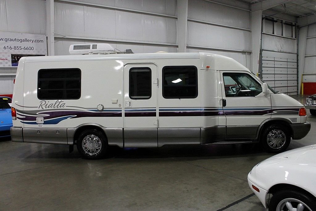 The Rialta by Winnebago, produced from 1995-2005, comes with four different floor plans. Unique to the QD is driver plus 7 passenger capacity, sleeping capacity 4, second row captain's chairs that smartly convert to a bed, rear bench seats convert to double sized bed, hideaway dinette table, refrigerator, 2 burner stove, microwave, Bathroom equipped with toilet, sink and shower head, storage under both captain's chairs as well as overhead storage front and back and the wardrobe. This VW Rialta 22QD is powered by the legendary VR6 gas engine producing 140HP. This particular Rialta has been incredibly well maintained with a systems functioning correctly right now to the roof top AC. This Rialta spend it's life in North Carolina and South Carolina up until 2011 and roughly 62,000 miles. Currently this well maintained example has plenty of adventure to offer its new owner showing just 71544 miles on the odometer. Holiday roads are calling! This Rialta is 21.8 ft long X 8.6 ft high X 7.4 ft Wide. Average MPG is 14 city -17 Hwy.