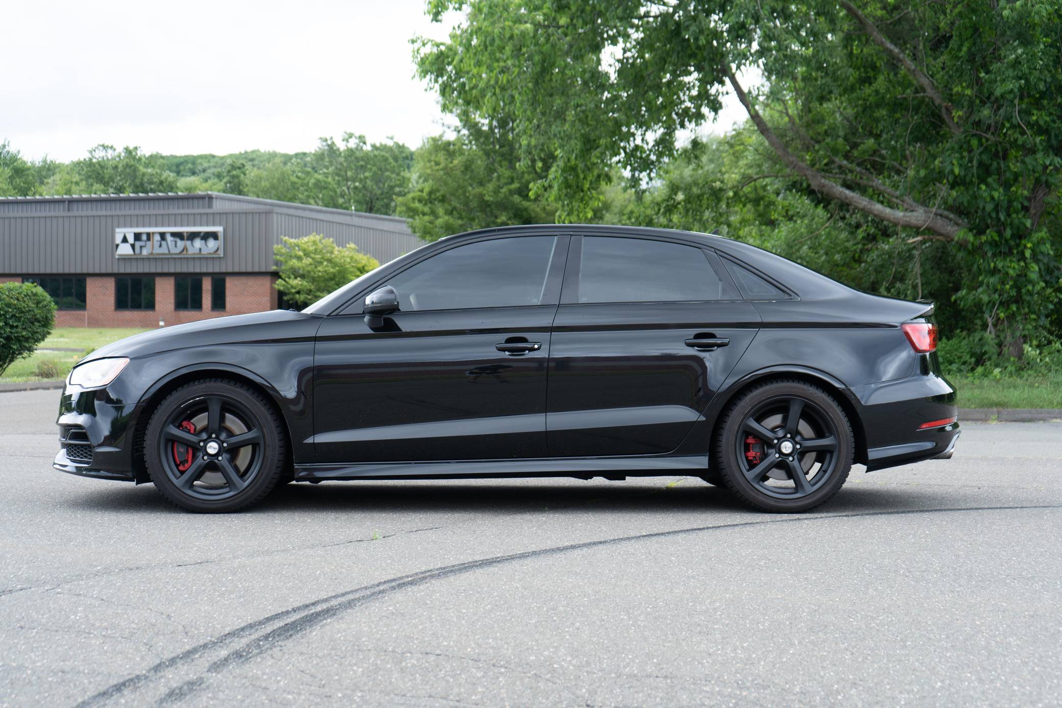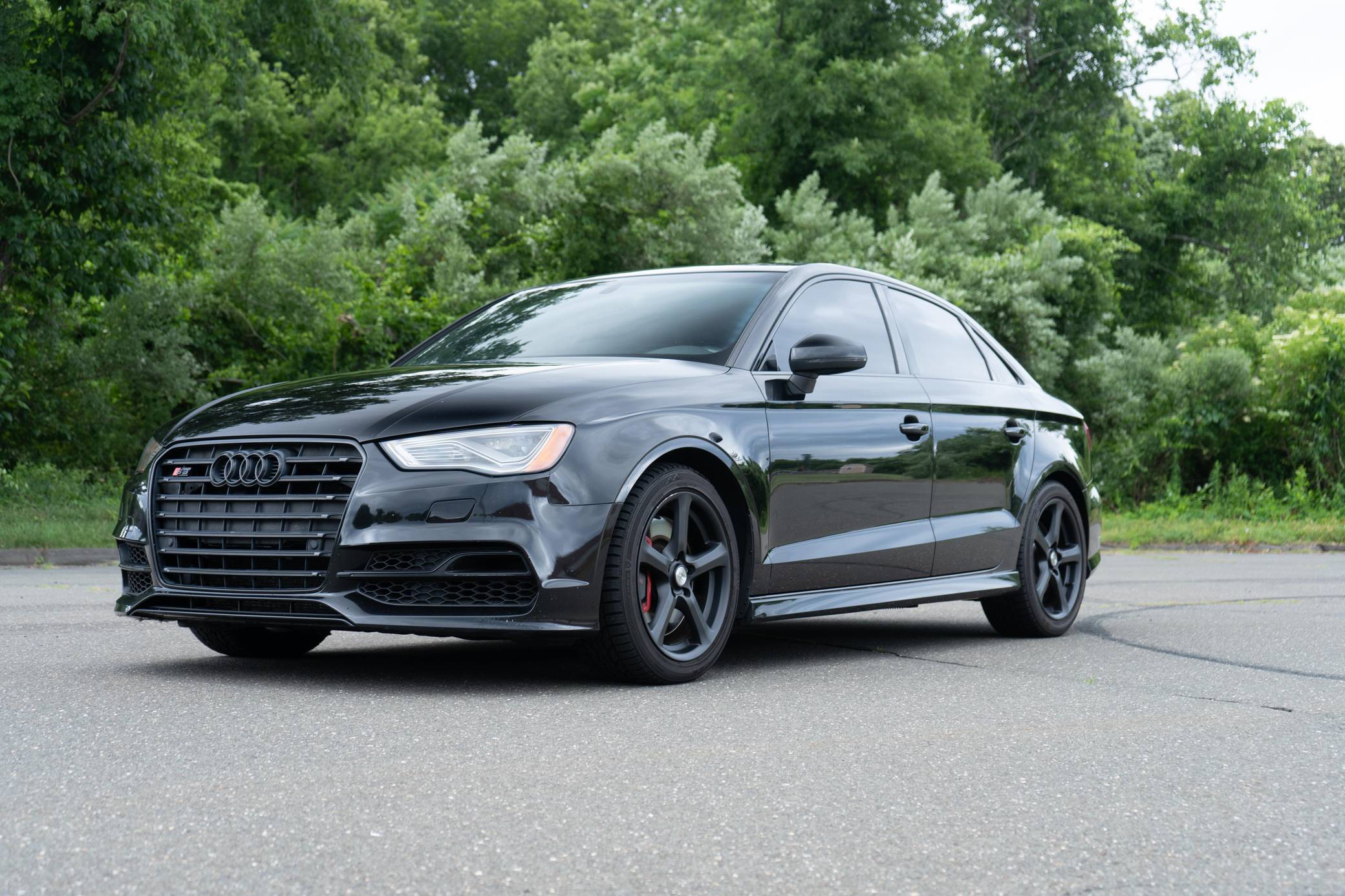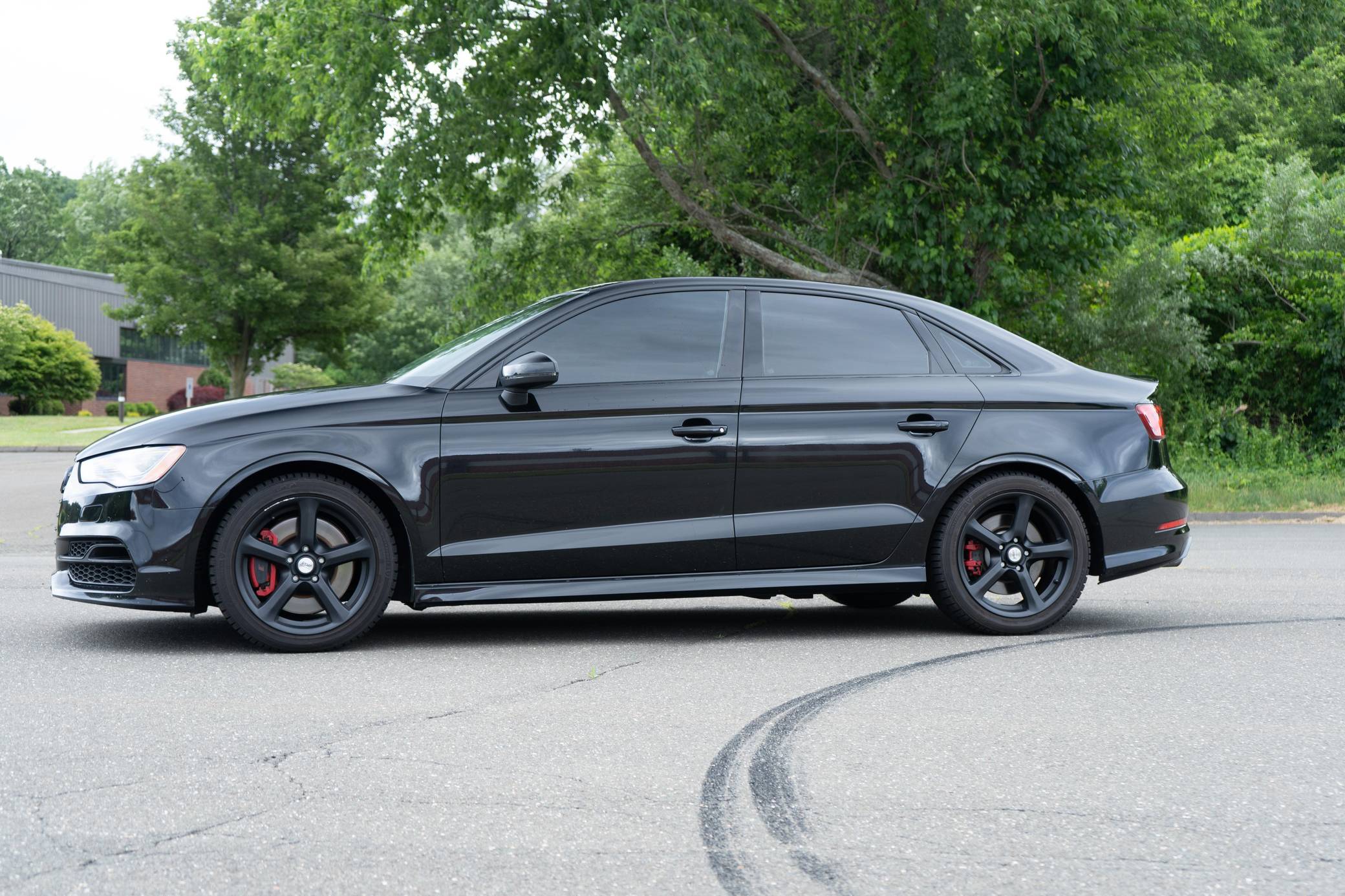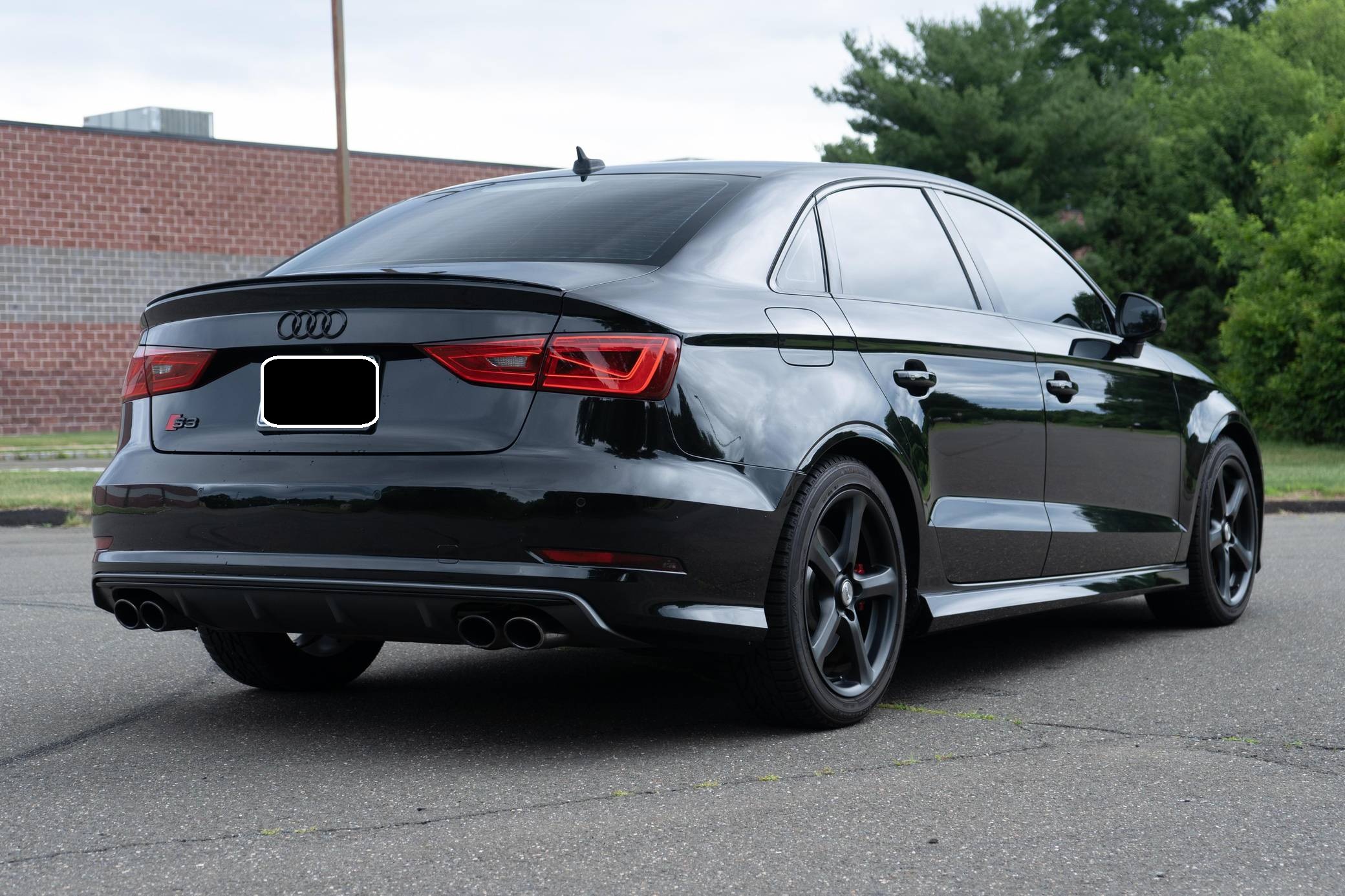 2016 Audi S3, finished in Mythos Black Metallic with a black interior. Factory equipment includes the S3 Technology, Black Optic Performance, S Sport Seat, and LED Lighting packages, a power sunroof, a rear-view camera, and a Bang & Olufsen sound system. Modifications reported by the seller are limited to a set of 17-inch wheels with winter tires, APR billet stainless-steel upper and lower dogbone mounts, tinted windows, and front and rear exterior badges painted black. The factory 19-inch 5-V-Spoke alloy wheels are included in the sale. Audi positioned the first-generation A3 Sedan at the bottom of its American range for the 2015 model year, and it simultaneously released the S3 as a sportier alternative. Built on the versatile MQB platform, both models offered the luxury, sharp styling, and performance that Audi is known for in a package that was smaller and more affordable than the A4. Power comes from a 2. 0-liter turbocharged 4-cylinder engine, rated at 292 and 280 lb-ft of torque. Output is sent to all four wheels via a 6-speed automatic transmission and Audi's Quattro permanent all-wheel-drive system.