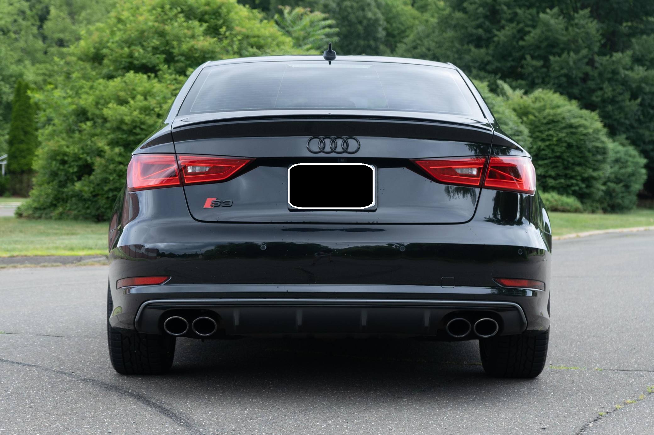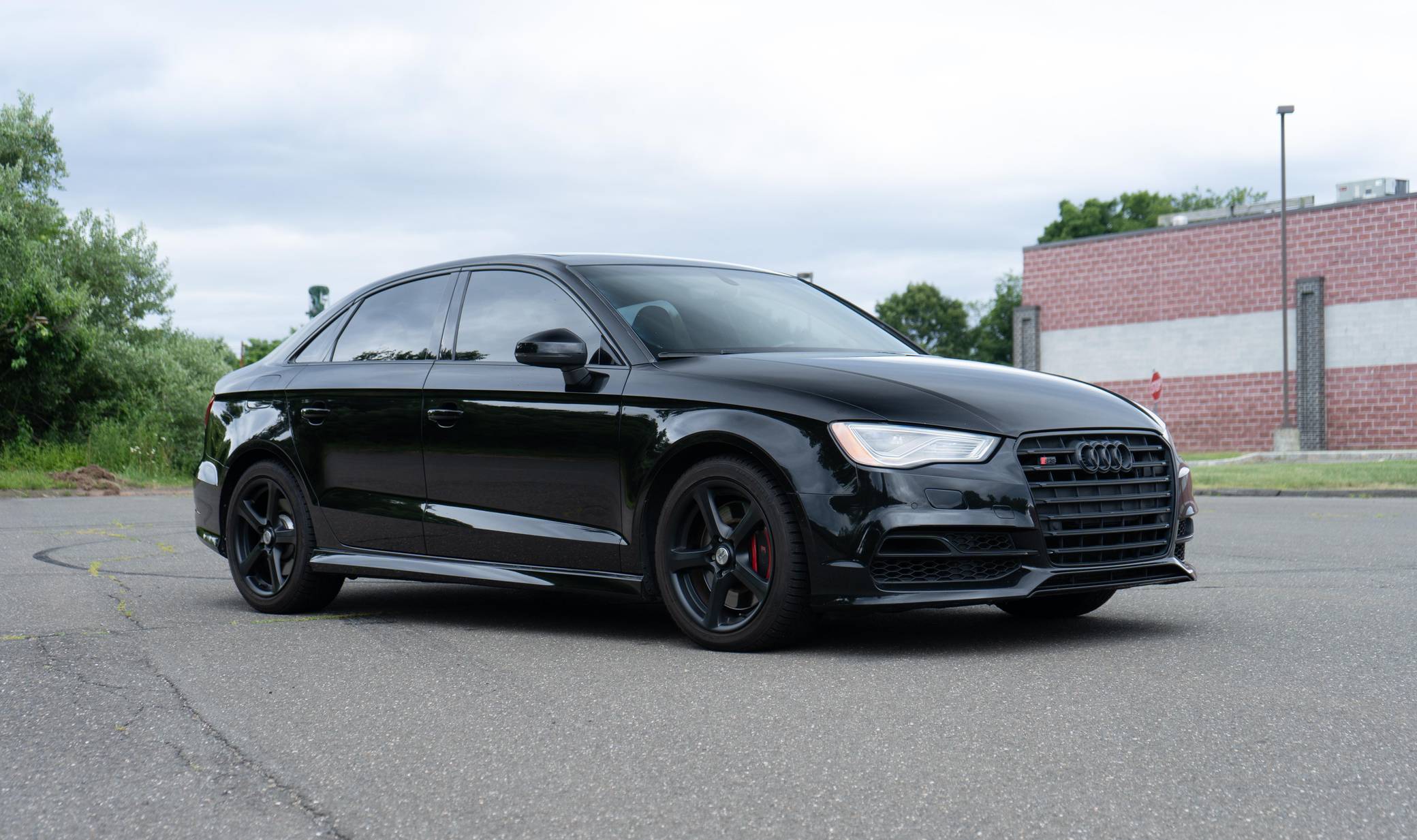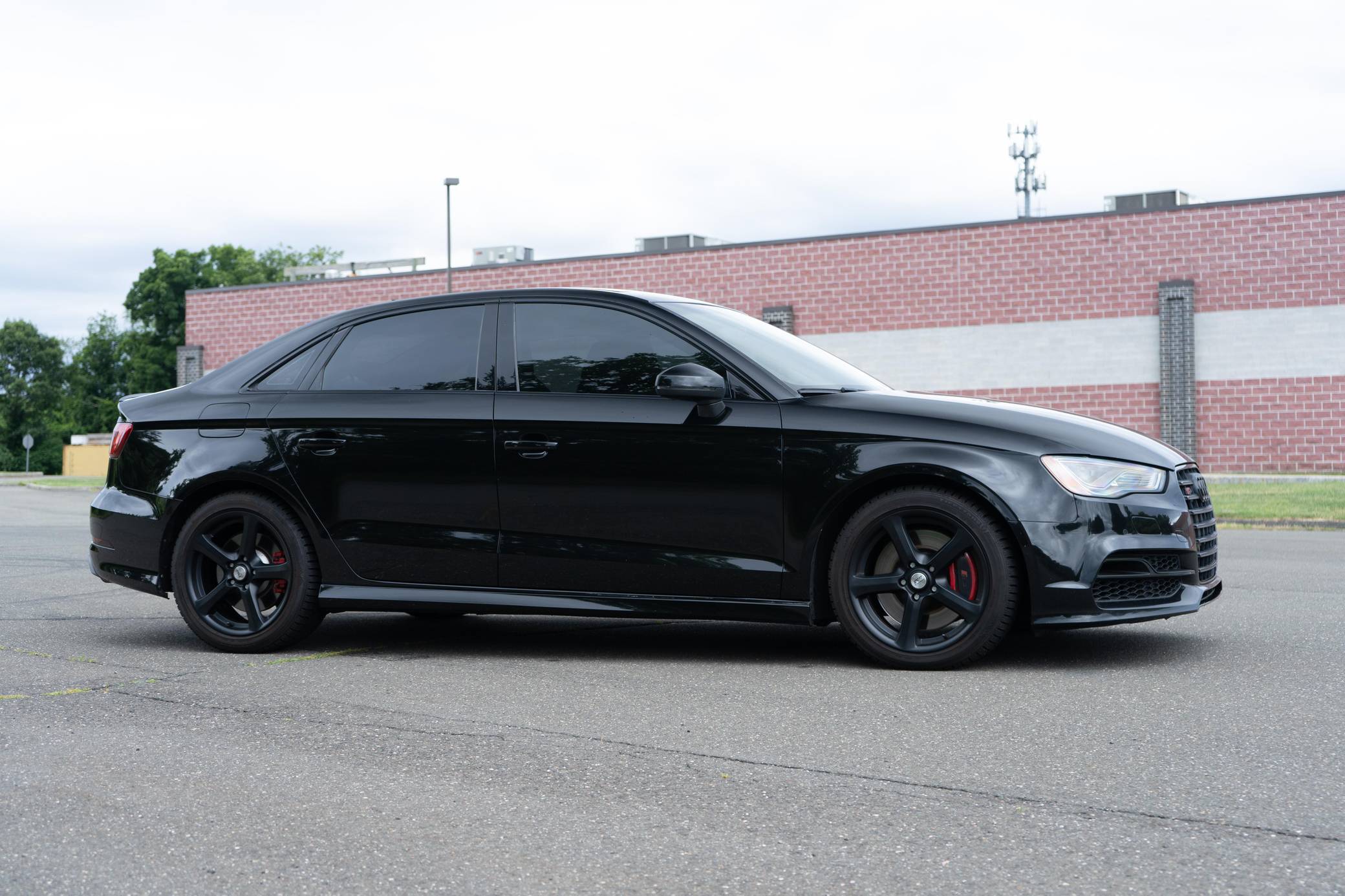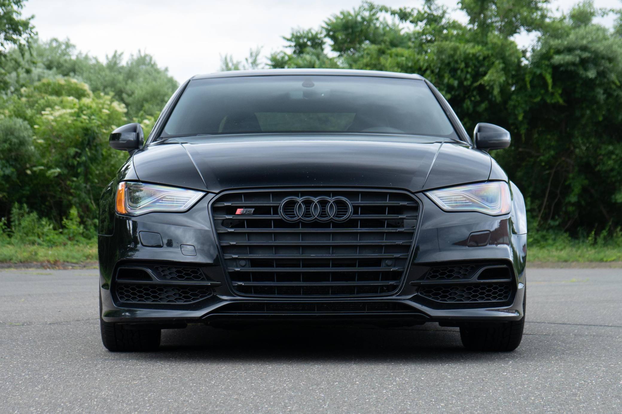2016 Audi S3, finished in Mythos Black Metallic with a black interior. Factory equipment includes the S3 Technology, Black Optic Performance, S Sport Seat, and LED Lighting packages, a power sunroof, a rear-view camera, and a Bang & Olufsen sound system. Modifications reported by the seller are limited to a set of 17-inch wheels with winter tires, APR billet stainless-steel upper and lower dogbone mounts, tinted windows, and front and rear exterior badges painted black. The factory 19-inch 5-V-Spoke alloy wheels are included in the sale. Audi positioned the first-generation A3 Sedan at the bottom of its American range for the 2015 model year, and it simultaneously released the S3 as a sportier alternative. Built on the versatile MQB platform, both models offered the luxury, sharp styling, and performance that Audi is known for in a package that was smaller and more affordable than the A4. Power comes from a 2. 0-liter turbocharged 4-cylinder engine, rated at 292 and 280 lb-ft of torque. Output is sent to all four wheels via a 6-speed automatic transmission and Audi's Quattro permanent all-wheel-drive system.