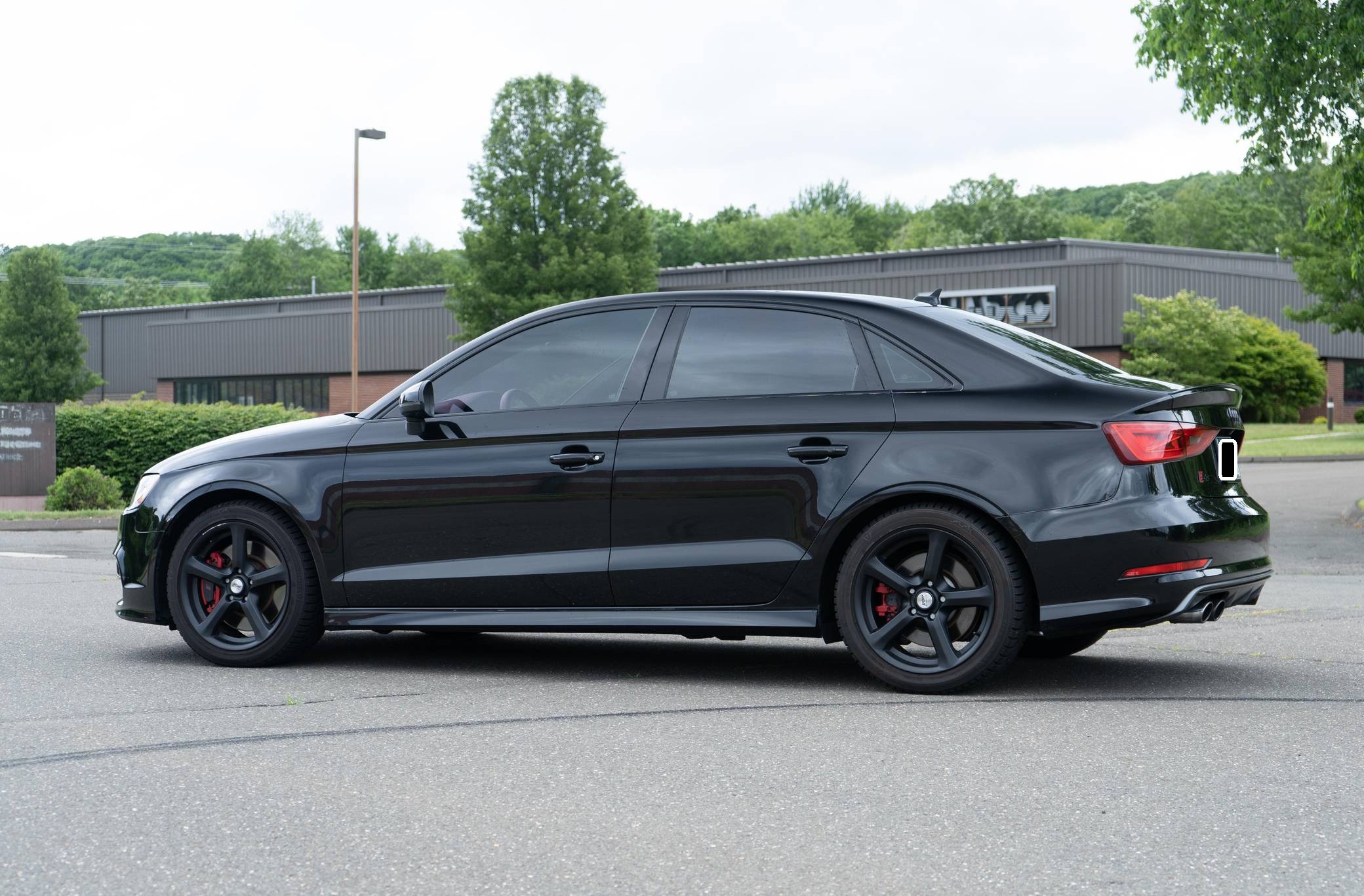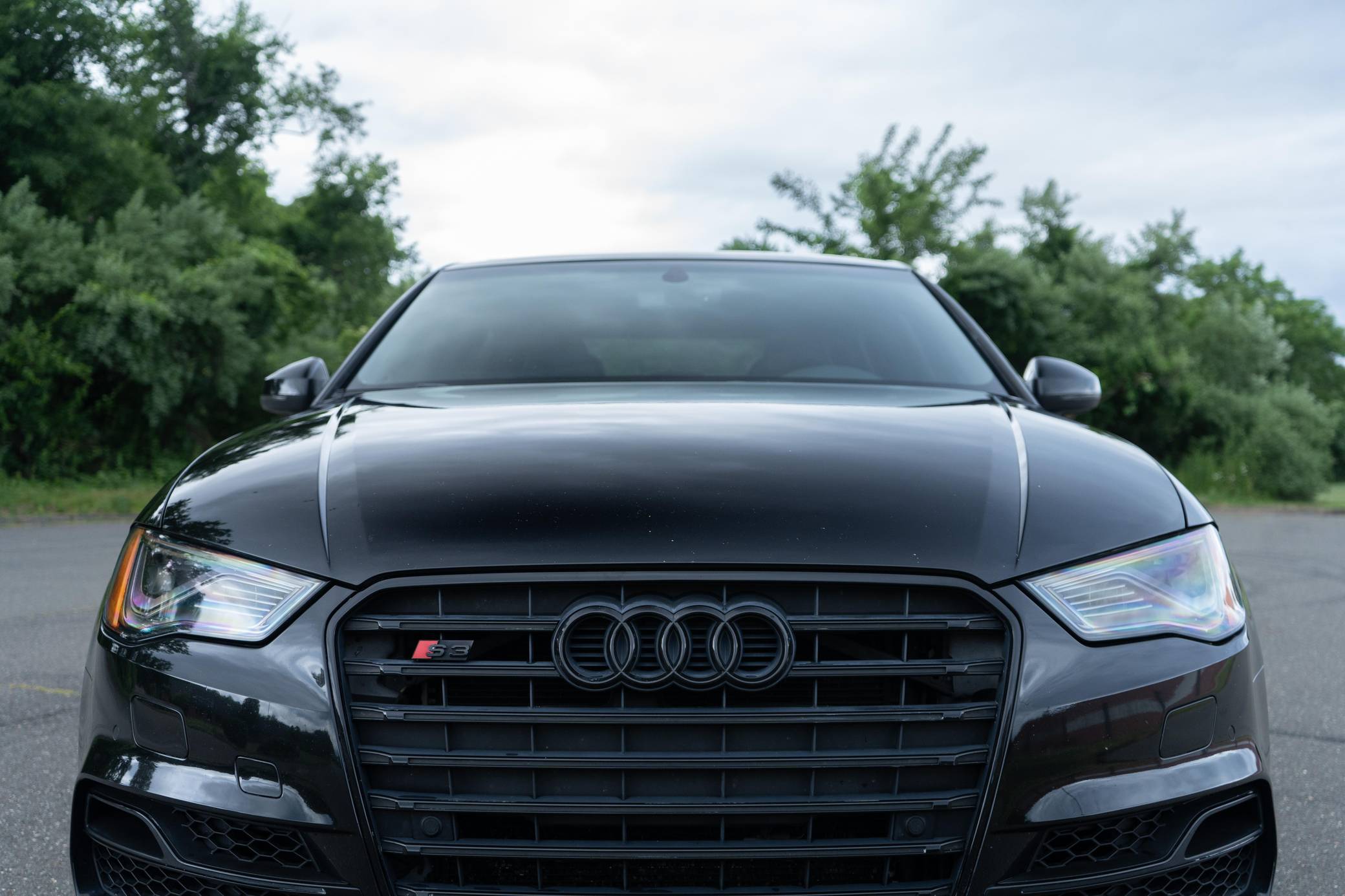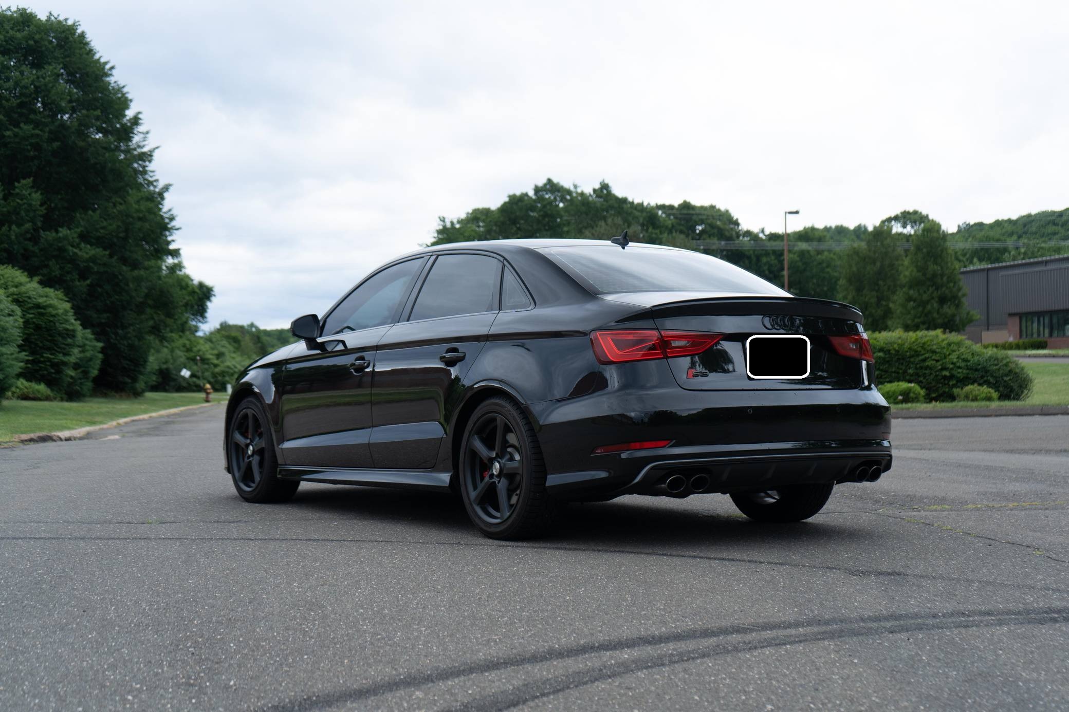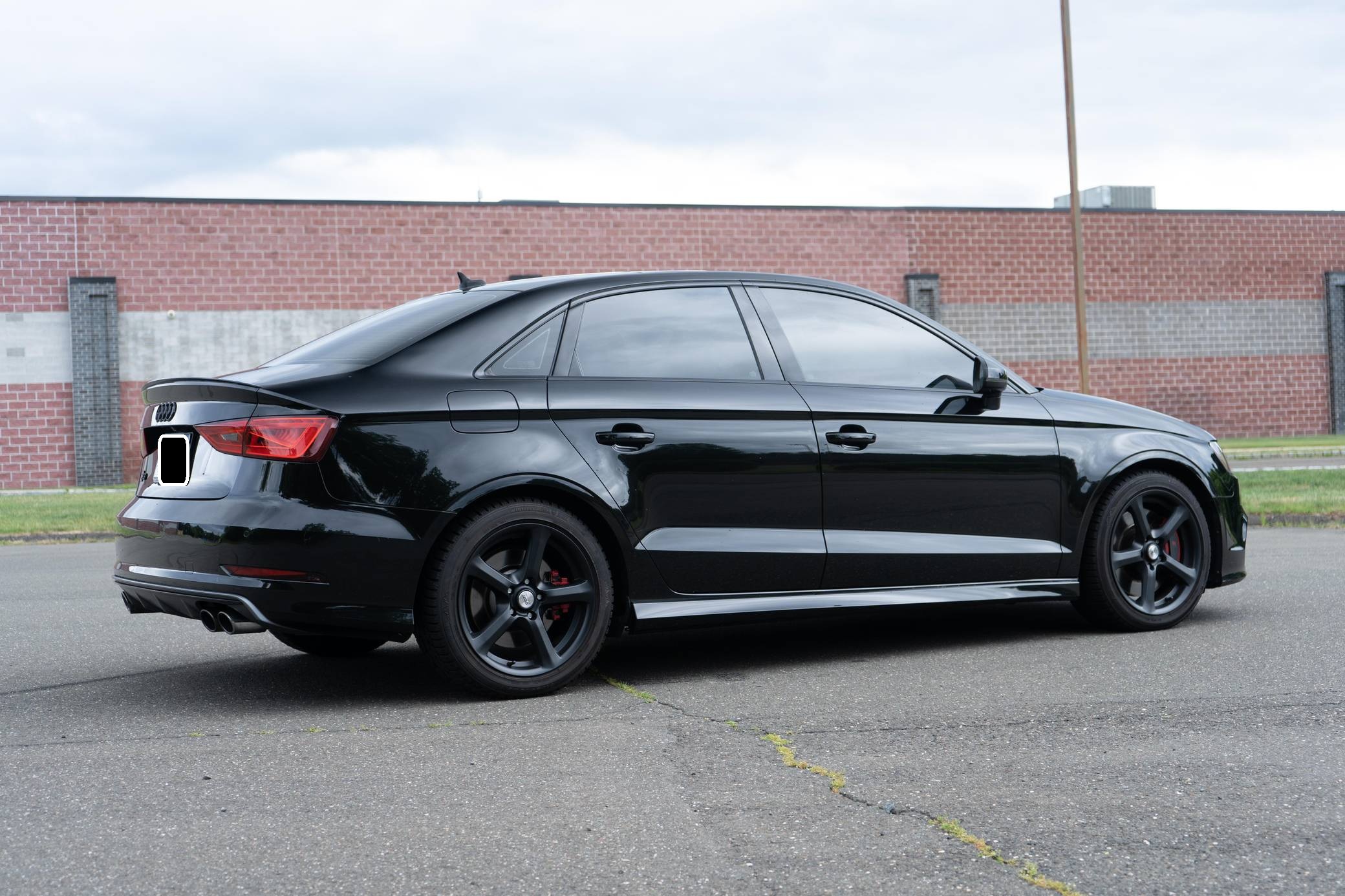 2016 Audi S3, finished in Mythos Black Metallic with a black interior. Factory equipment includes the S3 Technology, Black Optic Performance, S Sport Seat, and LED Lighting packages, a power sunroof, a rear-view camera, and a Bang & Olufsen sound system. Modifications reported by the seller are limited to a set of 17-inch wheels with winter tires, APR billet stainless-steel upper and lower dogbone mounts, tinted windows, and front and rear exterior badges painted black. The factory 19-inch 5-V-Spoke alloy wheels are included in the sale. Audi positioned the first-generation A3 Sedan at the bottom of its American range for the 2015 model year, and it simultaneously released the S3 as a sportier alternative. Built on the versatile MQB platform, both models offered the luxury, sharp styling, and performance that Audi is known for in a package that was smaller and more affordable than the A4. Power comes from a 2. 0-liter turbocharged 4-cylinder engine, rated at 292 and 280 lb-ft of torque. Output is sent to all four wheels via a 6-speed automatic transmission and Audi's Quattro permanent all-wheel-drive system.
