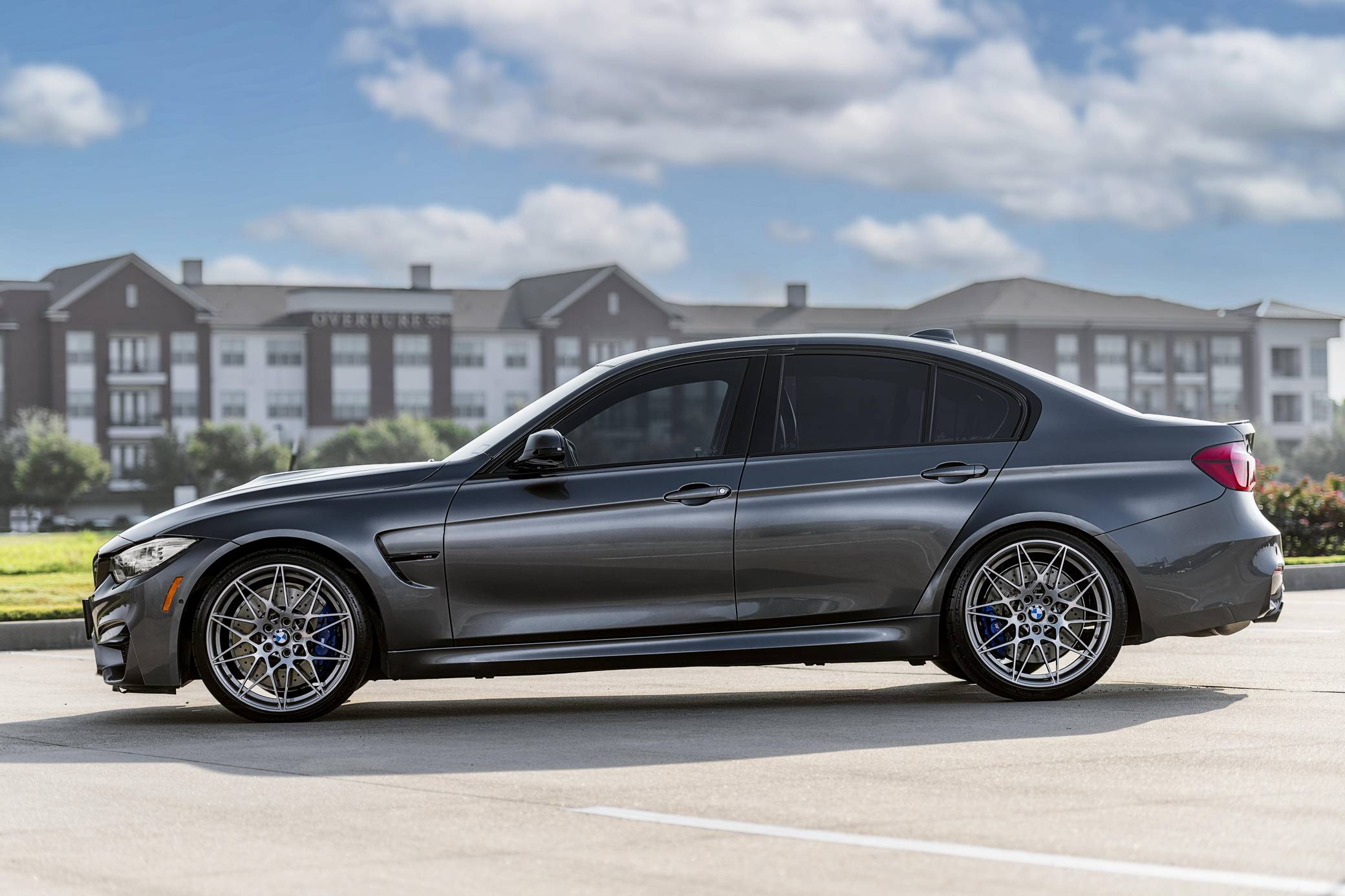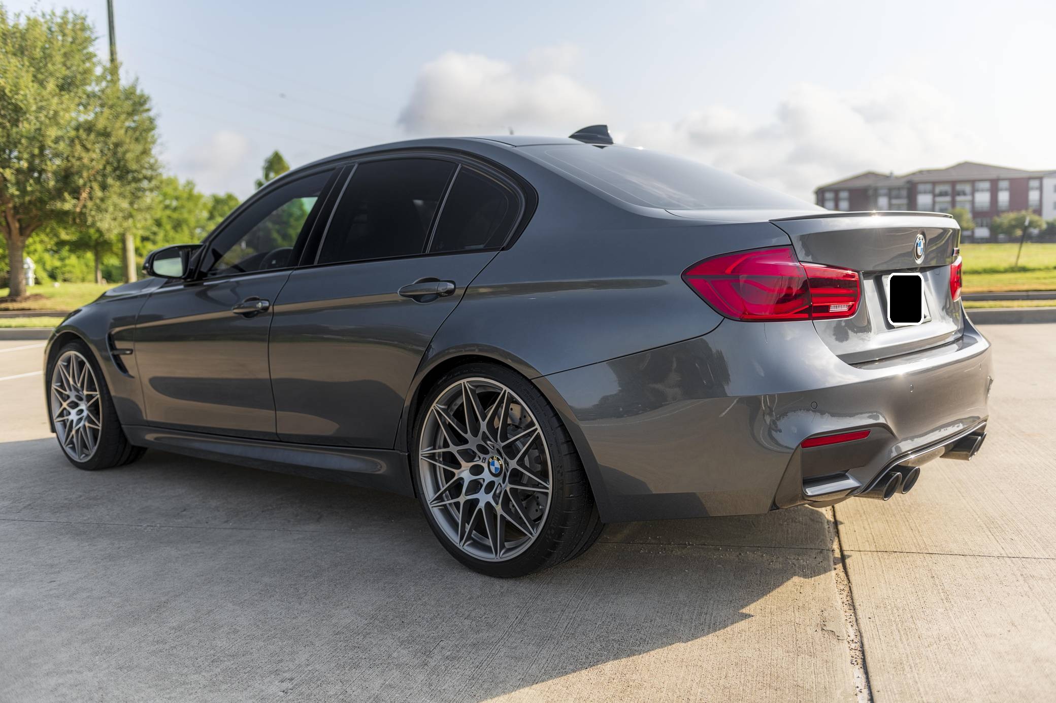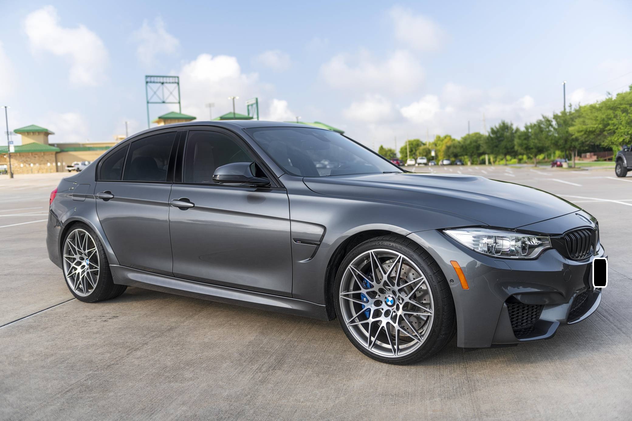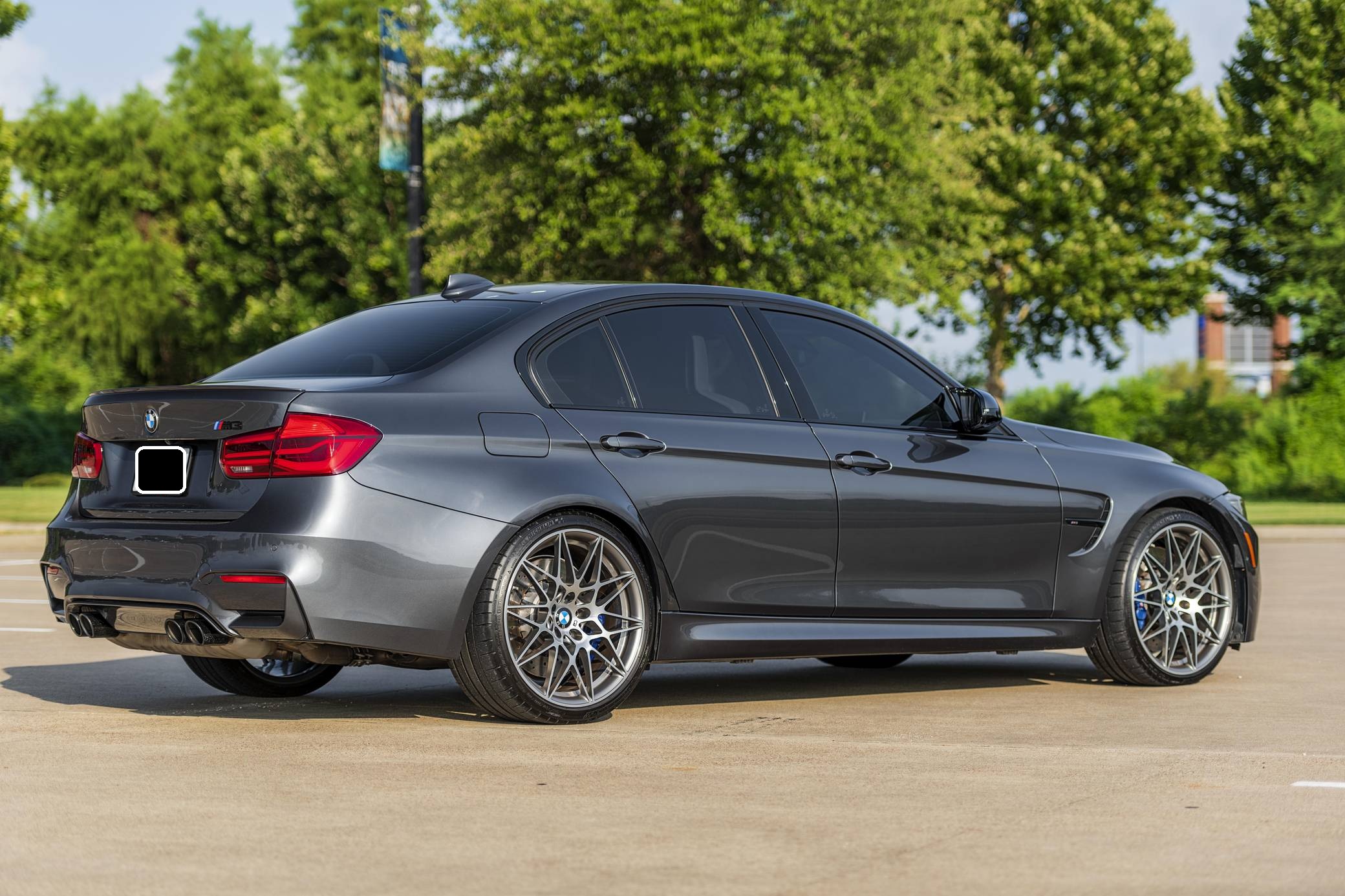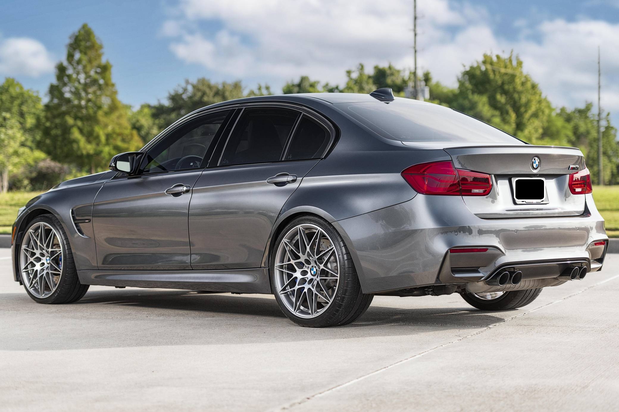2017 BMW M3, finished in Mineral Gray Metallic with a Silverstone interior. According to the digital Monroney Label, this M3 had an original MSRP of $82,370 and came equipped with the Competition, Executive, Driver Assistance Plus, and Lighting packages, a sunroof, extended Merino leather upholstery, a Harman/Kardon surround sound system, and a navigation system. Modifications reported by the seller are limited to an Active Autowerke equal-length mid pipe and tinted windows. The factory mid pipe is included with the sale. BMW's fifth-generation M3 went on sale for the 2015 model year. Based on the "F30" 3 Series, and called "F80" internally, it swapped its predecessor's V8 for a twin-turbocharged straight-6 and picked up more horsepower and a lot more torque along the way. It wore a muscular-looking exterior design and M added a carbon fiber roof panel to keep weight in check. Production ended in 2018. Power comes from an "S55" 3. 0-liter twin-turbocharged inline-6, rated at 444 horsepower and 406 lb-ft of torque. Output is sent to the rear wheels via a 7-speed dual-clutch automatic transmission.