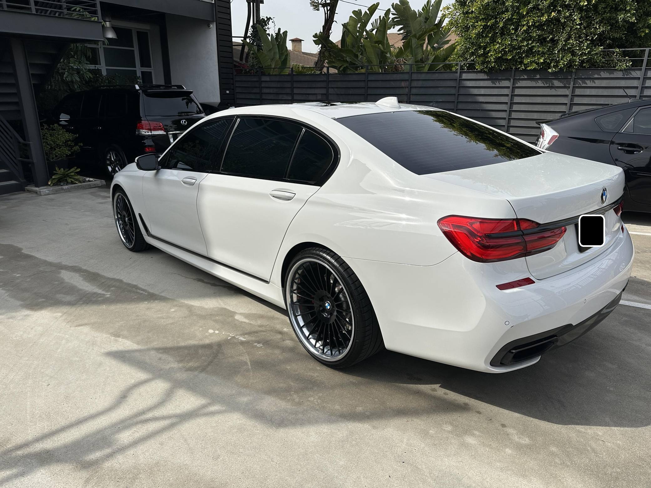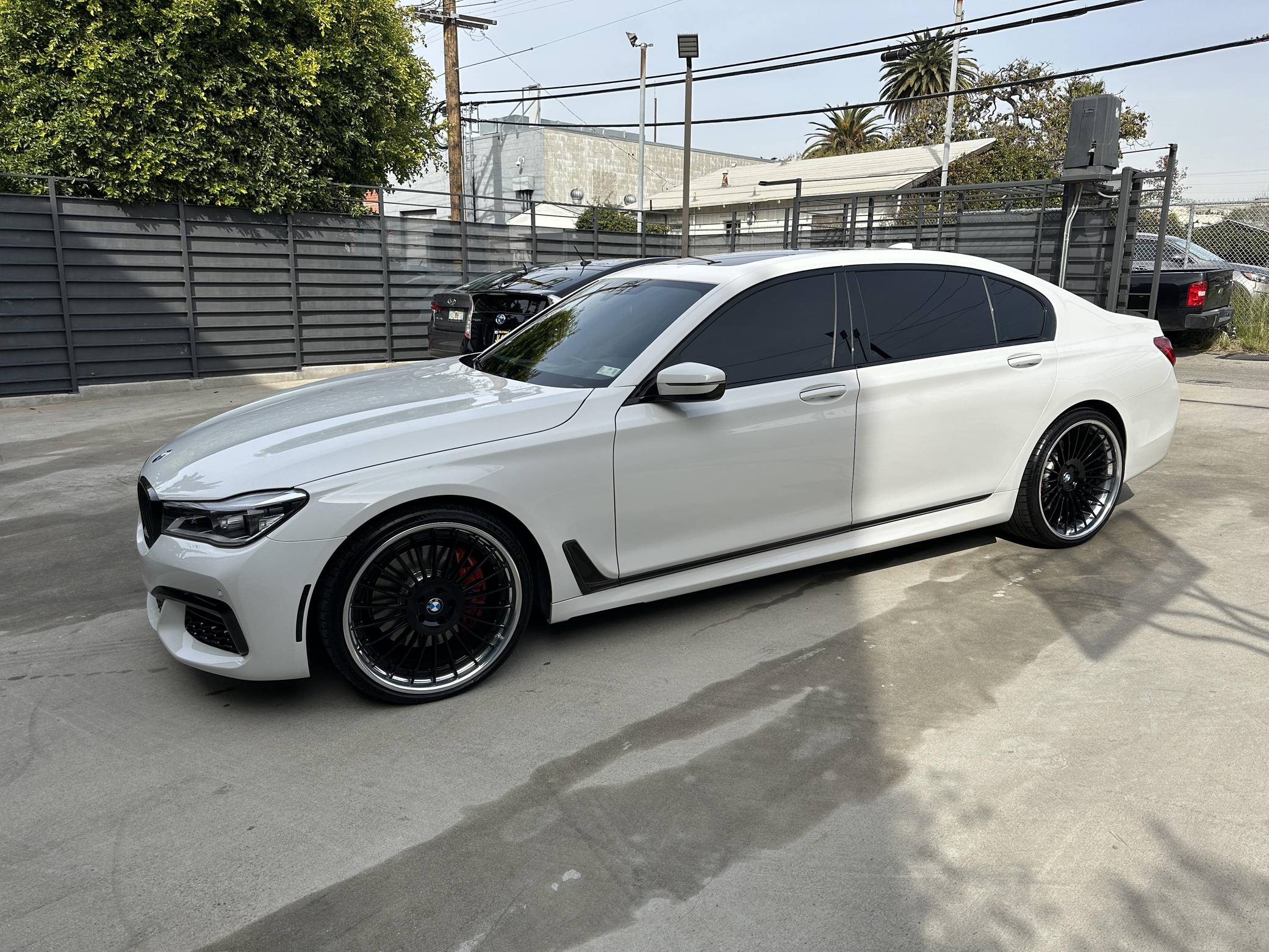 THIS. . . is a 2018 BMW 750i, finished in Alpine White with a Cognac interior. It also confirms that it's been registered in California from new. According to the build sheet provided in the gallery, factory equipment includes the M Sport, Driver Assistance Plus, and Executive packages, adaptive LED headlights, LED fog lights, Nappa leather upholstery, soft-close doors, a wireless device charger, a Bowers & Wilkins surround sound system, and a navigation system, among other features. Modifications reported by the seller include 22-inch RDBLA wheels, aftermarket lowering links, brake calipers painted red, front bumper reflectors tinted, exterior chrome trim wrapped black, window tint, and a rear 750i badge finished in black. BMW released the sixth-generation 7 Series for 2016 with a more chiseled exterior design and a much longer list of technology and luxury features; it was aimed directly at the Mercedes-Benz S-Class, after all. Designed for both drivers and chauffeurs, it weighed less than its predecessor thanks in part to structural elements made with carbon fiber. BMW only sent the long-wheelbase "G12" model to America. Power comes from a 4. 4-liter twin-turbocharged V8, rated at 445 horsepower and 480 lb-ft of torque. Called "N63" internally, it spins the rear wheels via an 8-speed automatic transmission.