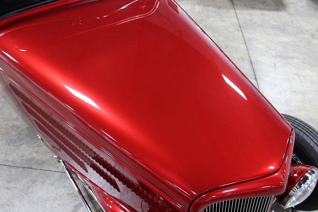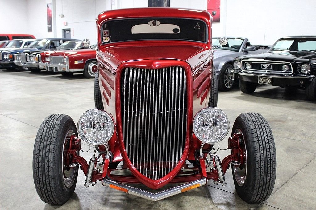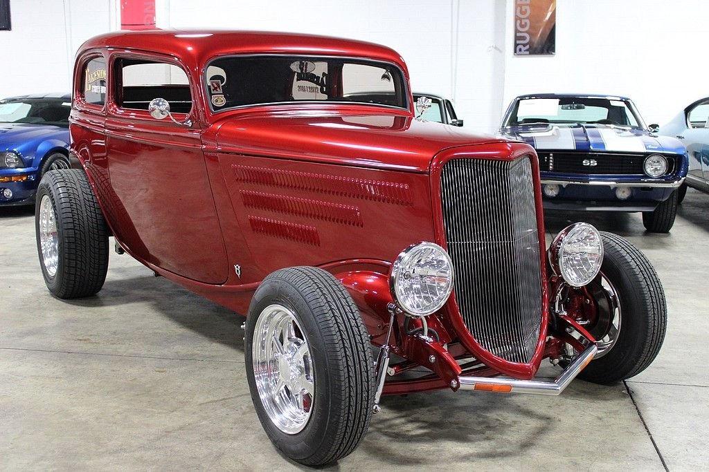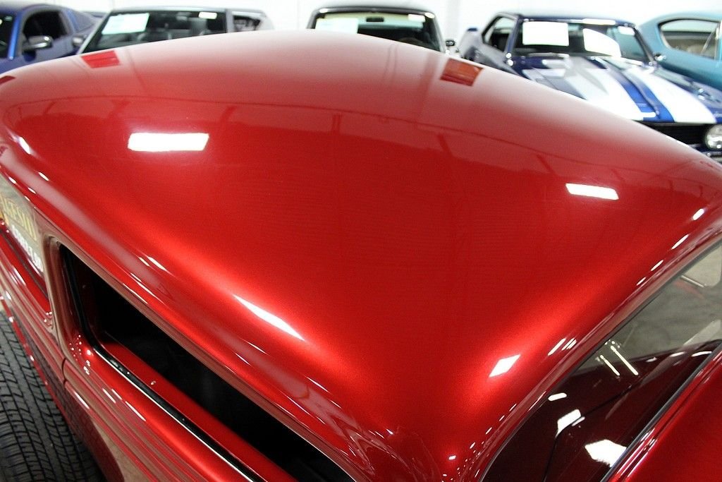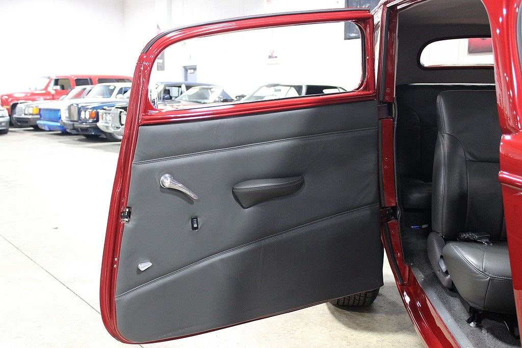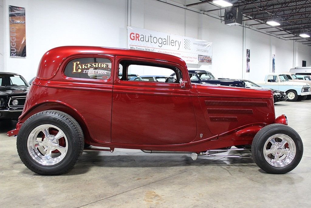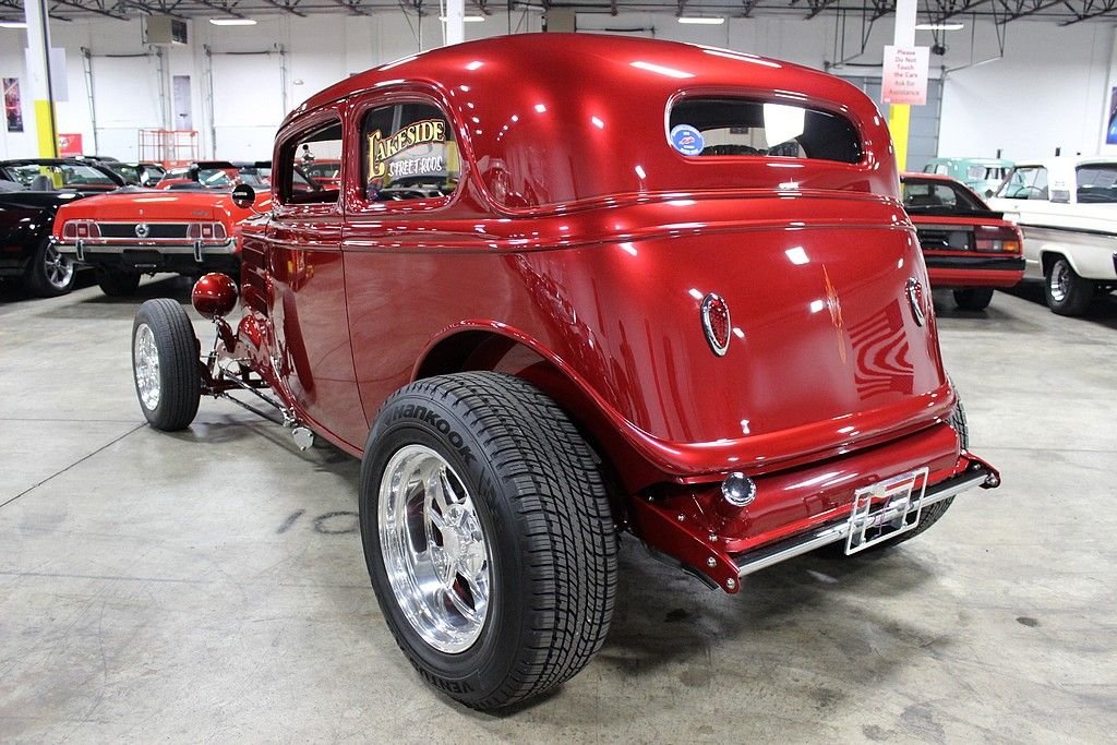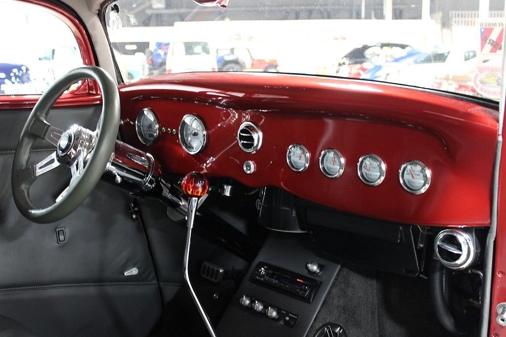 This beauty was built in 2009 and it features a Pete & Jake's frame underneath a Down's fiberglass body with a steel louvered hood, Alumicraft grille, Juliano's 34 clear lens headlights, and bronze tinted glass windows. It is finished in a gorgeous basecoat/clearcoat Inferno Red Crystal Metallic paint color and a complimenting gray leather interior. The car features power brakes with front discs, power windows, power locks, A/C, and heat Under the hood is a 355ci Chevy V8 matted to a 700R4 automatic. The 420hp 355ci was built by Dowker Engines of Charlotte, MI and features RHP aluminum heads, Comp Cams Super Thumper cam, Holley Street Avenger 670cfm carb, K&N air filter with custom painted pinstriping, GM aluminum intake manifold, ball-milled billet aluminum valve covers, Petronix Flame-Thrower Igniter III ignition, shorty ceramic headers, stainless steel Magnaflow exhaust with cutouts done by J&S Automotive in Waterford, MI, and an aluminum radiator with electric fan. There is Super Bell I-Beam front axle and a Currie Ford 9” limited slip live 31 spline rear axle with a 3.90 gear. Additional features include: a RidTech rear coil over suspension with triangulated 4-link trailing arms, chrome Pete & Jake's front shocks, Mullins steering box, and Billet Specialties Vintec polished alloy wheels, The interior features an IDIDIT steering column, Haneline Elite Series gauges, a custom sound system with a custom box that house the Sony AM/FM/CD player, the front speakers, and the A/C switches, a Lokar shifter with custom flame know, EZ wiring harness, and the sale comes with documentation for the engine build, a book of component instructions, fitted car cover with “34 Vicky” custom embroidery, battery tender, and a custom display sign. With just over 12,000 original miles, including a recent road trip out to the Bonneville Salt Flats and back, this beauty was plenty more smile-filled rides ahead of it.