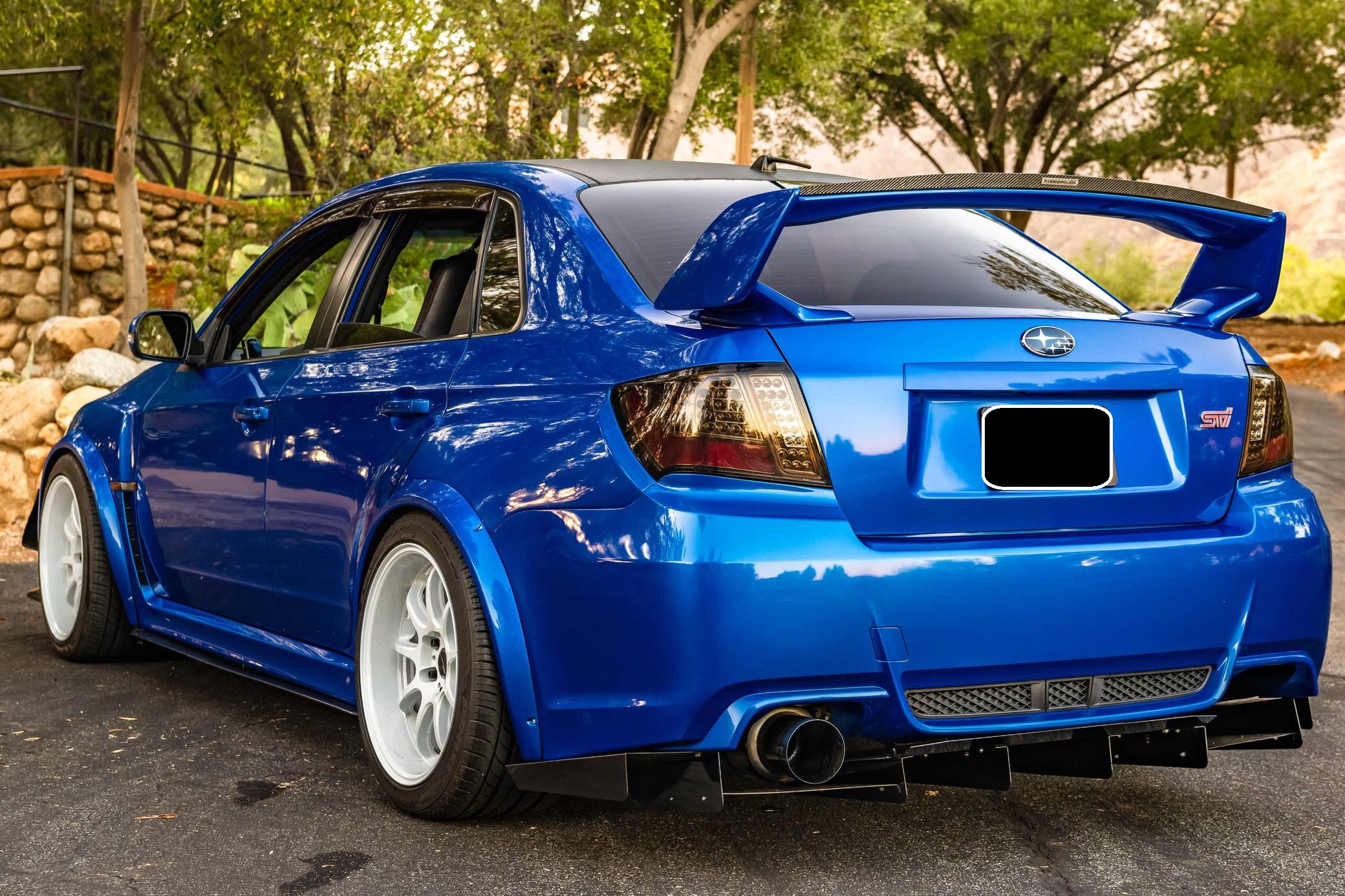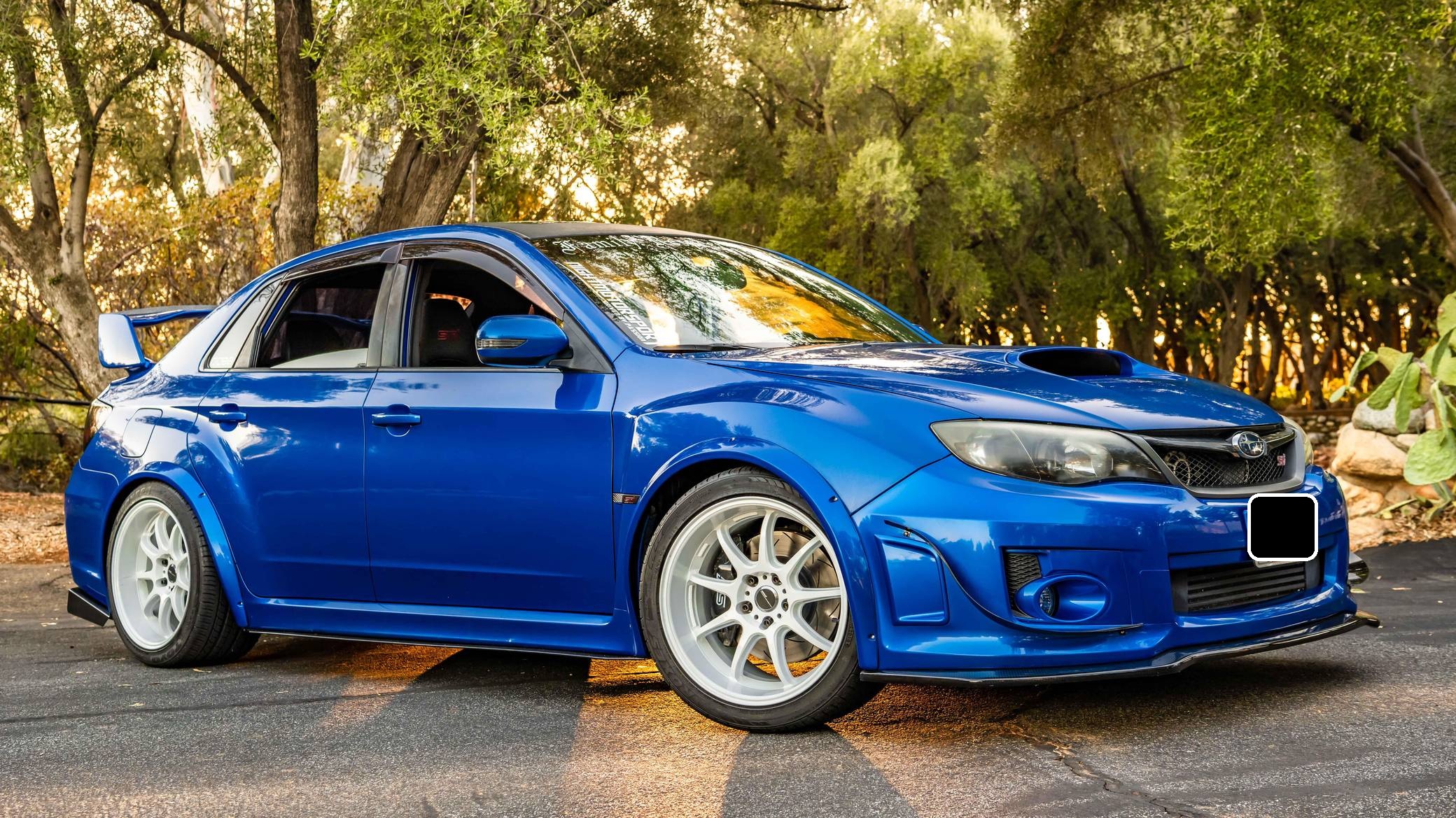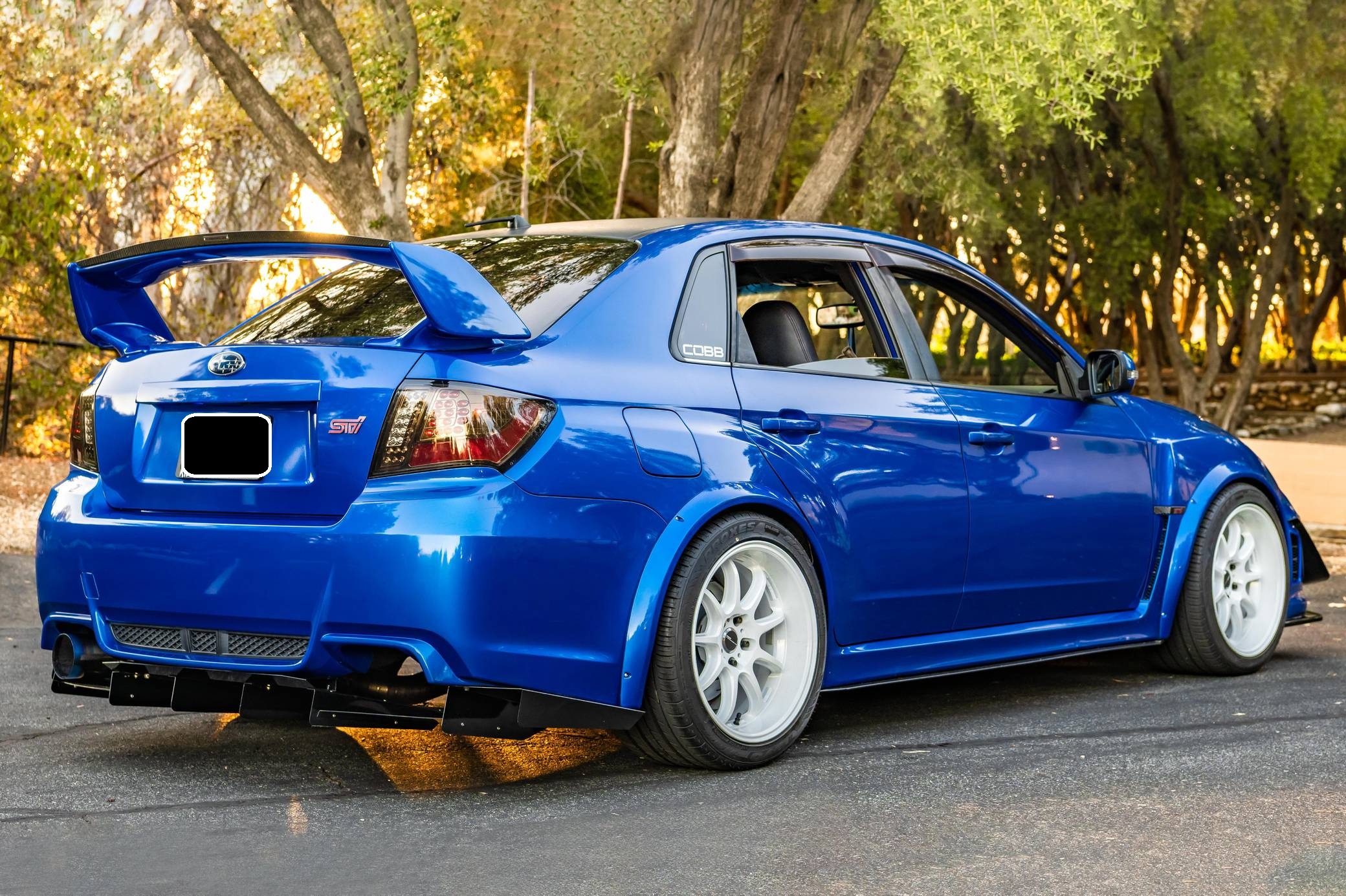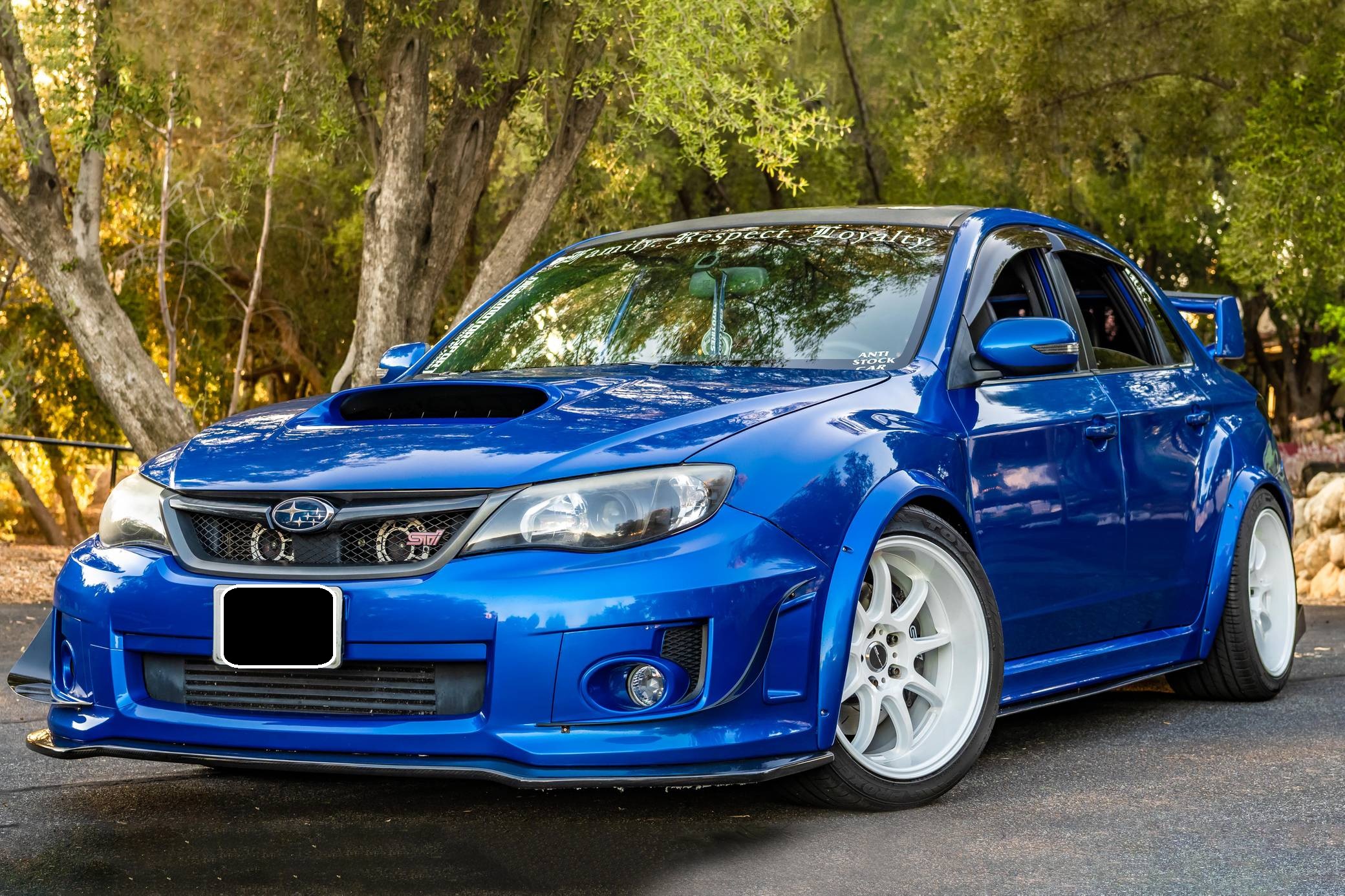 2013 Subaru Impreza WRX STI, finished in World Rally Blue Pearl with a black interior. This STI is equipped with a 6-speed manual transmission. Factory equipment includes Subaru's Symmetrical all-wheel-drive system, Subaru Intelligent Drive (SI-Drive), a Driver Controlled Center Differential (DCCD), front and rear limited-slip differentials, Brembo brake system, a sport-tuned suspension, sunroof, leather upholstery, and more as detailed below. Modifications to this STI are extensive, and the full list is detailed below. include a NightMotorSport Stage 2 forged short block with a semi-closed deck, titanium rods, a Garrett GTX3076R Gen ll turbocharger, a NightMotorSport ECU tune, COBB Tuning V3 Accessport tuner, BC Racing BR coilovers, and 18-inch Work Emotion D9R wheels. Based on the third-generation Impreza, the WRX STI was introduced in the U. S. market in 2008 as the rally-inspired high-performance variant of the model lineup. It featured a larger displacement turbocharged engine, a wider track with flared fenders, and aluminum suspension components. Power comes from an "EJ257" 2. 5-liter turbocharged flat-4 engine, rated at 305 horsepower and 290 lb-ft of torque when left stock. Due to the modifications performed to this STI, it may produce more power, but a dyno sheet was not provided to confirm. Output is sent to all four wheels via a 6-speed manual transmission.