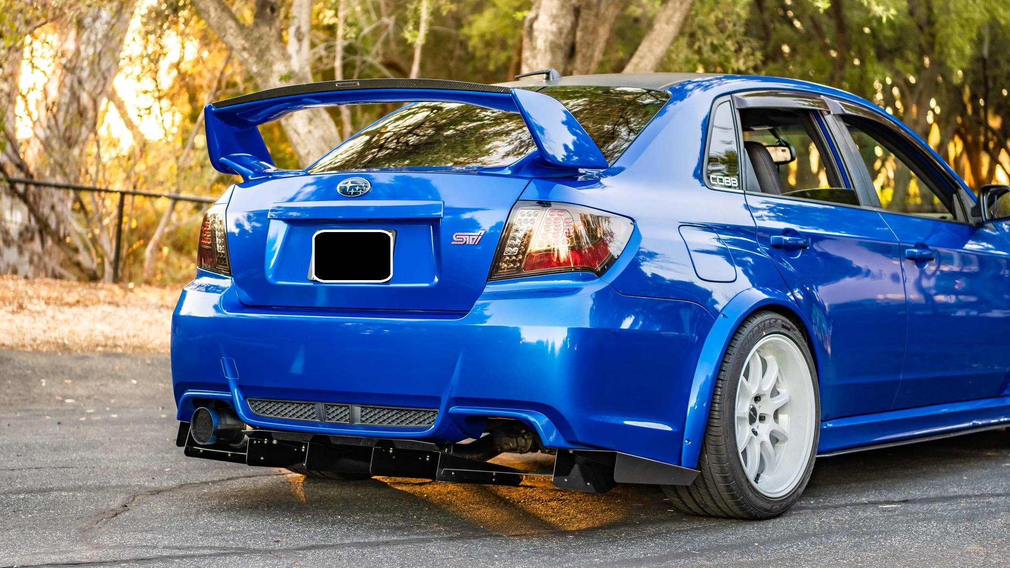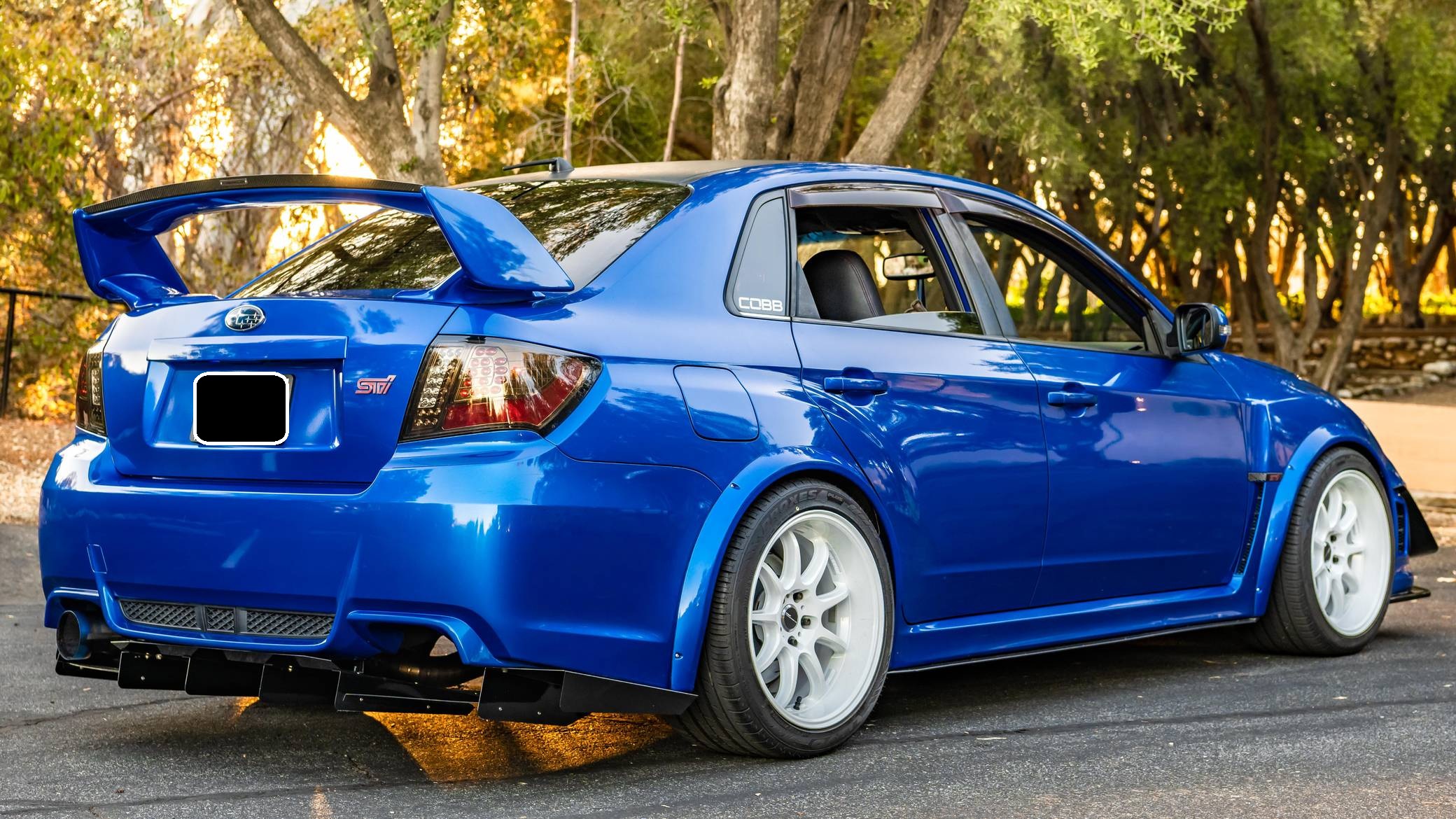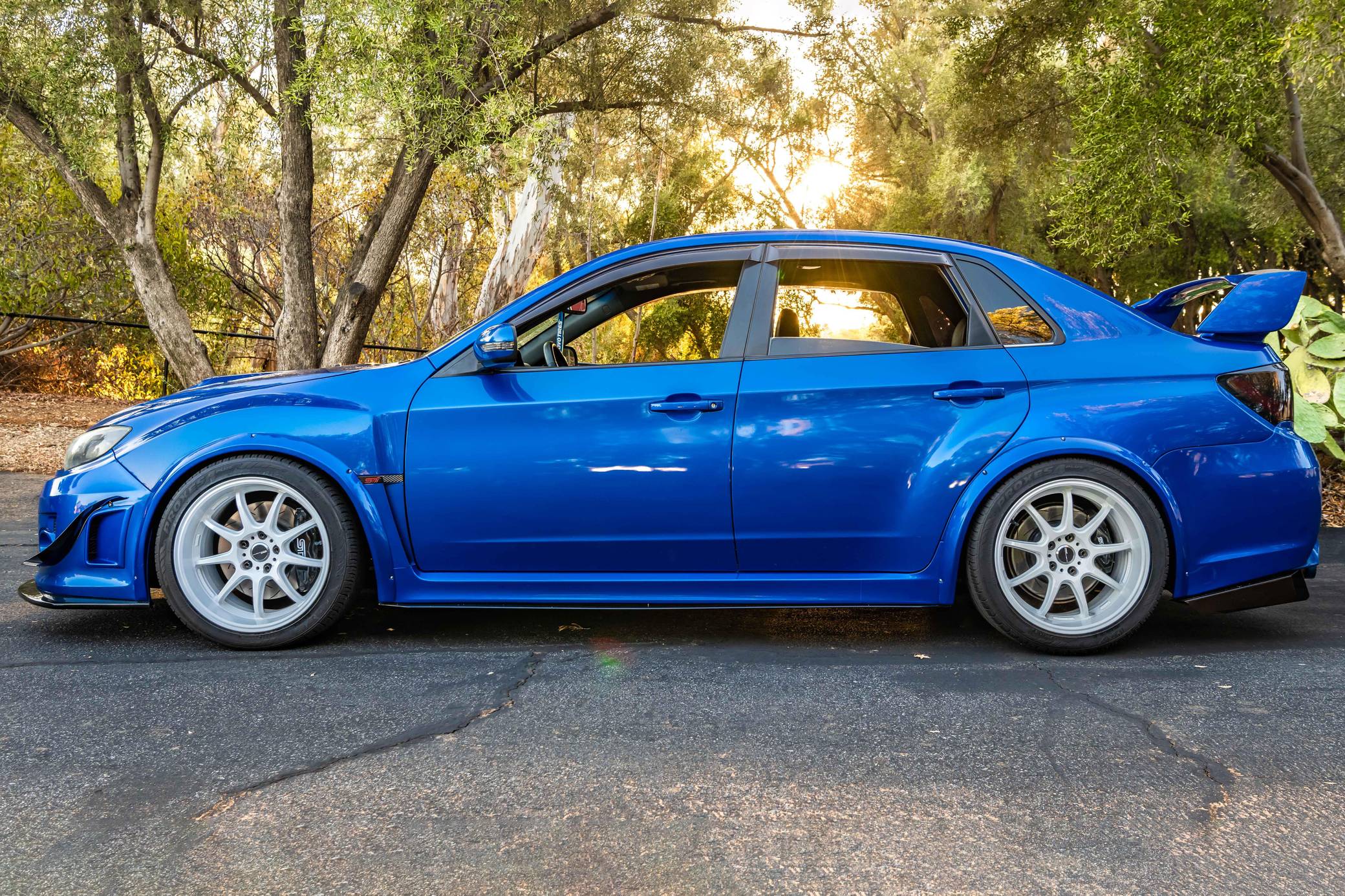 2013 Subaru Impreza WRX STI, finished in World Rally Blue Pearl with a black interior. This STI is equipped with a 6-speed manual transmission. Factory equipment includes Subaru's Symmetrical all-wheel-drive system, Subaru Intelligent Drive (SI-Drive), a Driver Controlled Center Differential (DCCD), front and rear limited-slip differentials, Brembo brake system, a sport-tuned suspension, sunroof, leather upholstery, and more as detailed below. Modifications to this STI are extensive, and the full list is detailed below. include a NightMotorSport Stage 2 forged short block with a semi-closed deck, titanium rods, a Garrett GTX3076R Gen ll turbocharger, a NightMotorSport ECU tune, COBB Tuning V3 Accessport tuner, BC Racing BR coilovers, and 18-inch Work Emotion D9R wheels. Based on the third-generation Impreza, the WRX STI was introduced in the U. S. market in 2008 as the rally-inspired high-performance variant of the model lineup. It featured a larger displacement turbocharged engine, a wider track with flared fenders, and aluminum suspension components. Power comes from an "EJ257" 2. 5-liter turbocharged flat-4 engine, rated at 305 horsepower and 290 lb-ft of torque when left stock. Due to the modifications performed to this STI, it may produce more power, but a dyno sheet was not provided to confirm. Output is sent to all four wheels via a 6-speed manual transmission.