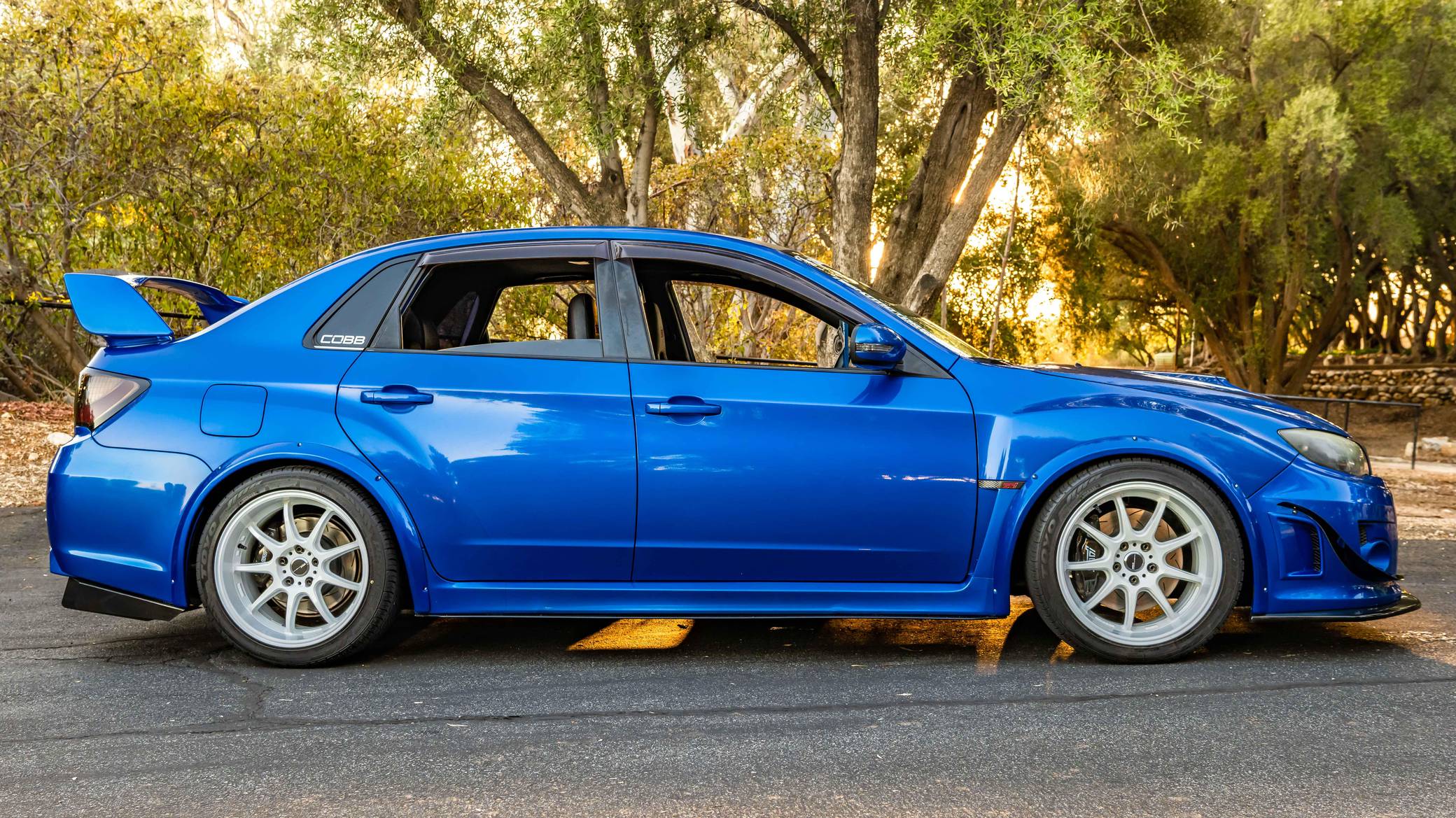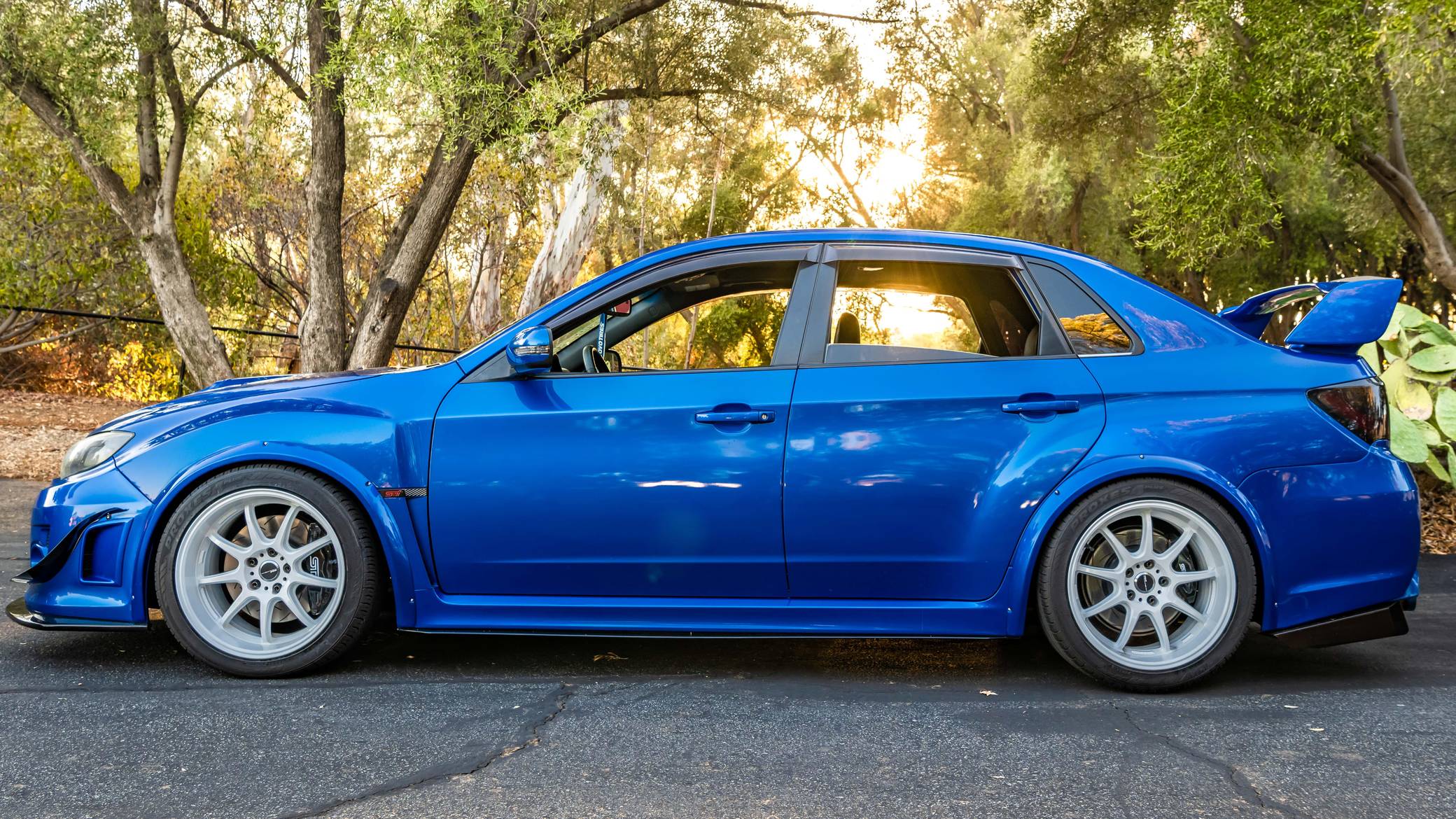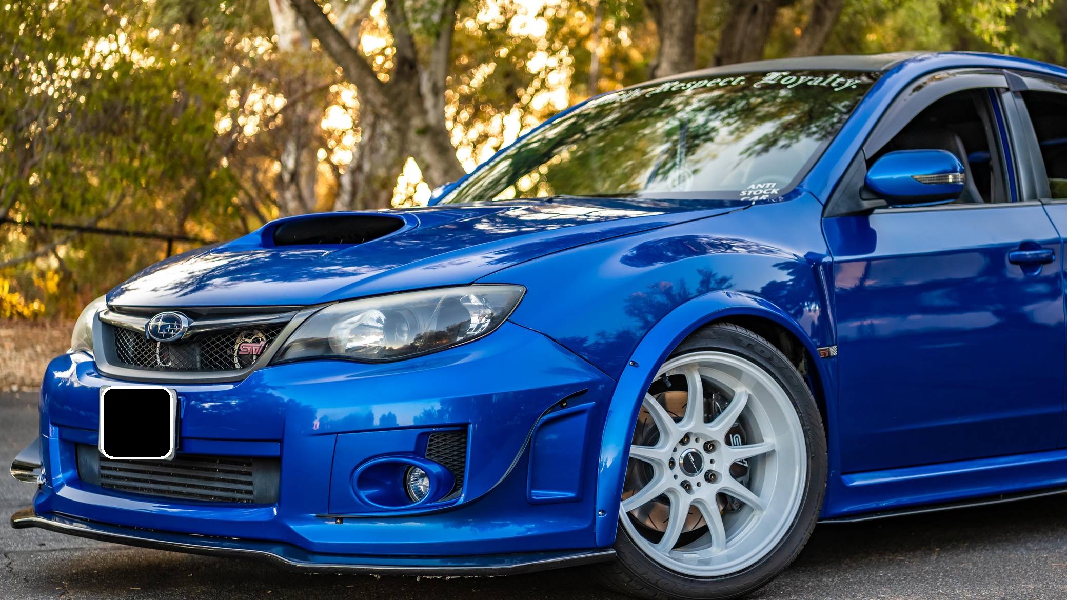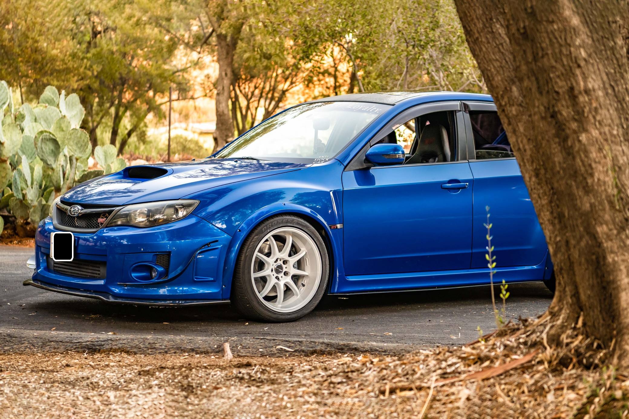 2013 Subaru Impreza WRX STI, finished in World Rally Blue Pearl with a black interior. This STI is equipped with a 6-speed manual transmission. Factory equipment includes Subaru's Symmetrical all-wheel-drive system, Subaru Intelligent Drive (SI-Drive), a Driver Controlled Center Differential (DCCD), front and rear limited-slip differentials, Brembo brake system, a sport-tuned suspension, sunroof, leather upholstery, and more as detailed below. Modifications to this STI are extensive, and the full list is detailed below. include a NightMotorSport Stage 2 forged short block with a semi-closed deck, titanium rods, a Garrett GTX3076R Gen ll turbocharger, a NightMotorSport ECU tune, COBB Tuning V3 Accessport tuner, BC Racing BR coilovers, and 18-inch Work Emotion D9R wheels. Based on the third-generation Impreza, the WRX STI was introduced in the U. S. market in 2008 as the rally-inspired high-performance variant of the model lineup. It featured a larger displacement turbocharged engine, a wider track with flared fenders, and aluminum suspension components. Power comes from an "EJ257" 2. 5-liter turbocharged flat-4 engine, rated at 305 horsepower and 290 lb-ft of torque when left stock. Due to the modifications performed to this STI, it may produce more power, but a dyno sheet was not provided to confirm. Output is sent to all four wheels via a 6-speed manual transmission.
