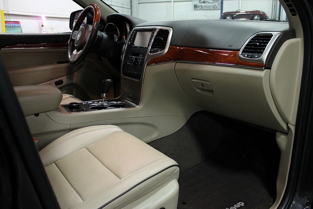 The Overland edition is the top of the line trim package for the mid-size SUV offering from Jeep. These sport utilities are not just grocery getters, but maintain the Jeep name with great go anywhere performance in any weather and road condition. Yet with this performance there is zero sacrifice of luxury. This SUV comes fully loaded delivering everything you would want from an SUV . This Grand Cherokee Overland 4x4 is a one-owner vehicle in excellent condition. It comes fully loaded and is powered by a HEMI 5.7L V8 and automatic transmission. This SUV is loaded featuring leather seats, heated front & rear seats, cooled front seats, multiple power outlets, cruise control, Bluetooth phone, dual zone climate control, auxiliary input, navigation, rear backup camera, heated steering wheel, and multiple 4-wheel drive settings. This SUV is a great driver and a great vehicle for all twelve months of the year.