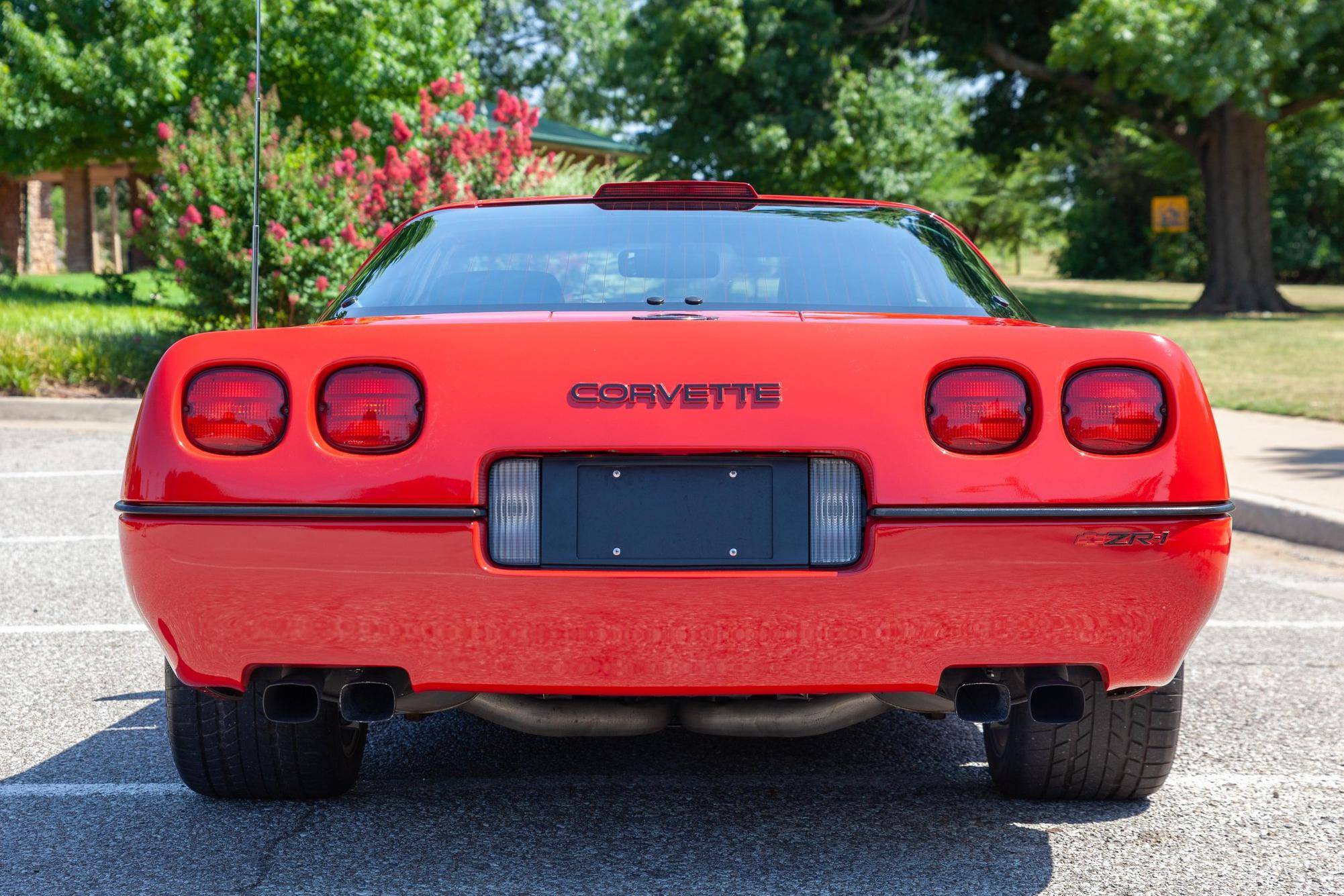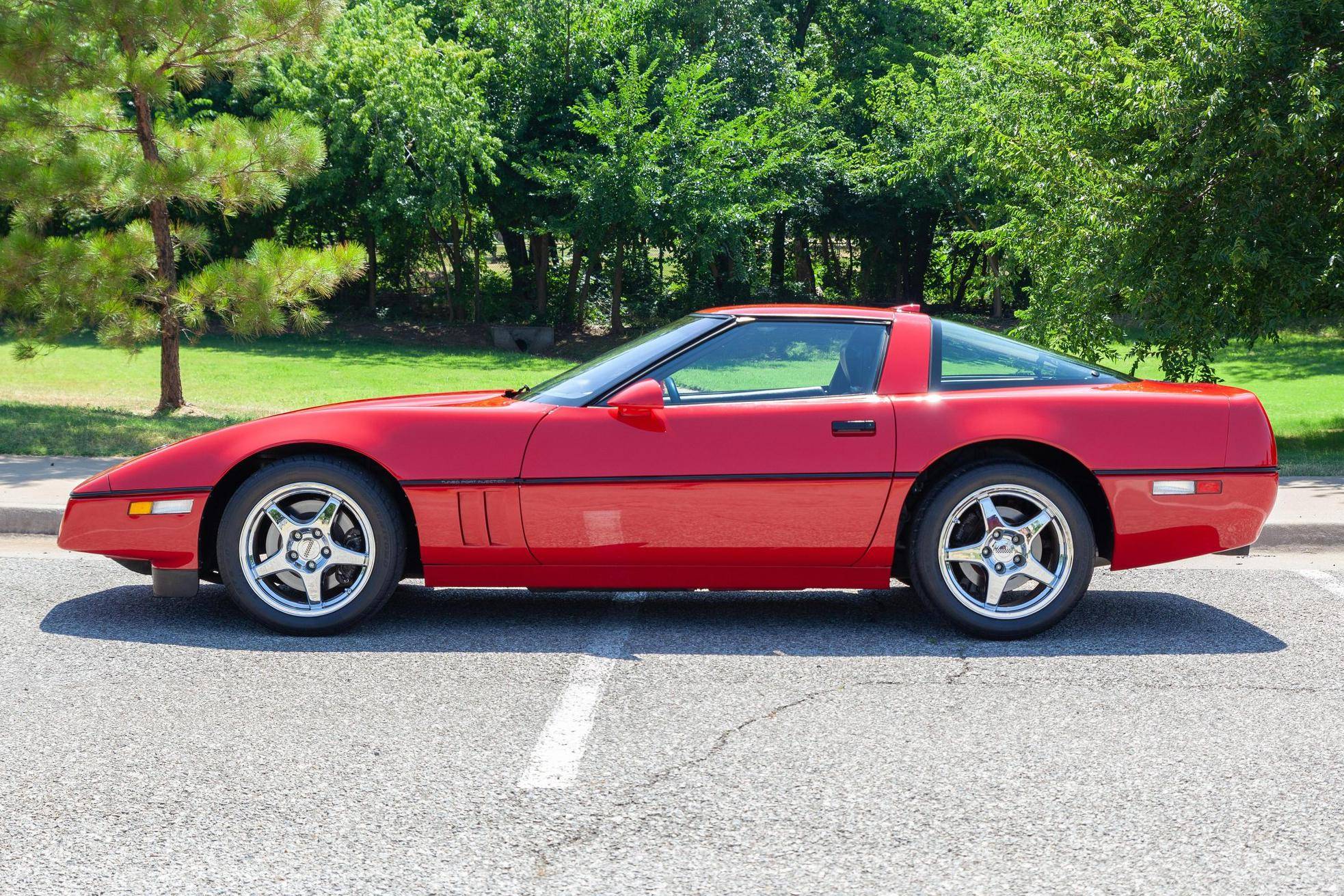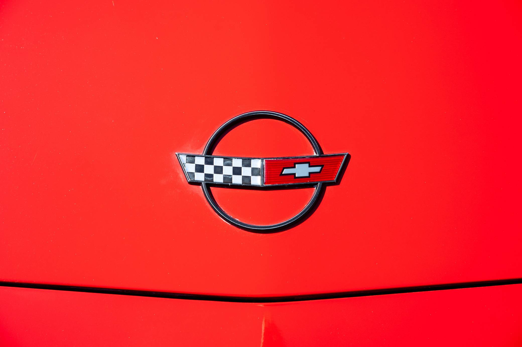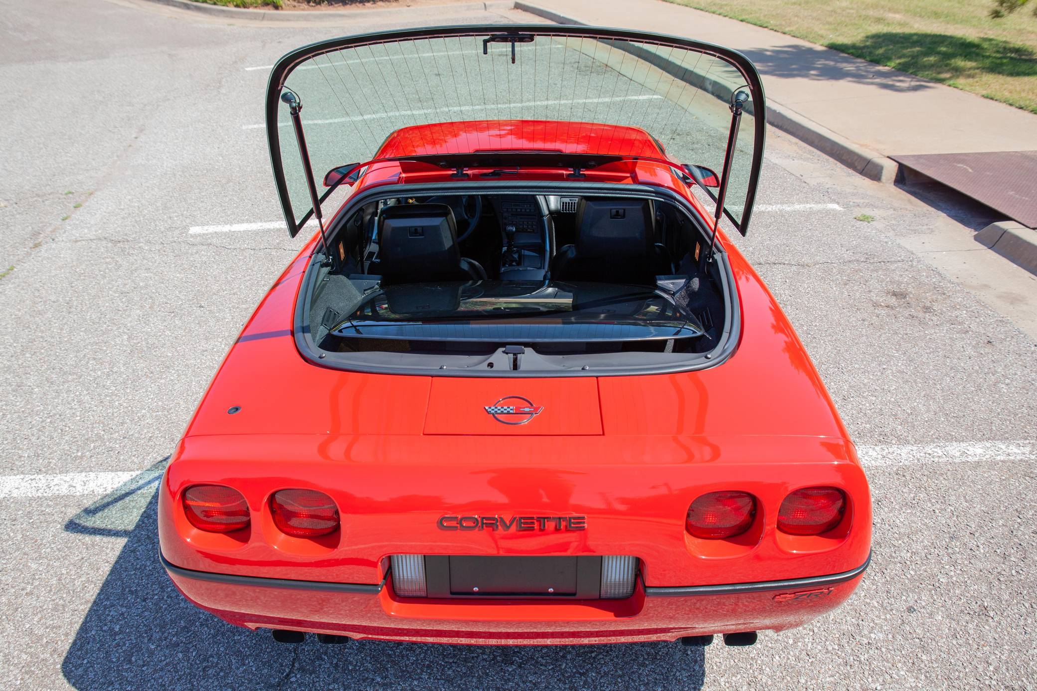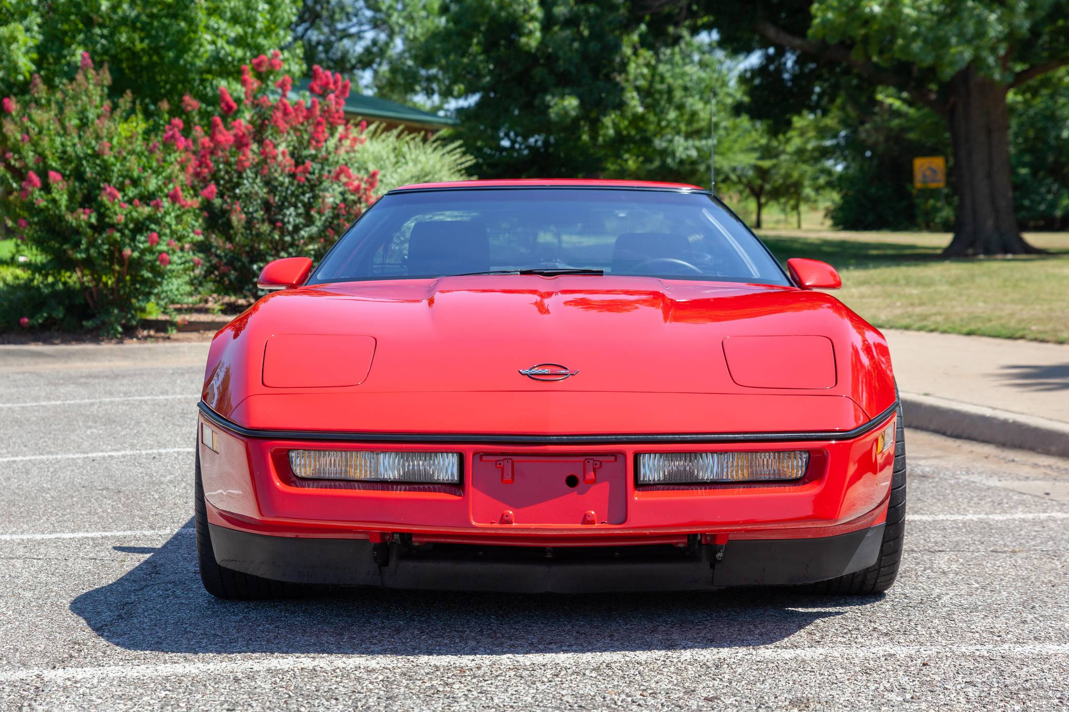 1990 Chevrolet Corvette ZR-1, finished in Torch Red with a black interior. This ZR-1 is equipped with a 6-speed manual transmission, and its odometer currently indicates approximately 12,200 miles. Equipment includes Selective Ride Control suspension system, a limited-slip differential, a ZR-1-specific body kit, pop-up headlights, glass and body-colored removable roof panels, leather upholstery, automatic climate control, and a Delco/Bose sound system. Modifications reported by the seller are limited to a set of 17-inch C4 Grand Sport wheels, a stitched leather steering wheel cover, and an R-134a A/C system conversion. The original Corvette ZR-1 based on the C4 was codenamed "King of the Hill" while it was in development. Developed with Lotus under GM's ownership, the ZR-1 was positioned to compete with more expensive supercars from the likes of Ferrari and Lamborghini. It was a successful experiment with unanimous praise from the automotive press of the period as one of the best American sports cars to date. Power comes from an "LT5" 5. 7-liter twin-cam V8, rated at 380 horsepower and 370 lb-ft of torque. Output is directed to the rear wheels through a 6-speed manual transmission.
