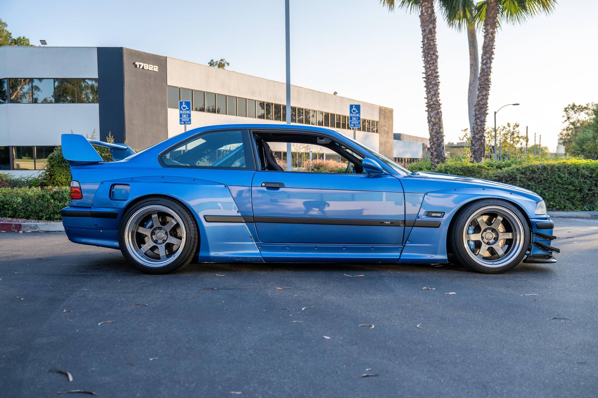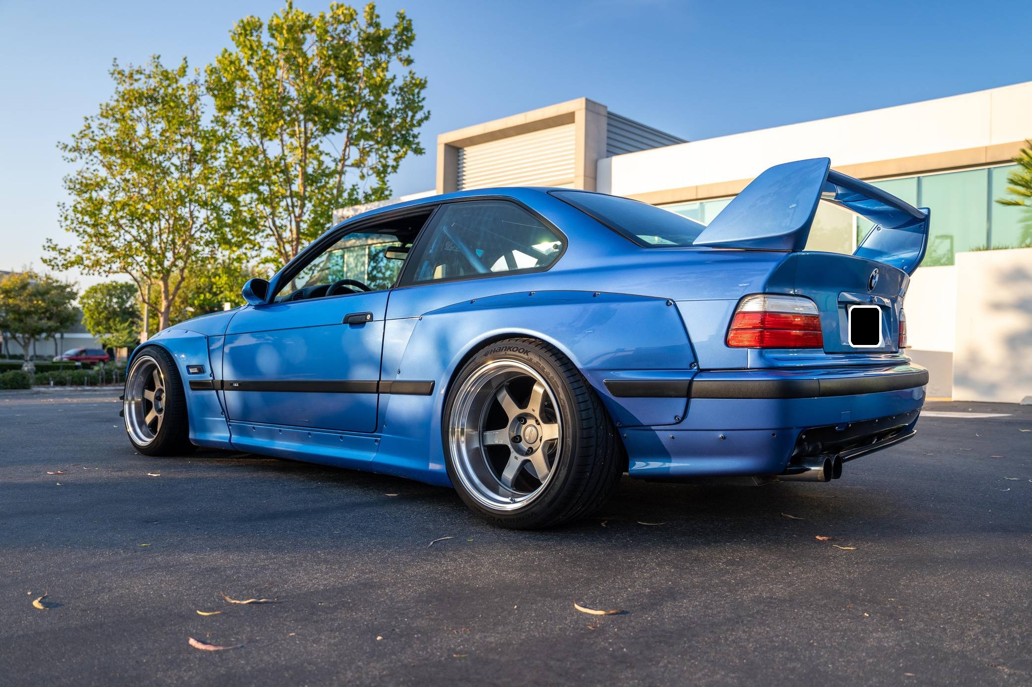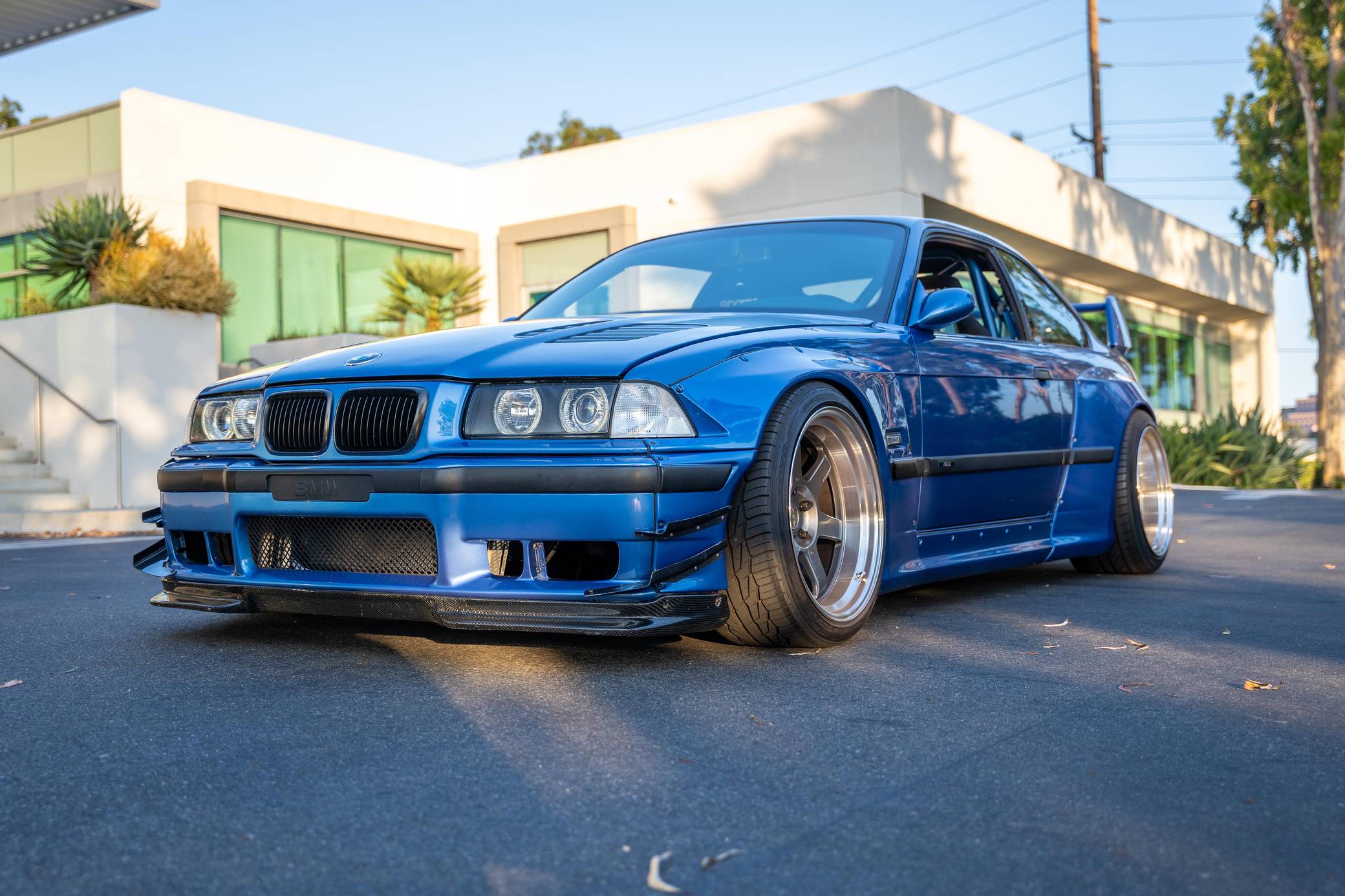 1997 BMW M3, finished in Estoril Blue Metallic with a black interior. This coupe is equipped with the desirable 5-speed manual transmission. Reportedly built for the 2016 SEMA show, this M3 is fitted with a VF Engineering supercharger kit, an Active Autowerke exhaust system after the catalytic converters, 18-inch Volk Racing TE37 wheels, an Air Lift Company 3P air suspension system, a Pandem USA wide-body kit, several DTM Fiberwerkz parts, and Sparco EVO QRT large racing front seats, among other aftermarket parts. More details about the modifications performed to this M3 are provided below, and some of the removed factory parts are shown in the gallery and included in the sale. BMW introduced the E36-generation M3 to the U. S. market as a coupe for the 1995 model year, and it expanded the range with a sedan and a convertible in 1997 and 1998, respectively. The second-generation M3 was bigger than its predecessor, the E30-based model, but it offered 6-cylinder power while retaining the engaging handling synonymous with the M3 nameplate. Power comes from a 3. 2-liter supercharged straight-6, rated at 240 horsepower and 236 lb-ft of torque when left stock. VF Engineering states that the modifications increase horsepower to about 330 at the wheels but a dyno sheet is not available. Called "S52" internally, the engine spins the rear wheels via a 5-speed manual transmission and a limited-slip differential.
