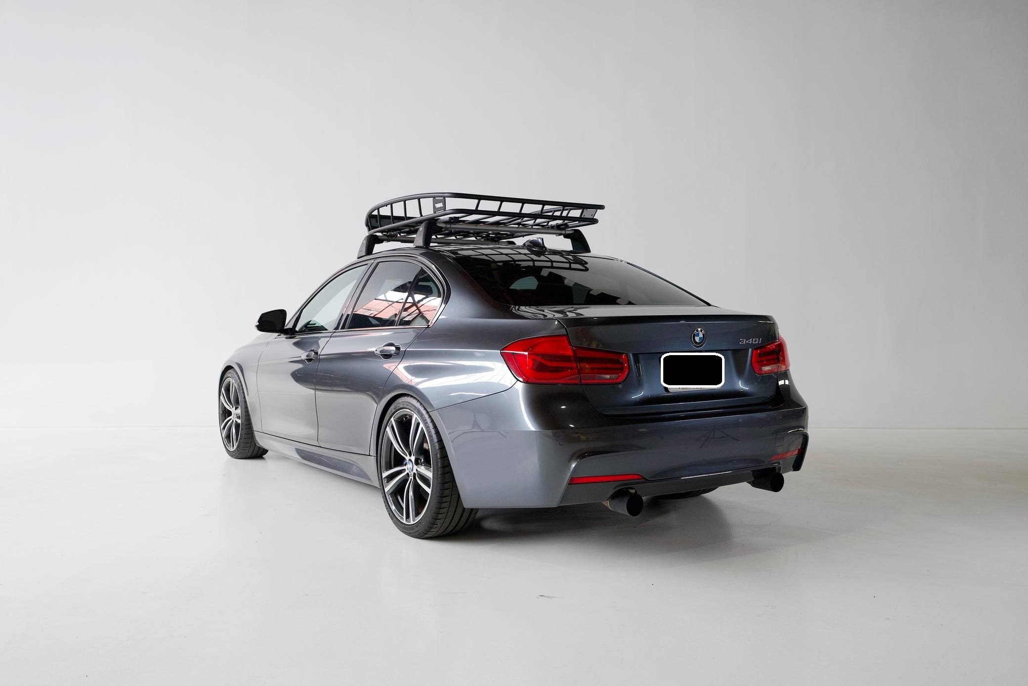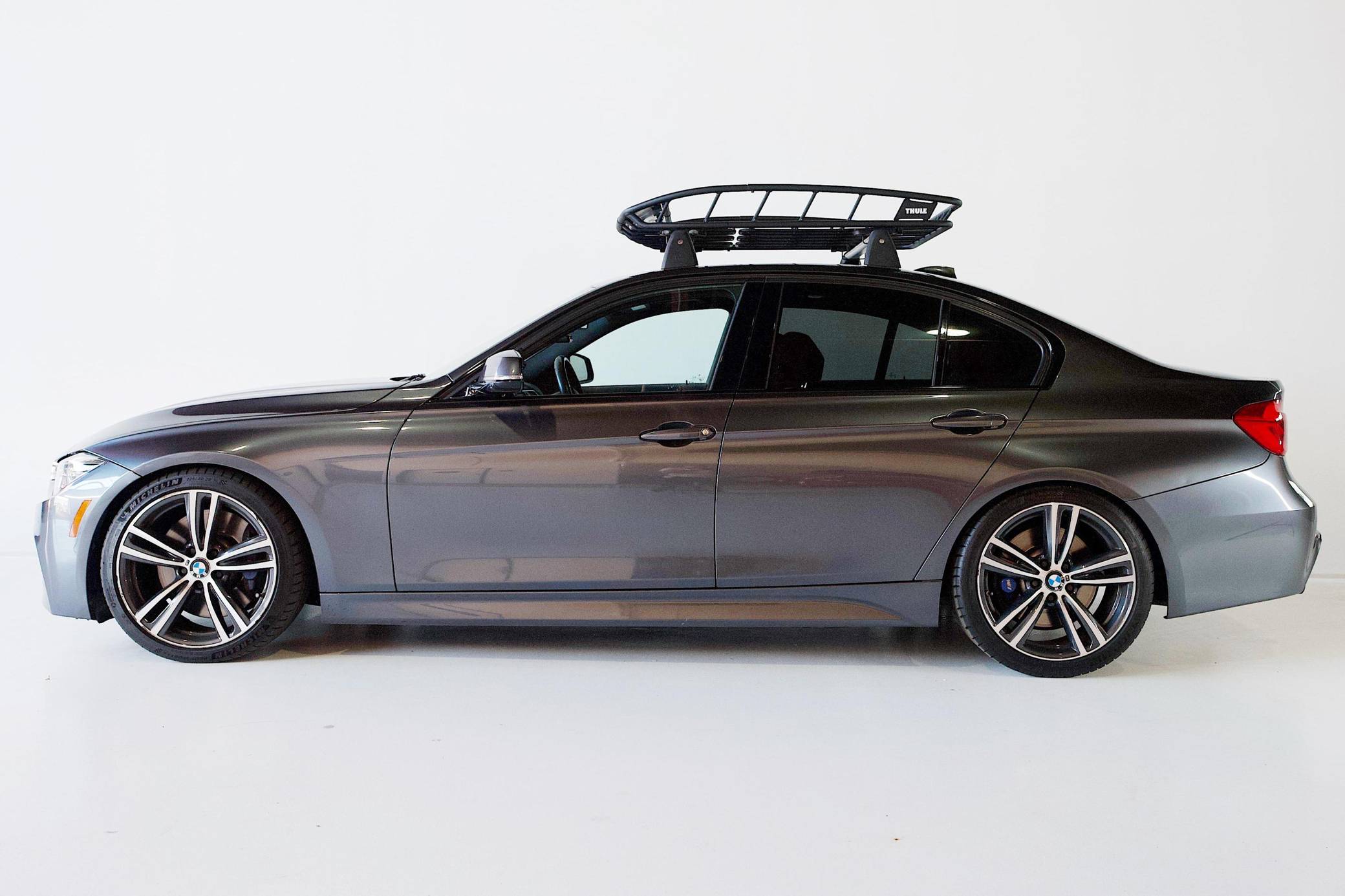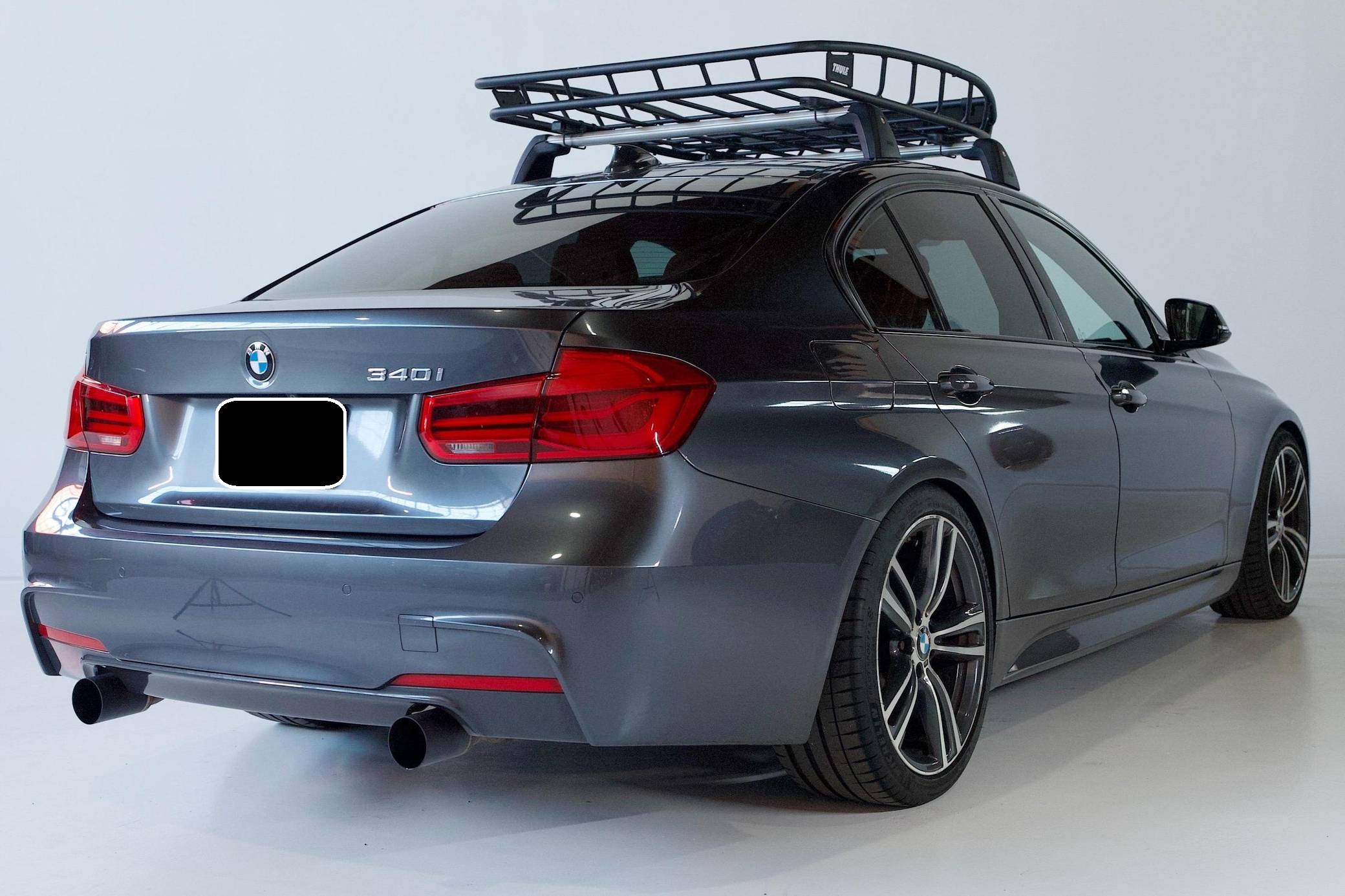 2017 BMW 340i Sedan, finished in Mineral Grey Metallic with a Saddle Brown interior. This 340i is equipped with the desirable 6-speed manual transmission. Factory equipment on this 340i includes the M Sport Package, M Sport brakes, LED headlights, a sunroof, power-adjustable front seats, automatic climate control, and a CD player, among others listed below. Modifications reported by the seller include Dinan lowering springs, a Dinan axle-back exhaust, a hard-wried Uniden R3 radar detector, window tint, and a Thule roof basket. BMW launched the sixth-generation 3 Series for the 2012 model year. Called "F30" internally, it was slightly bigger than its predecessor, and it offered buyers a much more up-to-date interior. 2016 brought a mid-cycle update that included subtle styling tweaks, a widely praised redesigned suspension, and changes to the steering system. Power comes from a "B58B30" 3. 0-liter turbocharged inline-6, rated at 320 horsepower and 330 lb-ft of torque. It spins the rear wheels via a 6-speed manual transmission.