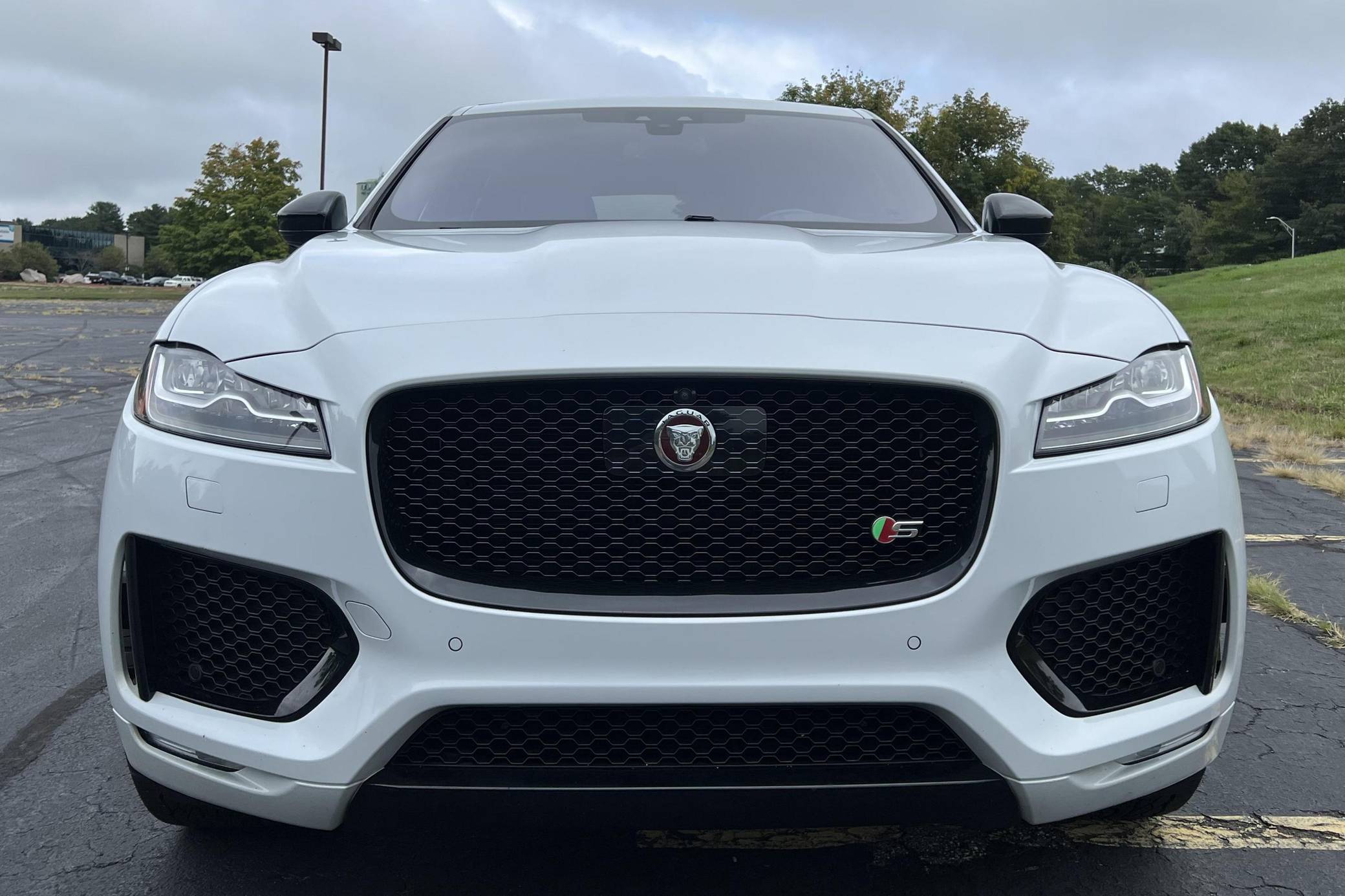 THIS… is a 2017 Jaguar F-Pace S, finished in Glacier White with a black interior. Factory equipment includes 22-inch black-painted alloy wheels, adaptive dynamics with configurable dynamic mode, a panoramic sunroof, 14-way heated and cooled front "S" sport seats, heated and cooled rear seats, a 380-watt Meridian sound system, head-up display. The seller reports no modifications. Launched for 2017, the F-Pace offers the luxury and the performance that buyers expect from a Jaguar in an SUV package; it was the firm's first entry into the segment. Engineers relied extensively on aluminum to keep weight in check and to improve handling, which is a big part of what allows the F-Pace to avoid stepping on Land Rover's toes. Production continues in 2022. Power comes from a supercharged 3. 0-liter V6 engine, rated at 380 horsepower and 332 lb-ft of torque. Output is sent to all four wheels via an 8-speed automatic transmission.
