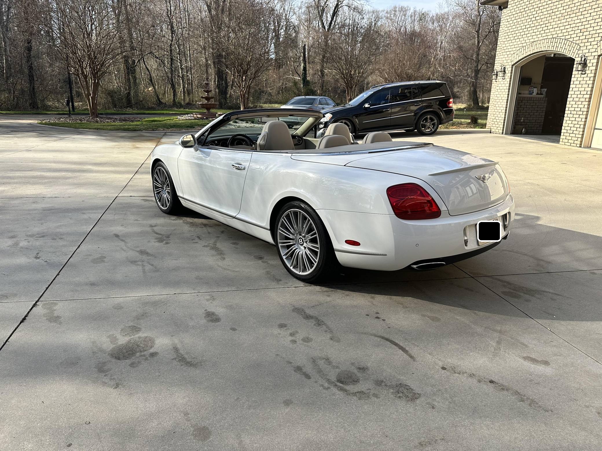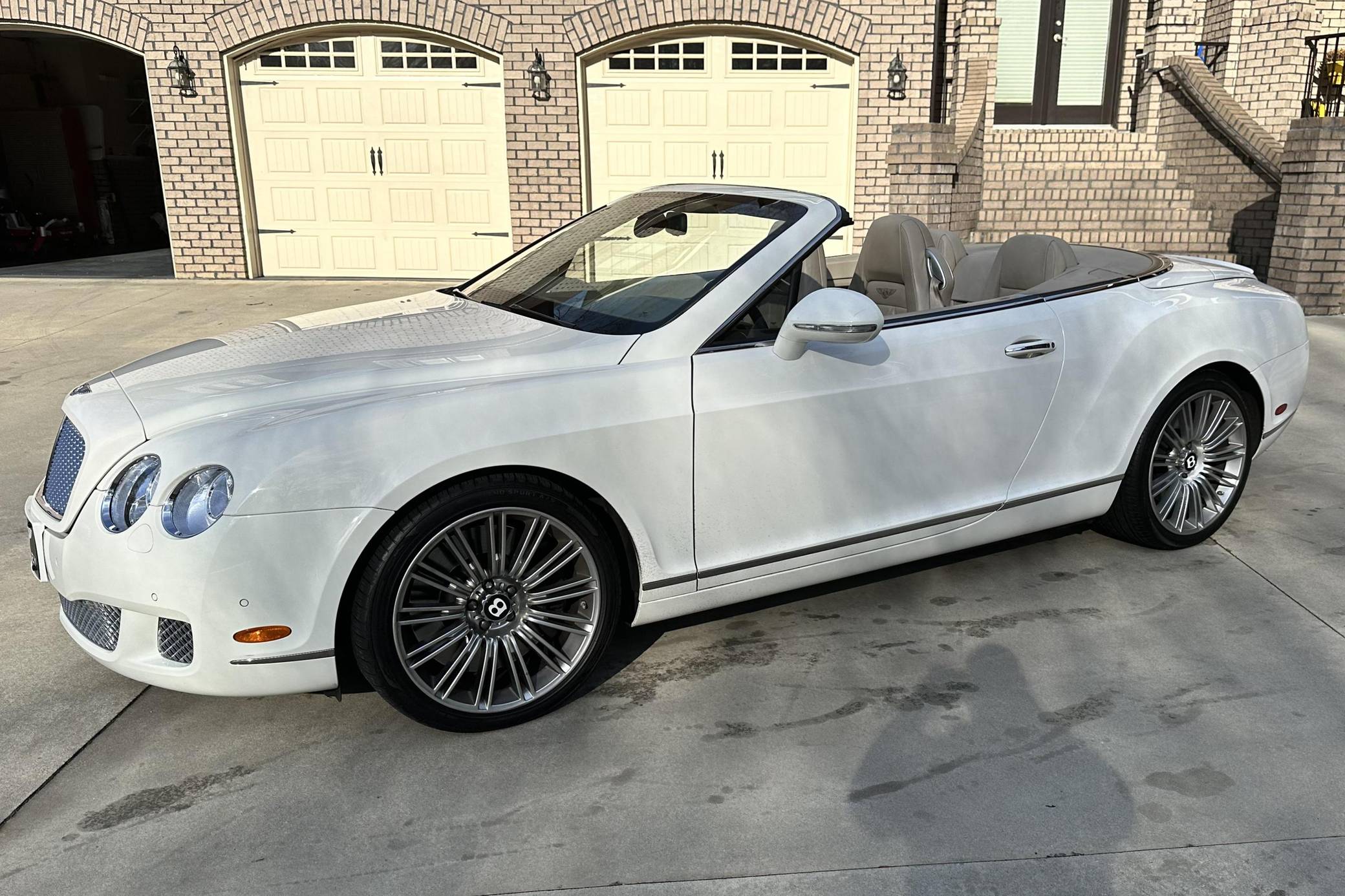 THIS… is a 2010 Bentley Continental GTC Speed, finished in white with a black soft top and a beige interior. Factory equipment includes 20-inch alloy wheels, bi-xenon headlights, LED taillights, an air suspension system, leather upholstery with diamond-quilting on the seats, wood interior trim, front and rear parking sensors, and a Naim sound system. The seller reports no modifications. The Bentley Continental GT was unveiled in 2003 for the 2004 model year, with the GTC convertible following in 2006. It was Bentley's first car to launch under the ownership of the Volkswagen Group and allowed Bentley to mass-produce the Continental GT and reach a wider customer base upon launch. Journalists praised the new Continental GT for its build quality, comfort, and performance. Power comes from a 6. 0-liter twin-turbocharged W12, rated at 600 horsepower and 553 lb-ft of torque. Output is sent to all four wheels via a 6-speed automatic transmission.