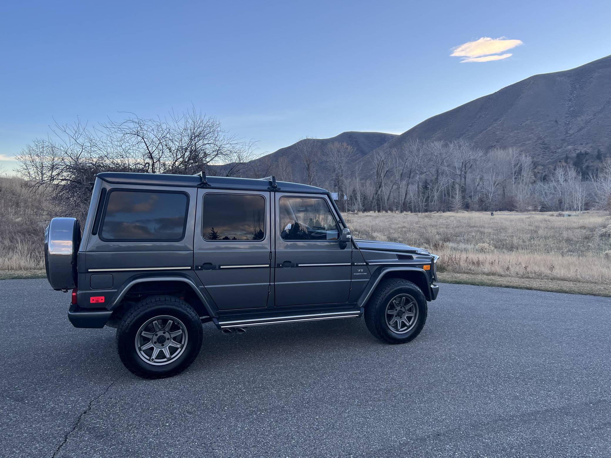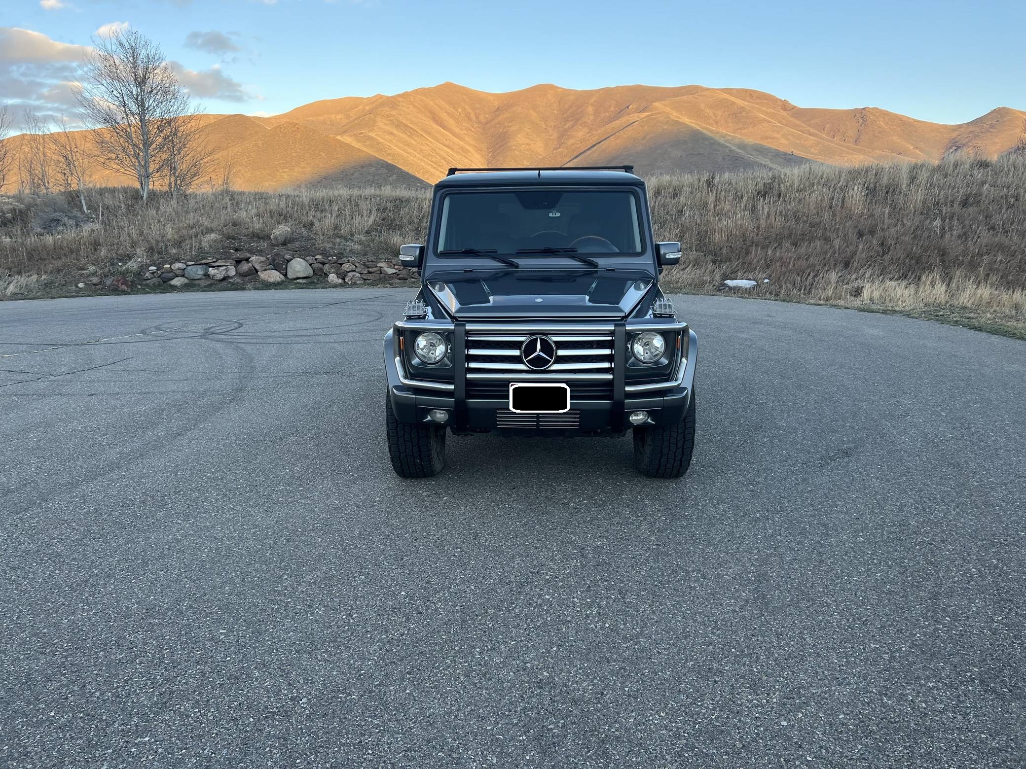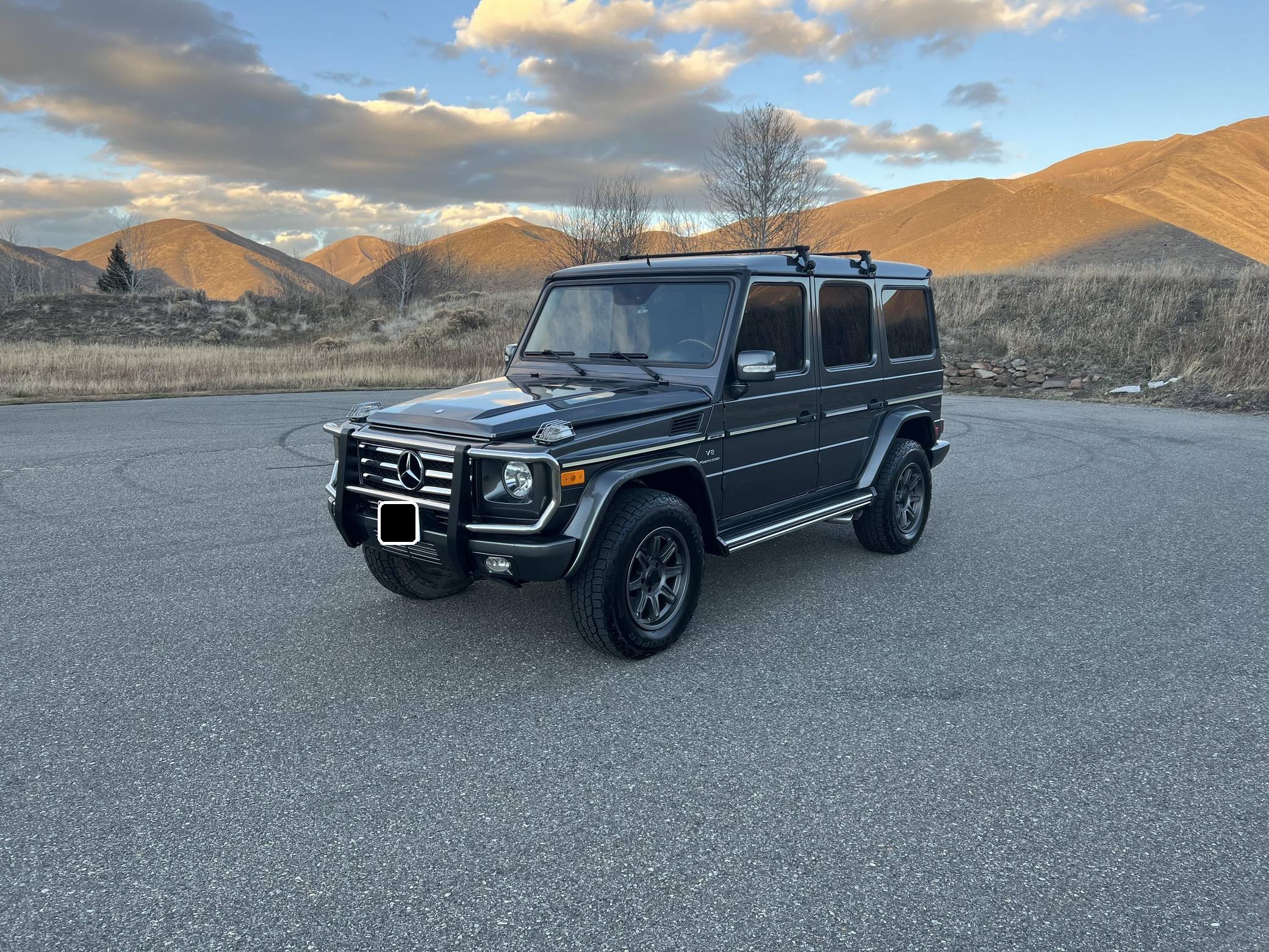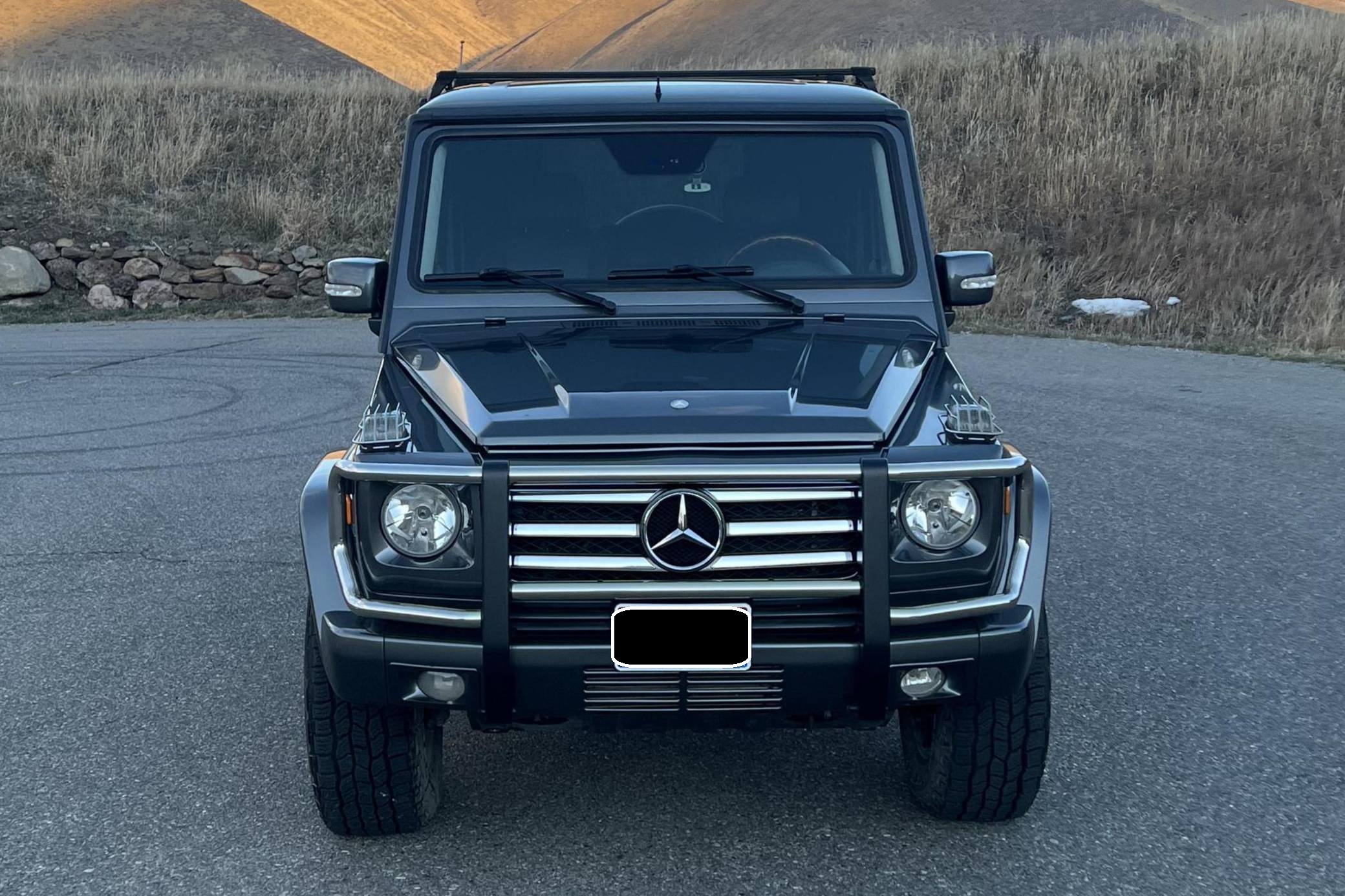 2005 Mercedes-Benz G55 AMG, finished in Designo Graphite Metallic with a black interior. Factory equipment includes fog lights, tinted windows, a sunroof, wood interior trim, heated front and rear seats, and rear parking sensors. This G55's build sheet is pictured in the gallery. Modifications reported by the seller include 18-inch ALPHAequipt Command wheels, a 2-inch suspension lift, tinted windows, a folding third-row seat installed in the trunk. Invoices pictured in the gallery detail some of the repairs and maintenance performed on this G55 in 2021. The list of parts replaced includes the valve cover gaskets and the rear brake pads and rotors. Mercedes-Benz joined forces with Steyr-Daimler-Puch to create the original G-Class (W460). It was released in 1979 and aimed largely at farmers, soldiers, and adventurers; Beverly Hills wasn't on the company's radar yet. The G's upmarket ascent started when the extensively updated W463 arrived in 1990. It looked a lot like the original G, so it embodied a function-over-form approach to design, but it gained a longer list of features and a permanent 4-wheel-drive system. Civilian production ended in 2018. Power comes from a 5. 4-liter supercharged V8, rated at 469 horsepower and 516 lb-ft of torque. Called "M113K", it spins the four wheels via a 5-speed automatic transmission and triple locking differentials.