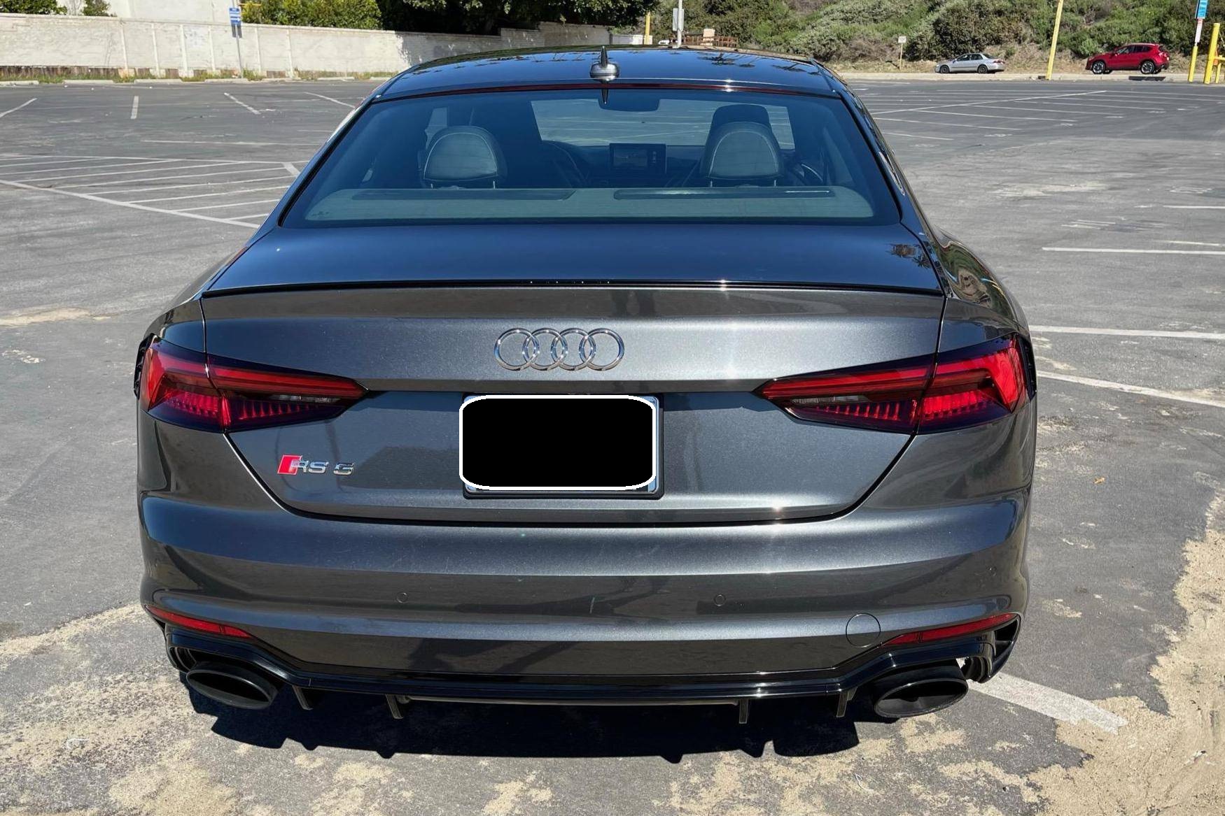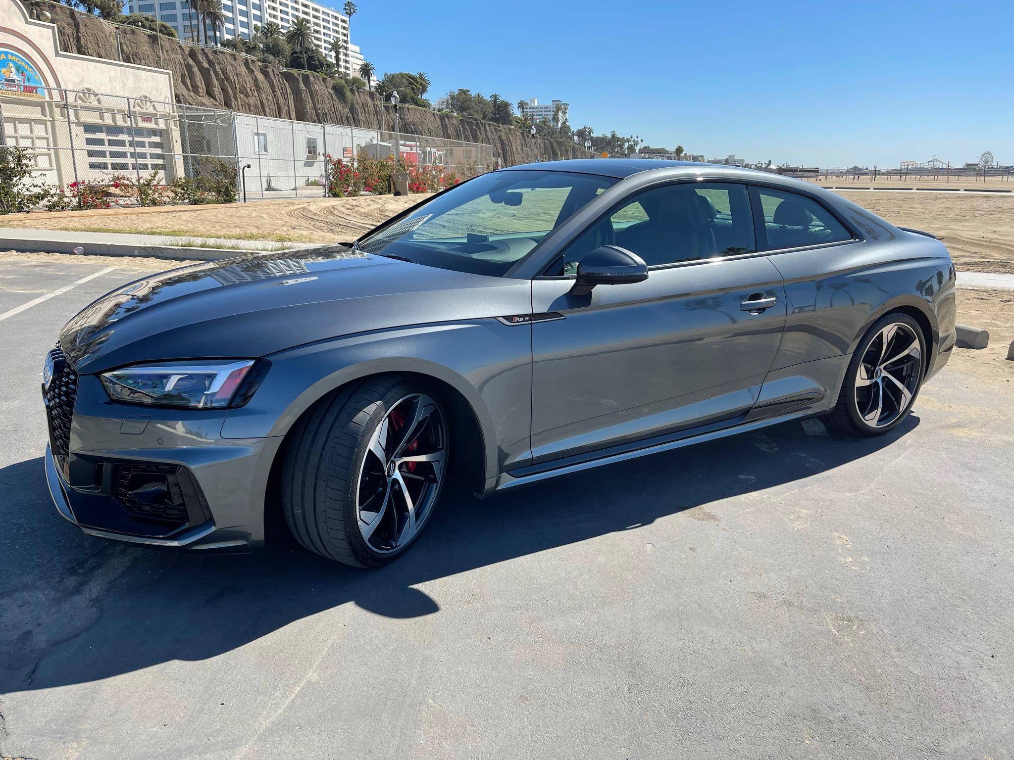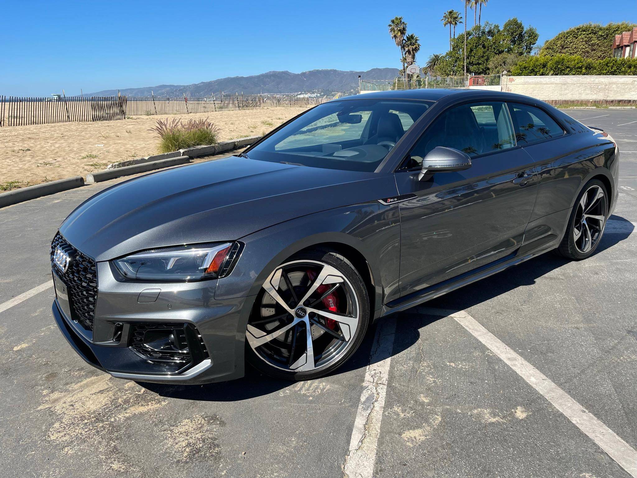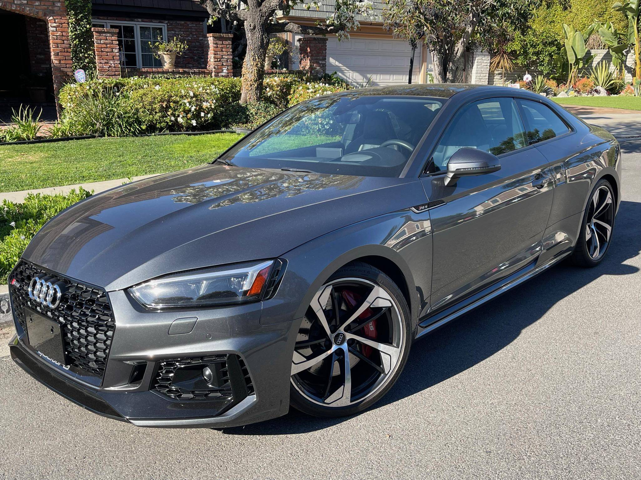2018 Audi RS5 coupe, finished in Daytona Gray Pearl Effect with a black interior. Factory equipment includes 20-inch wheels, an RS-specific body kit, LED exterior lighting, a power sunroof, leather upholstery, heated and power-adjustable front sport seats, carbon fiber interior trim, and a Bang & Olufsen sound system, among others listed below. The seller reports no modifications. Audi released the second-generation RS5 for 2018 as the ultimate evolution of the A5. Offered as a coupe and as a fastback called Sportback, it swapped its predecessor's V8 for a twin-turbocharged V6 but it gained torque in the trade. Huge brakes and a model-specific suspension system helped drivers make the most of the drivetrain, while a more muscular-looking exterior design allowed the RS5 to easily stand out from the S5. It remains available as Audi of America's answer to the BMW M4 in 2022. Power comes from a twin-turbocharged 2. 9-liter "TFSI" V6 engine, rated at 444 horsepower and 443 lb-ft of torque. It spins the 4 wheels via an 8-speed automatic transmission linked to a pair of shift paddles and Audi's permanent Quattro all-wheel-drive system.