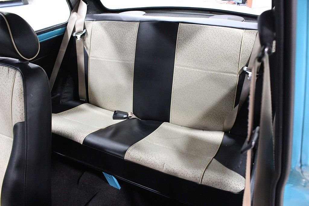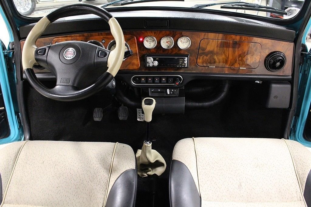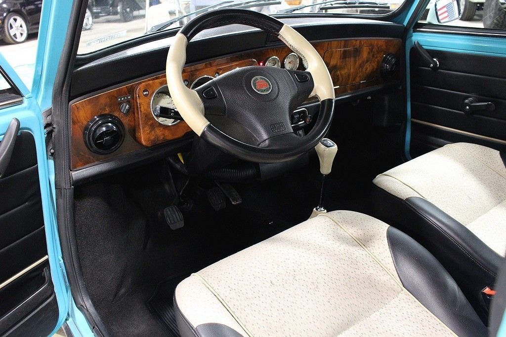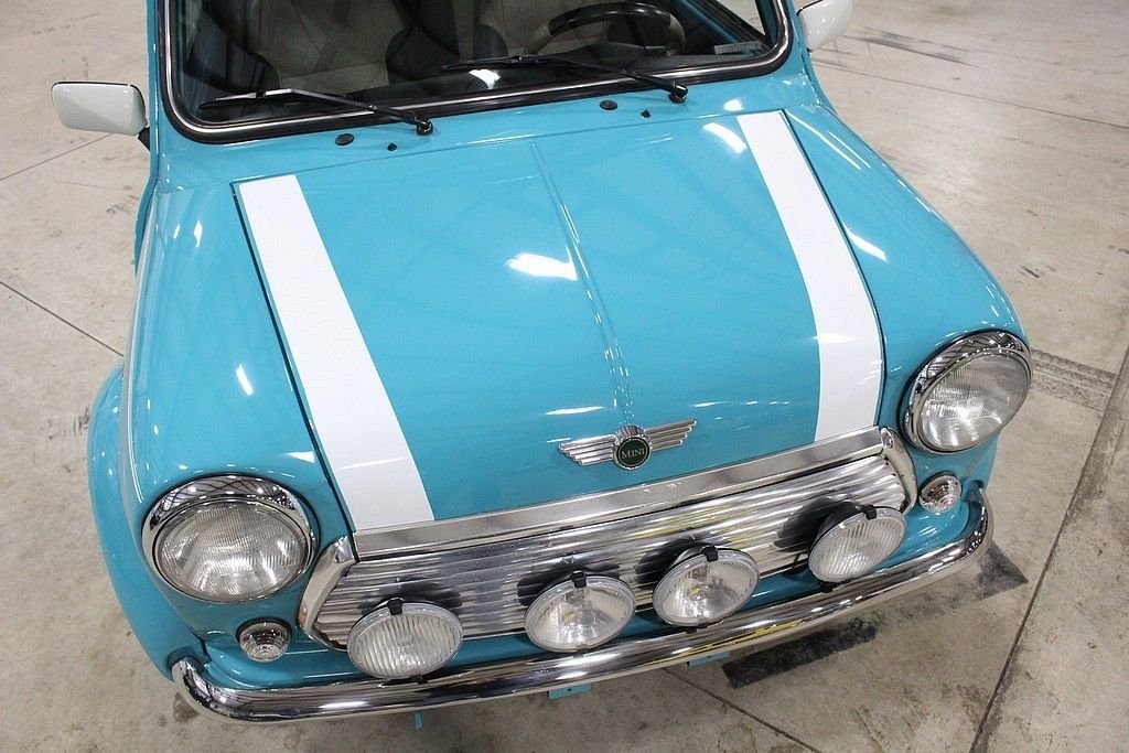 This Mini was built by Rover in the UK as the last production model of the “True Mini”. These end of production, Rover built Mini's, retained the classic small packaging but are also upgraded with a 1275 CC inline 4 cylinder engine fed via fuel injection and managed with electronic ignition. The engines performance is transferred via a 4 speed gear box and applied by front wheel drive technology. The spirited example offered here is attractively finished in its factory color, Surf Blue exterior paint with white stripes and white painted roof. The car is highly optioned including: Sport Pack Set, Rally Light Package, 12 inch Mini Lite Wheels, Wood Dash, 2 tone interior, door pockets, leather shift knob, JVC stereo and Anti-theft. Cosmetically the car stands extremely tall featuring wonderful exterior paint, excellent trim and glass throughout, the original interior is very tidy including a perfect dash, excellent wood, very cool gauge set etc. Mechanically, at 51,514 Kilometers / 32,009 miles, the car is spot on. This little Mini has a huge fun factor as the unassisted steering is direct and full of feedback, while the wheel-at-each corner stance and firm suspension gives it outstanding agility and handling and the familiar whine of the 4 speed gearbox and tuneful exhaust enhances the overall motoring experience. The Mini Mk Vll's by Rover are the most advanced version and the true Mini's of the UK. Built between 1998 and 2000, they encompass the same lovable character that made the original 1961 original such a smashing hit. For this reason, these cars are collectible and are considered investments. In this case, size truly does not matter. This Rover Mini is titled as a 1973.