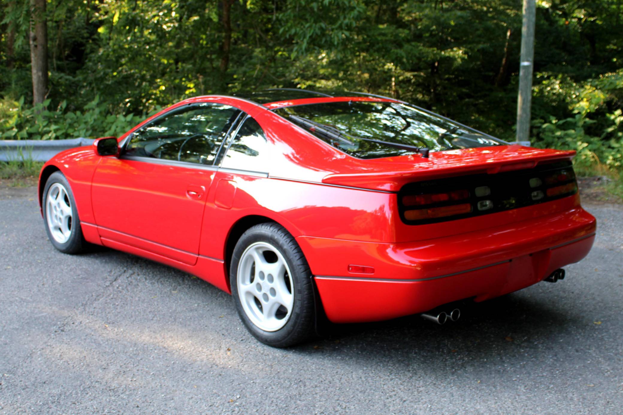 1992 Nissan 300ZX Twin Turbo, finished in Ultra Red with a Charcoal interior. The odometer on this 300ZX displays roughly 13,700 miles. A partial list of notable equipment includes 16-inch alloy wheels, Super HICAS rear wheel steering system, a rear spoiler, removable T-tops, leather upholstery, a power adjustable driver’s seat, a Bose sound system, and cruise control. The seller reports no modifications. Called "Z32" internally, the second-generation Nissan 300ZX was sold between the 1990 and 1996 model years in America, though production continued abroad until 1999. Its design was perfectly aligned with the styling trends of the 1990s, and it offered enthusiasts significantly more power than its predecessor, especially when buyers ordered the top-of-the-line turbocharged engine. It was replaced by the 350Z in 2003. Power comes from a twin-turbocharged 3. 0-liter V6, rated at 280 horsepower and 283 lb-ft of torque. Output is sent to the rear wheels via a 4-speed automatic transmission.