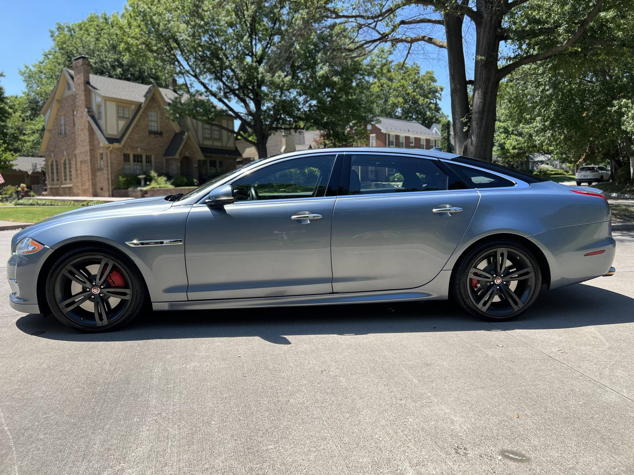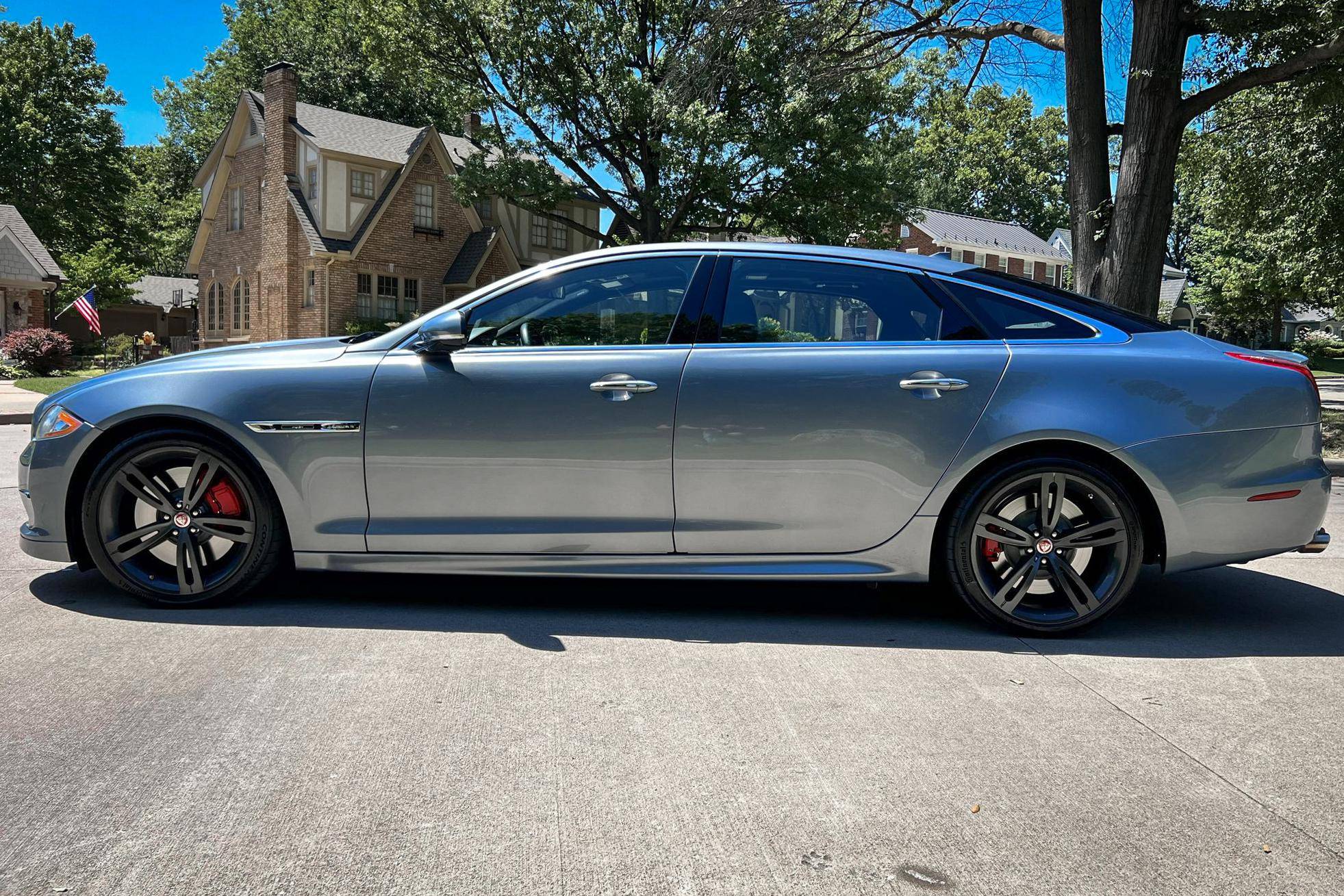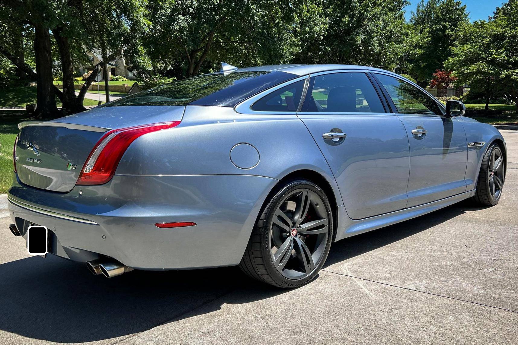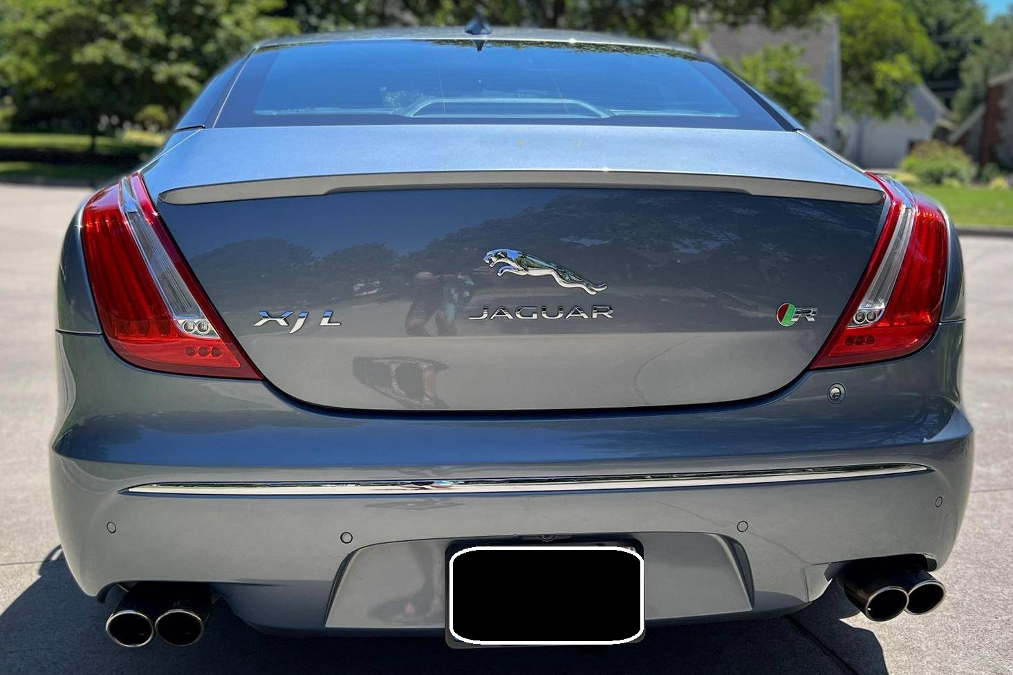2014 Jaguar XJR L, finished in Satellite Grey with a Jet Black interior. According to the build sheet shown in the gallery, this Jaguar had an MSRP of $123,970 in 2014. Factory equipment includes 20-inch Farallon wheels, dual sunroofs, soft-close doors, heated and ventilated front and rear seats, and a Meridian sound system. The seller reports no modifications. Jaguar rebooted the XJ, its flagship sedan, for the 2011 model year. Gone were the retro lines that characterized the model since its inception; the "X351" XJ wore a sleek, modern-looking exterior design that borrowed styling cues from the smaller XF. It retained aluminum construction but it offered sportier handling to lure buyers away from German competitors. The range-topping XJR joined the range in 2014, offering a more powerful supercharged V8, and an upgraded chassis for a more dynamic driving experience. Power comes from a supercharged 5. 0-liter V8, rated at 550 horsepower and 502 lb-ft of torque. Output is sent to the rear wheels via an 8-speed automatic transmission.