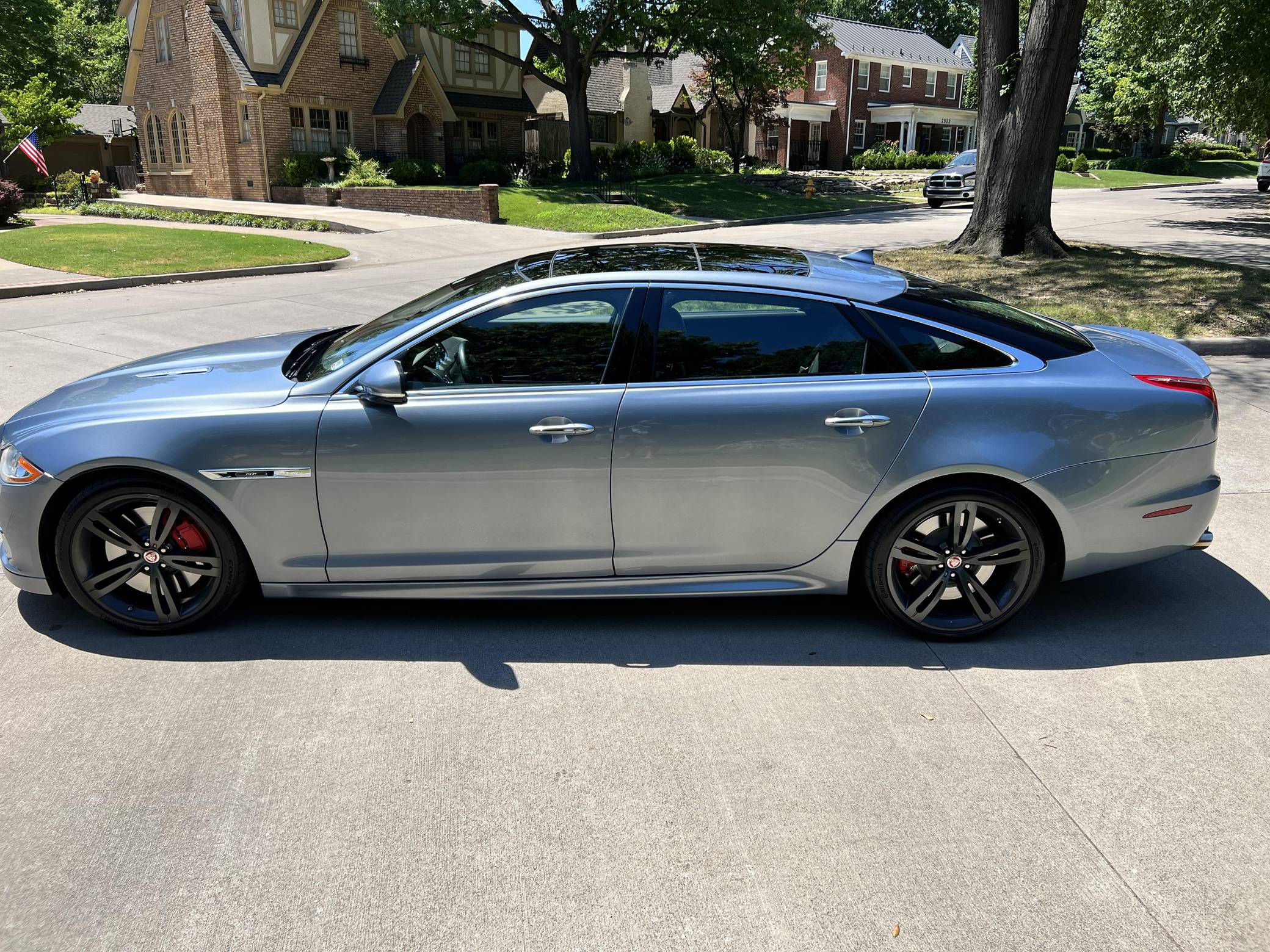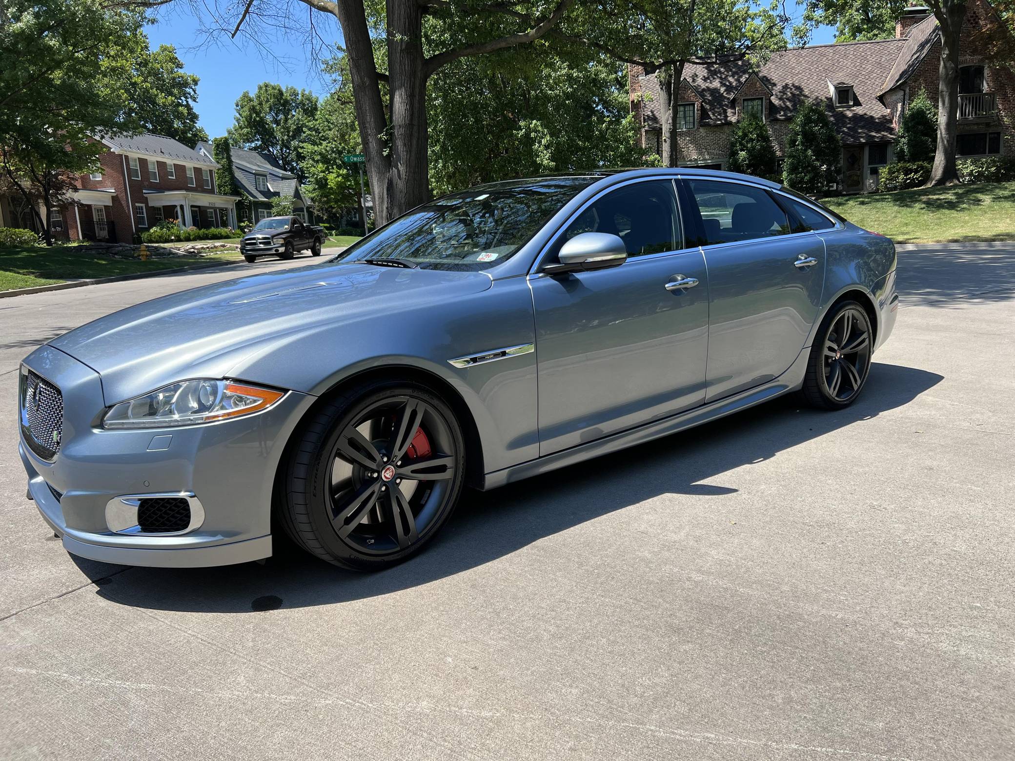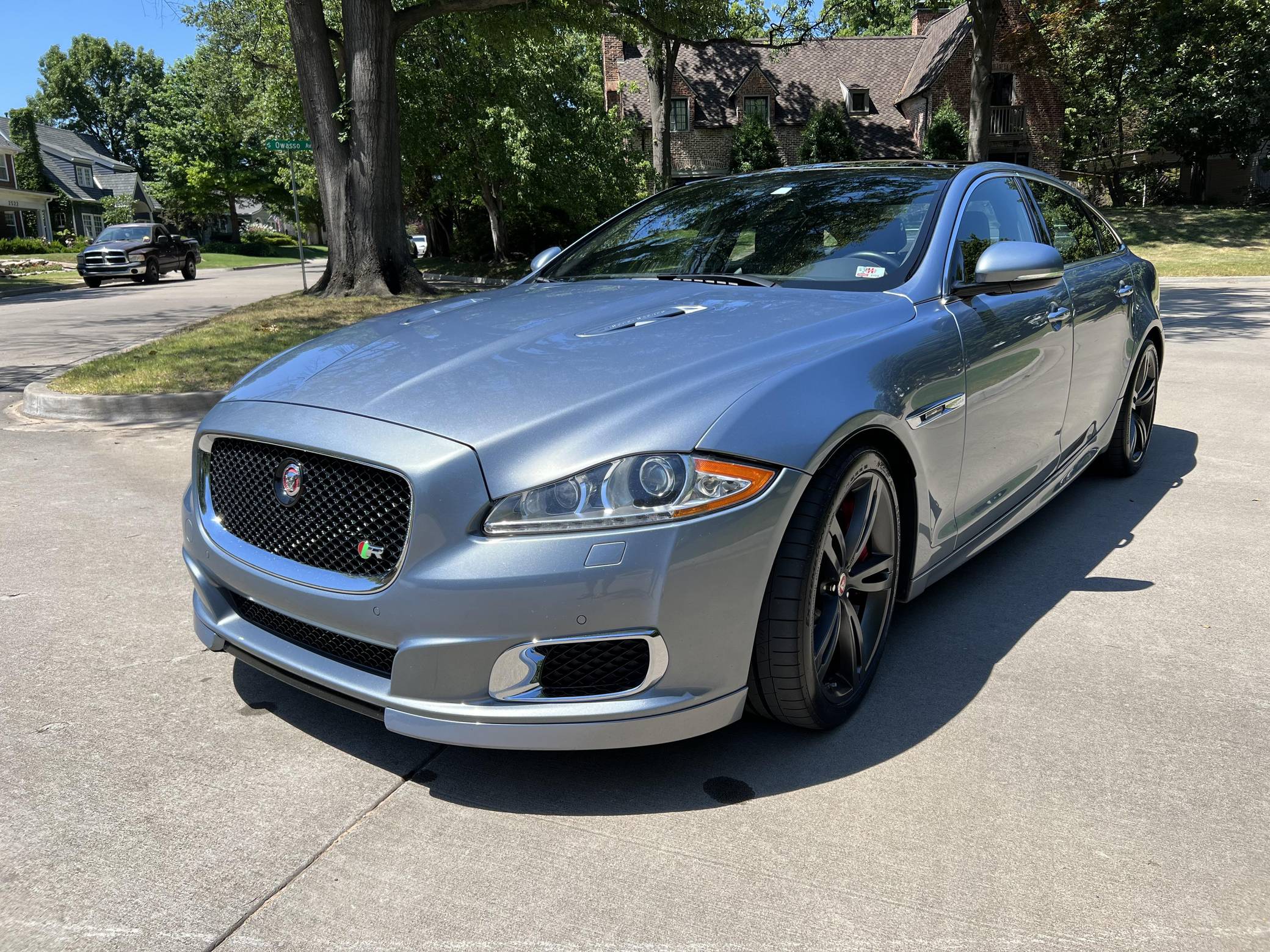 2014 Jaguar XJR L, finished in Satellite Grey with a Jet Black interior. According to the build sheet shown in the gallery, this Jaguar had an MSRP of $123,970 in 2014. Factory equipment includes 20-inch Farallon wheels, dual sunroofs, soft-close doors, heated and ventilated front and rear seats, and a Meridian sound system. The seller reports no modifications. Jaguar rebooted the XJ, its flagship sedan, for the 2011 model year. Gone were the retro lines that characterized the model since its inception; the "X351" XJ wore a sleek, modern-looking exterior design that borrowed styling cues from the smaller XF. It retained aluminum construction but it offered sportier handling to lure buyers away from German competitors. The range-topping XJR joined the range in 2014, offering a more powerful supercharged V8, and an upgraded chassis for a more dynamic driving experience. Power comes from a supercharged 5. 0-liter V8, rated at 550 horsepower and 502 lb-ft of torque. Output is sent to the rear wheels via an 8-speed automatic transmission.