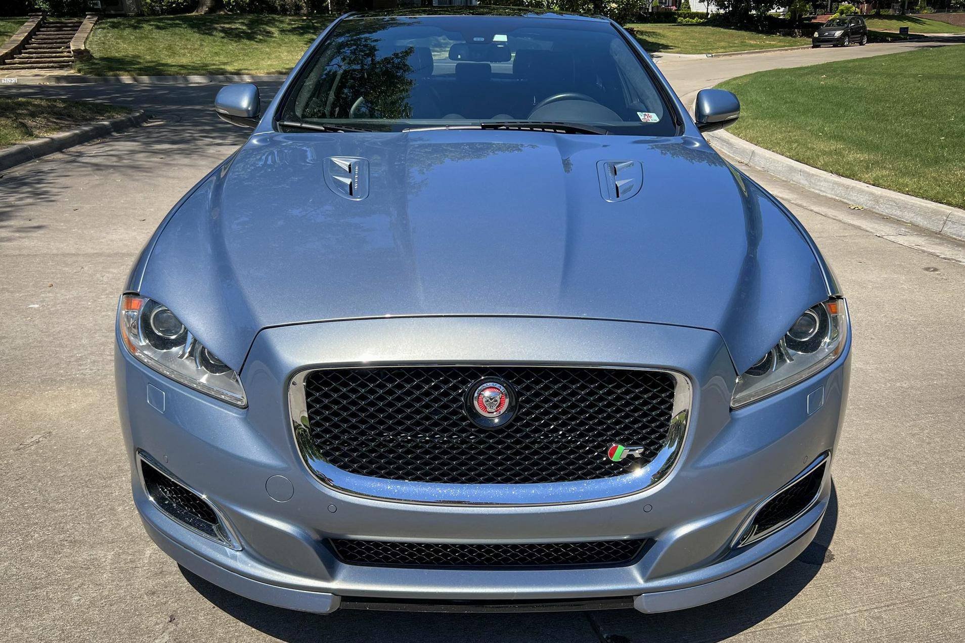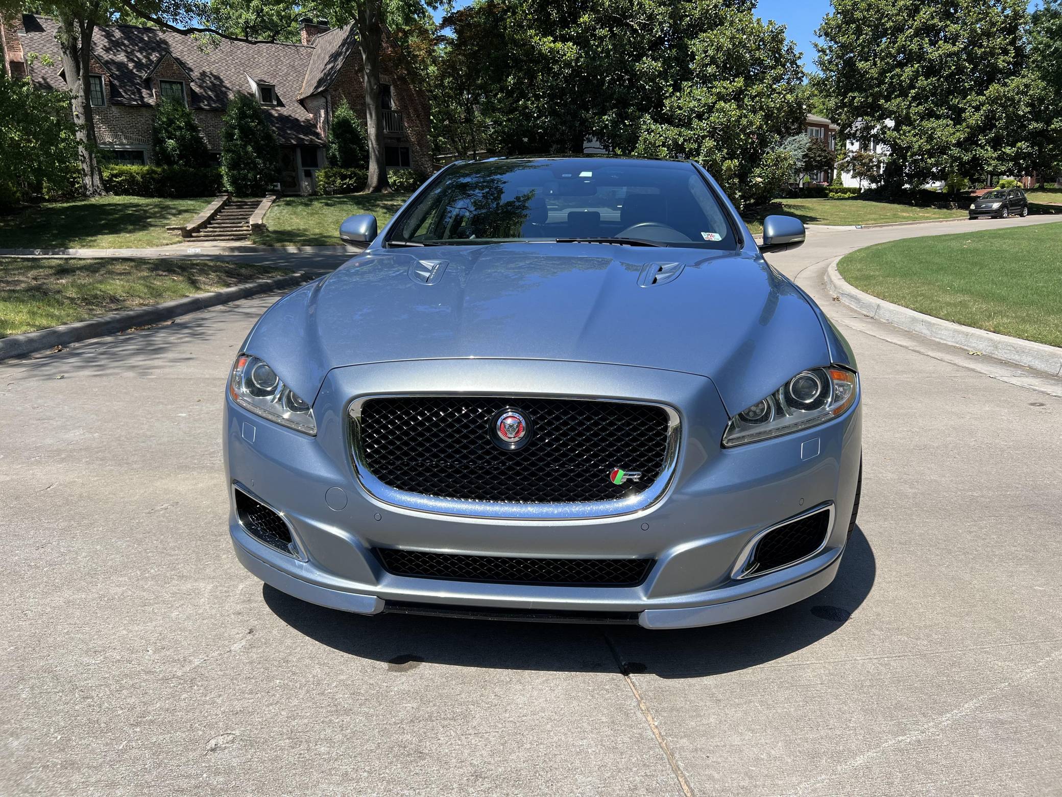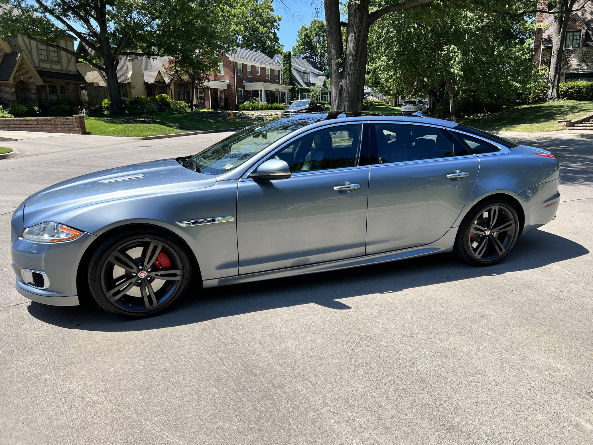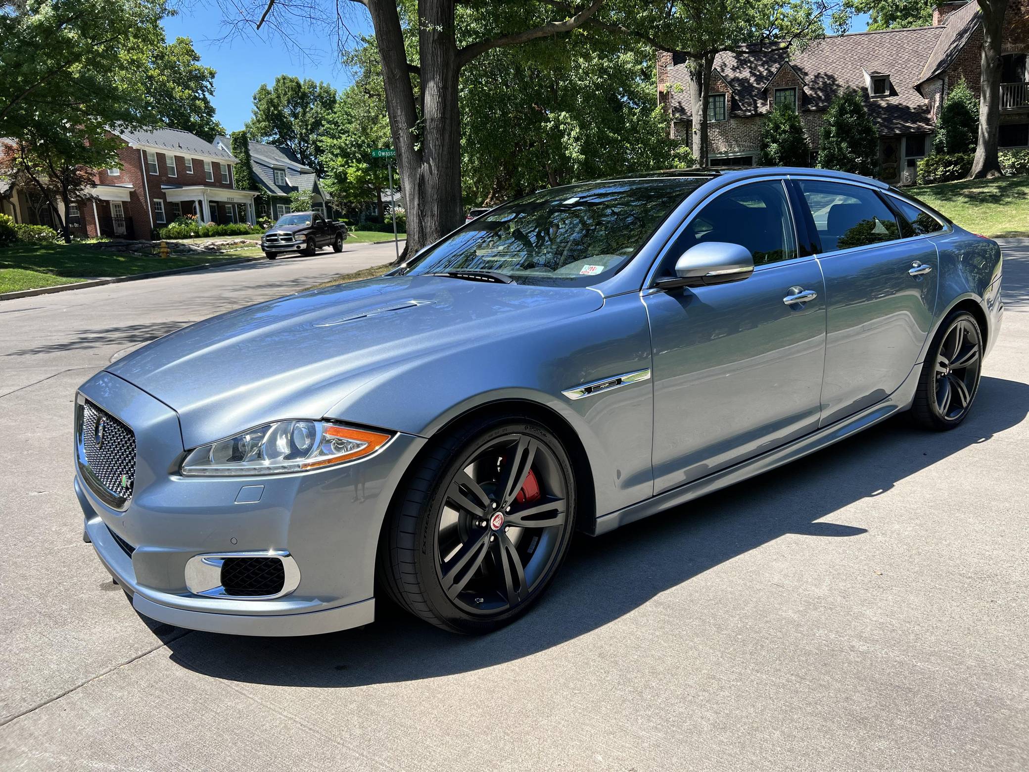 2014 Jaguar XJR L, finished in Satellite Grey with a Jet Black interior. According to the build sheet shown in the gallery, this Jaguar had an MSRP of $123,970 in 2014. Factory equipment includes 20-inch Farallon wheels, dual sunroofs, soft-close doors, heated and ventilated front and rear seats, and a Meridian sound system. The seller reports no modifications. Jaguar rebooted the XJ, its flagship sedan, for the 2011 model year. Gone were the retro lines that characterized the model since its inception; the "X351" XJ wore a sleek, modern-looking exterior design that borrowed styling cues from the smaller XF. It retained aluminum construction but it offered sportier handling to lure buyers away from German competitors. The range-topping XJR joined the range in 2014, offering a more powerful supercharged V8, and an upgraded chassis for a more dynamic driving experience. Power comes from a supercharged 5. 0-liter V8, rated at 550 horsepower and 502 lb-ft of torque. Output is sent to the rear wheels via an 8-speed automatic transmission.