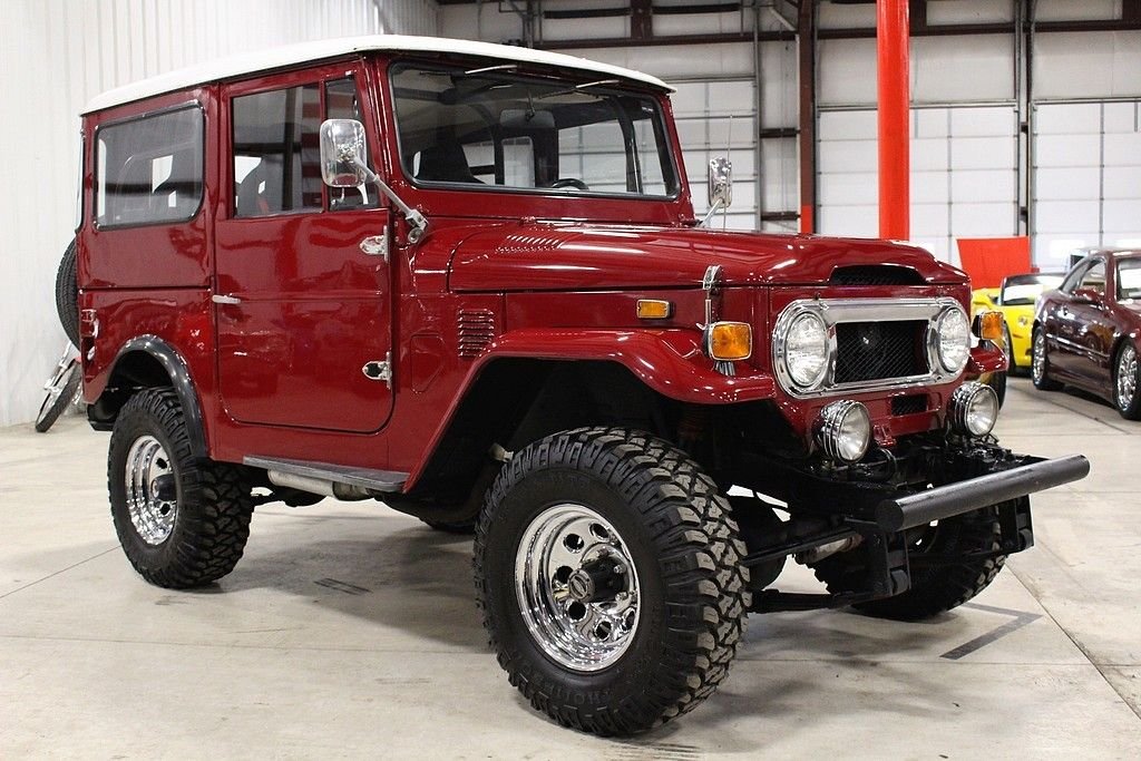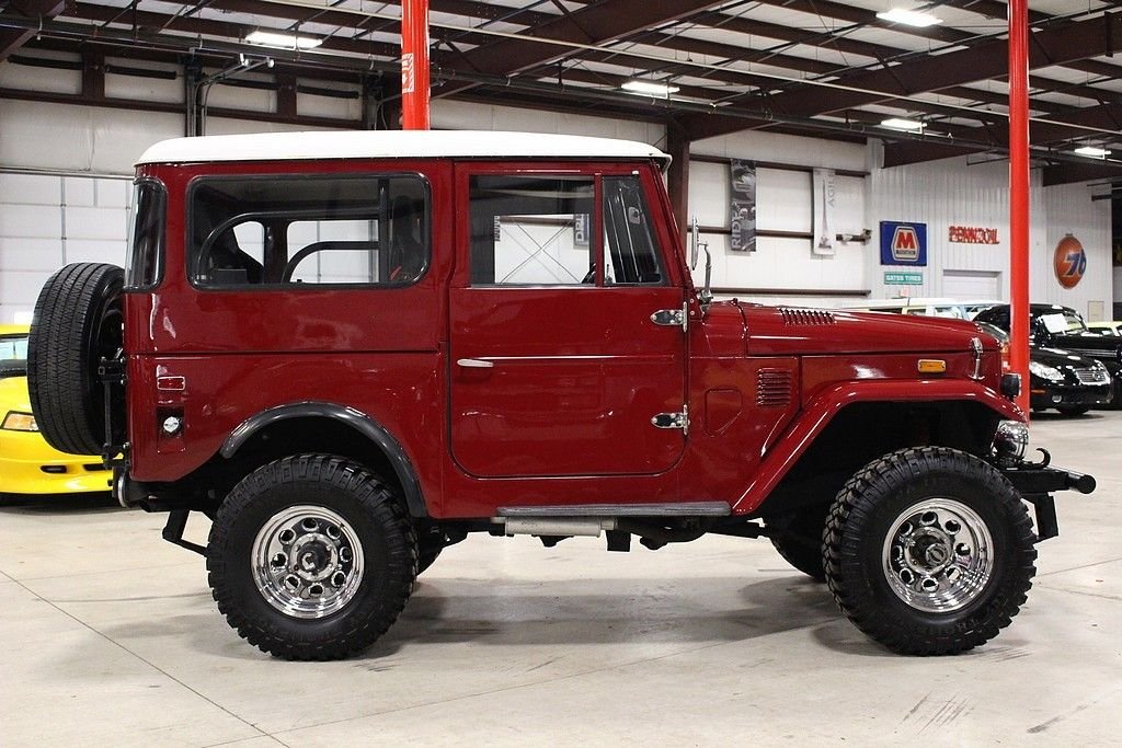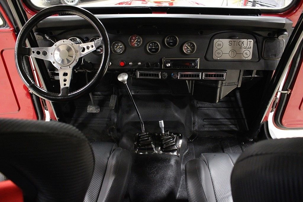 There is a reason why the Land Cruiser is Toyota's longest running series. It has proven itself all over the world in the most extreme climates and situations as the go to vehicle for all things versatile. From adventure to taxi cabs this iconic 4WD has exceeded the expectations of most and has one of the largest followings of any thing on the road today. Although the Land Cruiser was developed to take on the Bantam Jeep during WWII and was directly influenced by this it took on a form and functionality all its own just after the war. The FJ40 began production began in 1960 and went through 1984. Basically a one design vehicle for all those years, with mechanical and minor cosmetic changes to keep up with the changing times. We are pleased to offer this FJ for your consideration. This well built rig is equipped with a 350 small block mated to an automatic transmission. It has headers, Edelbrock intake and carburetor, aluminum radiator, roll cage, Mickey Thompson Baja claw tires, racing seats with harnesses, auto meter and sport comp gauges, CD player, heat and AC. It runs and drives well and handles as it should. The paint is in good condition and presents itself well.