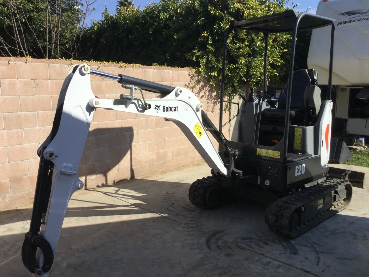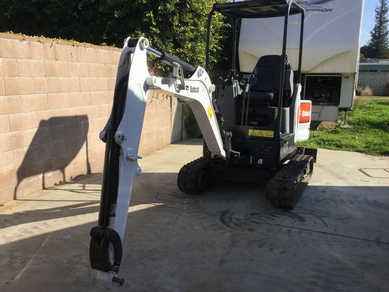 BOBCAT E20 TELESCOPING TRACK EXCAVATOR, OROPS, ZERO TAIL SWING, 2 SPEED Final Tier 4 Compliant. The Bobcat E20 Compact Excavator (Mini Excavator) delivers impressive performance in tight areas with minimal repositioning. Hydraulically retract the undercarriage to only 39 inches to travel through gates or between homes, then expand to 54 inches for a wider footprint and greater performance. Equipped with a Tier 4 engine, the E20 has zero tail swing for versatility and maneuverability on the most compact of job sites.