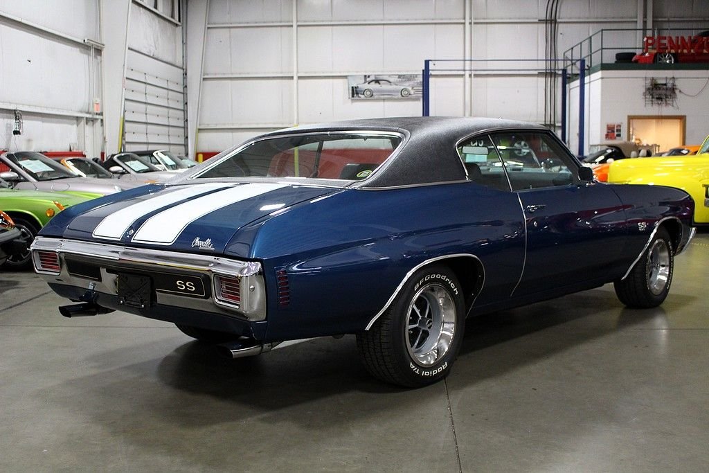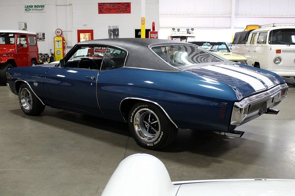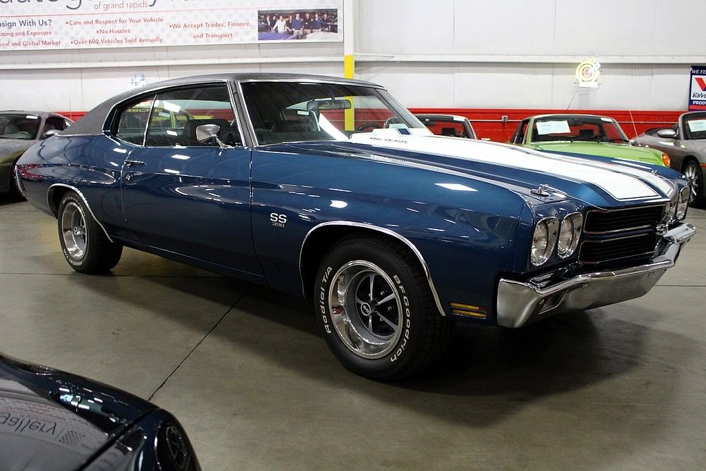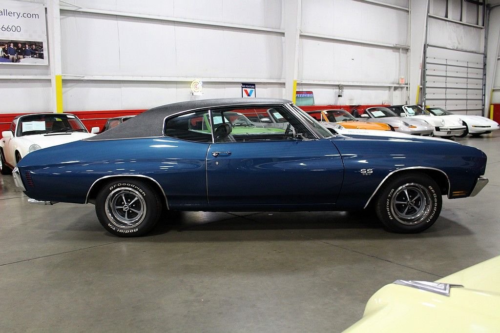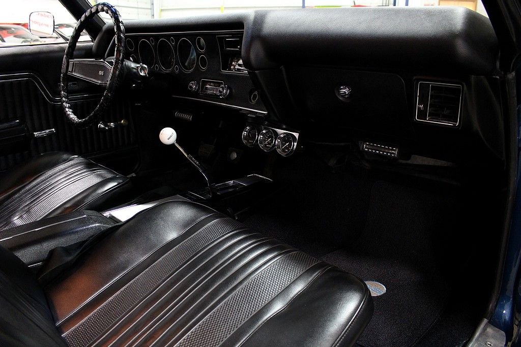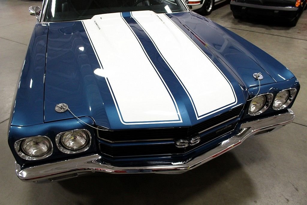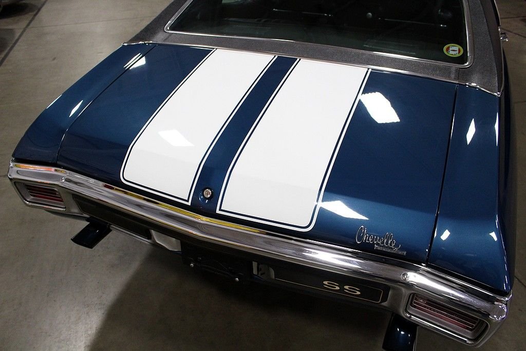 When people think about muscle cars the Chevelles produced from 1968-72 jump right off the page. The Chevelle 2nd generation was the GM A-body perfect size for anything you wanted to stuff under the hood to make your ride jump off the line when commanded to do so. Chevelles came in several different variations and trim packages, but the hot SS 396 will make people stop in their tracks with respect for the performance and the timeless style. This is a completely documented 1970 SS 396 in its original paint color, Fathom Blue as it was delivered new to Ramsey Chevrolet in Bixby, Oklahoma. It came well optioned with black vinyl interior, soft-ray tinted glass, strato-bucket front seats, vinyl black roof, air conditioning, center console, 4-speed close-ratio manual transmission, power steering, cowl induction hood (which is functioning today), and SS 396 equipment package. This car was a solid southern vehicle and then it went through a full frame-off restoration in 2006 bringing the car to stunning showroom condition. At this time the engine was gone through with some upgrades including: new valves, new rocker arms, new piston rings, new electric fan, new bushings, new BBC S/S intake, new aluminum heads, new BBC Performer RPM 454, MSD ignition, new water pump, new BBC Performer manifold, and new 750 CFM carburetor. There are stock parts to be included with the sale if next buyer desires. This car is completely documented (broadcast engine code TX) with original bill of sale, window sticker, protect-o-plate, and receipts and pictures documenting the restoration. This car is a stunner in incredible condition and is a great driver, show winner, and investment opportunity with this paperwork.