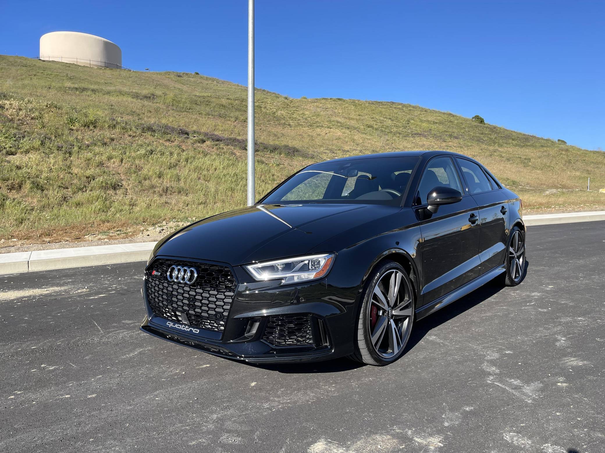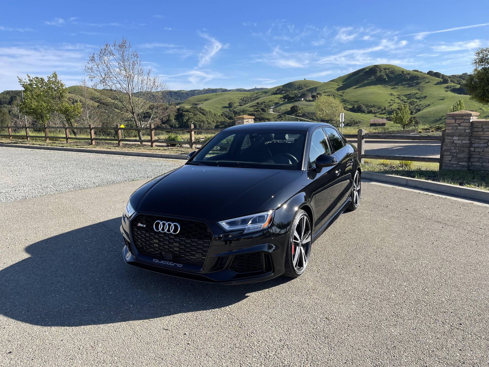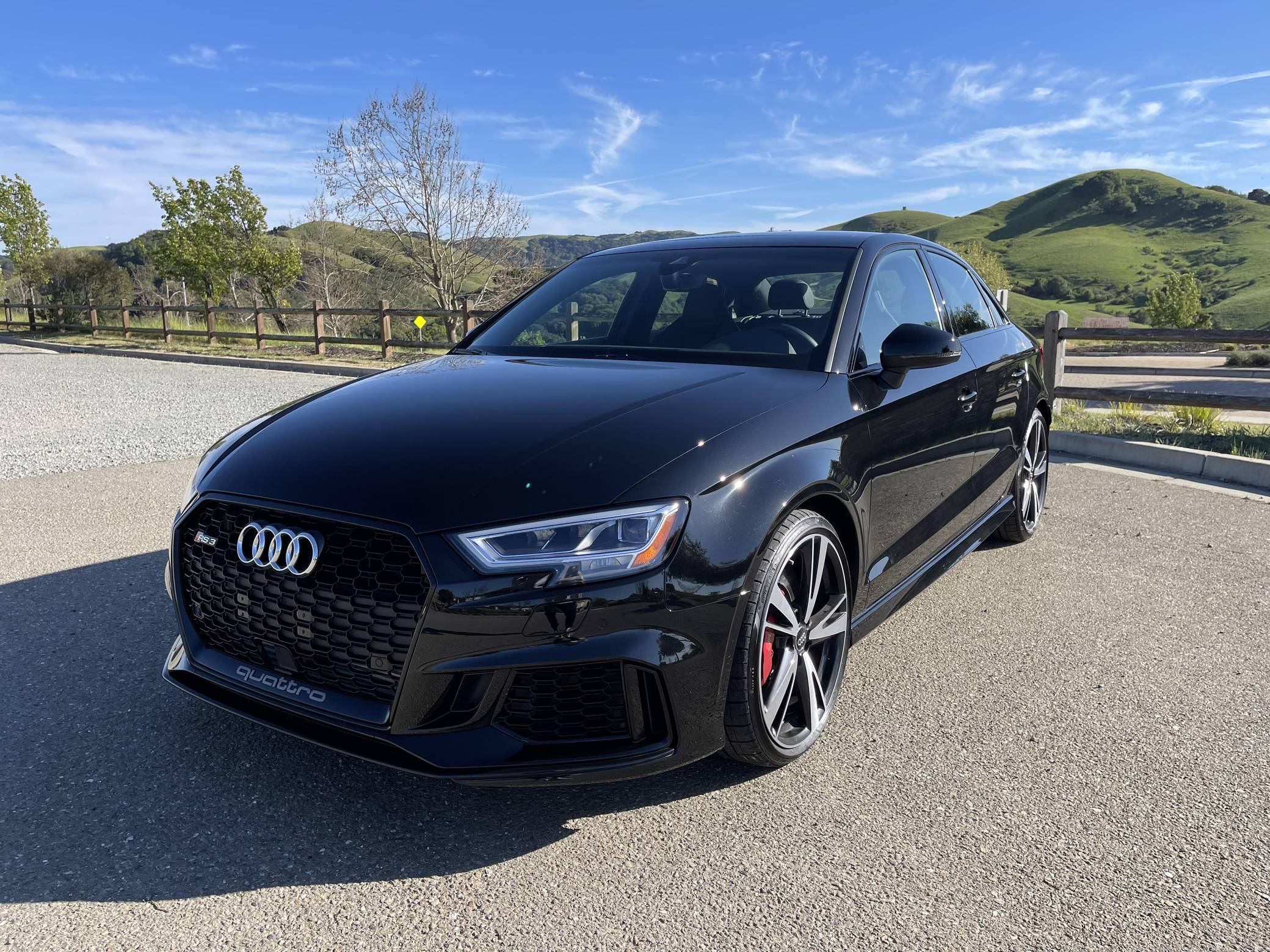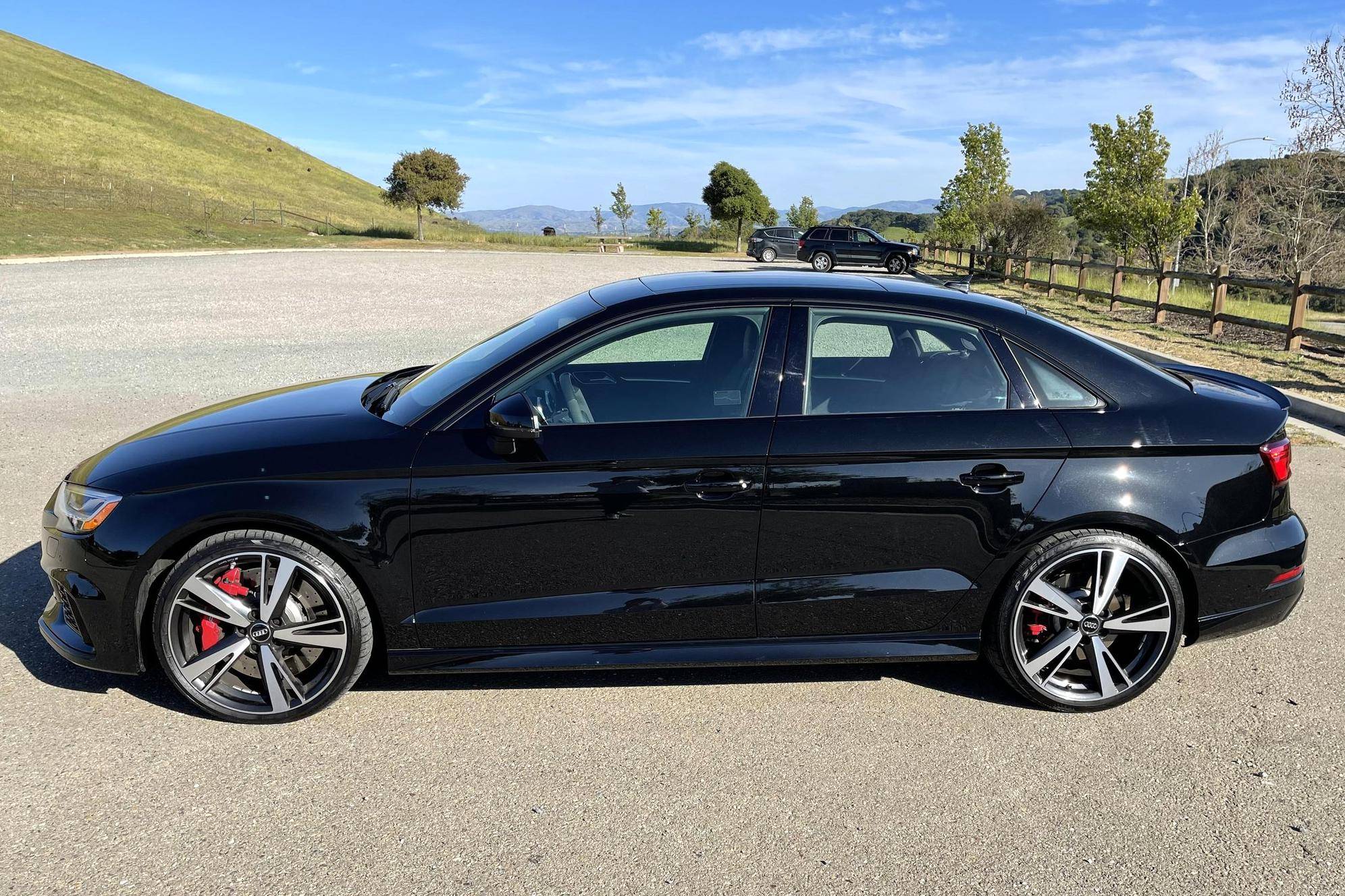 THIS. . . is a 2019 Audi RS3, finished in Mythos Black Metallic with a black interior. The odometer currently indicates approximately 3,900 miles. The seller reports no modifications. Introduced in 2012, the third generation "8V" A3 was intended to compete with Mercedes-Benz's CLA-Class and featured a revised suspension and improved technology over its predecessor. The RS3 model was released in 2015 in Europe as a Sportback and was the high-performance variant of the A3 lineup. It came equipped with a larger displacement 5-cylinder engine, RS-specific suspension, tuned progressive steering, and model-specific interior trim. The sedan version was added for the world market in 2017. Power comes from a 2. 5-liter turbocharged inline-5, rated at 394 horsepower and 354 lb-ft of torque. Output is directed to all four wheels through a 7-speed automatic transmission and Audi's Quattro all-wheel-drive system.
