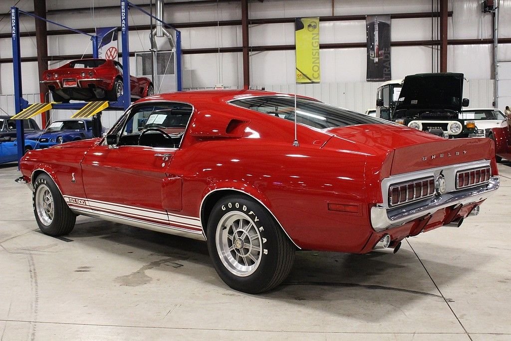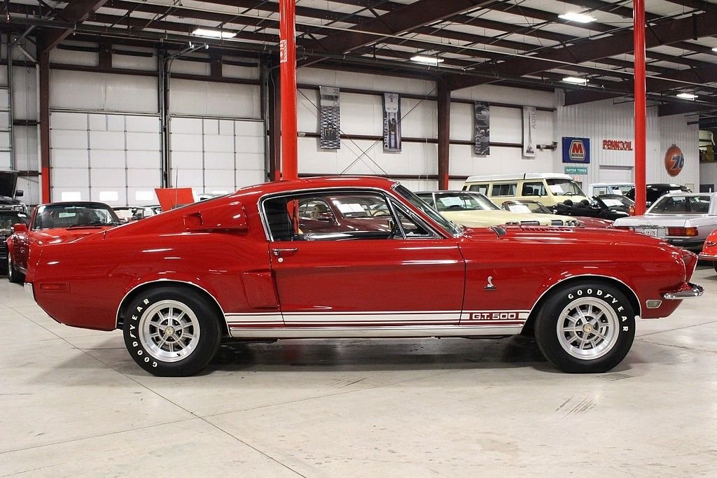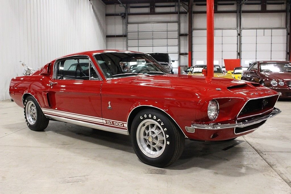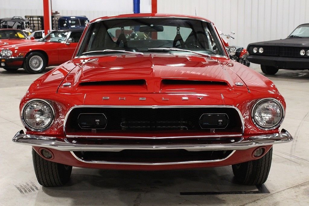 Perhaps not other name goes with American automotive performance better than Carroll Shelby. His name is attached to some of the most revered cars ever produced including the GT40, Daytona Coupe, Cobra, GT 500 and GT 350. To this day, cars that Carroll Shelby was involved with are held in some of the most prestigious collections around the world. This GT500 was delivered new by Bill Grimes Ford, Inc. of Midland, MI dressed in classic, Candyapple Red paint over Black interior. Options include: Extra Cooling Package, Visibility Group, Wheel Lip Moldings, Sport Deck Rear Seat, Power Steering, Power Front Disc Brakes, Tilt-Away Steering Column, Interior Décor Group, Tachometer and Trip Odometer. The car features a older selective style restoration performed roughly 1995 using NOS parts that shows excellent in all areas. The interior remains largely original, the engine bay and underside has undergone a recent freshening. The car is powered by its legendary 428 Cobra Jet 4 Barrel V8, the horsepower is transferred by a C-6 Automatic Transmission and applied by the Ford 9 inch rear end. The motor has been completely rebuilt at the time of restoration and the car remains fully sorted and in excelling operating condition. All Shelby specific parts are in place and documentation includes: original build sheet, Marti report, original owners manual, original tags, service history, and owner history. All Shelby Cars are globally sought and are the centerpiece of collections worldwide. What an opportunity present here to acquire a high quality example.
