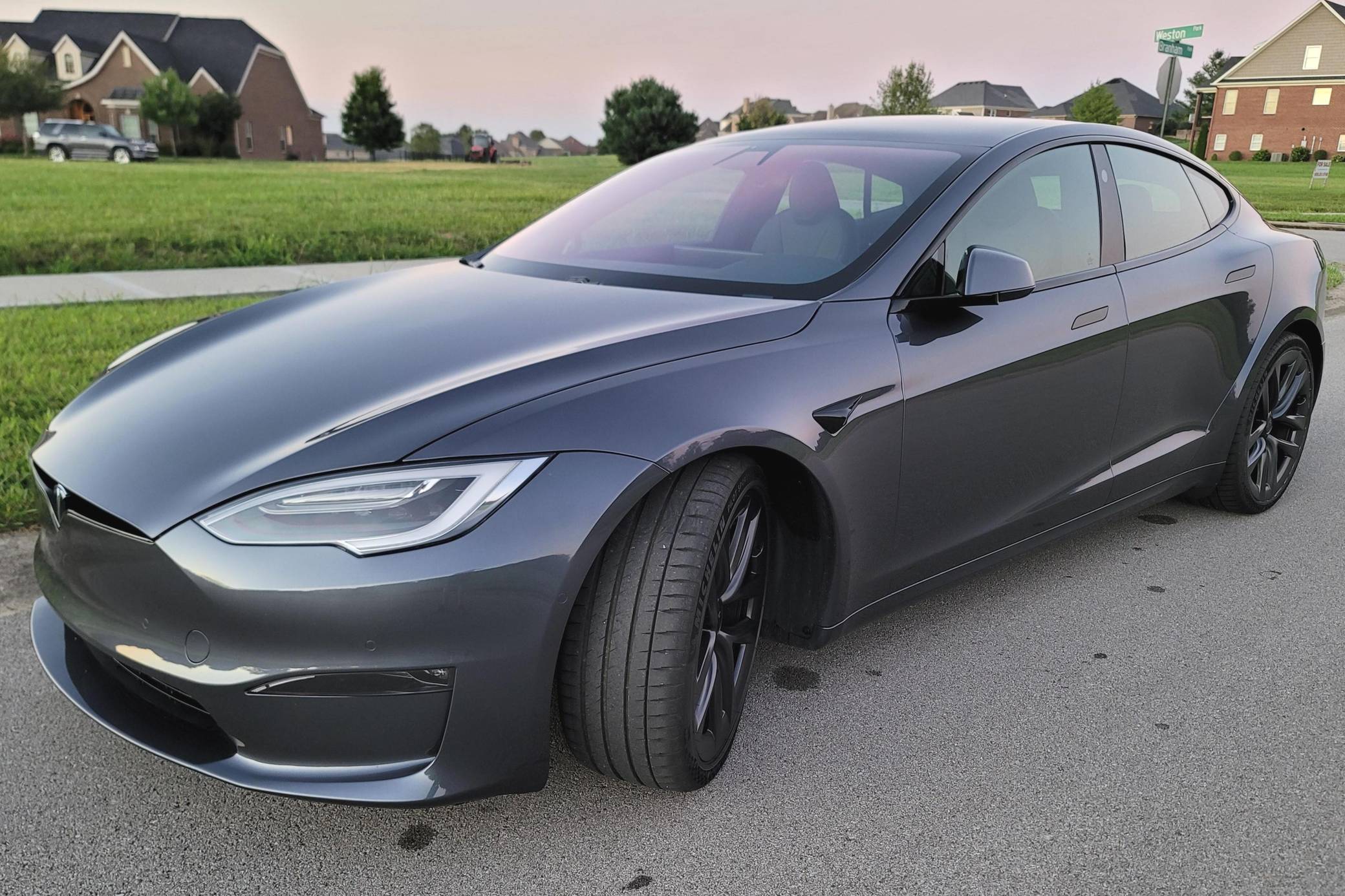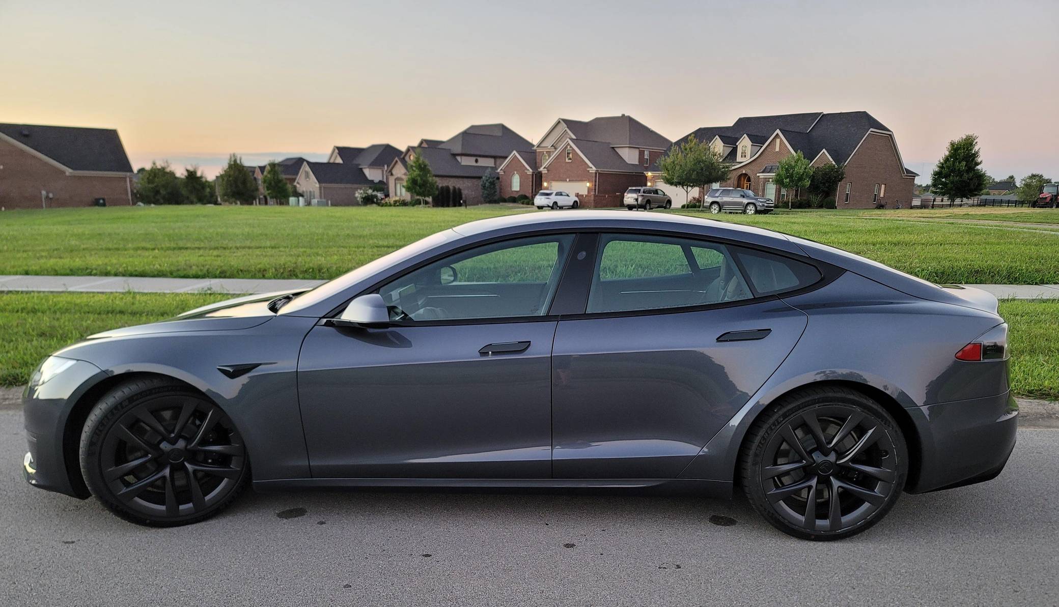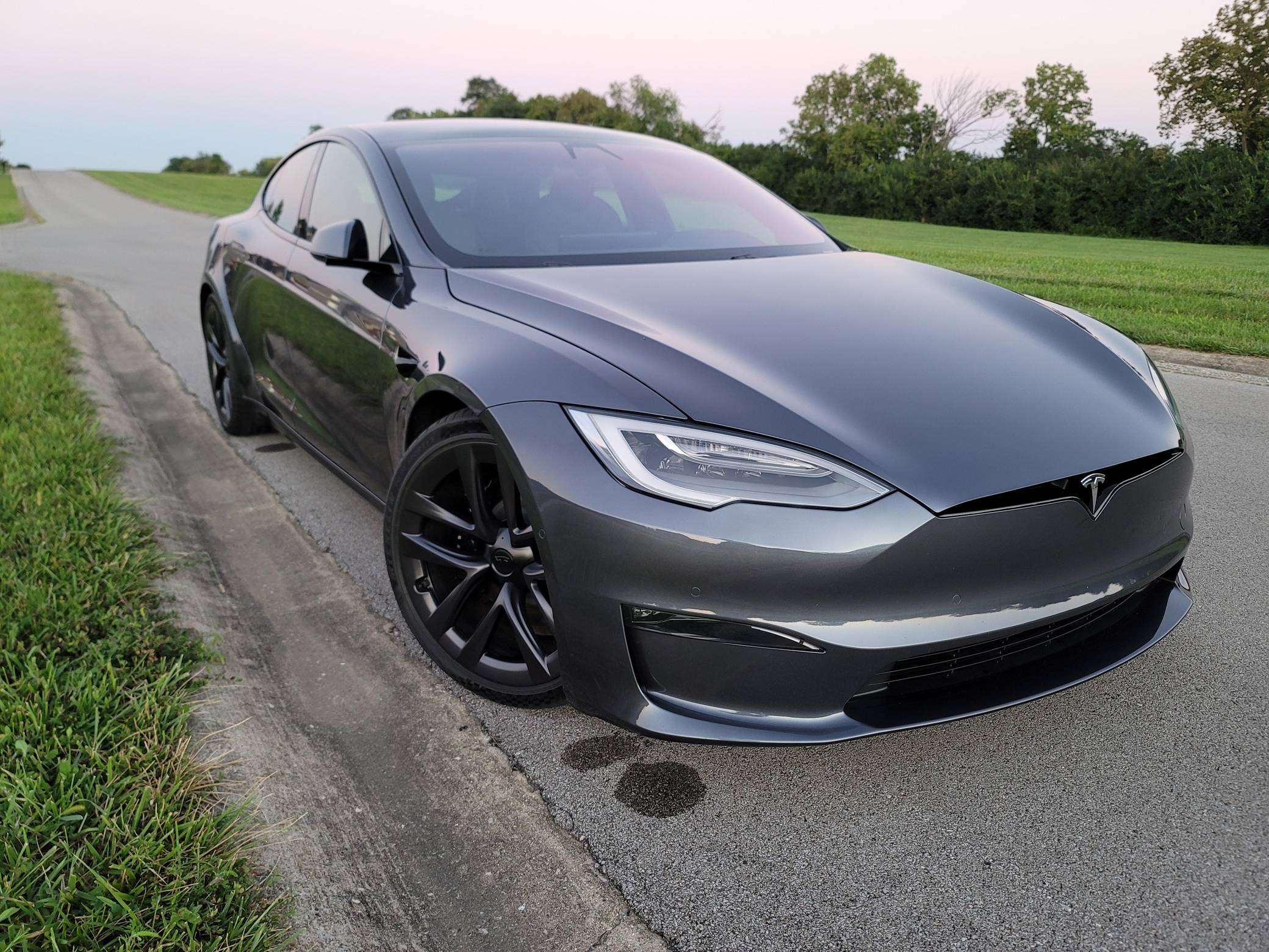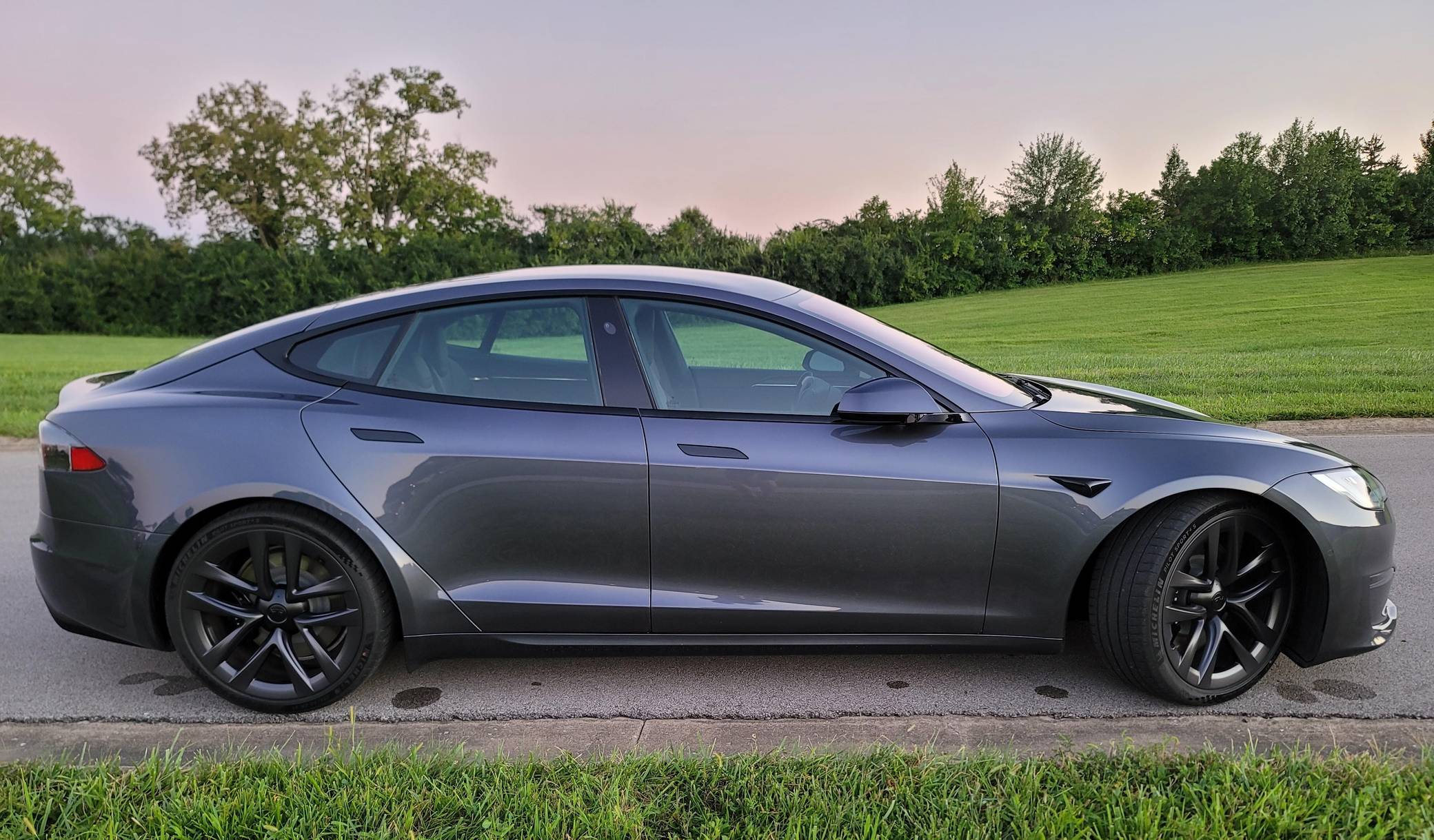 THIS… is a 2021 Tesla Model S Long Range, finished in Midnight Silver Metallic with a black interior. The odometer on this Model S currently displays approximately 4,800 miles. A Tesla vehicle configuration sheet is provided in the photo gallery, and a partial list of notable equipment includes 21-inch "Arachnid" wheels, an all-black Premium Interior with Ebony décor, a yoke steering wheel, power-adjustable, heated, and ventilated front seats, a 17-inch center touchscreen, Autopilot technology, and more as detailed below. The seller reports no modifications. Tesla introduced the Model S, the first car it developed in-house, in 2012. Still available today, it was one of the first cars that proved EVs could be more than overgrown golf carts. It has gone through numerous powertrain and software evolutions during its life cycle, and a 2021 refresh brought significant changes including a new landscape-oriented center screen, ventless climate control design, and the much-talked-about yoke steering wheel. According to Tesla, this Model S Long Range has an estimated driving range of 375 miles when equipped with 21-inch wheels. Power comes from a pair of electric motors (one per axle), which draw electricity from a 100-kilowatt-hour lithium-ion battery pack to zap the four wheels with 670 horsepower and 723 lb-ft of torque, according to third-party estimates.