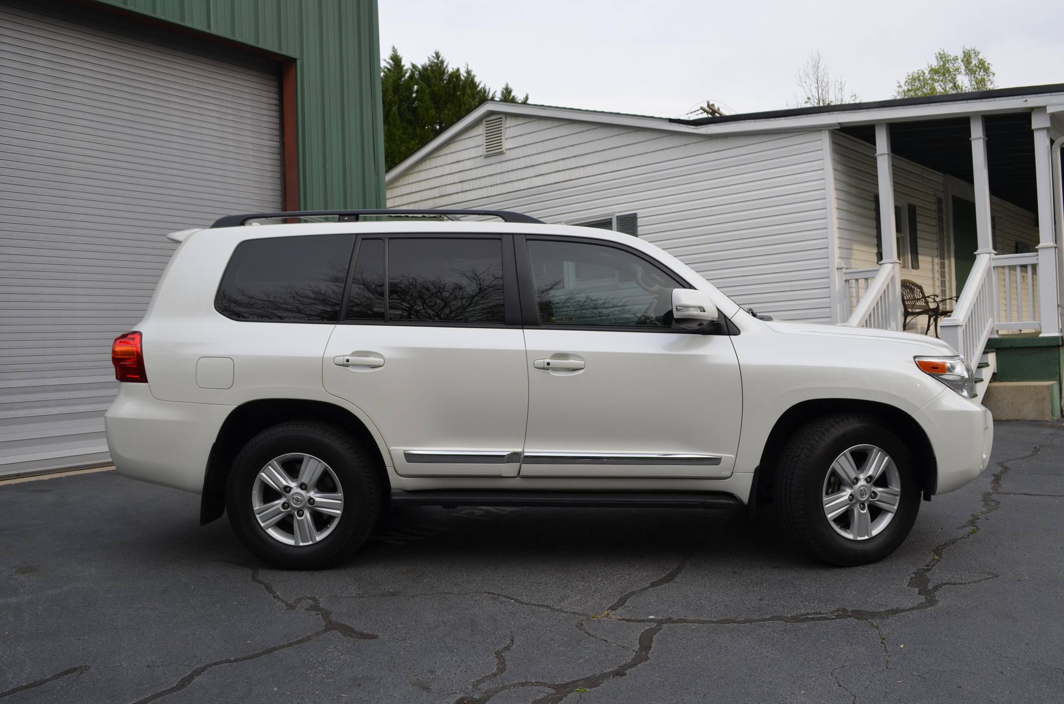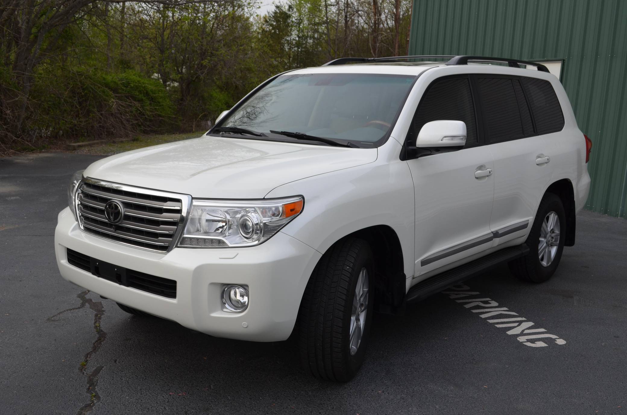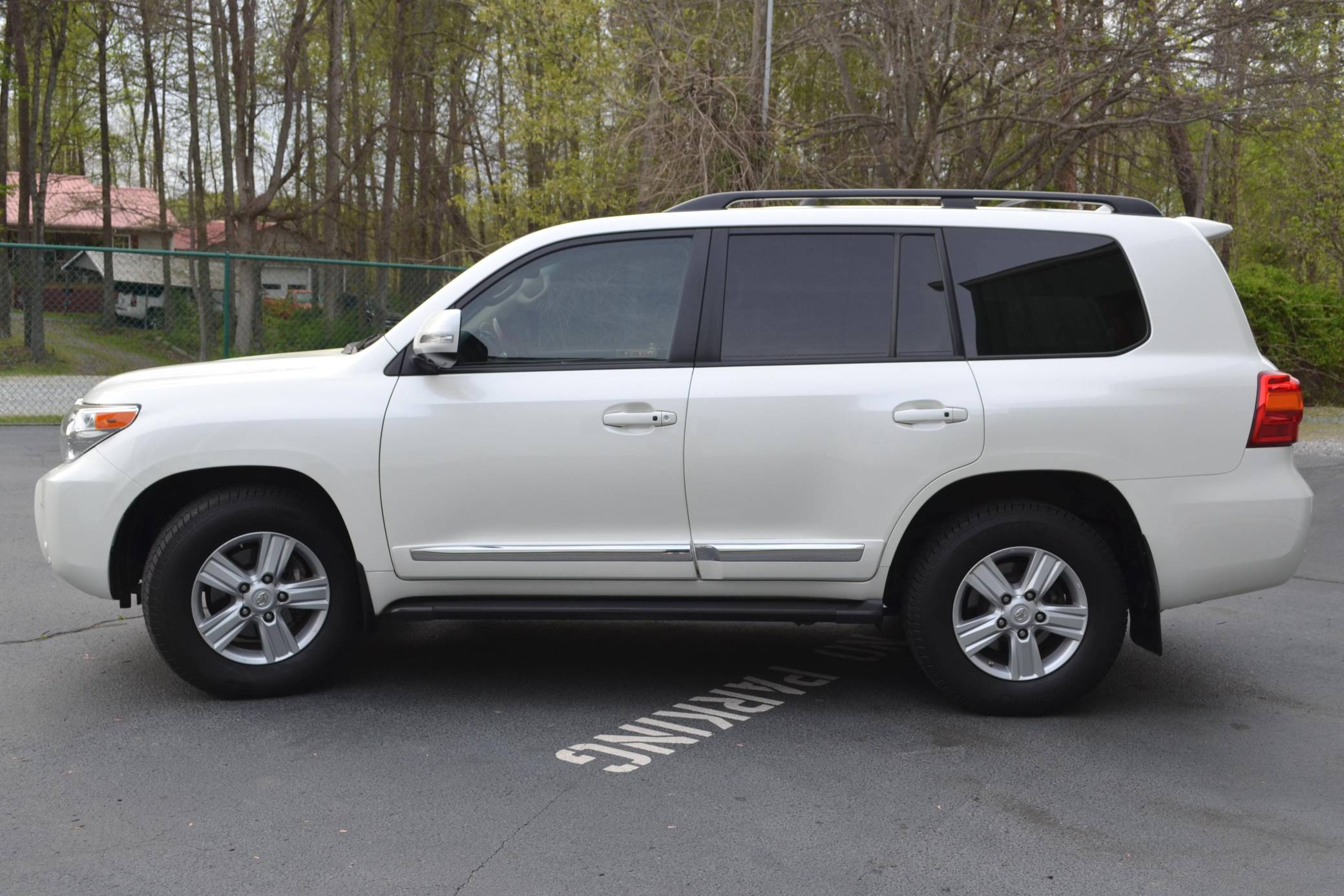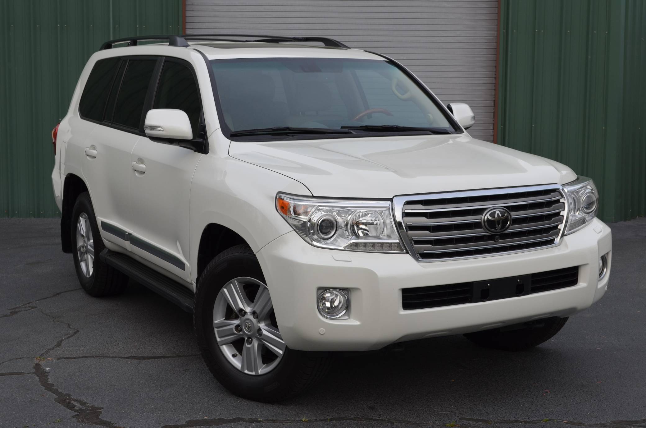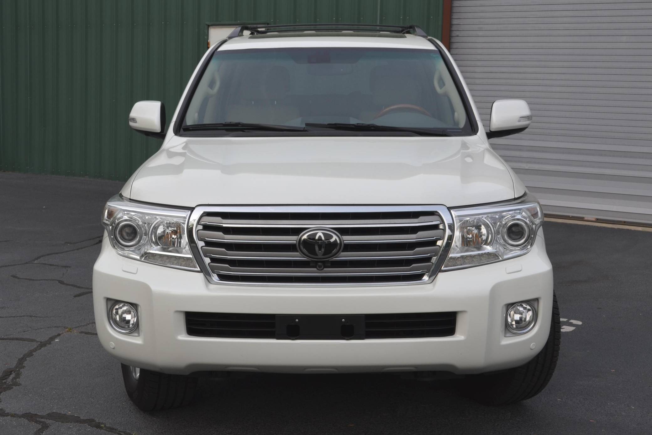 2013 Toyota Land Cruiser, finished in Blizzard Pearl with a Sandstone interior. This SUV's odometer displays about 79,100 miles. Highly optioned, this Land Cruiser is equipped with 18-inch wheels, the Kinetic Dynamic Suspension System (KDSS), a sunroof, leather upholstery, heated, ventilated, and power-adjustable front seats, a heated steering wheel, a 14-speaker JBL sound system, a rear-seat entertainment system, front and rear parking sensors, and a rear-view camera, among other features. The only modifications reported by the seller are clear paint protection film on the hood and tinted windows. Toyota's 200-Series Land Cruiser arrived for 2008 with a more powerful V8 shared with the Tundra, a longer list of technology added to increase on-road comfort and off-road prowess, and a quieter interior. It retained rugged body-on-frame construction but it put an even greater emphasis on luxury than its predecessor. Toyota made several updates to the 200-Series before production ended in 2021. Power comes from a 5. 7-liter V8, rated at 381 horsepower and 401 lb-ft of torque. It spins the four wheels via a 6-speed automatic transmission and a 2-speed transfer case.