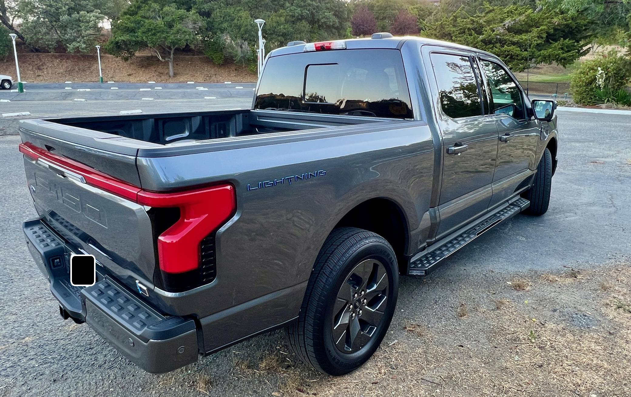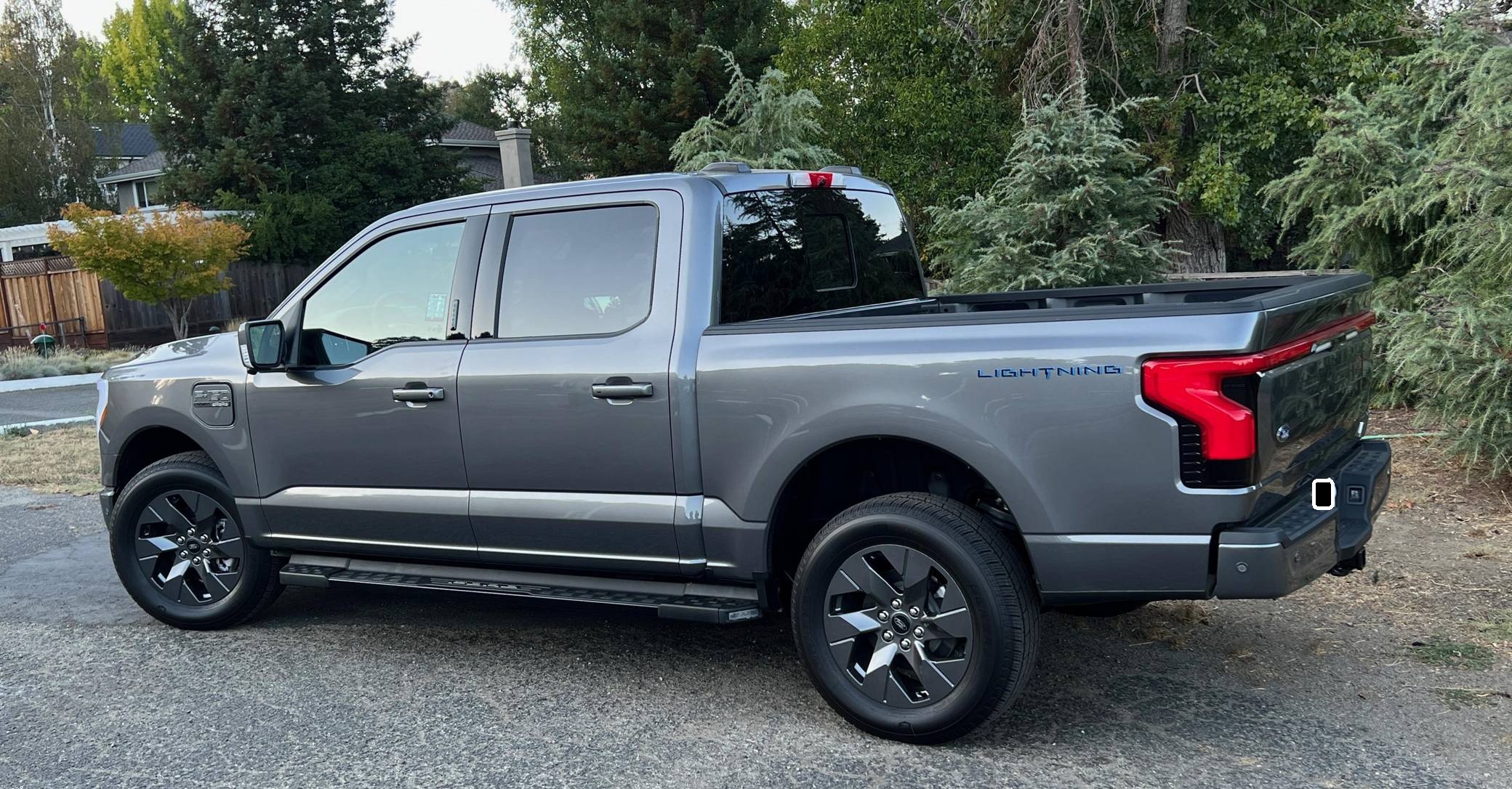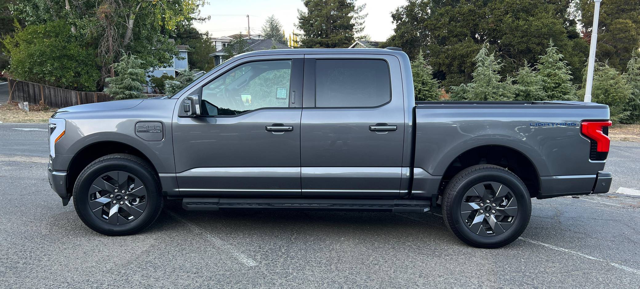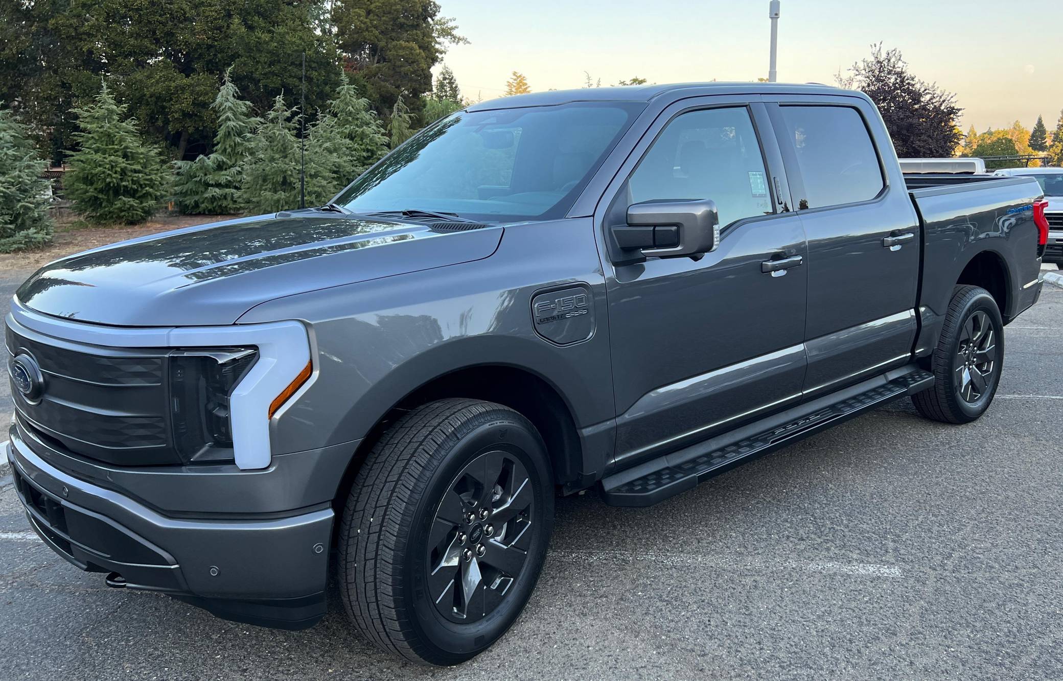THIS. . . is a 2022 Ford F-150 Lightning Lariat, finished in Carbonized Gray Metallic with a black interior. Factory equipment includes 20-inch dark gray alloy wheels, LED headlights, a power-operated tailgate with an integrated assist step, leather upholstery, heated, ventilated, and power-adjustable front seats, a heated steering wheel, power-adjustable pedals, a 15. 5-inch touchscreen for the SYNC4 infotainment system, and an 8-speaker B&O sound system. The seller reports no modifications. Formerly used on a high-performance variant of the F-150, the Lightning nameplate was revived for the 2022 model year by Ford's first series-produced electric truck. Every member of the line-up offers dual electric motors for through-the-road four-wheel drive, but buyers have two battery packs to choose from and driving range varies accordingly. Power comes from a pair of electric motors (one per axle), which draw electricity from a 131-kilowatt-hour lithium-ion battery pack to zap all four wheels with 580 horsepower and 775 lb-ft of torque. The Lightning earned a maximum driving range of 320 miles from the EPA with the extended-range battery.