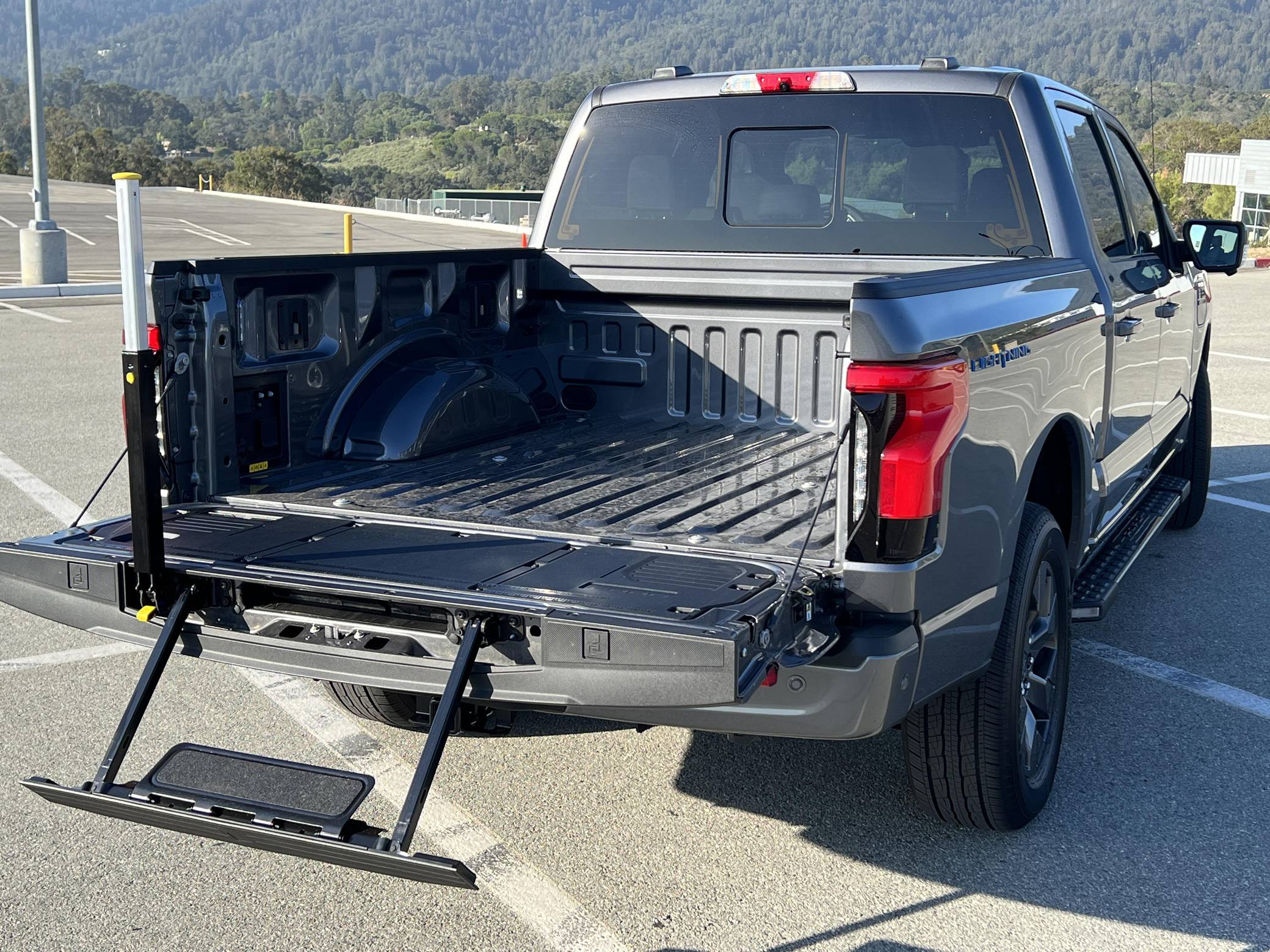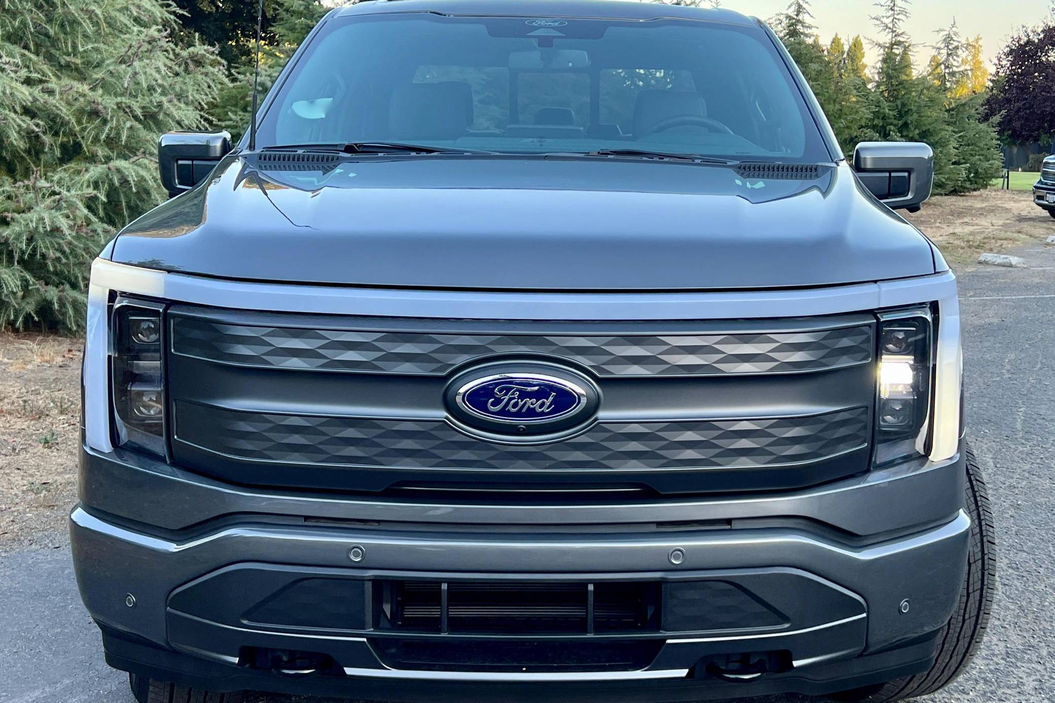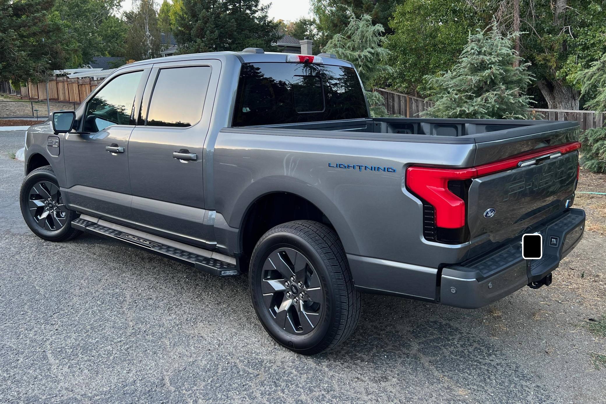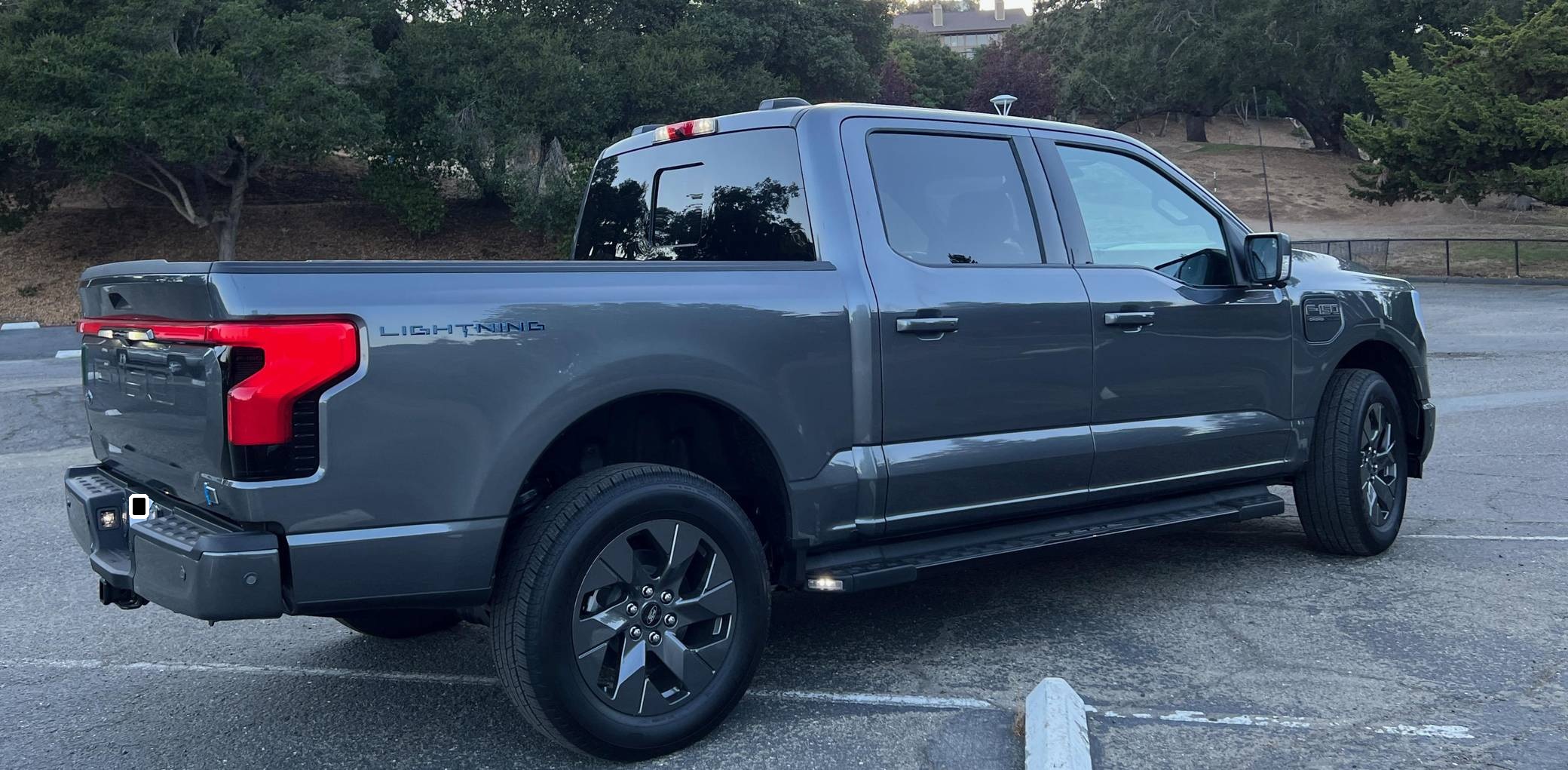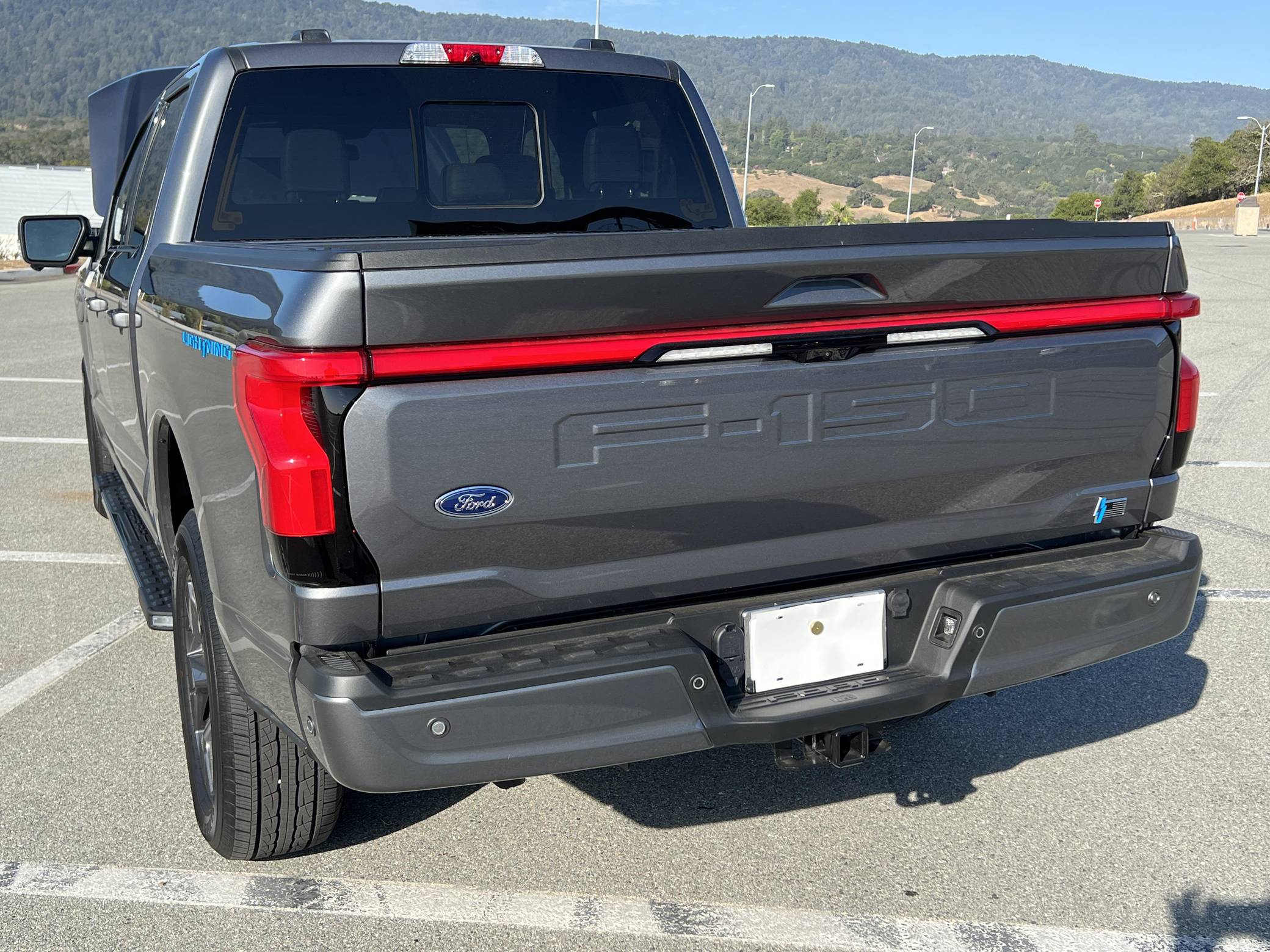 THIS. . . is a 2022 Ford F-150 Lightning Lariat, finished in Carbonized Gray Metallic with a black interior. Factory equipment includes 20-inch dark gray alloy wheels, LED headlights, a power-operated tailgate with an integrated assist step, leather upholstery, heated, ventilated, and power-adjustable front seats, a heated steering wheel, power-adjustable pedals, a 15. 5-inch touchscreen for the SYNC4 infotainment system, and an 8-speaker B&O sound system. The seller reports no modifications. Formerly used on a high-performance variant of the F-150, the Lightning nameplate was revived for the 2022 model year by Ford's first series-produced electric truck. Every member of the line-up offers dual electric motors for through-the-road four-wheel drive, but buyers have two battery packs to choose from and driving range varies accordingly. Power comes from a pair of electric motors (one per axle), which draw electricity from a 131-kilowatt-hour lithium-ion battery pack to zap all four wheels with 580 horsepower and 775 lb-ft of torque. The Lightning earned a maximum driving range of 320 miles from the EPA with the extended-range battery.