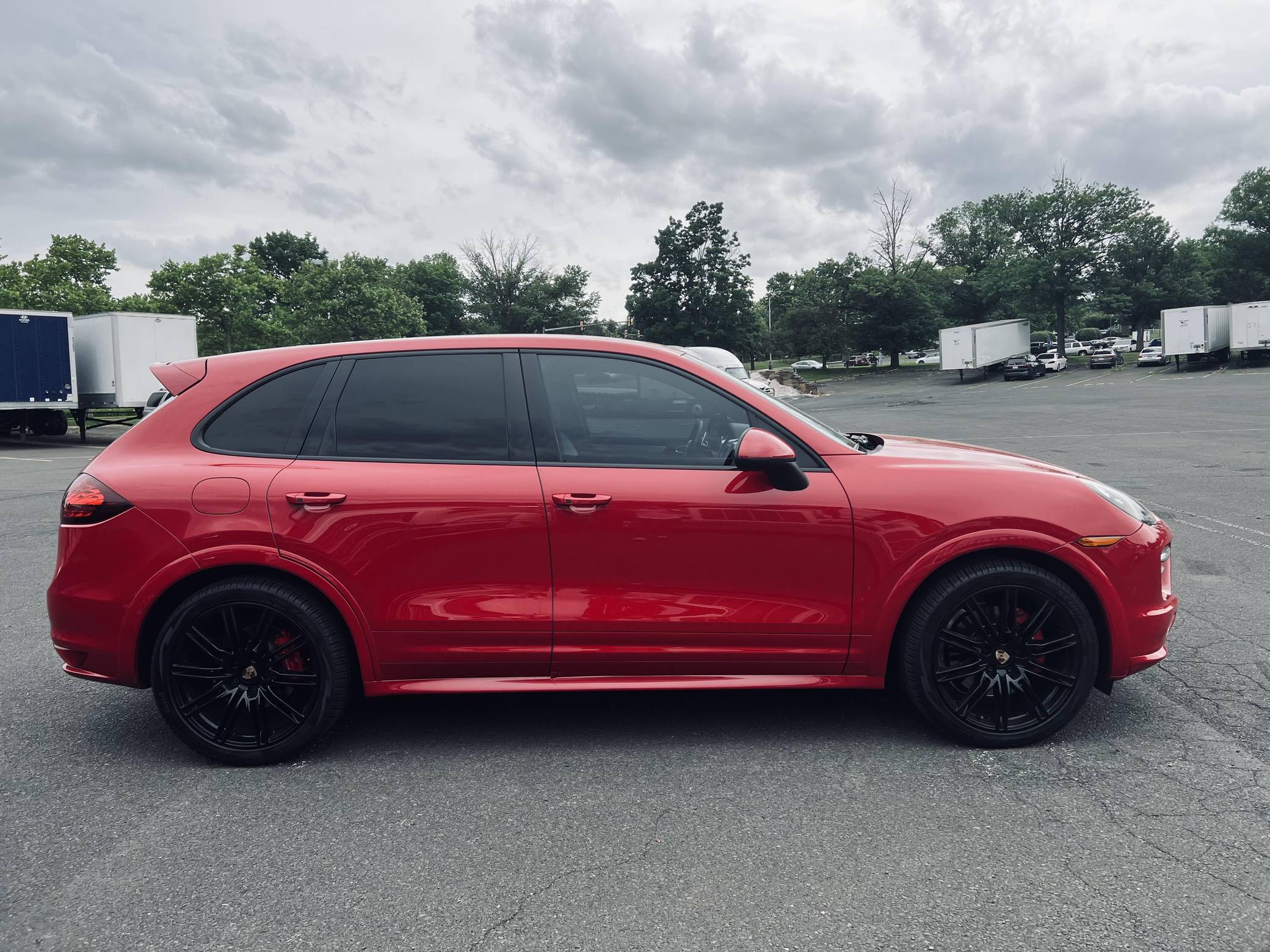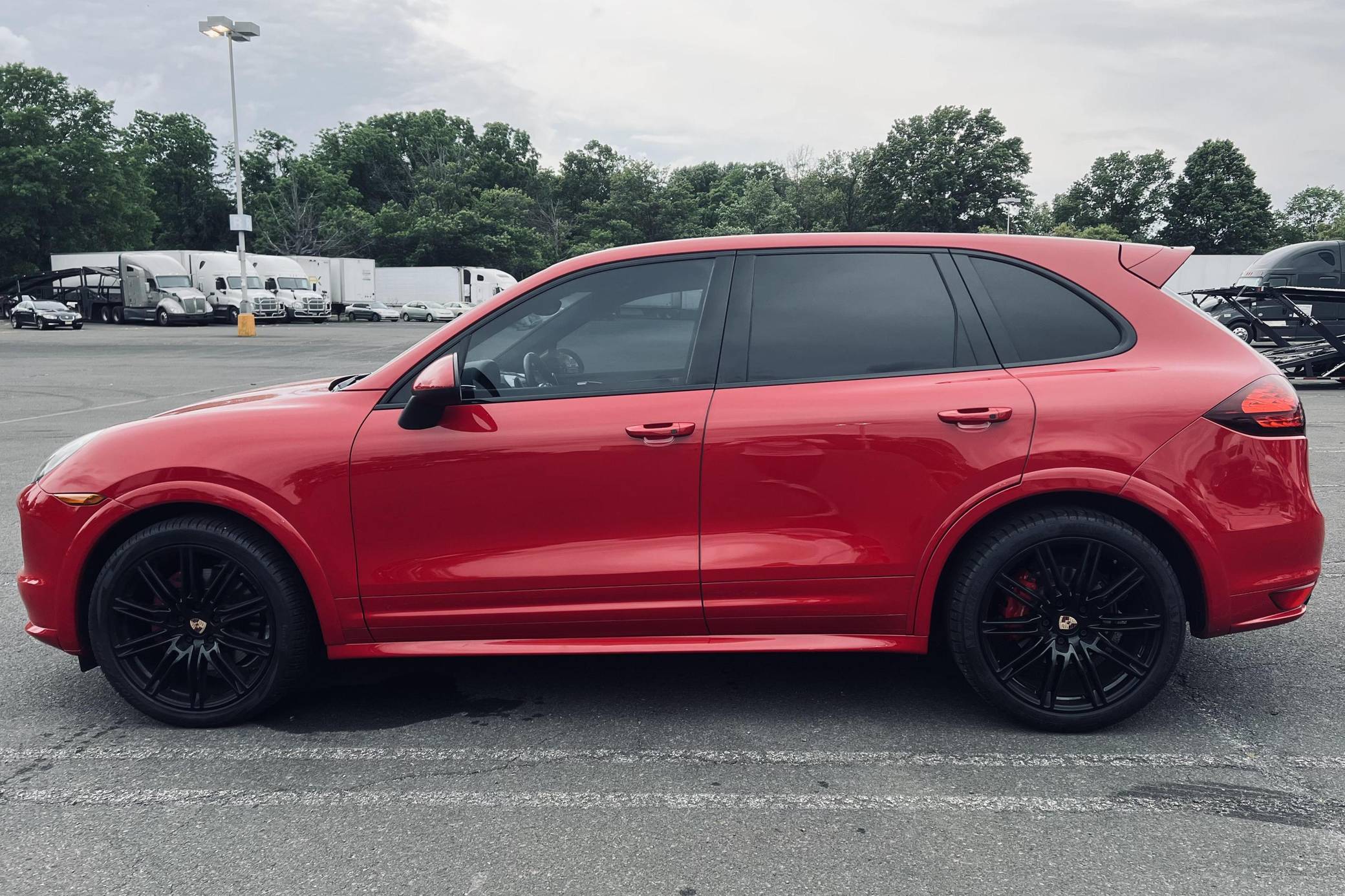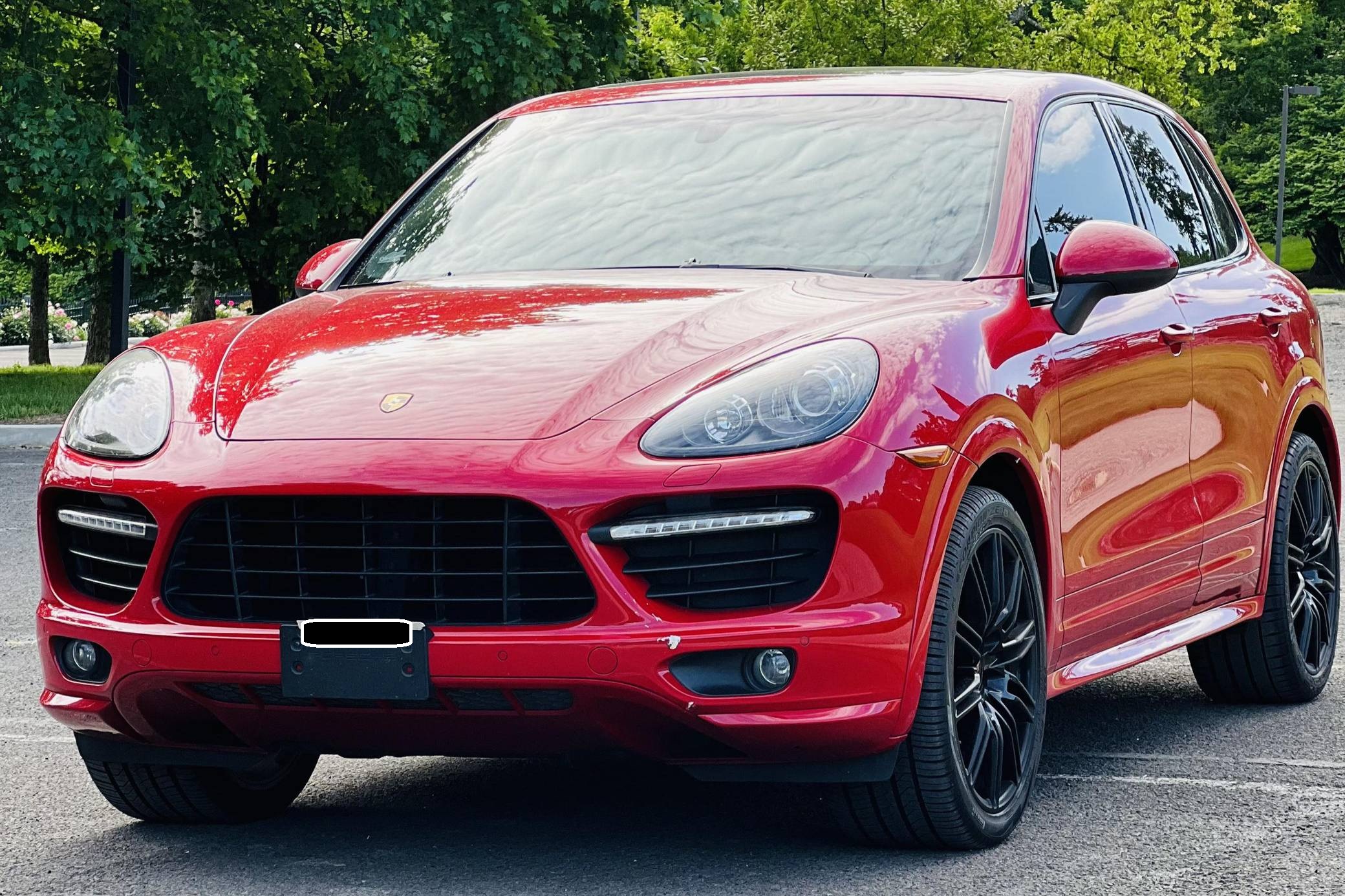 THIS… is a 2013 Porsche Cayenne GTS, finished in Carmine Red with a black/Carmine Red interior. According to the Monroney Label provided in the gallery, factory equipment includes the GTS interior package with Carmine Red accents, the Sport Chrono Package Plus, 21-inch Cayenne Sport Edition wheels, PASM air suspension, bi-xenon headlights with PDLS, panoramic sunroof, power-adjustable and heated front seats, a Bose surround sound system, and more as listed below. Modifications reported by the seller are limited to an aftermarket rear seat entertainment system and tinted windows. Released for 2011, the second-generation Cayenne (called "958" internally) was slightly bigger and significantly lighter than its predecessor. It offered a smoother ride thanks to additional technology and luxury features, it was just as capable off-road, and critics agreed it was noticeably sportier than its predecessor. Production ended in 2017. The Cayenne GTS features several upgrades over the standard Cayenne S including 20 additional horsepower, a sport exhaust system, and 21-inch wheels. GTS visual enhancements include the SportDesign package with side skirts and high-gloss black exterior trim. Power comes from a 4. 8-liter V8, rated at 420 horsepower and 380 lb-ft of torque. Output is sent to all four wheels via an 8-speed automatic transmission.