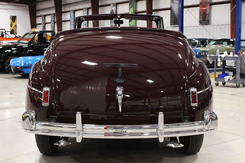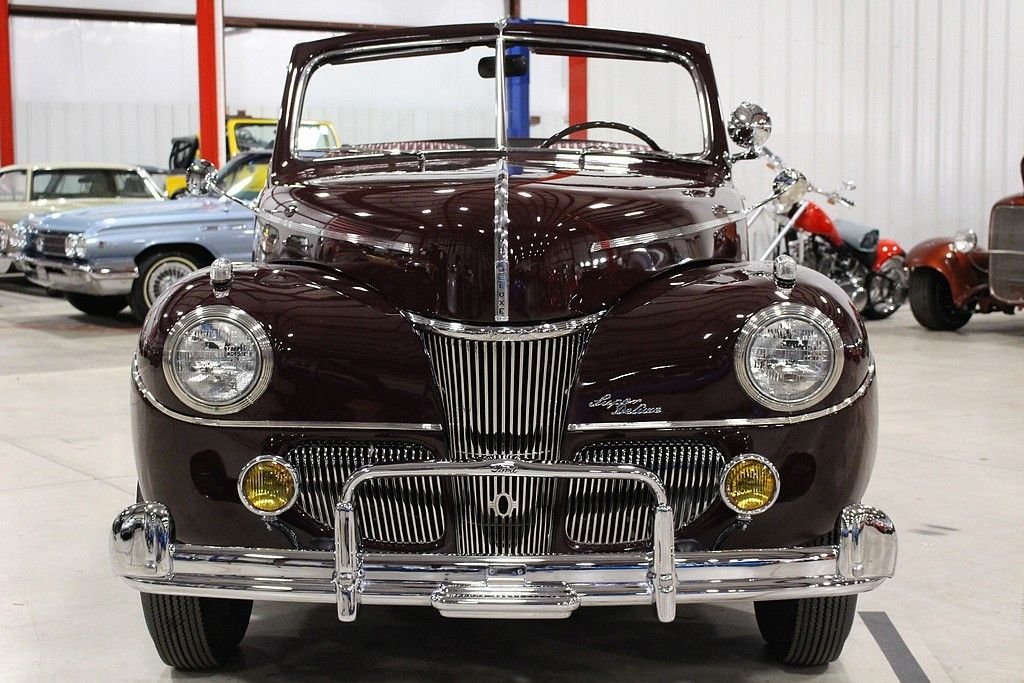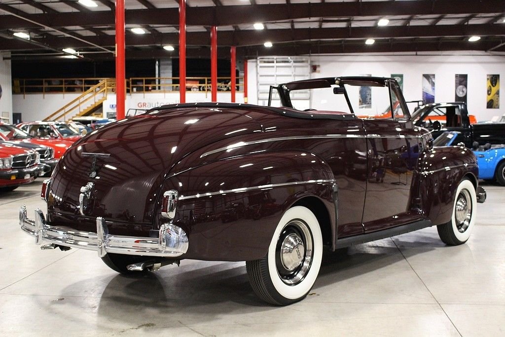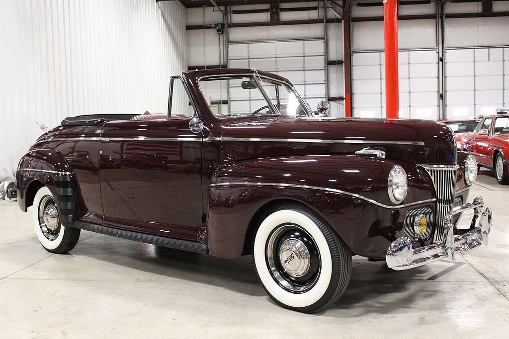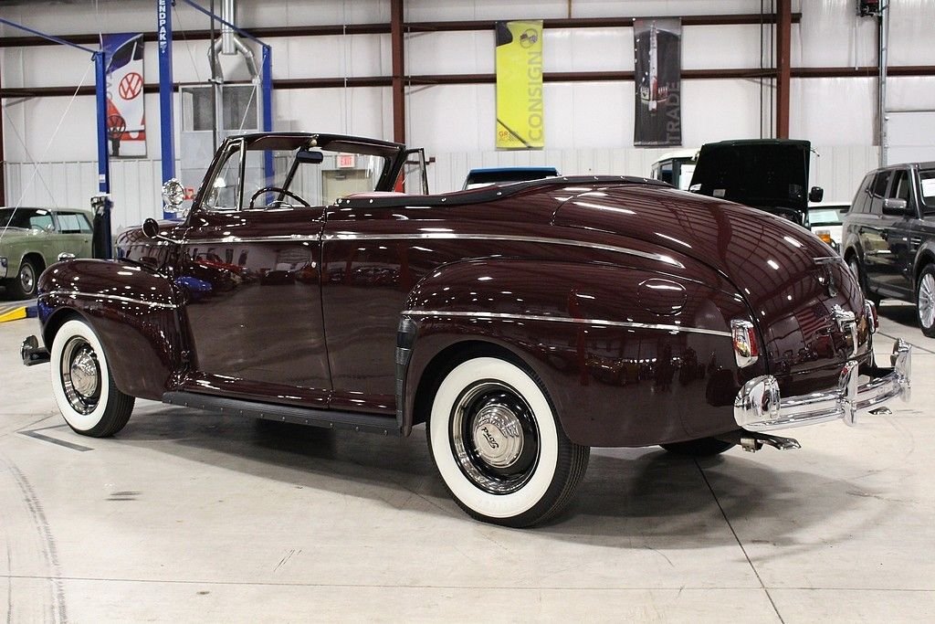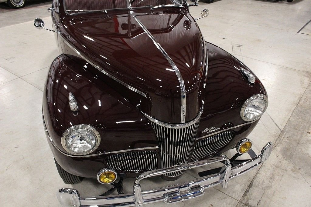 Ford's successor to the Model 48 used trim packages of “Deluxe” and “Super Deluxe” to for all intents and purposes bridge the gap between a “standard” Ford and the luxury Lincoln offering. While Henry Ford was very resistant to change on the mechanical side of things, Edsel Ford and his design crew had free reign. The '41 models were the first of the “fat Fords”, and the model with options that included different trims, a 6 cylinder option, and several different colors boosted sales and got Ford through the war years. This '41 Ford is an absolute stud. It's a head turner that has been restored and maintained to stock standards and it is a collector's dream. Its curb appeal is difficult to match with gorgeous lines and chrome accents offsetting the factory color of Mayfair Maroon. It's powered by a rebuilt 221ci V8 engine mated with 3-speed column shift manual transmission. This car runs and drives great. It was restored in North Carolina in 2002, and then selectively restored to bring it up to the current showroom excellent condition in 2011. We hold the receipts from all the repairs and work done. It's a true full classic restored to original looks and one of the finer examples you'll ever see.
