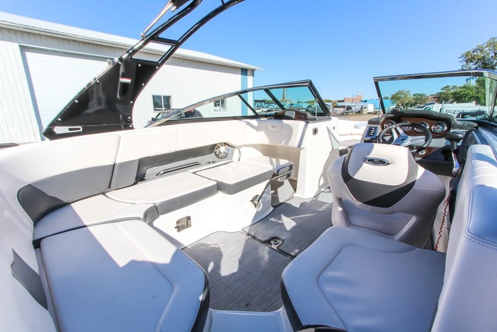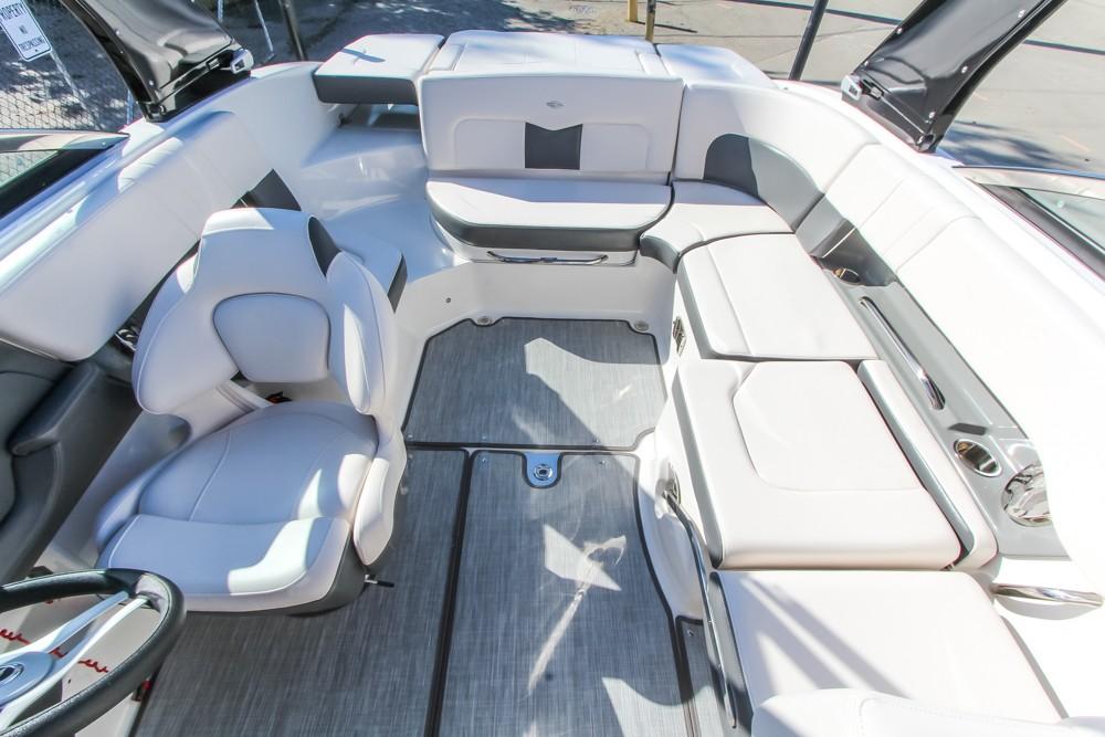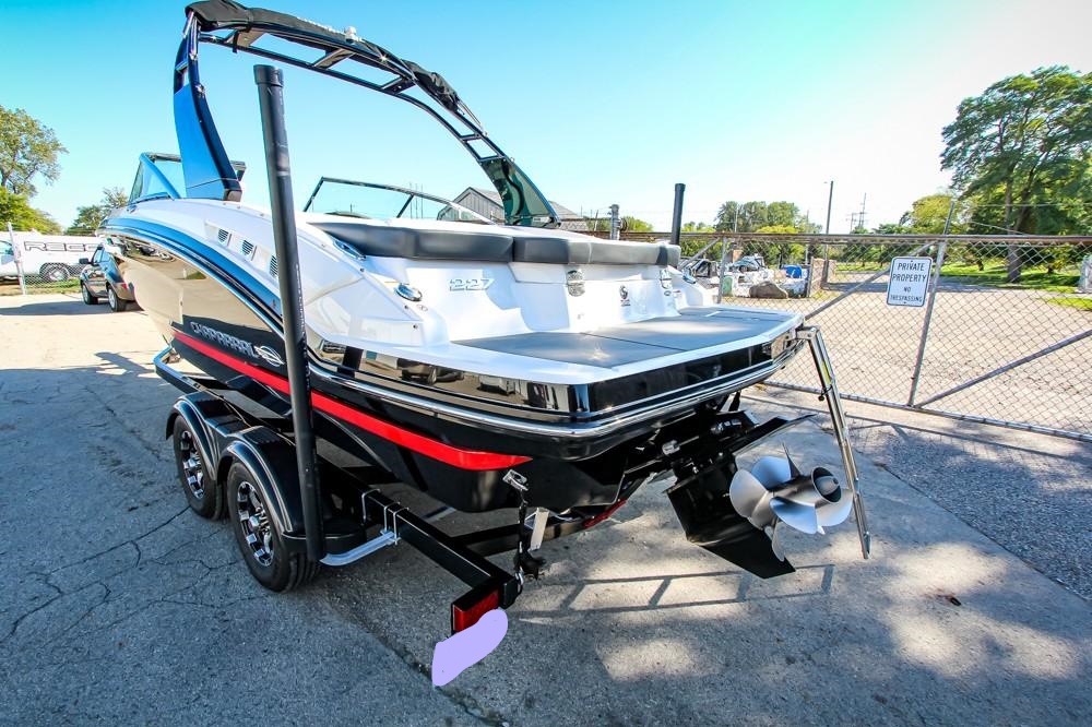 The 227 SSX packs more elegance, performance, and innovation than family boaters have ever experienced at this popular length. There’s no mistaking that the style lines, attention to detail, and efficient use of space are SSX at their very best. Compared to other luxury bowriders in this size range, the 227 has a clear cut edge when it comes to seating capacity, legroom, storage space, and performance. Upgraded options on this boat include the swim platform logo mat, dual battery with switch, tandem axle trailer with aluminum wheels, fire extinguishing system, snap-in flooring, folding arch tower with bimini top, cockpit and bow covers, galvanized anchor.