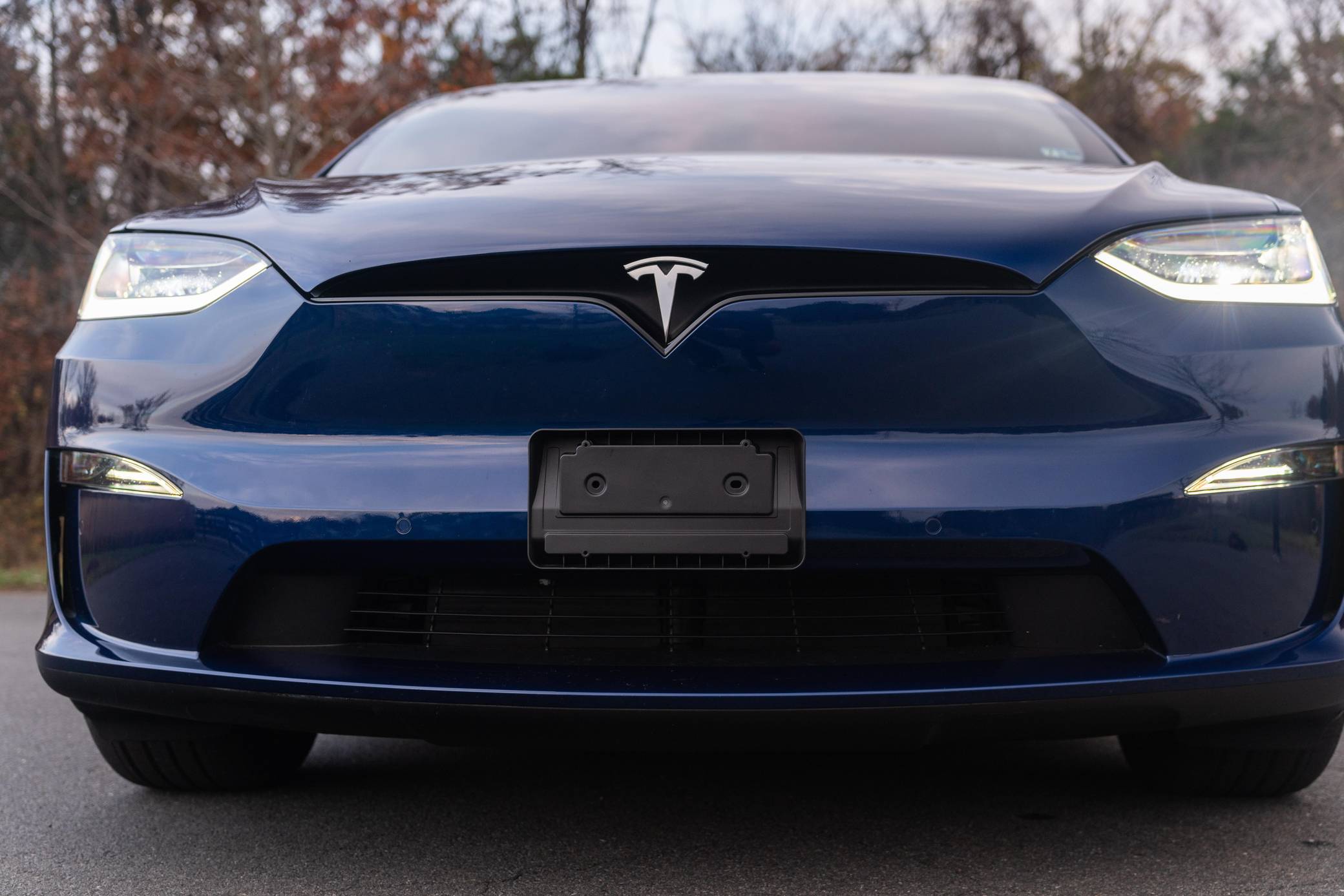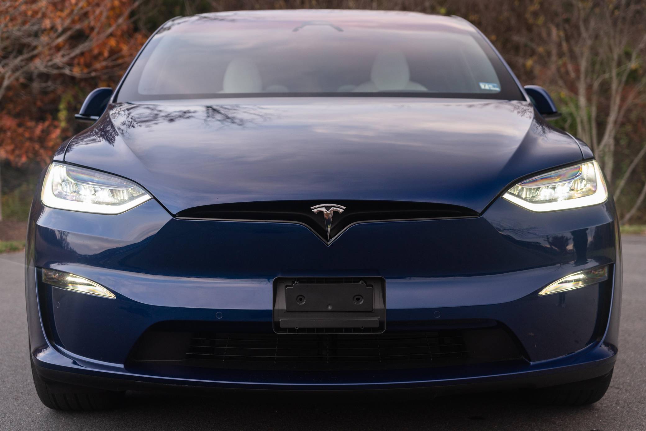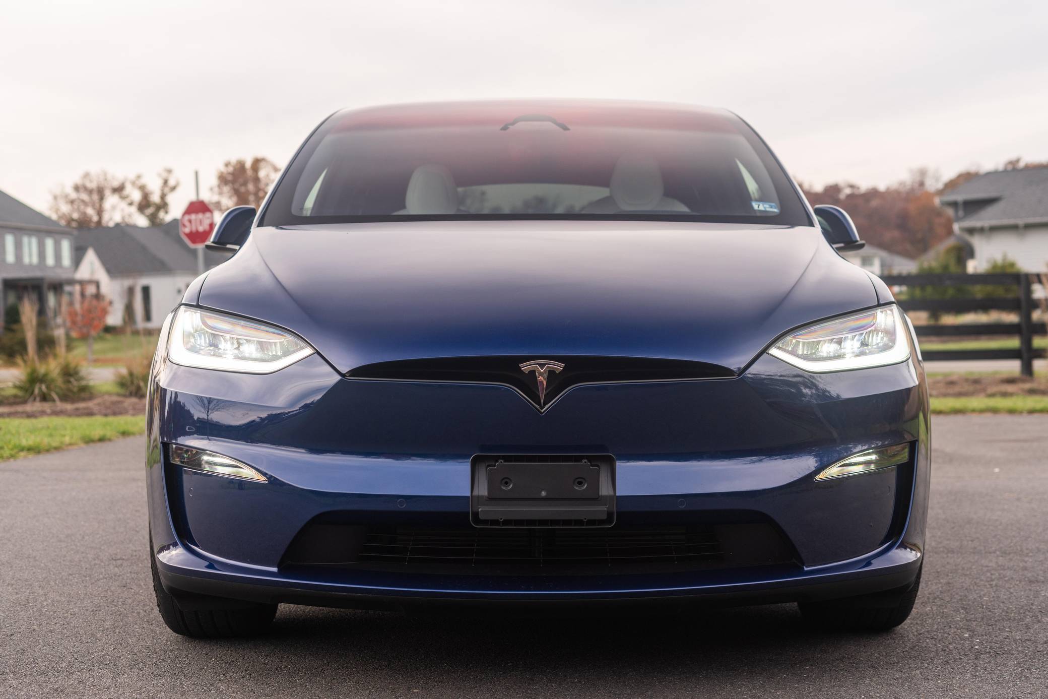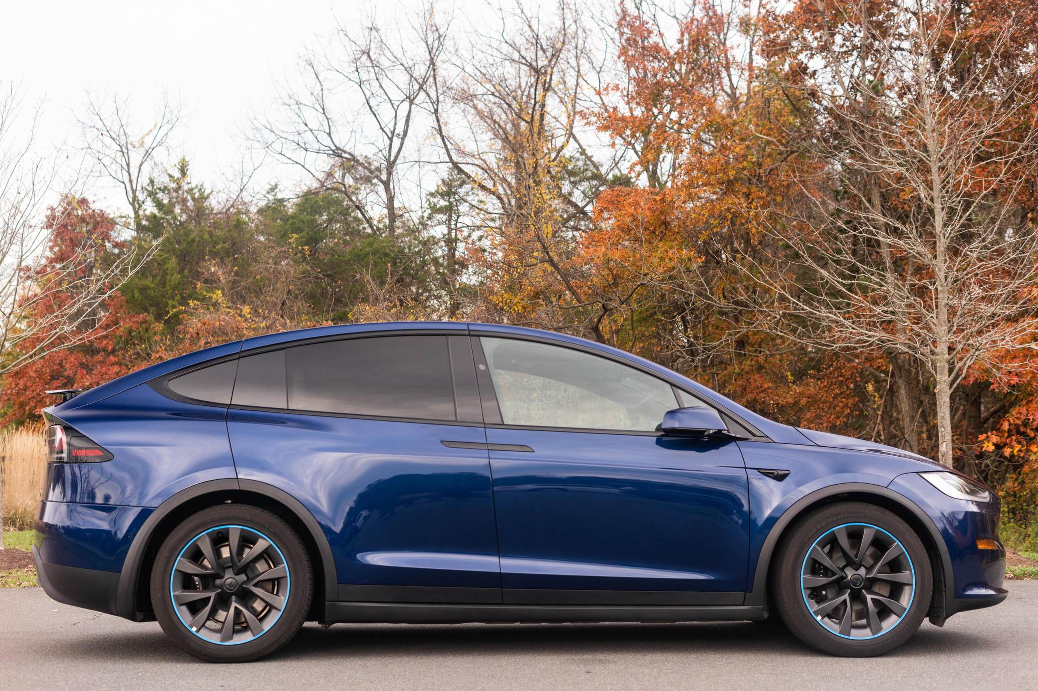 THIS. . . is a 2022 Tesla Model X Plaid, finished in Deep Blue Metallic with a black and white interior. Factory equipment includes 20-inch "Cyberstream" wheels, a rear spoiler, carbon fiber interior trim, heated, ventilated, and power-adjustable front seats, heated second-row seats, heated and folding third-row seats, a Yoke steering wheel, a panoramic windshield, a 17-inch touchscreen for the infotainment system, and a 22-speaker sound system. Modifications reported by the seller are limited to Rimsavers on the wheels. Tesla introduced the Model X for the 2016 model year as a taller, more spacious alternative to the Model S. It stood out from other crossovers with unusual double-hinged falcon rear doors. It has gone through several powertrain and interior evolutions since its launch, and it's still available new today. Power comes from three electric motors, which draw electricity from a 100-kilowatt-hour lithium-ion battery pack to zap the four wheels with 1,020 horsepower. Fitted with 20-inch wheels, the Model X Plaid earned a maximum driving range rating of 333 miles from the EPA.