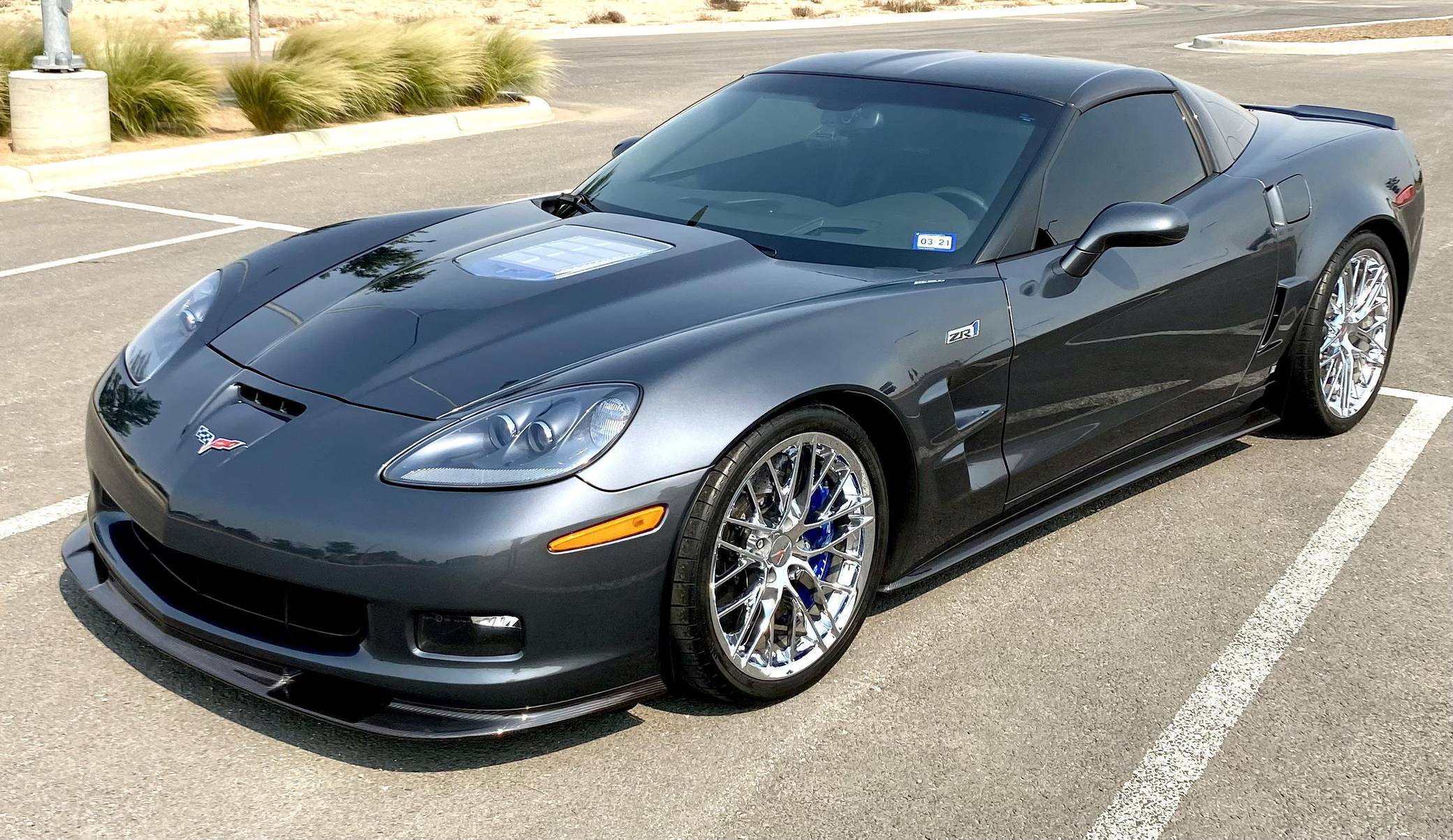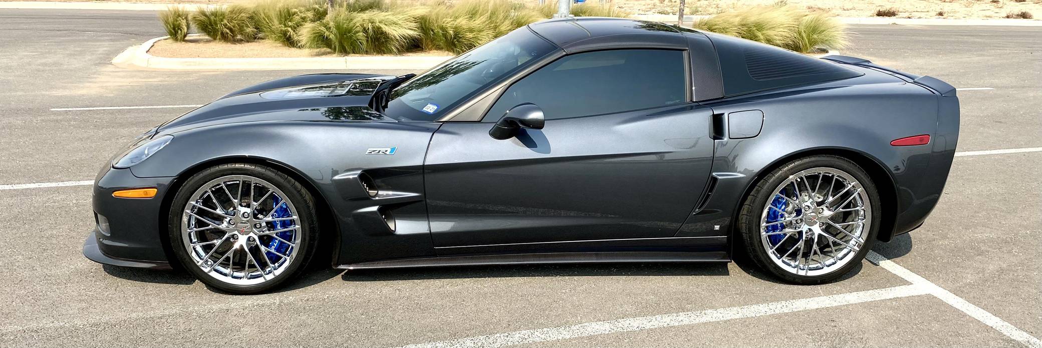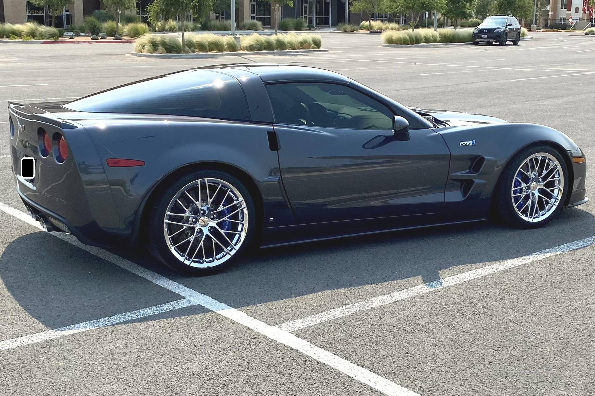 2009 Chevrolet Corvette ZR1, finished in Cyber Gray Metallic with an Ebony interior. This Corvette ZR1 is equipped with a 6-speed manual transmission, and its odometer currently displays about 10,500 miles. Modifications reported by the seller are limited to a Kenwood DDX9705S head unit and a rear-view camera. After years of rumors and speculation, Chevrolet dusted off the storied ZR1 nameplate and put it on a track-ready evolution of the sixth-generation Corvette. Carbon fiber components (like the fenders and the roof panel) kept weight in check, while a polycarbonate window in the hood let enthusiasts see the supercharged V8 in the engine bay. Several suspension modifications further set the ZR1 apart from other variants of the "C6" Corvette. Launched for 2009, the ZR1 was presented as the fastest and most powerful series-produced car ever released by General Motors. Production ended in 2013. Power comes from an "LS9" 6. 2-liter supercharged V8, rated at 638 horsepower and 604 lb-ft of torque. Output is sent to the rear wheels via a 6-speed manual transmission.