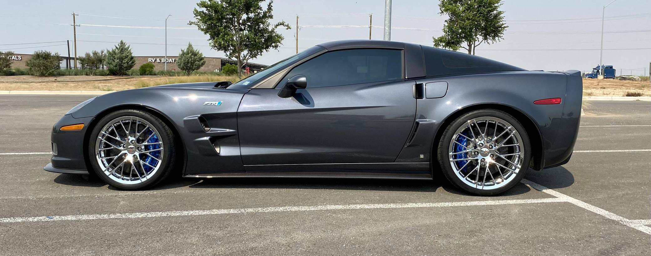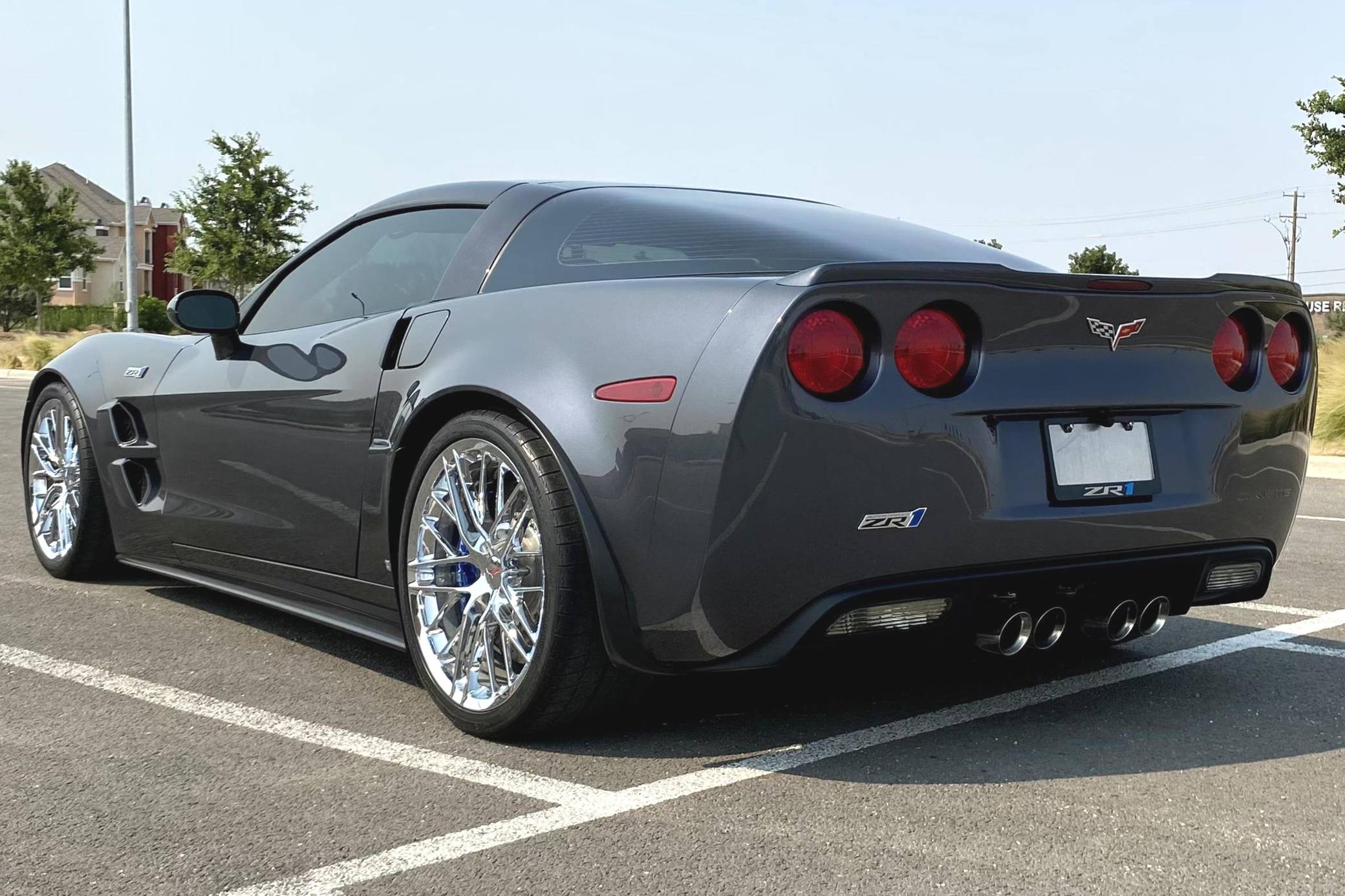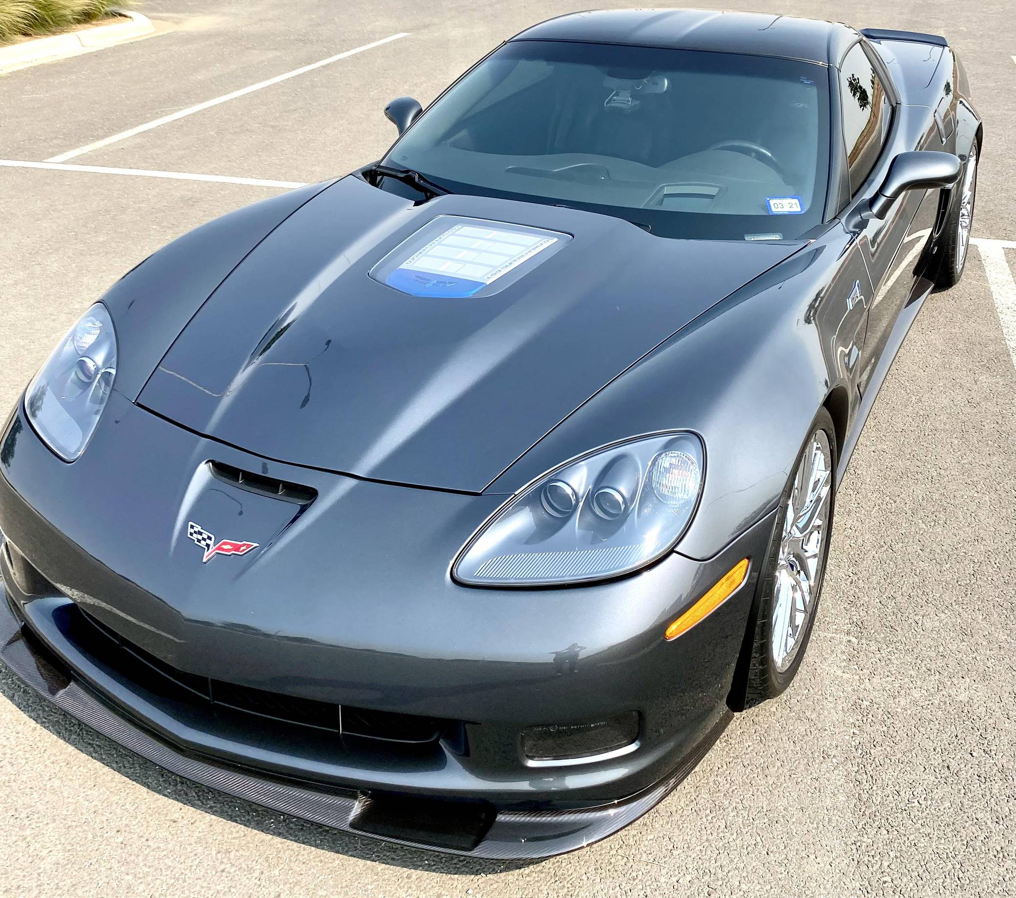 2009 Chevrolet Corvette ZR1, finished in Cyber Gray Metallic with an Ebony interior. This Corvette ZR1 is equipped with a 6-speed manual transmission, and its odometer currently displays about 10,500 miles. Modifications reported by the seller are limited to a Kenwood DDX9705S head unit and a rear-view camera. After years of rumors and speculation, Chevrolet dusted off the storied ZR1 nameplate and put it on a track-ready evolution of the sixth-generation Corvette. Carbon fiber components (like the fenders and the roof panel) kept weight in check, while a polycarbonate window in the hood let enthusiasts see the supercharged V8 in the engine bay. Several suspension modifications further set the ZR1 apart from other variants of the "C6" Corvette. Launched for 2009, the ZR1 was presented as the fastest and most powerful series-produced car ever released by General Motors. Production ended in 2013. Power comes from an "LS9" 6. 2-liter supercharged V8, rated at 638 horsepower and 604 lb-ft of torque. Output is sent to the rear wheels via a 6-speed manual transmission.