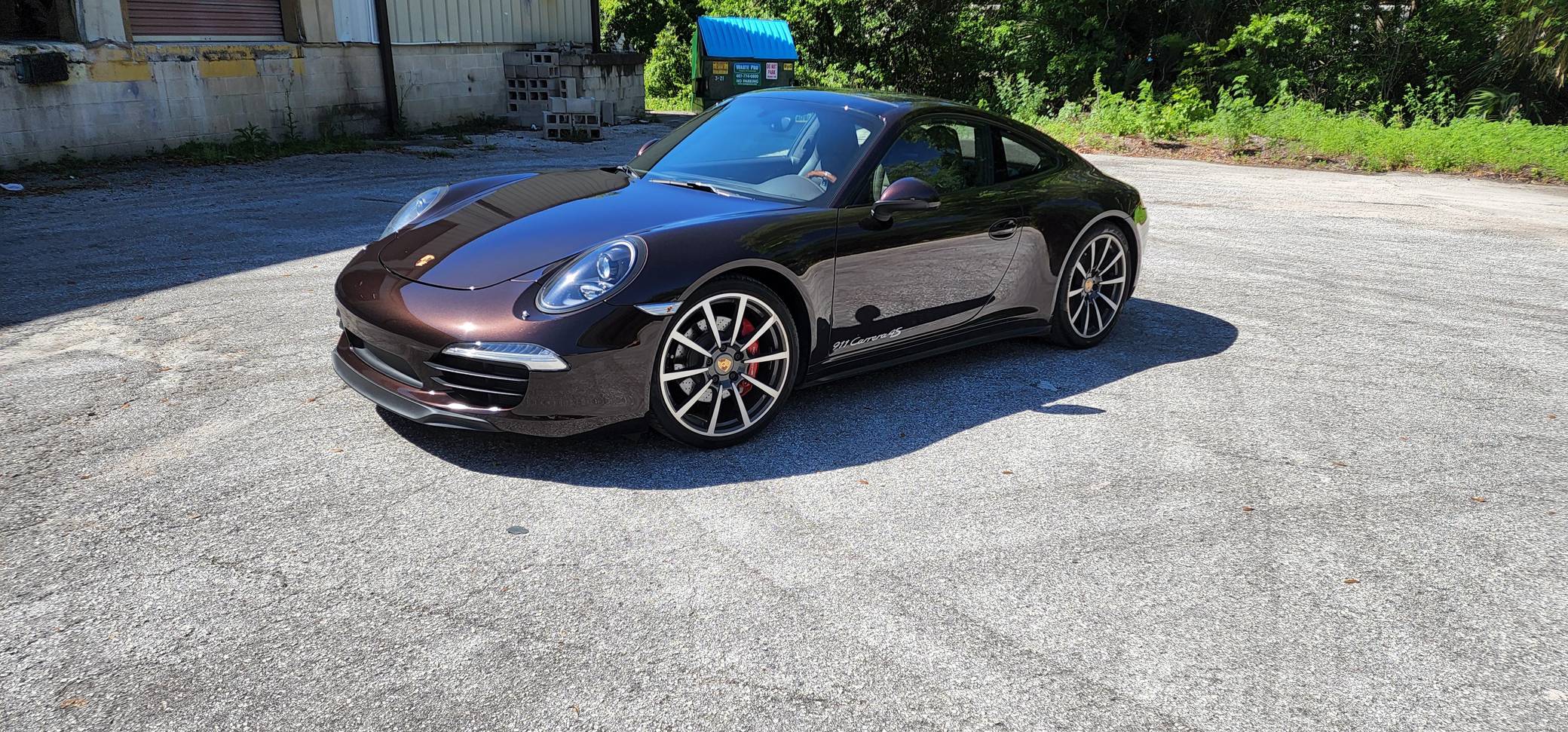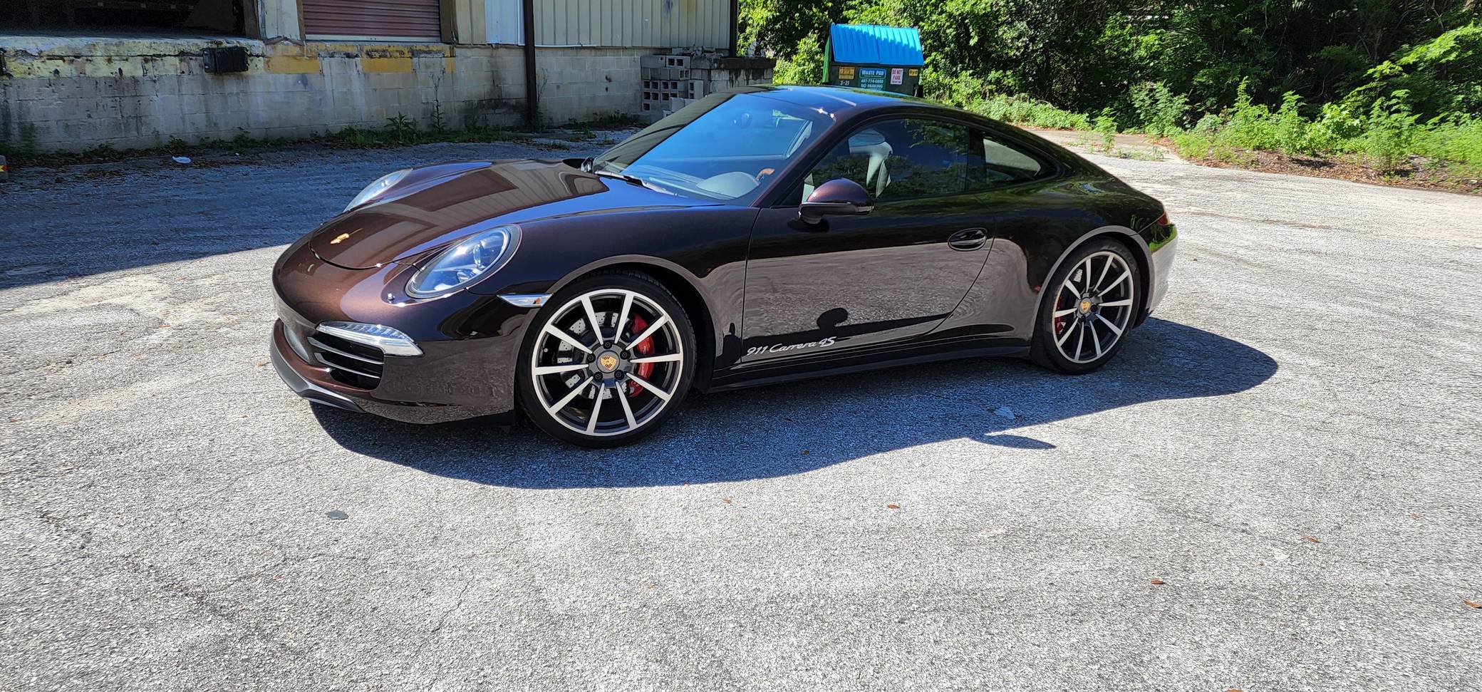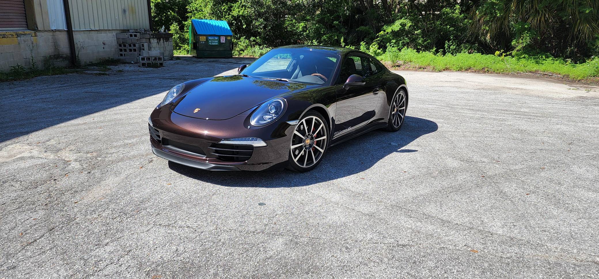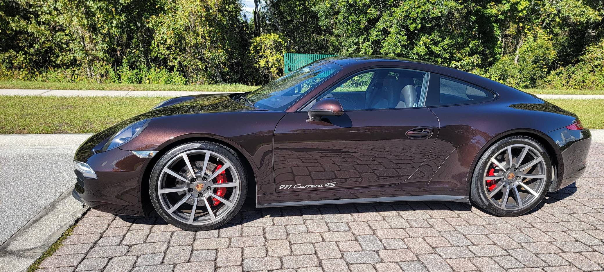 2013 Porsche 911 Carrera 4S Coupe, finished in Mahogany Metallic with an Espresso interior. Equipped with the Premium Package, 20-inch Carrera Classic wheels, Porsche Dynamic Chassis Control (PDCC) with PASM sport suspension, a sunroof, a sport exhaust system, natural leather upholstery with mahogany wood trim, a Bose sound system, and more as detailed below. Modifications reported by the seller are limited to paint protection film applied to the rear wheel arches. The "991. 1" 911 marked a major shift from previous water-cooled generations, furthering the 911's reputation as an everyday usable sports car. The lengthened wheelbase, increased naturally-aspirated power, and a more refined interior have gone on to make this generation of 911 a perennial favorite among enthusiasts. The Carrera 4S model sets itself apart from other Carreras with its active all-wheel drive system, wider fenders, revised front air intakes, 6-piston front brake calipers, and a continuous light strip across the rear end. Power comes from a 3. 8-liter flat-6, rated at 400 horsepower and 325 lb-ft of torque. Output is sent to all four wheels through a 7-speed "PDK" dual-clutch automatic transmission.