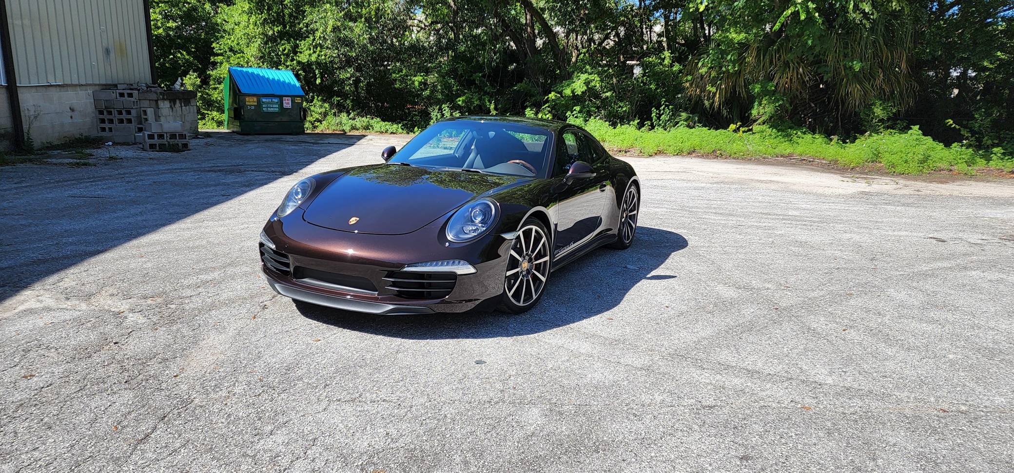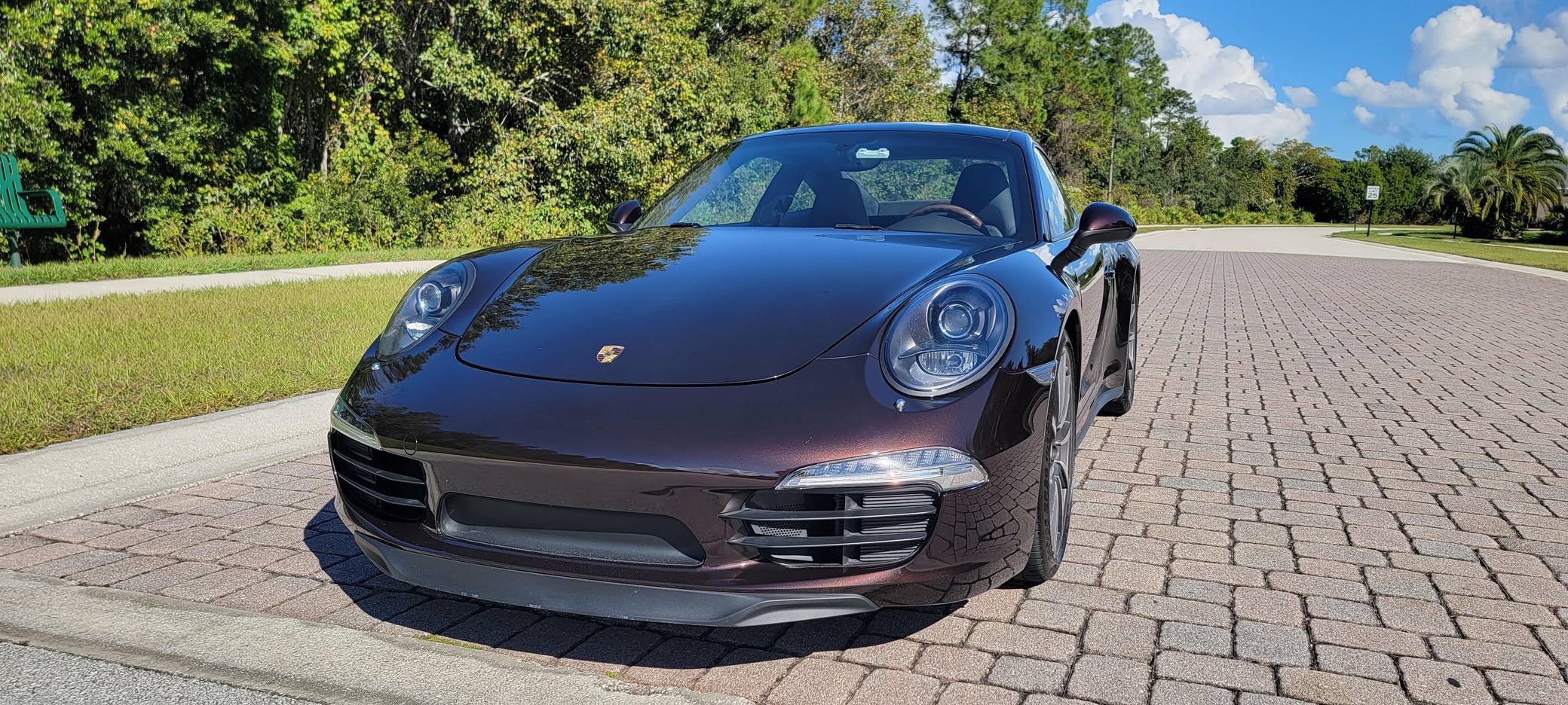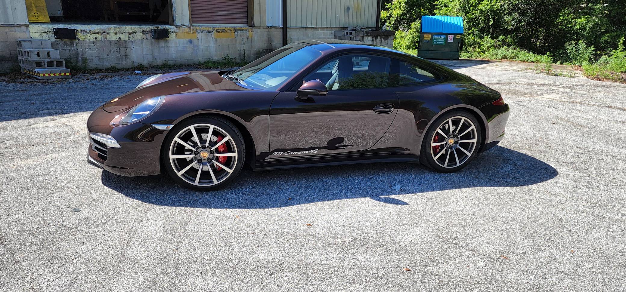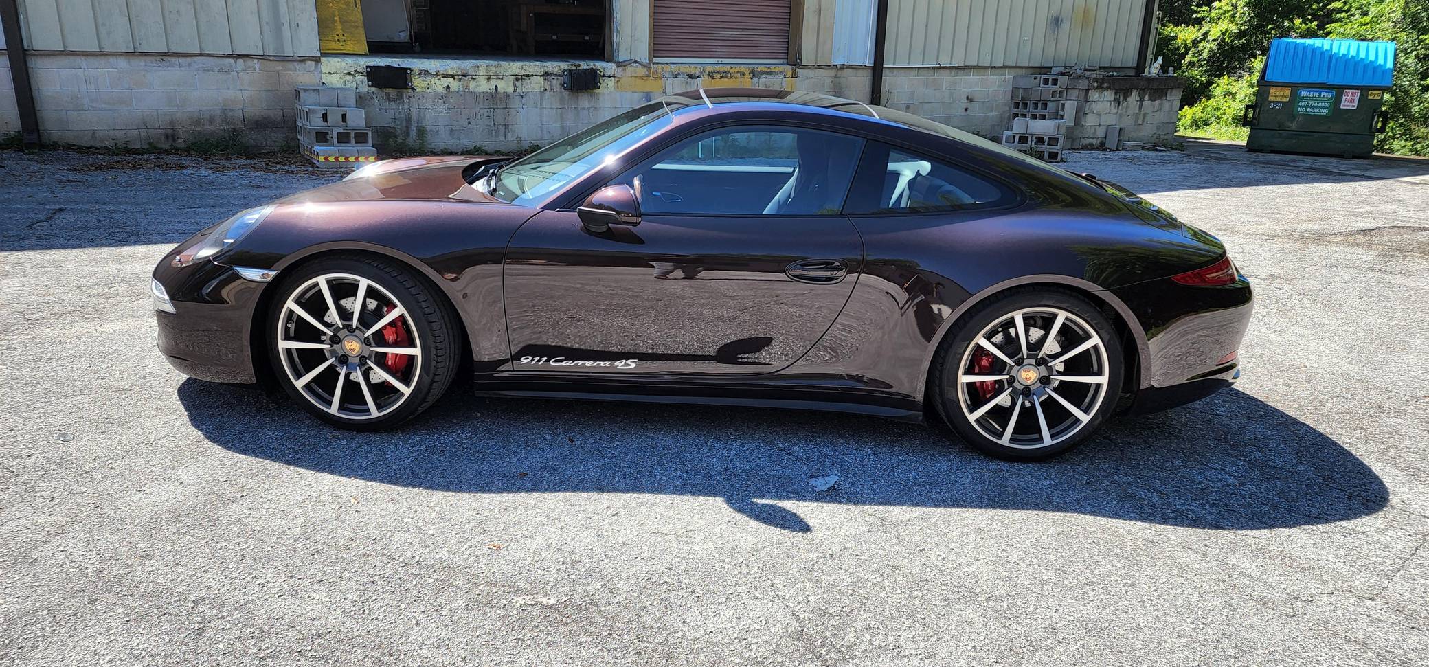 2013 Porsche 911 Carrera 4S Coupe, finished in Mahogany Metallic with an Espresso interior. Equipped with the Premium Package, 20-inch Carrera Classic wheels, Porsche Dynamic Chassis Control (PDCC) with PASM sport suspension, a sunroof, a sport exhaust system, natural leather upholstery with mahogany wood trim, a Bose sound system, and more as detailed below. Modifications reported by the seller are limited to paint protection film applied to the rear wheel arches. The "991. 1" 911 marked a major shift from previous water-cooled generations, furthering the 911's reputation as an everyday usable sports car. The lengthened wheelbase, increased naturally-aspirated power, and a more refined interior have gone on to make this generation of 911 a perennial favorite among enthusiasts. The Carrera 4S model sets itself apart from other Carreras with its active all-wheel drive system, wider fenders, revised front air intakes, 6-piston front brake calipers, and a continuous light strip across the rear end. Power comes from a 3. 8-liter flat-6, rated at 400 horsepower and 325 lb-ft of torque. Output is sent to all four wheels through a 7-speed "PDK" dual-clutch automatic transmission.