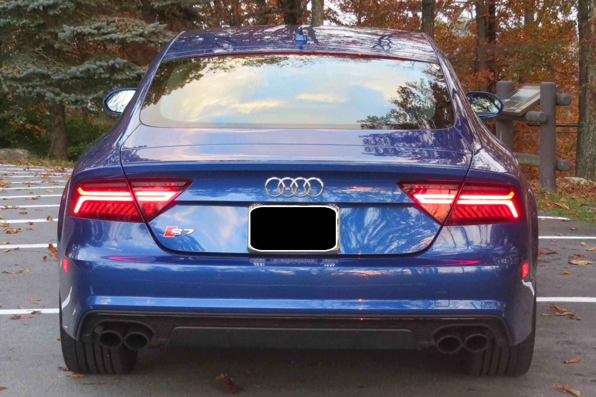 2018 Audi S7, finished in Sepang Blue with an Arras Red interior. Some highlights include a 1 of 1 color combination, the Black Optics, Prestige, Driver Assistance, and S Sport Packages, Quattro all-wheel-drive, Bose sound system, and more detailed below. The seller reports no modifications. Audi launched the first-generation A7 for the 2012 model year as its style icon, and it expanded the range with the V8-powered S7 for 2013. Both were related to the A6 under the sheet metal, but they stood out with a gorgeous design that earned them the Sportback label. They were quick, luxurious, and surprisingly practical thanks to a large hatch. Power for this S7 comes from a turbocharged 4. 0-liter V8 engine, which produces 450 horsepower and 406 lb-ft of torque. It spins the 4 wheels via a 7-speed automatic transmission and Audi's permanent Quattro all-wheel-drive system.