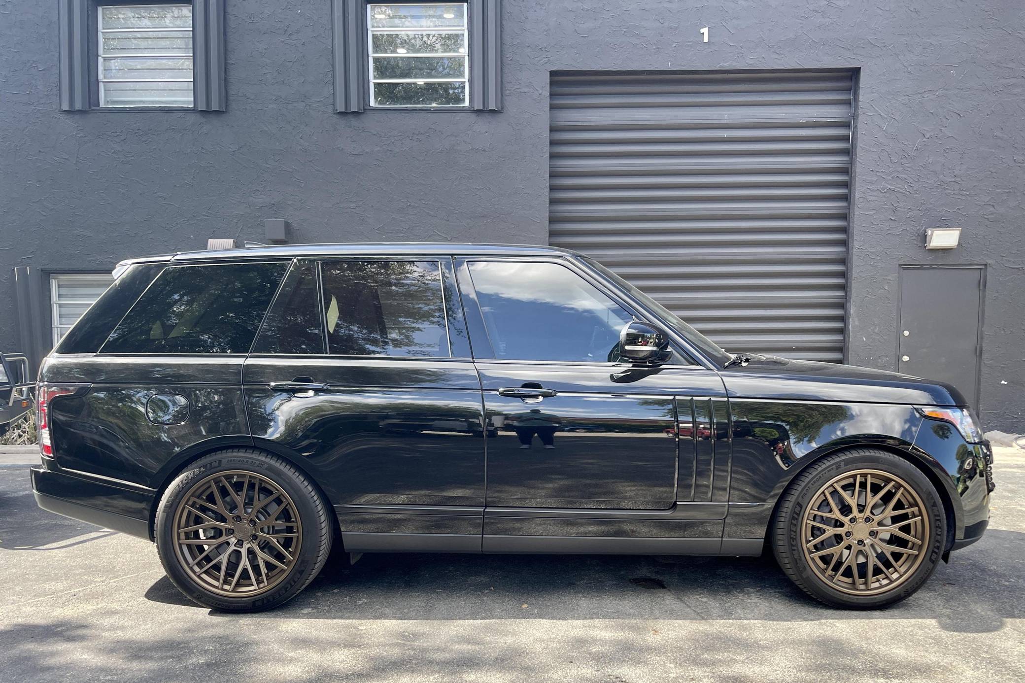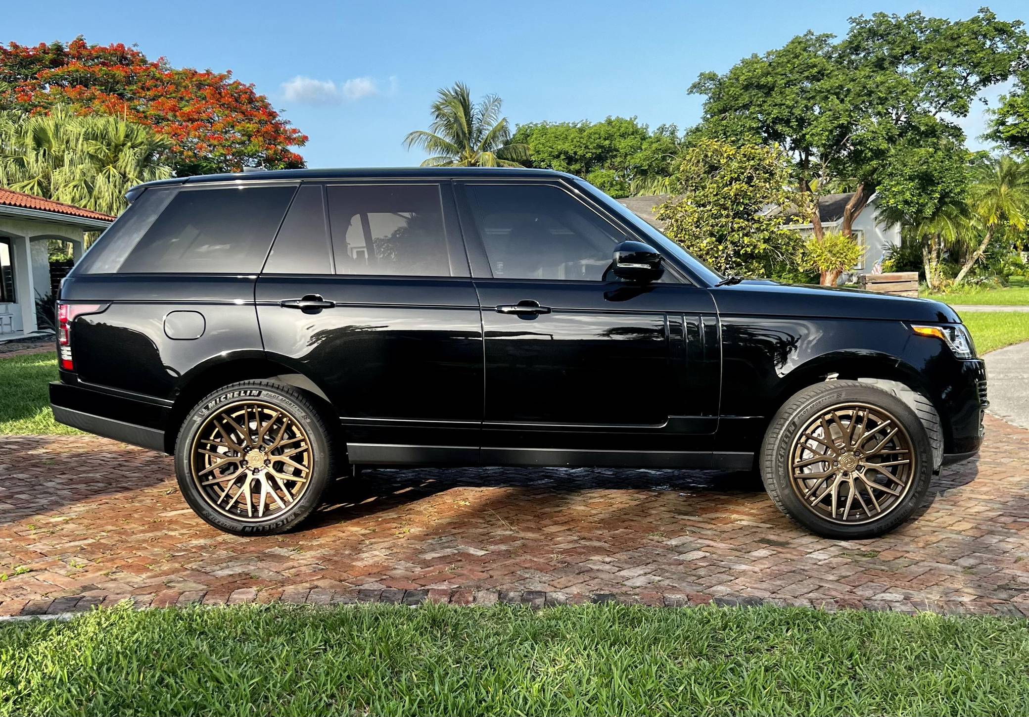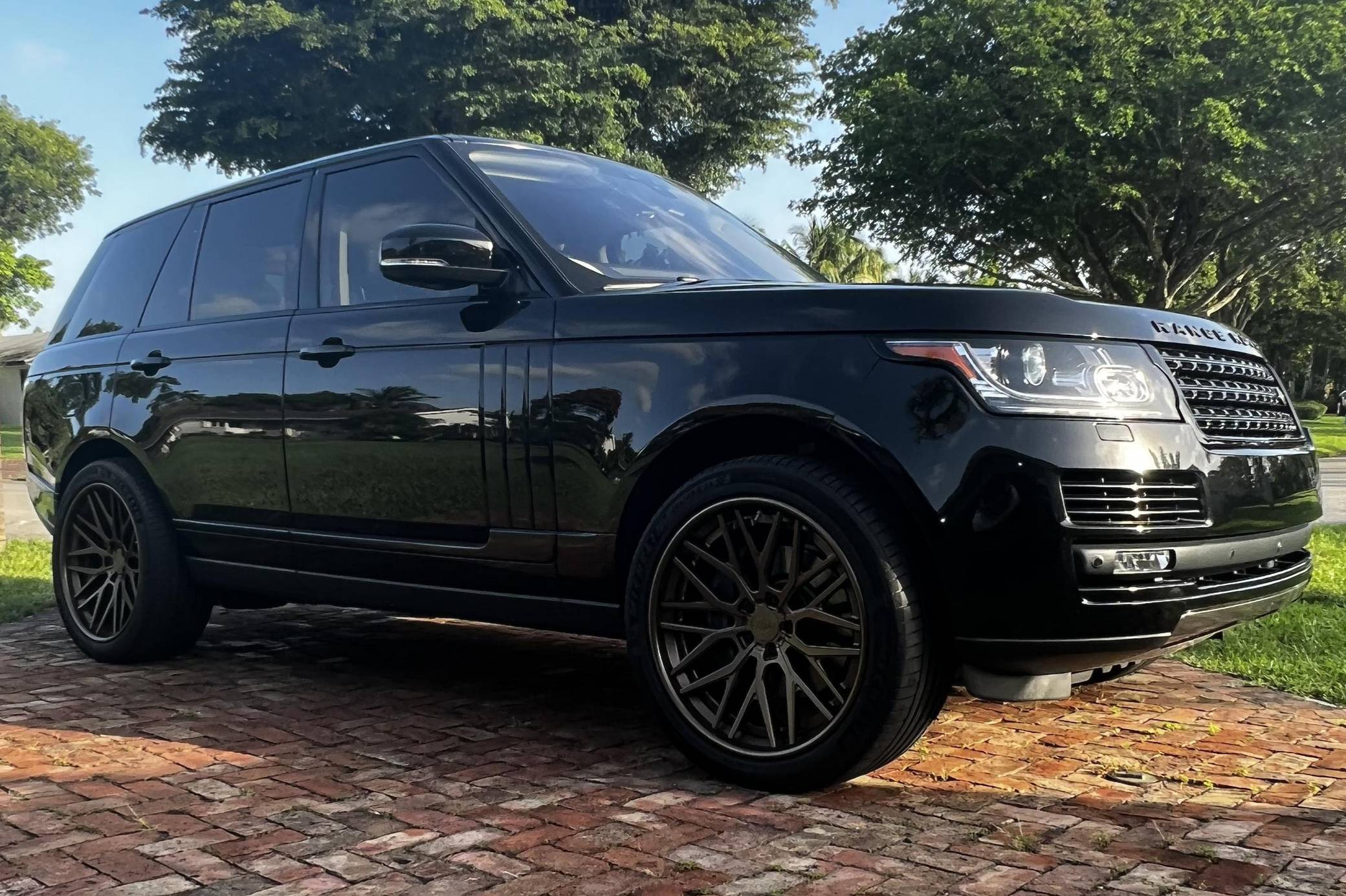 2017 Range Rover Supercharged, finished in Santorini Black with an Ebony interior. Factory equipment includes an adjustable air suspension system, adaptive xenon headlights, a sunroof, soft-close doors, wood interior trim, heated, ventilated, and power-adjustable front seats, heated and reclining rear seats, a heated steering wheel, a 10-inch touchscreen for the InControl Touch Pro infotainment system, a Meridian sound system, and Dynamic Response technology. Modifications reported by the seller are limited to 22-inch Strasse wheels and tinted windows. Called "L405" internally, the fourth-generation Range Rover made its debut for the 2013 model year with a sleeker-looking exterior design that improved the drag coefficient, more space for the rear passengers, and a much longer list of standard and optional tech features. Land Rover also relied on aluminum to make the big SUV about 700 pounds lighter than its predecessor, and it gave buyers more personalization options. Production of the L405-generation Range Rover ended in 2021. Power comes from a 5. 0-liter supercharged V8, rated at 510 horsepower and 461 lb-ft of torque. It spins the four wheels via an 8-speed automatic transmission and a 2-speed transfer case.