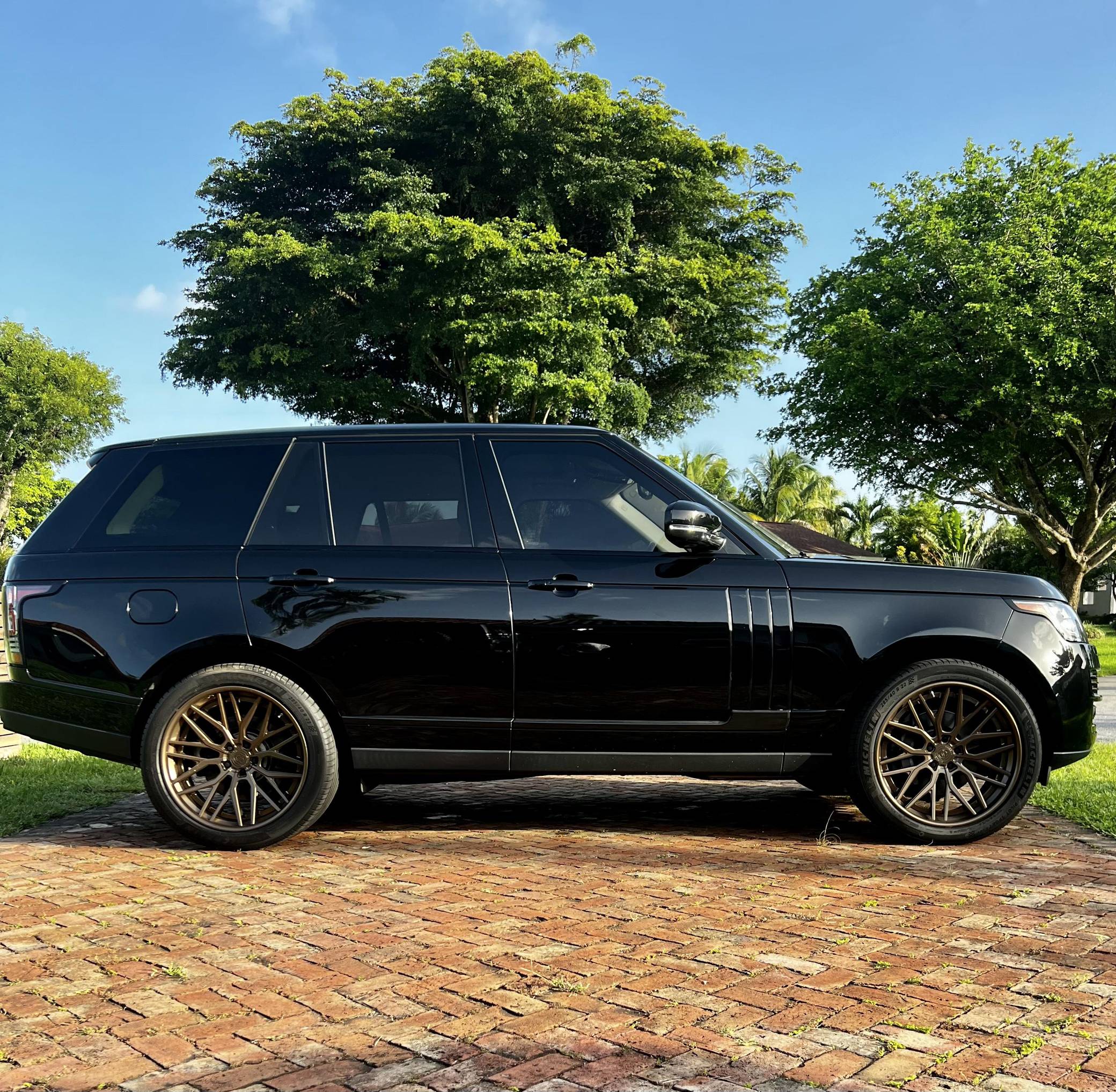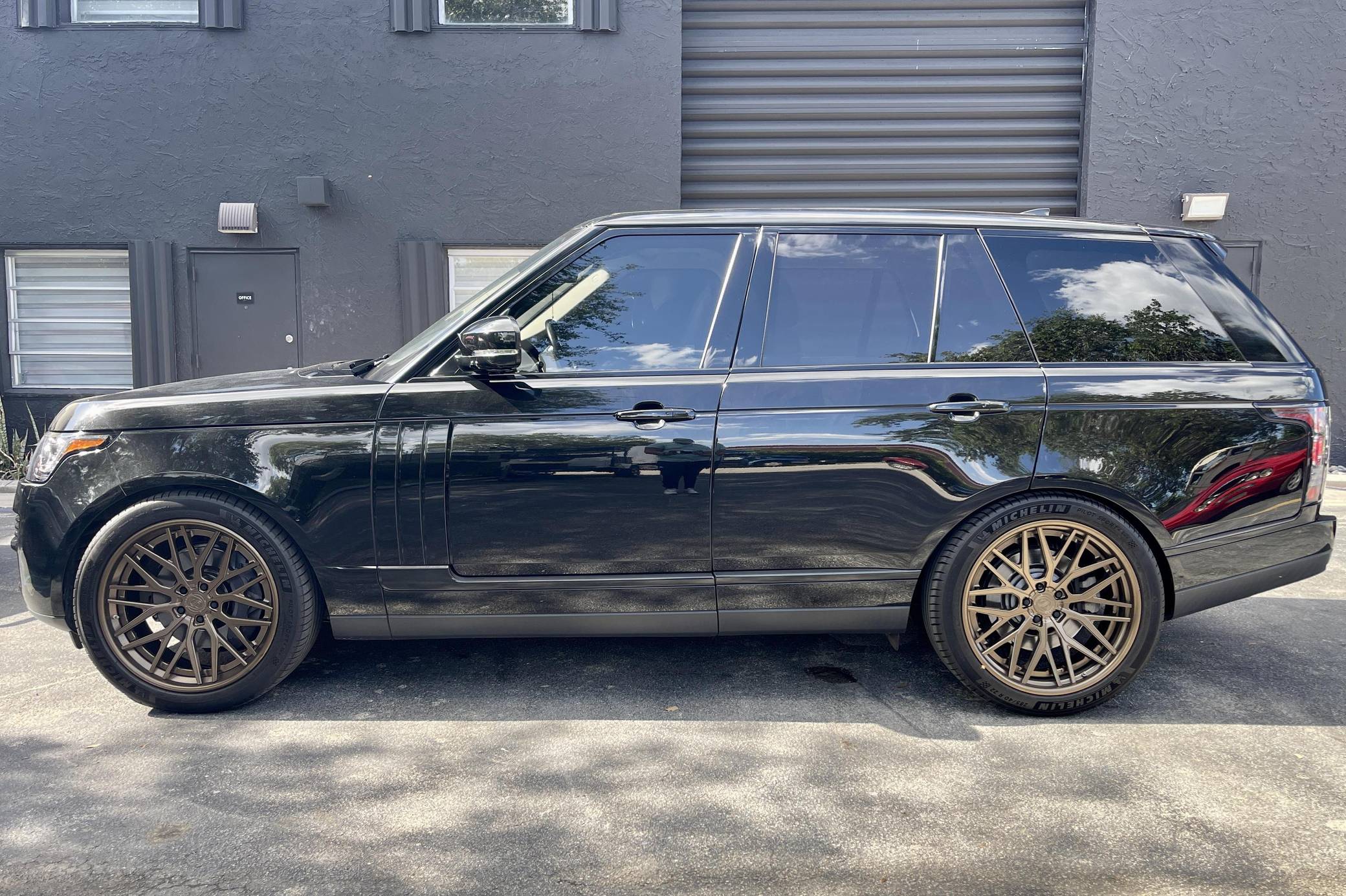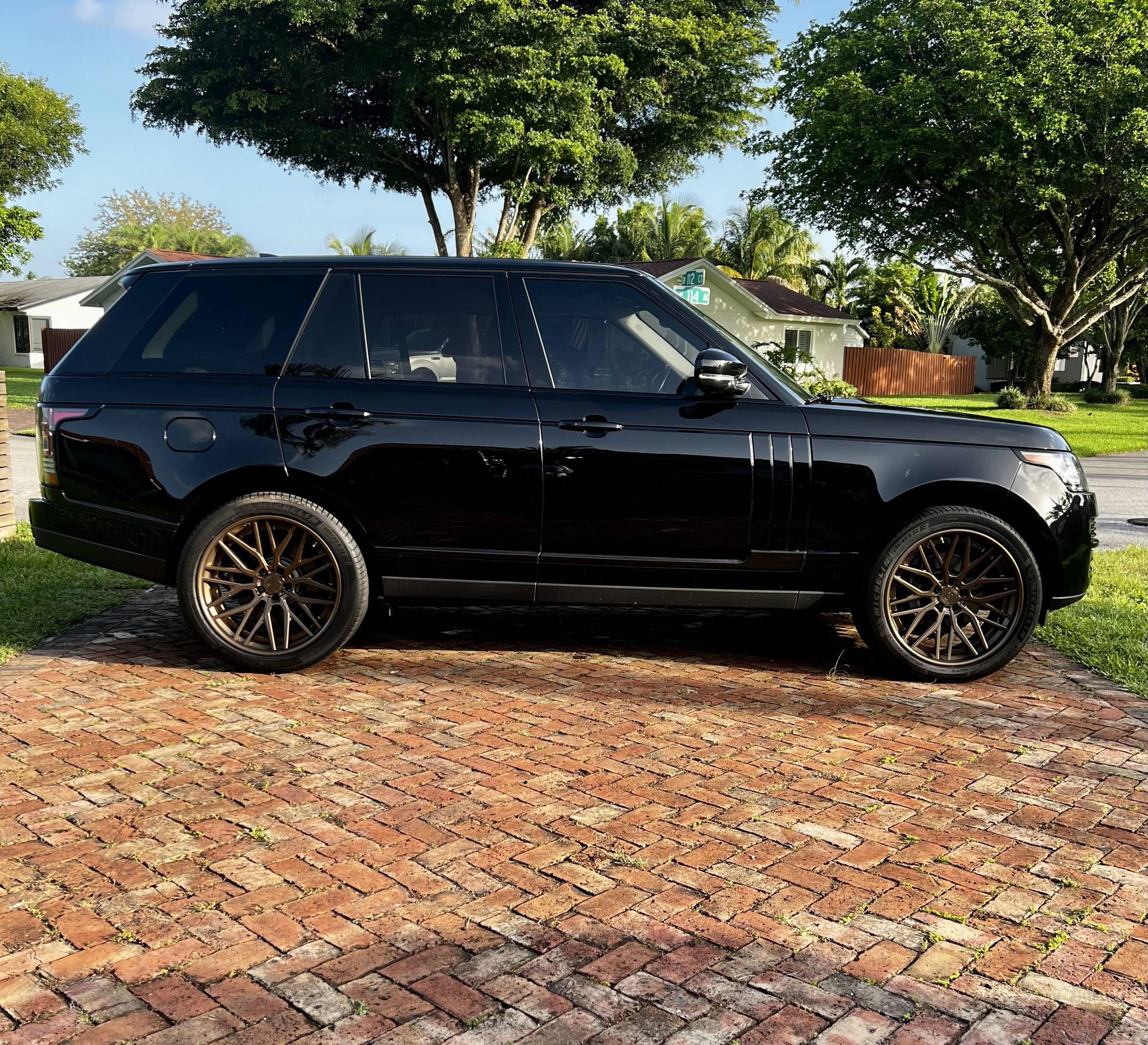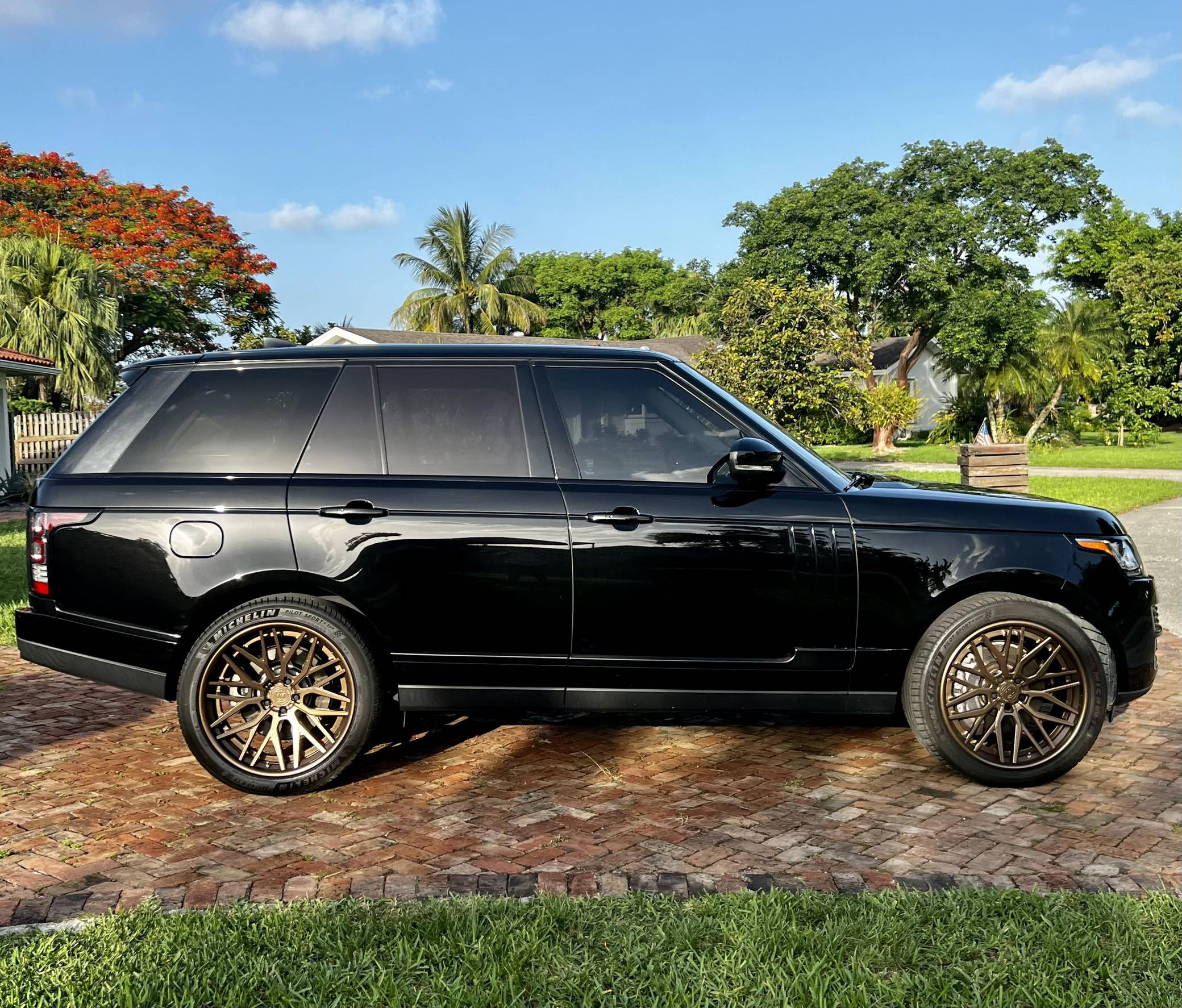 2017 Range Rover Supercharged, finished in Santorini Black with an Ebony interior. Factory equipment includes an adjustable air suspension system, adaptive xenon headlights, a sunroof, soft-close doors, wood interior trim, heated, ventilated, and power-adjustable front seats, heated and reclining rear seats, a heated steering wheel, a 10-inch touchscreen for the InControl Touch Pro infotainment system, a Meridian sound system, and Dynamic Response technology. Modifications reported by the seller are limited to 22-inch Strasse wheels and tinted windows. Called "L405" internally, the fourth-generation Range Rover made its debut for the 2013 model year with a sleeker-looking exterior design that improved the drag coefficient, more space for the rear passengers, and a much longer list of standard and optional tech features. Land Rover also relied on aluminum to make the big SUV about 700 pounds lighter than its predecessor, and it gave buyers more personalization options. Production of the L405-generation Range Rover ended in 2021. Power comes from a 5. 0-liter supercharged V8, rated at 510 horsepower and 461 lb-ft of torque. It spins the four wheels via an 8-speed automatic transmission and a 2-speed transfer case.