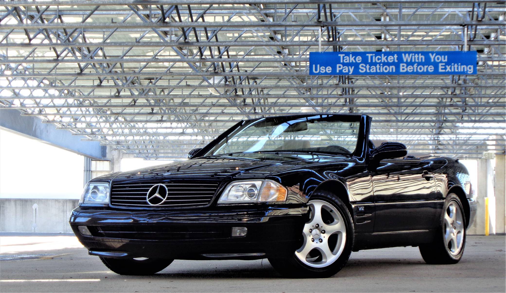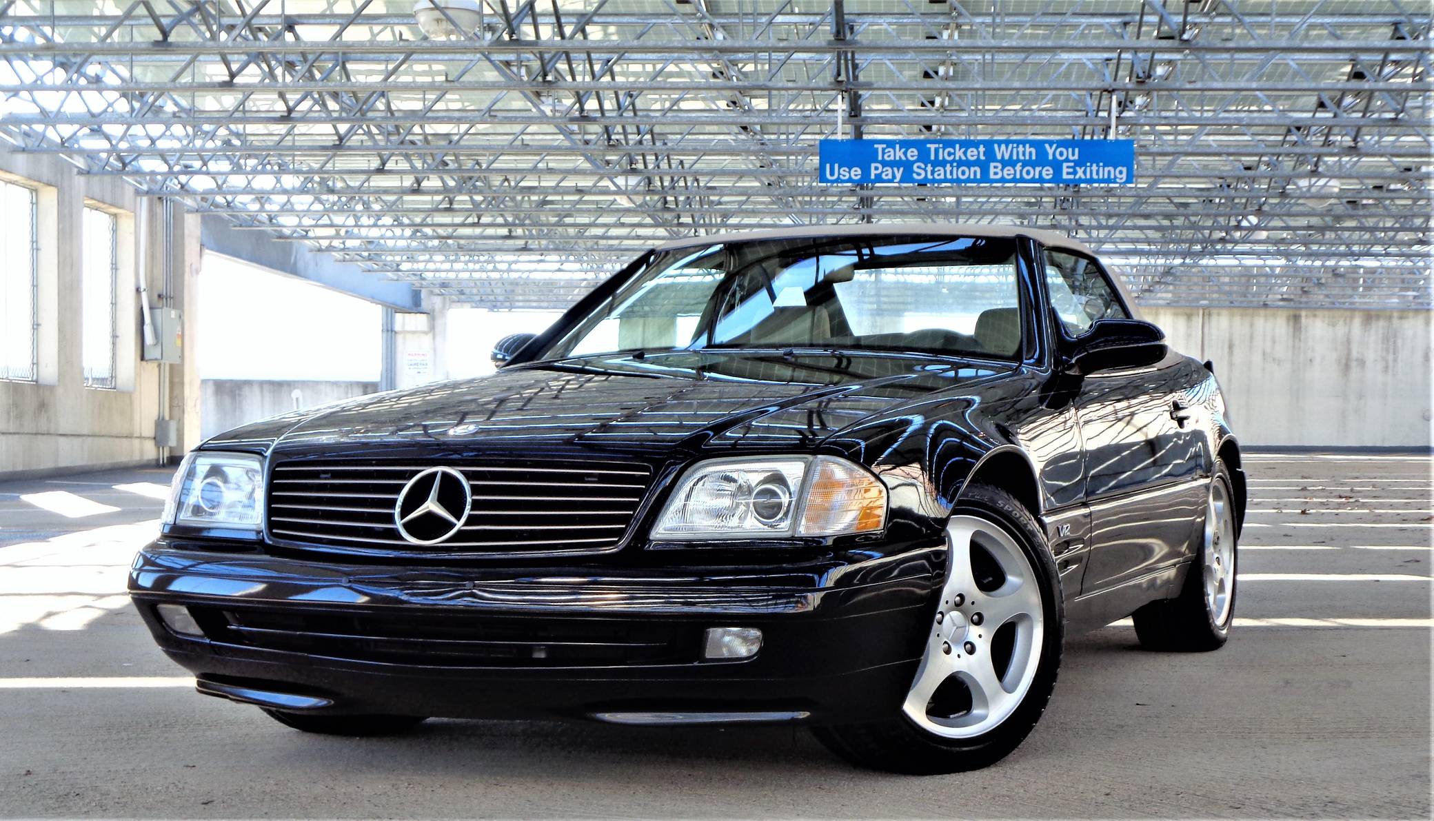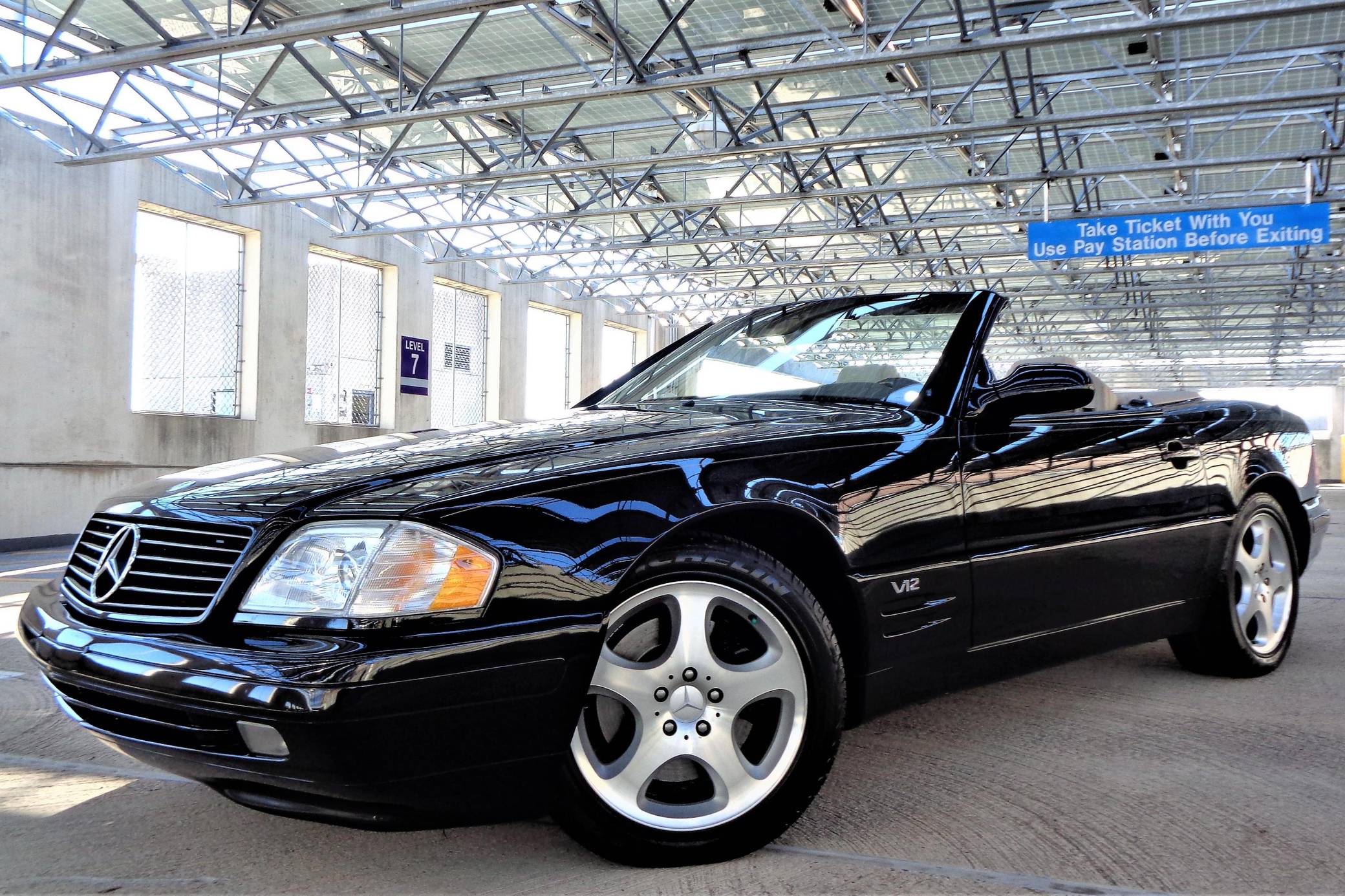 1999 Mercedes-Benz SL600, finished in black with a Java soft top and a Java interior. The odometer currently displays approximately 52,000 miles. Factory equipment includes a body-colored hardtop, adaptive suspension, xenon headlights, 17-inch wheels, Exclusive leather upholstery, power-adjustable and heated seats, automatic climate control, cruise control, and more as detailed below. No modifications have been reported by the seller. Offered from 1990 to the 2002 model year, the "R129" SL-Class has developed a reputation as a luxury-focused but well-performing convertible, with timeless Mercedes-Benz styling and quality. The V12-powered SL600 sat at the top of the range and came standard with an adaptive suspension system and cost upwards of $120,000 when new. Power comes from an "M120" 6. 0-liter V12, rated at 389 horsepower and 420 lb-ft of torque. Output is set to the rear wheels via a 5-speed automatic transmission.
