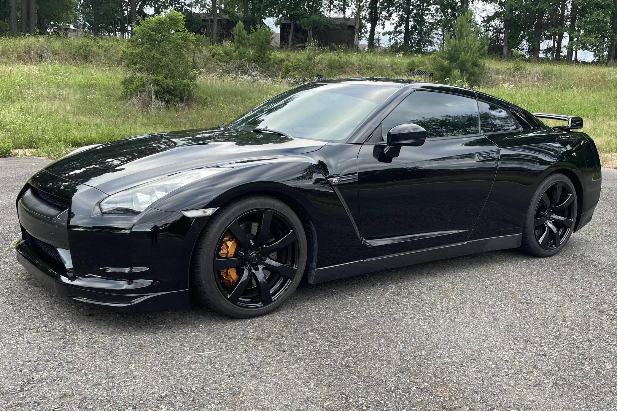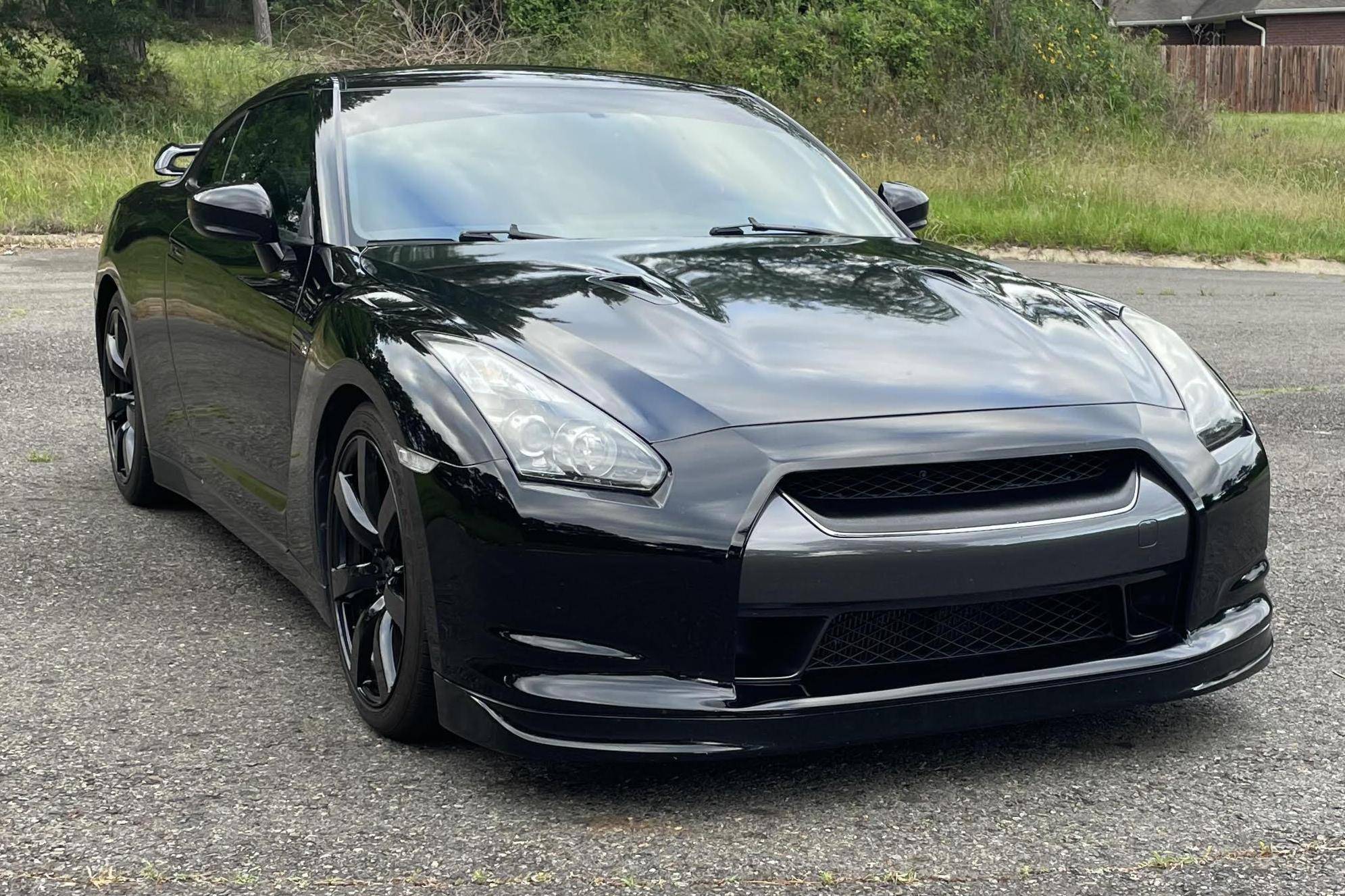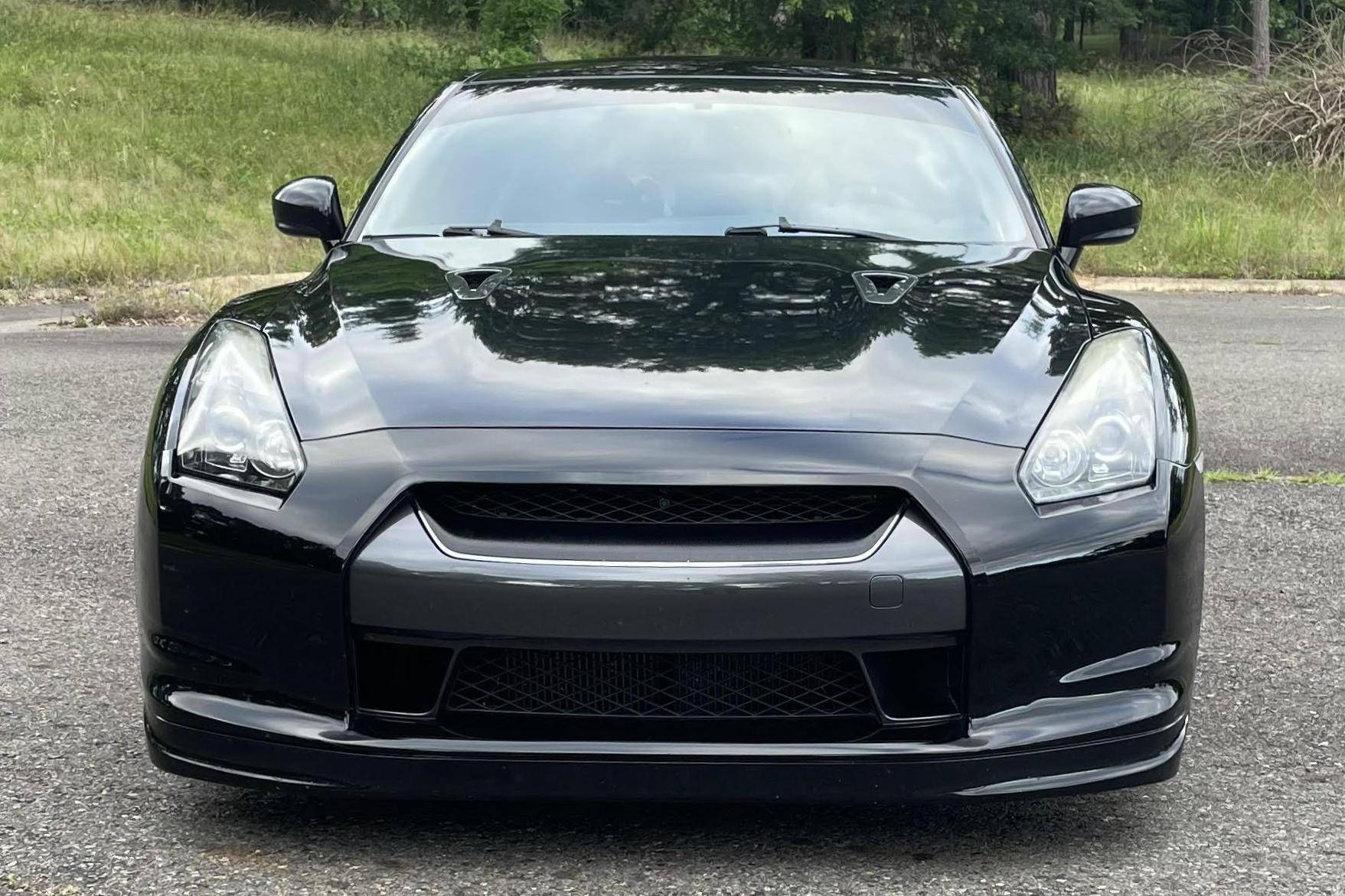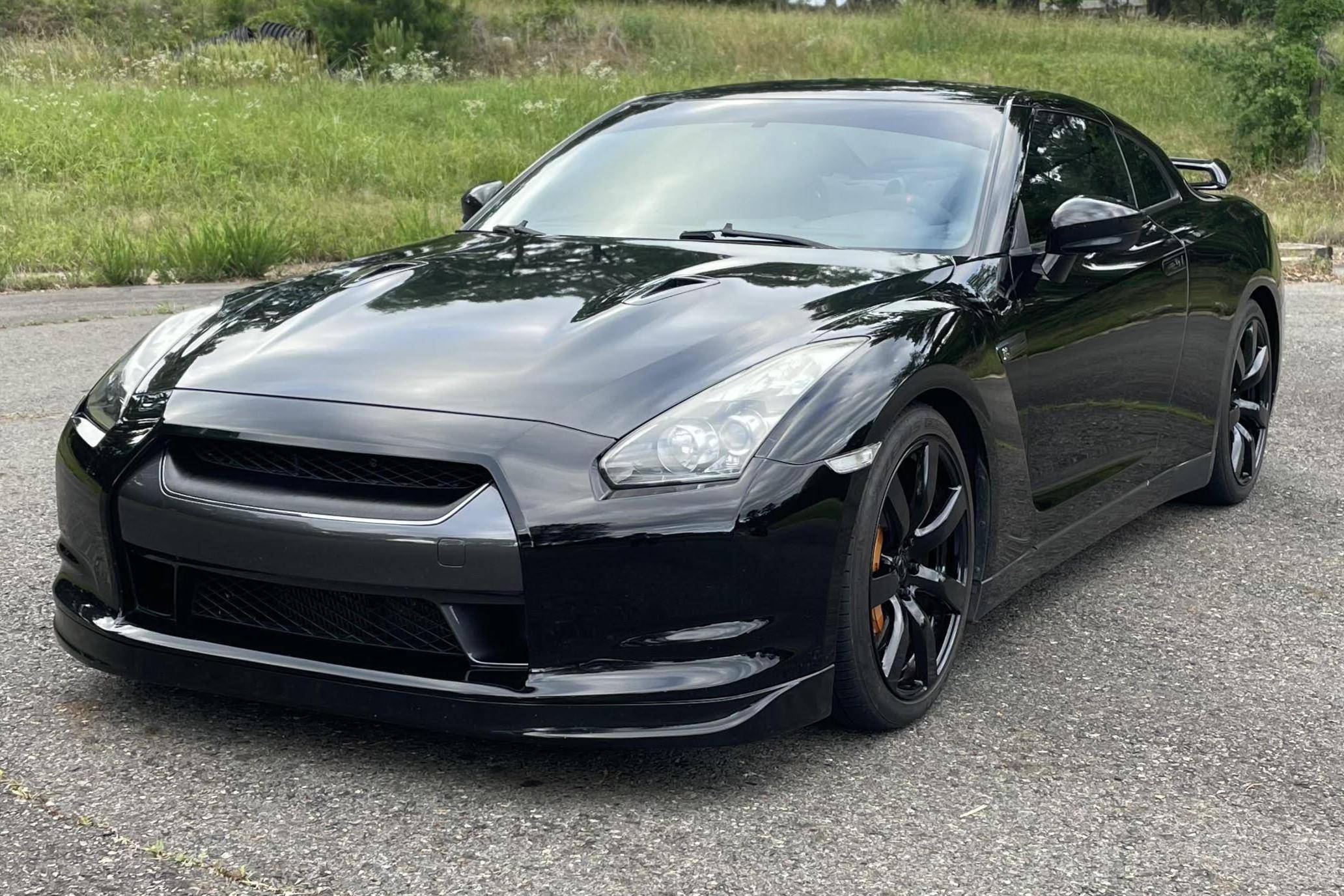 2009 Nissan GT-R, finished in Black Obsidian with a black interior. The odometer indicates approximately 62,200 miles. Factory equipment includes 20-inch wheels, Vehicle Dynamic Control, a Bilstein DampTronic suspension system, a Brembo braking system, a limited-slip differential, leather upholstery, and heated front sport seats. Modifications reported by the seller include a VR Speed Factory catless downpipe, an aftermarket mid pipe, a Cobb Tuning intake, a Cobb Tuning Accessport ECU tuner, a Jacks Transmissions kit, powder-coated wheels, tinted windows, a Phoenix Automotive touchscreen infotainment system, and Infinity Reference door speakers. Called "R35" internally, and Godzilla by its legions of fans, the GT-R arrived for 2009 as the performance bargain of its decade. Power comes from a 3. 8-liter twin-turbocharged V6, rated at 480 horsepower and 430 lb-ft of torque in stock form. The modifications likely increase those figures, but a dyno sheet was not provided to confirm. Output is sent to all four wheels via a 6-speed automatic transmission.