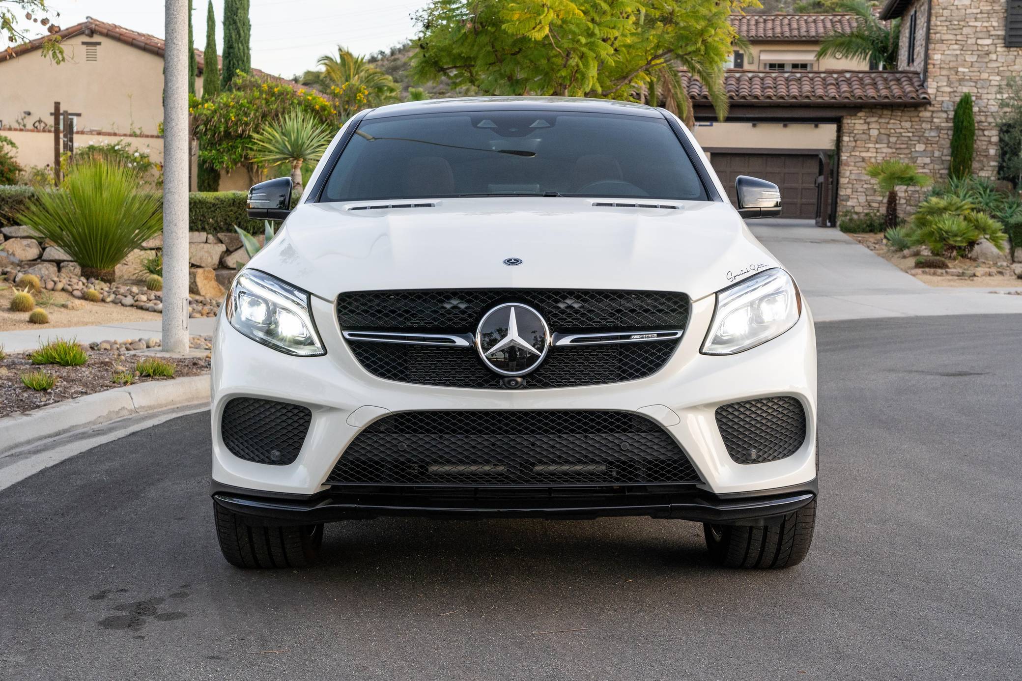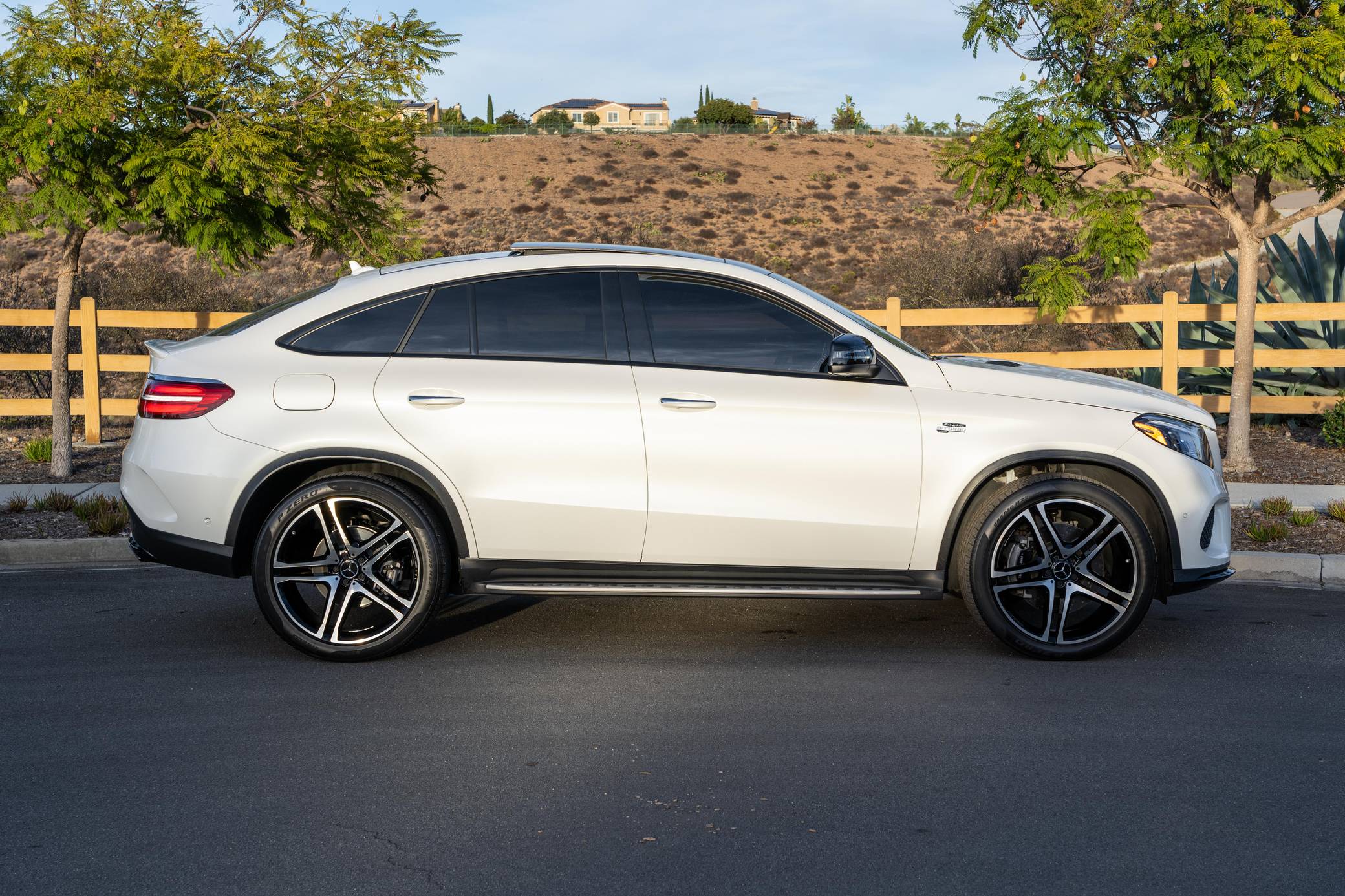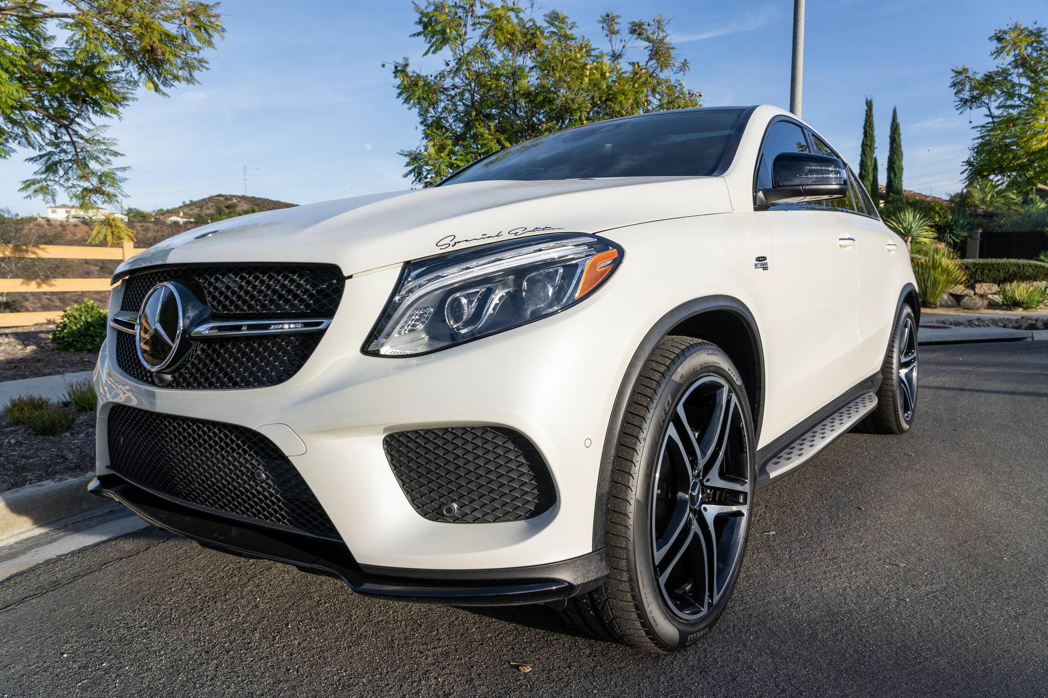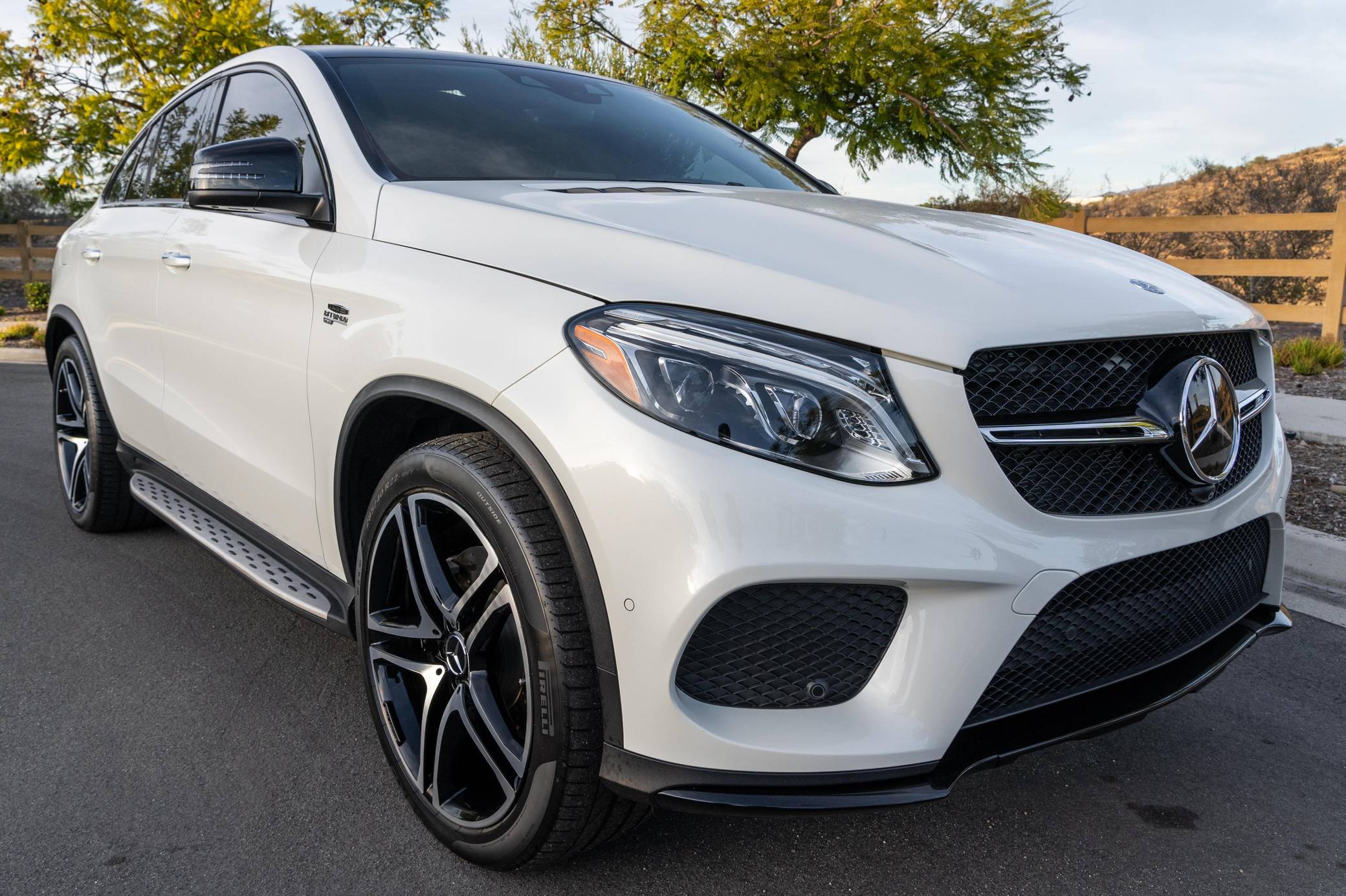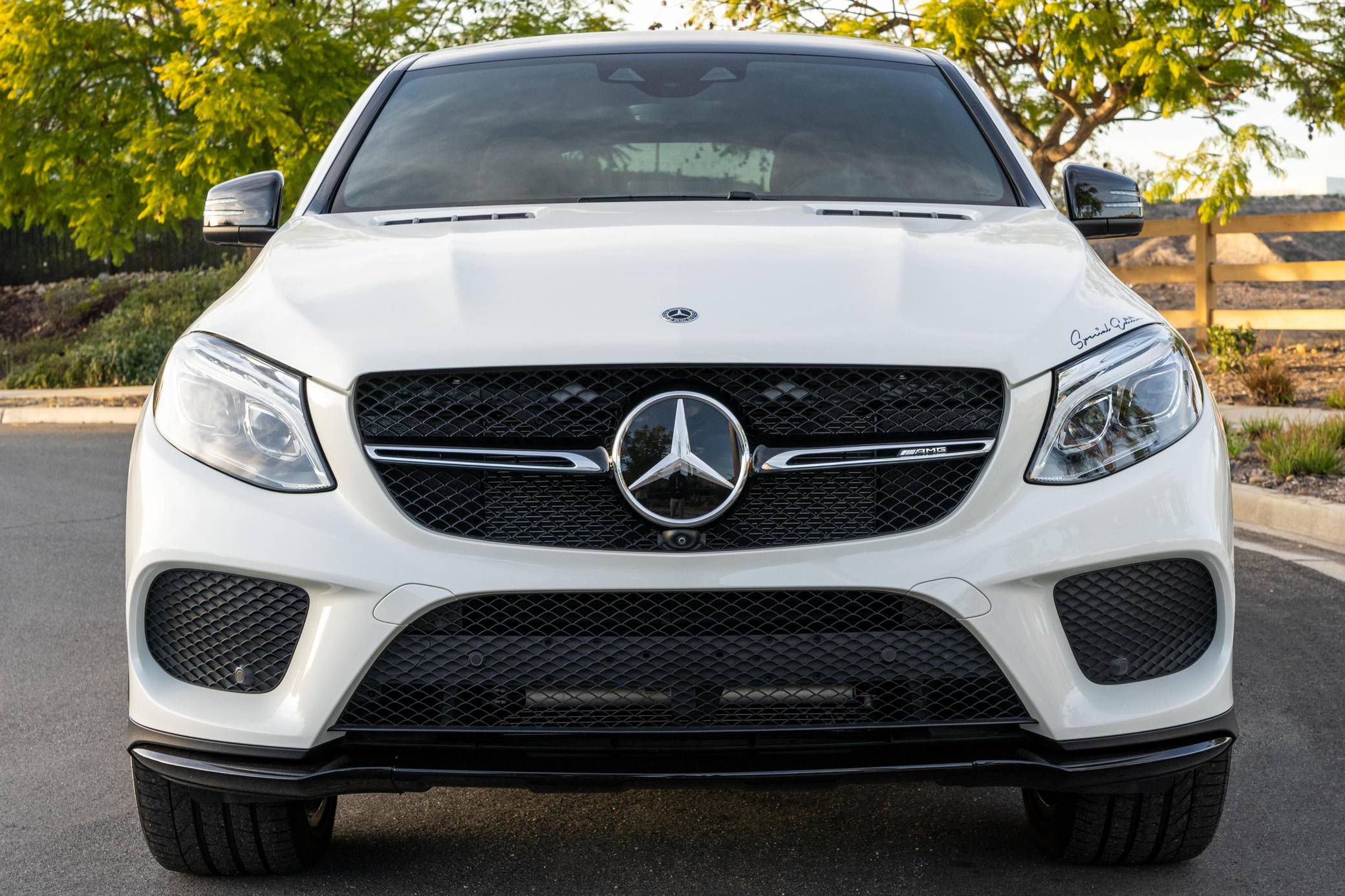 THIS… is a 2018 Mercedes-AMG GLE43 Coupe, finished in Diamond White Metallic with a brown interior. According to the build sheet provided in the gallery, factory equipment includes the Premium 3 package, 22-inch AMG wheels, an AMG Sport Airmatic suspension, adaptive LED headlights, a panorama sunroof, leather upholstery, power-adjustable heated and ventilated front seats, Apple CarPlay and Android Auto connectivity, and more as listed below. Modifications reported by the seller are limited to a paint-protection film on the hood and headlights, tinted windows, and Akebono brake pads. Mercedes-Benz turned the third-generation ML (W166) into the first GLE for the 2016 model year. The GLE Coupe model joined the range for the 2017 model year, featuring a lower greenhouse and a sportier design. The AMG GLE43 filled the gap between the standard GLE and the V8-powered AMG GLE63 model. Power comes from a twin-turbocharged 3. 0-liter V6, rated at 385 horsepower and 384 lb-ft of torque. Output is sent to all four wheels via a 9-speed automatic transmission and Mercedes-Benz's 4Matic permanent all-wheel-drive system.