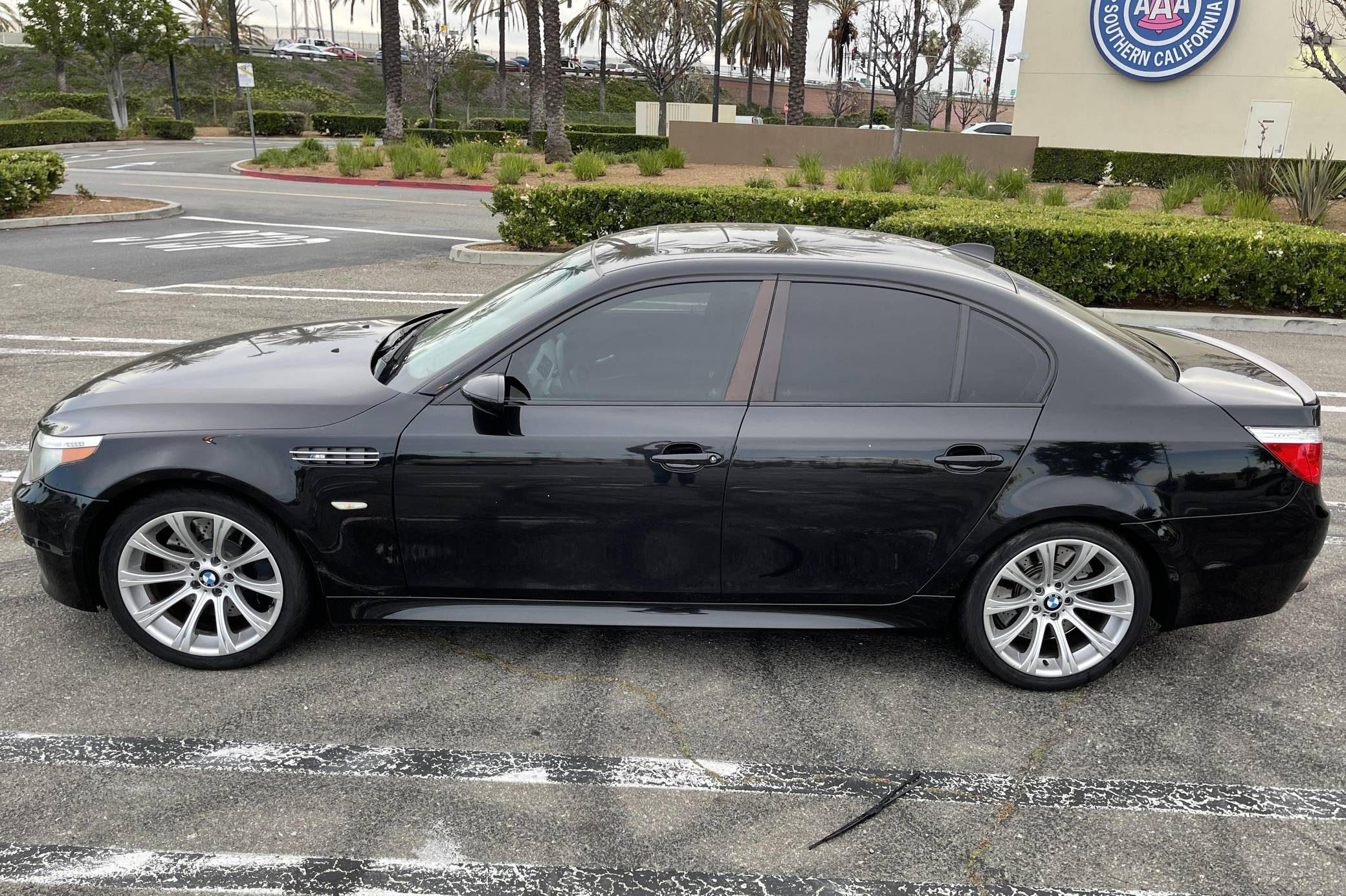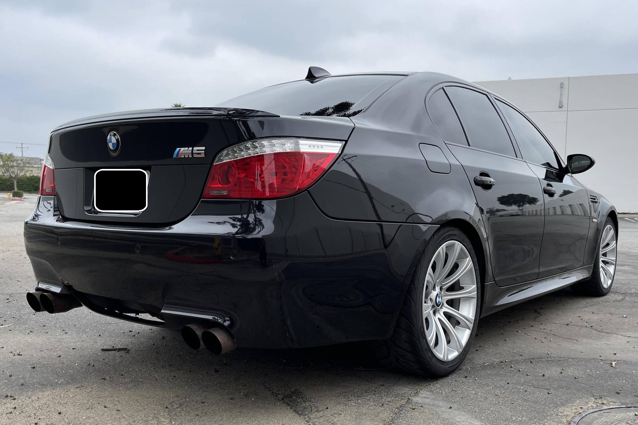 2007 BMW M5, finished in Black Sapphire Metallic with a black interior. This M5 is equipped with the desirable 6-speed manual transmission. Factory equipment includes 19-inch Style 166 wheels, adaptive xenon headlights, Merino leather upholstery, power-adjustable front sport seats, heated front and rear seats, a navigation system, dual-zone automatic climate control, and more as detailed below. Modifications reported by the seller include a muffler delete, G. A. S. thrust arm bushings, Sophie’s V2 Vanos solenoids, black kidney grilles, window tint, and an F10 M5 shift knob and shift boot. Based on the E60-generation 5 Series, the fourth-generation M5 made its debut for the 2006 model year with a mighty V10 engine between its vented fenders. It followed its segment's shift towards technology and luxury by offering enthusiasts a longer list of equipment than its predecessor, including a power button and configurable driving modes. Production ended in 2010, and BMW hasn't released another V10-powered M5 since. Power comes from an "S85" 5. 0-liter V10, rated at 500 horsepower and 383 lb-ft of torque. It spins the rear wheels via a 6-speed manual transmission.