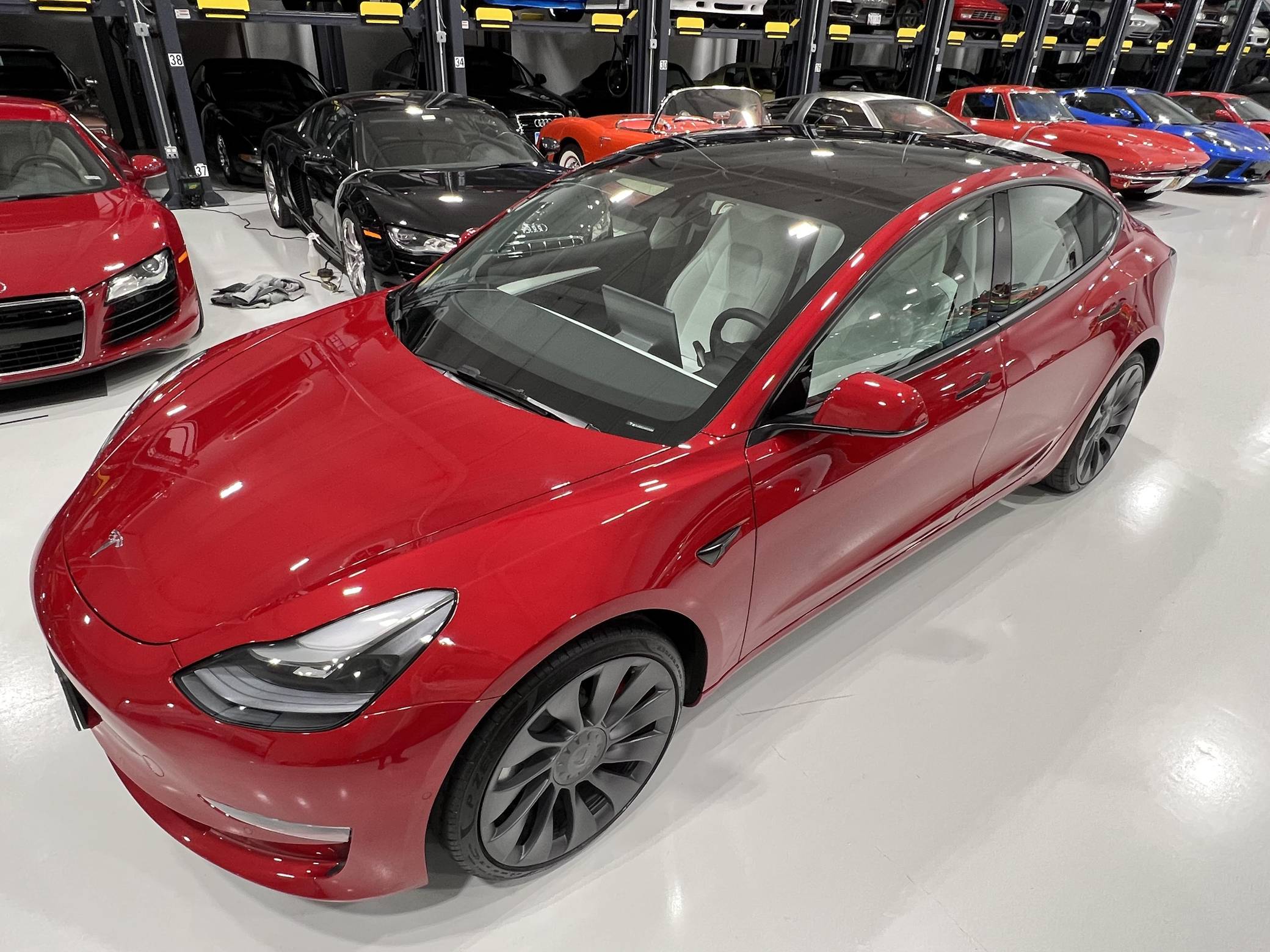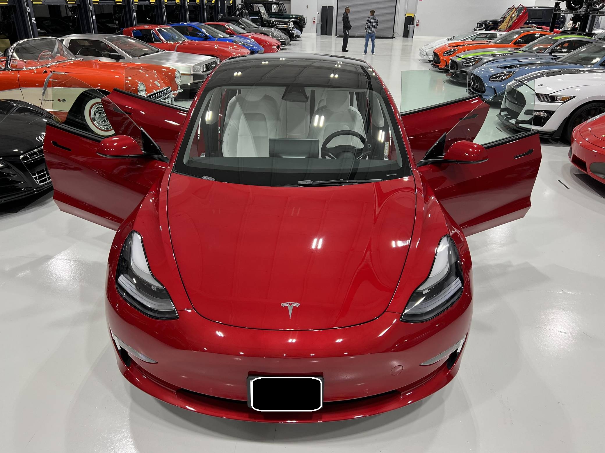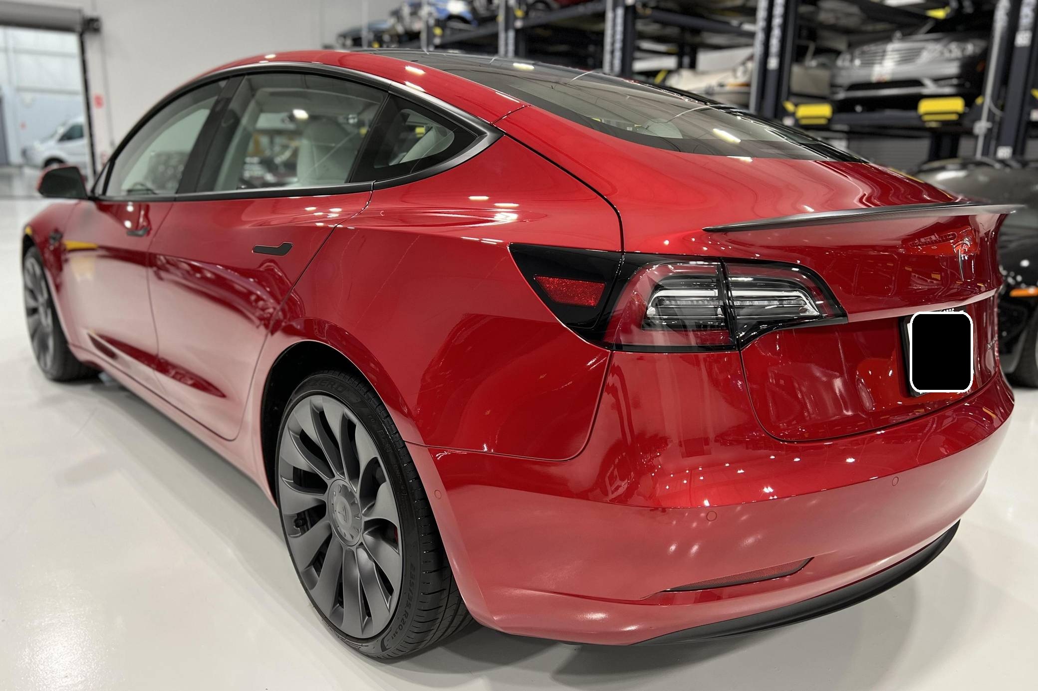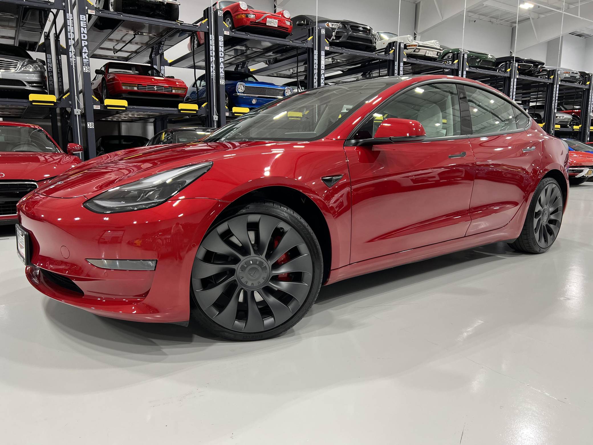 THIS. . . is a 2022 Tesla Model 3 Performance, finished in red with a black and white interior. Factory equipment includes 20-inch "Überturbine" wheels, a Performance-specific braking system, a carbon fiber rear spoiler, the Premium interior, heated front and rear seats, a heated steering wheel, a premium sound system, and the "Full Self-Driving" computer. The seller reports no modifications. Positioned as Tesla's entry-level car, the Model 3 was welcomed as a premium EV with a usable range and respectable performance, all at a reasonably attainable price. It's still available today, and it has gone through several evolutions (including many software updates) since its introduction. Power comes from a pair of electric motors that draw electricity from an 82-kilowatt-hour lithium-ion battery pack to zap the four wheels with approximately 470 horsepower, according to third-party estimates. This Model 3's maximum driving range was rated at 315 miles in 2022 by the EPA.