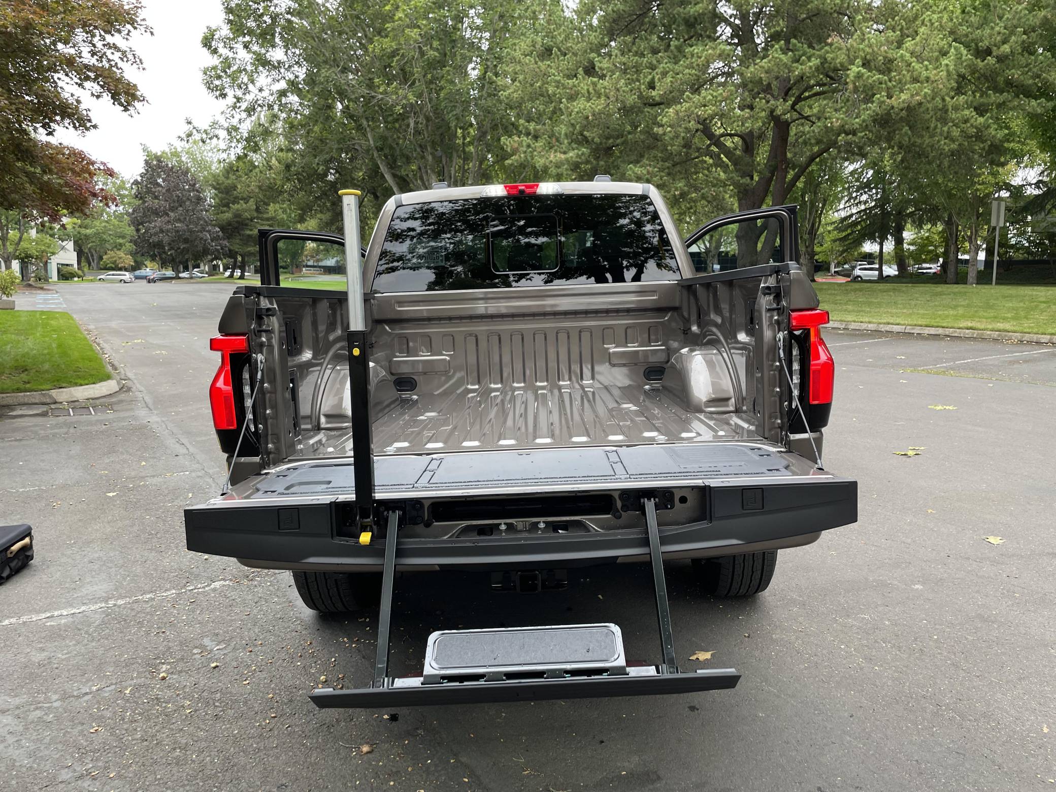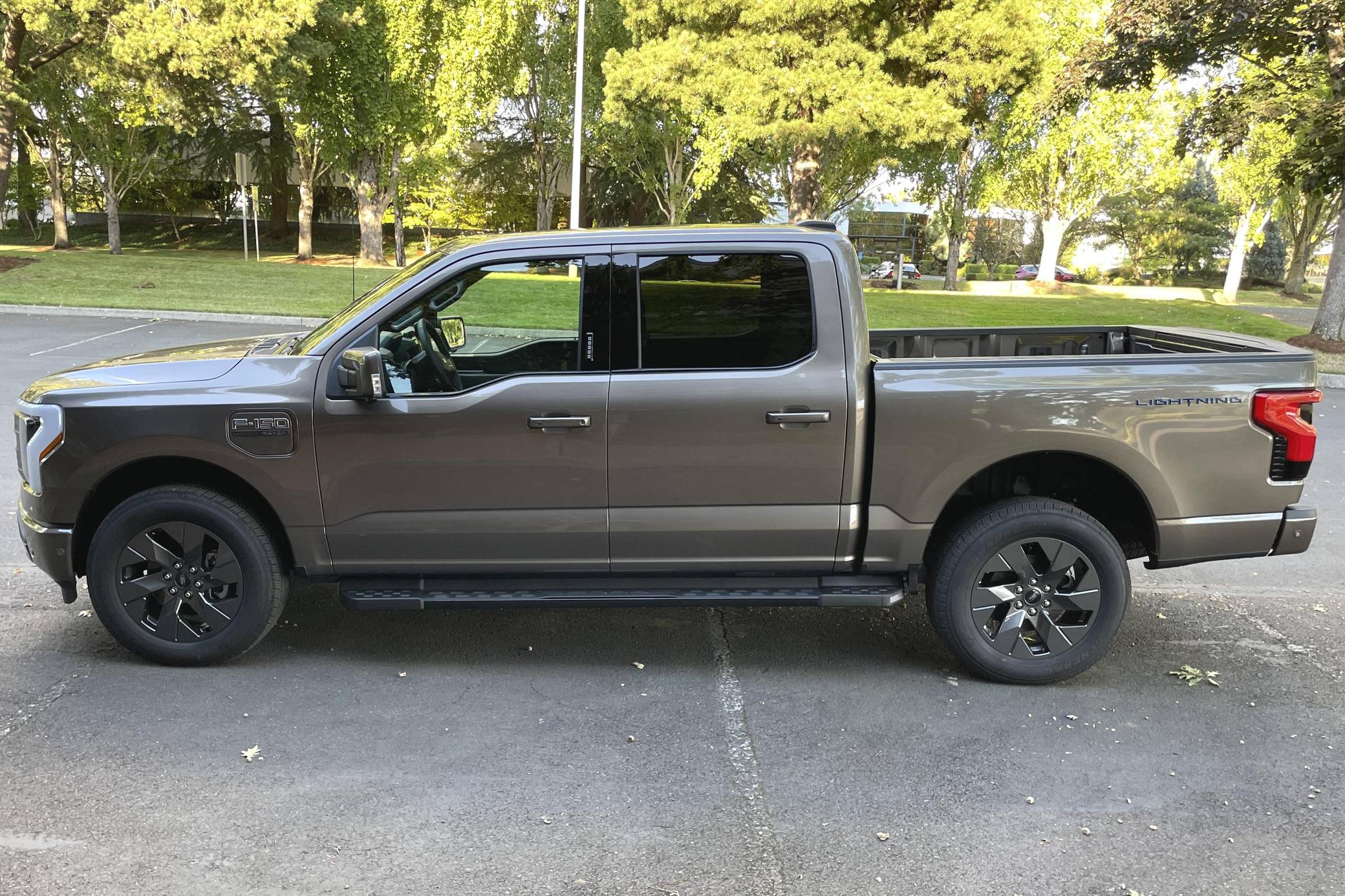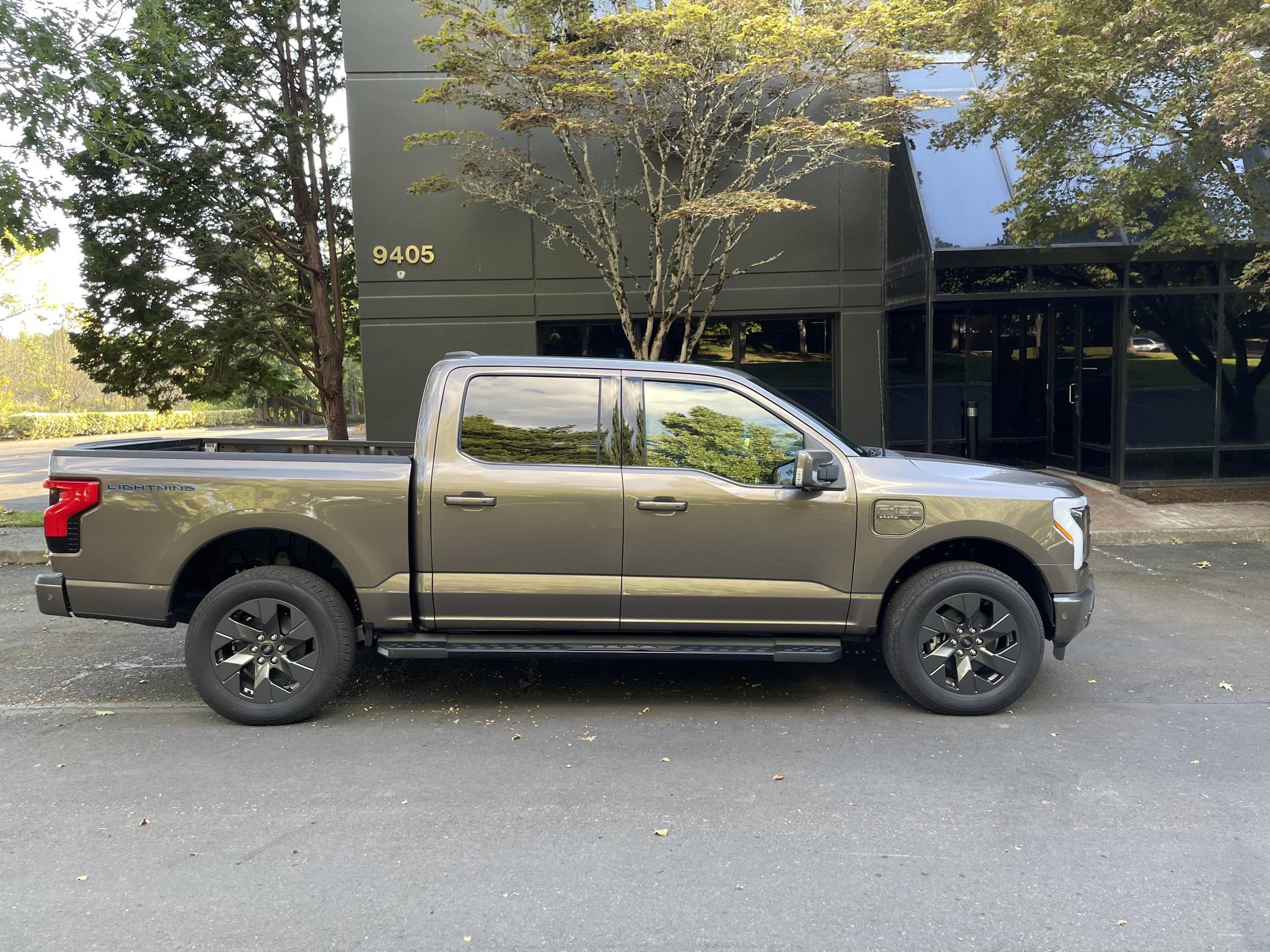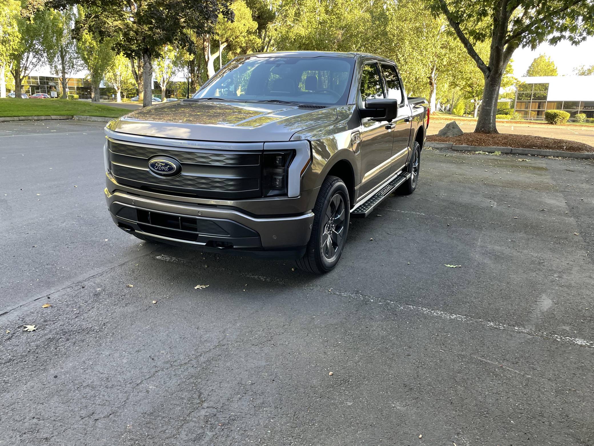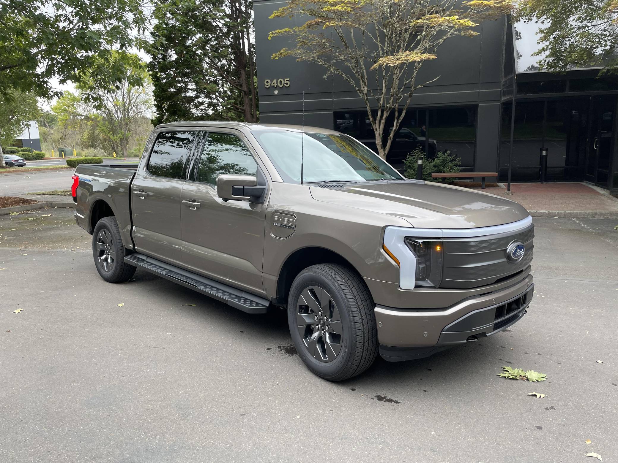 THIS. . . is a 2022 Ford F-150 Lightning Lariat, finished in Stone Gray Metallic with a black interior. The seller reports no modifications. Formerly used on the high-performance variant of the F-150, the Lightning nameplate was revived for the 2022 model year for Ford's first all-electric pickup. All Lightnings come equipped with dual electric motors and all-wheel drive, though two battery packs are available: a 90-kilowatt-hour standard range or a 131-kilowatt-hour extended range battery. Ford claims the Lightning is the fastest accelerating F-150 yet, with a 0-to-60 time in the mid-4 second range when equipped with the extended range battery. Power comes from a pair of electric motors (one per axle), which draw electricity from a 131-kilowatt-hour lithium-ion battery pack to zap all four wheels with 580 horsepower and 775 lb-ft of torque. The Lightning earned a maximum driving range of 320 miles from the EPA.